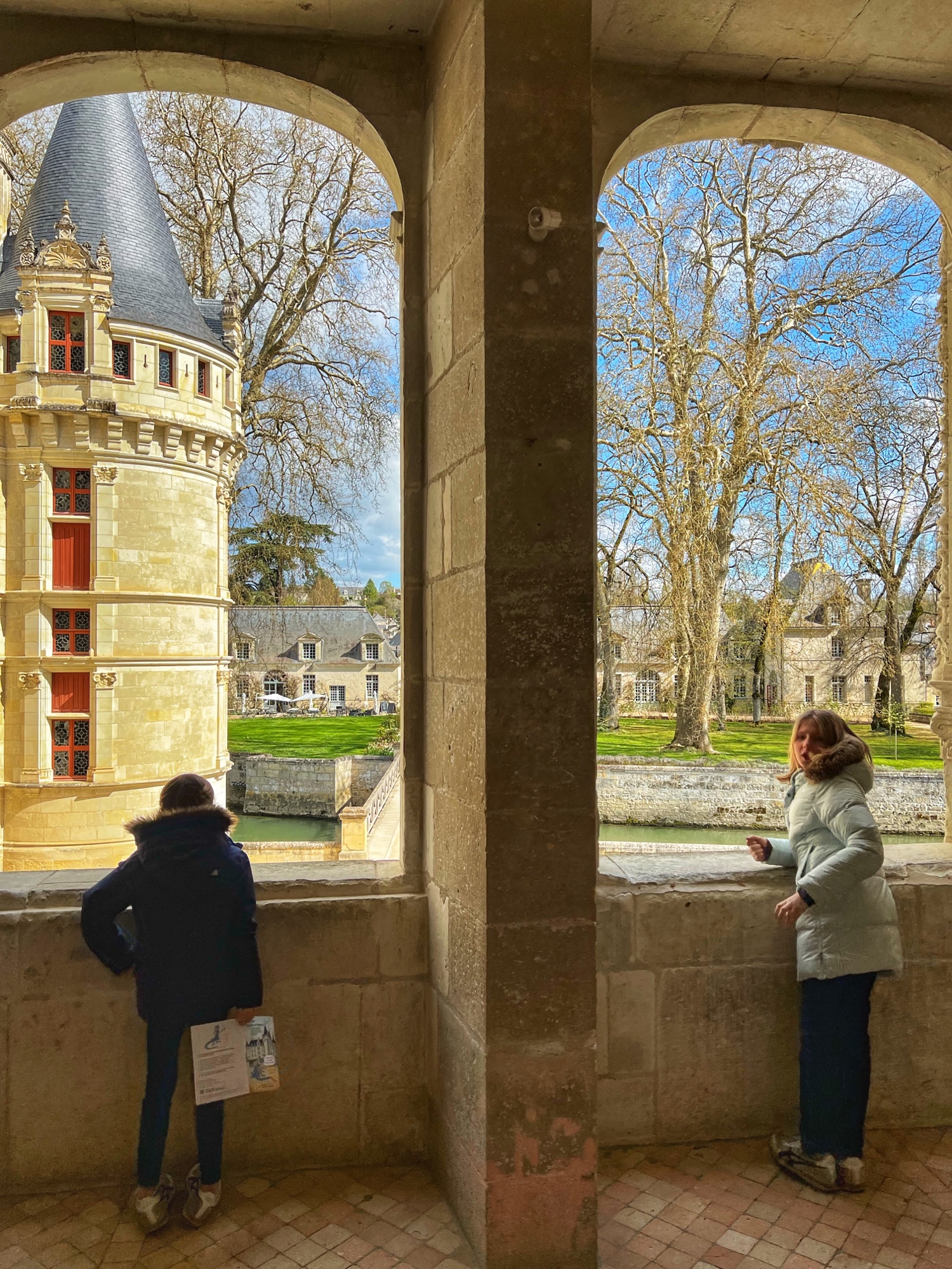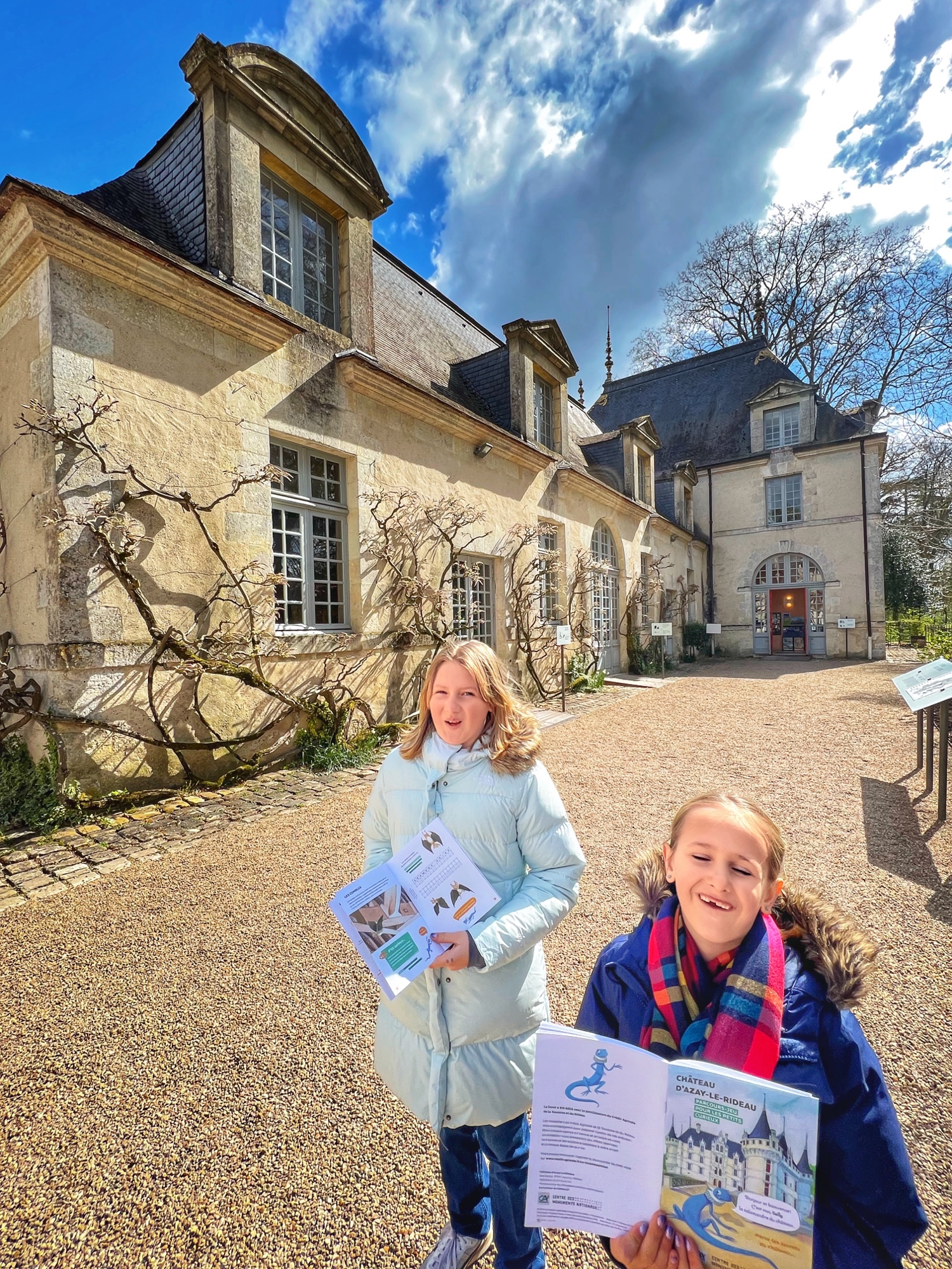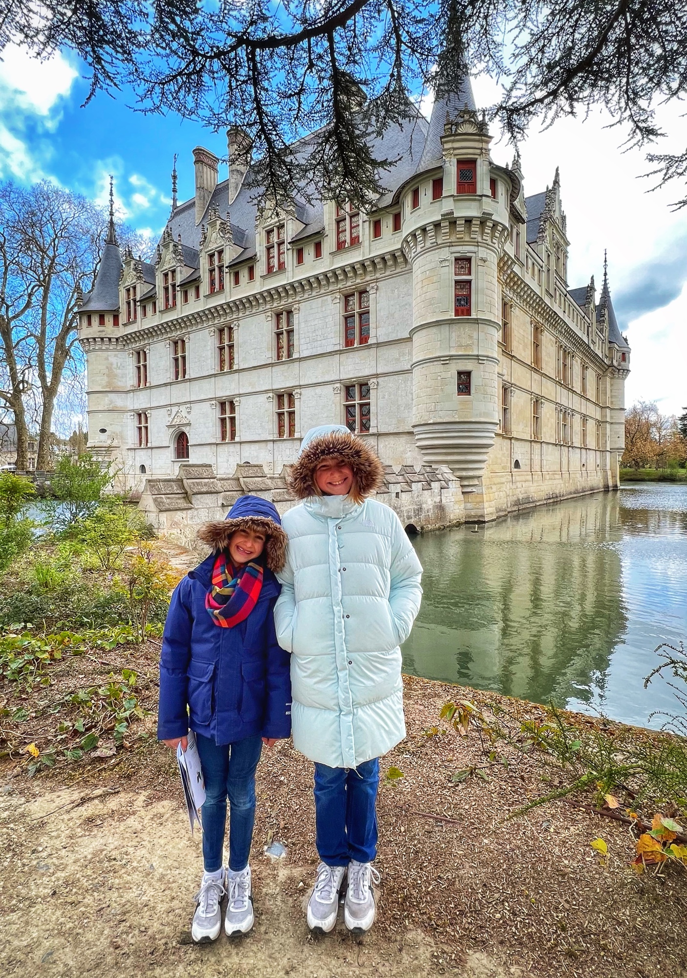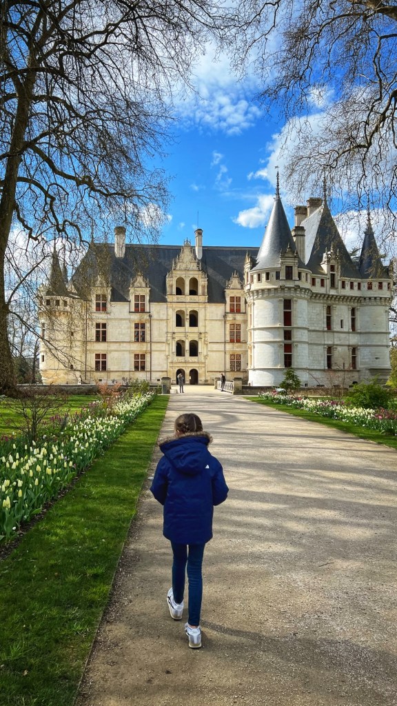 Built in the early 1500’s, Azay-le-Rideau is a Rennaissance marvel. With Italian and Flemmish influences (I noticed this right away, given how similar it looks to many Belgian castles I have seen), it has been well preserved by the French government since the turn of the 20th century. We loved being able to tour all the areas of the château and solve the riddles in the French children’s book together. Although they are not offering the audio guide right now due to covid, the girls loved the thick kid’s booklet and we learned a lot from the pamphlet as well.