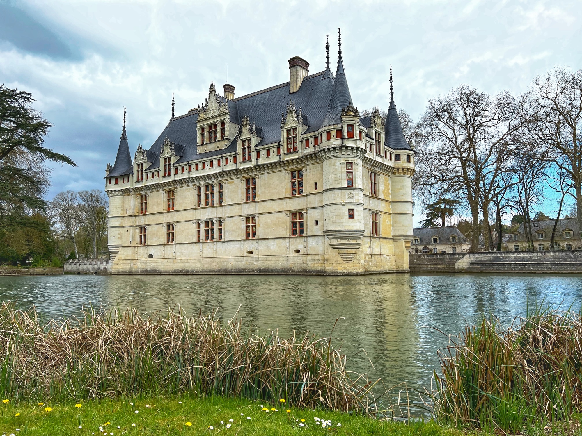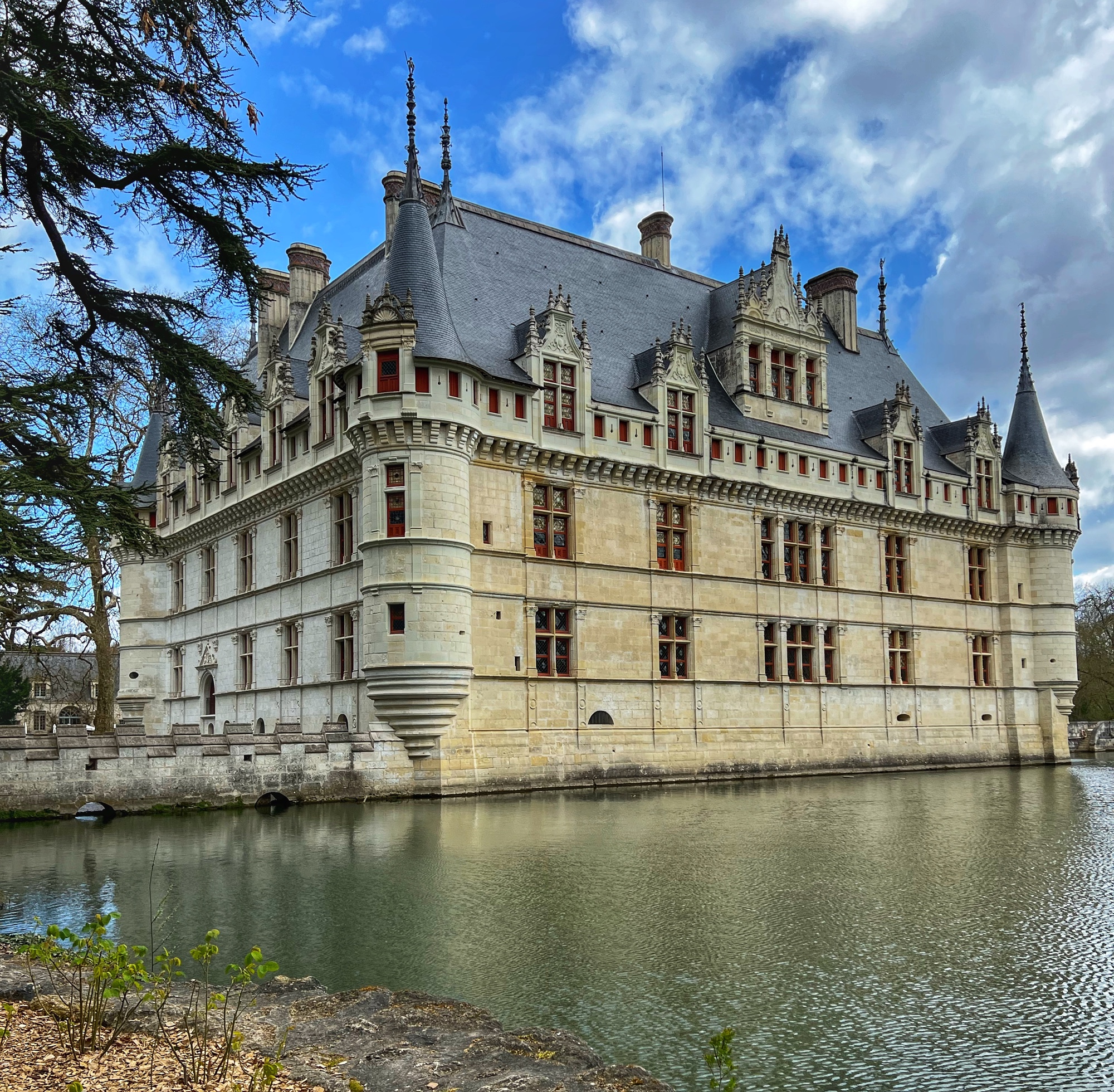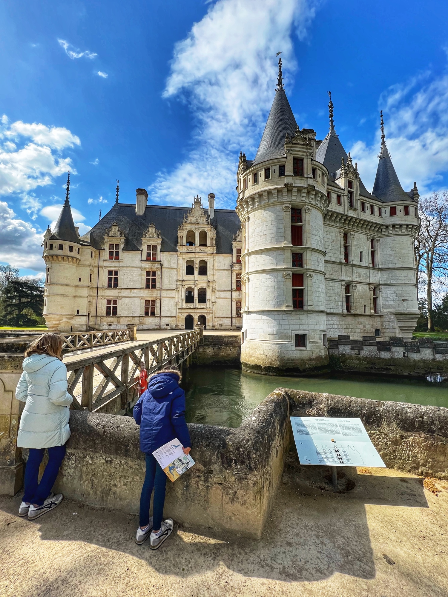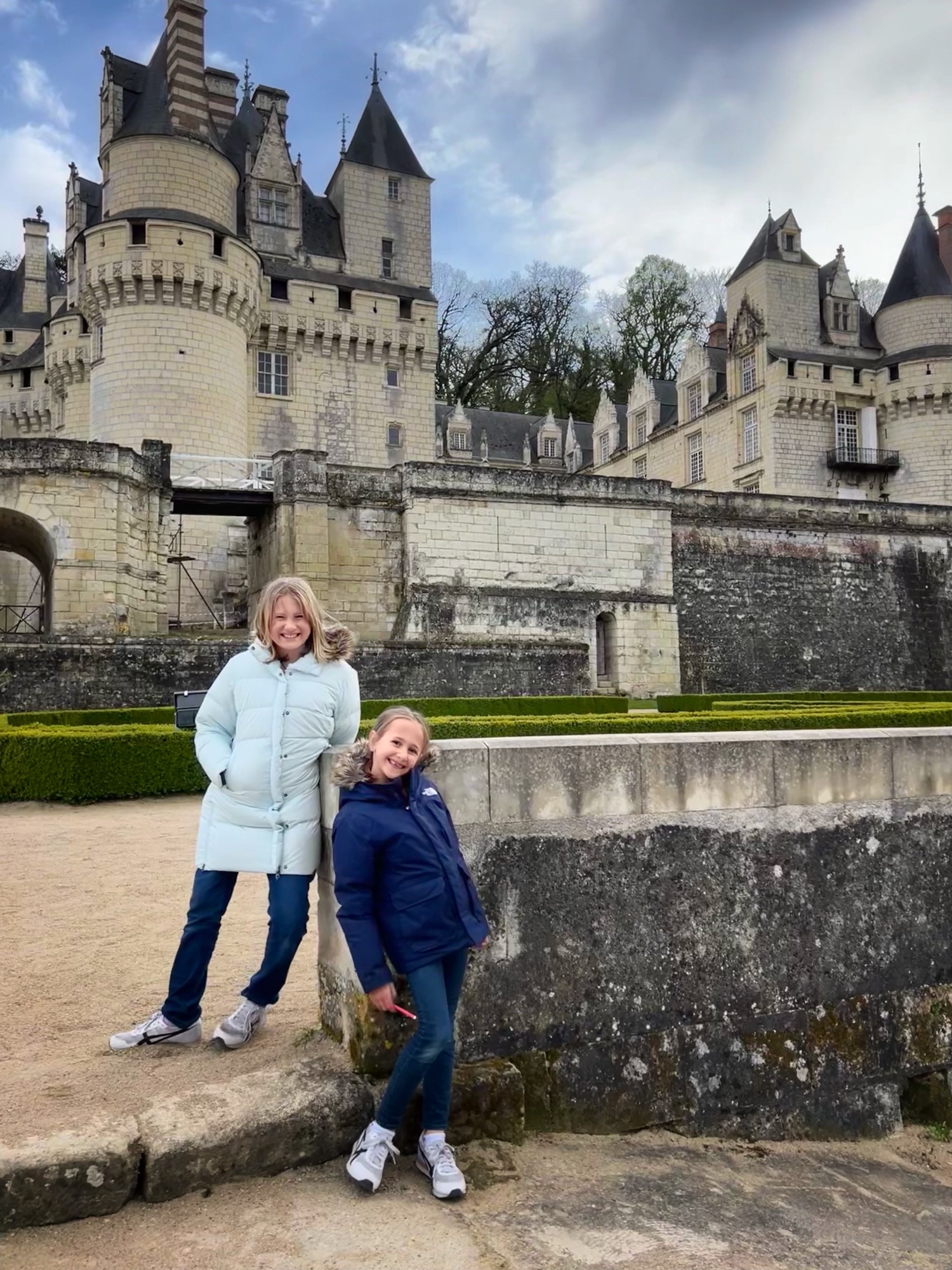 Built in the early 1500’s, Azay-le-Rideau is a Rennaissance marvel. With Italian and Flemmish influences (I noticed this right away, given how similar it looks to many Belgian castles I have seen), it has been well preserved by the French government since the turn of the 20th century. We loved being able to tour all the areas of the château and solve the riddles in the French children’s book together. Although they are not offering the audio guide right now due to covid, the girls loved the thick kid’s booklet and we learned a lot from the pamphlet as well.