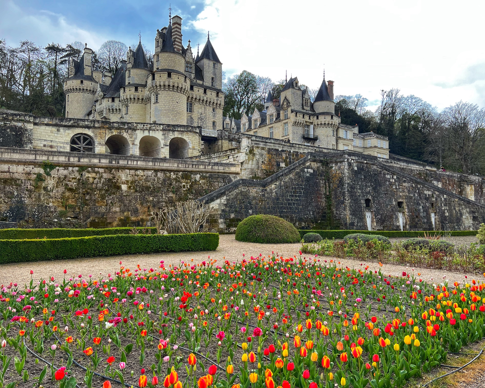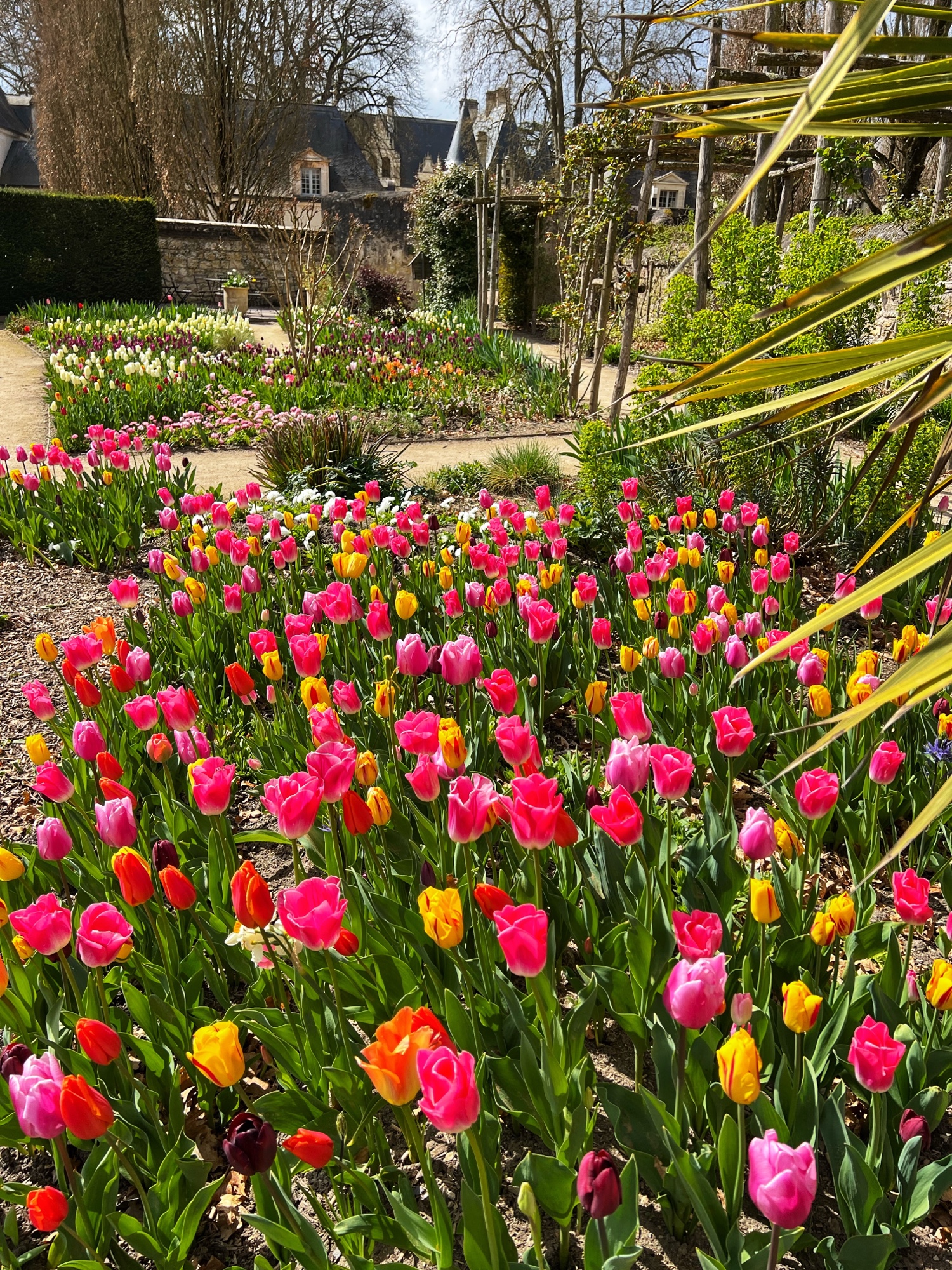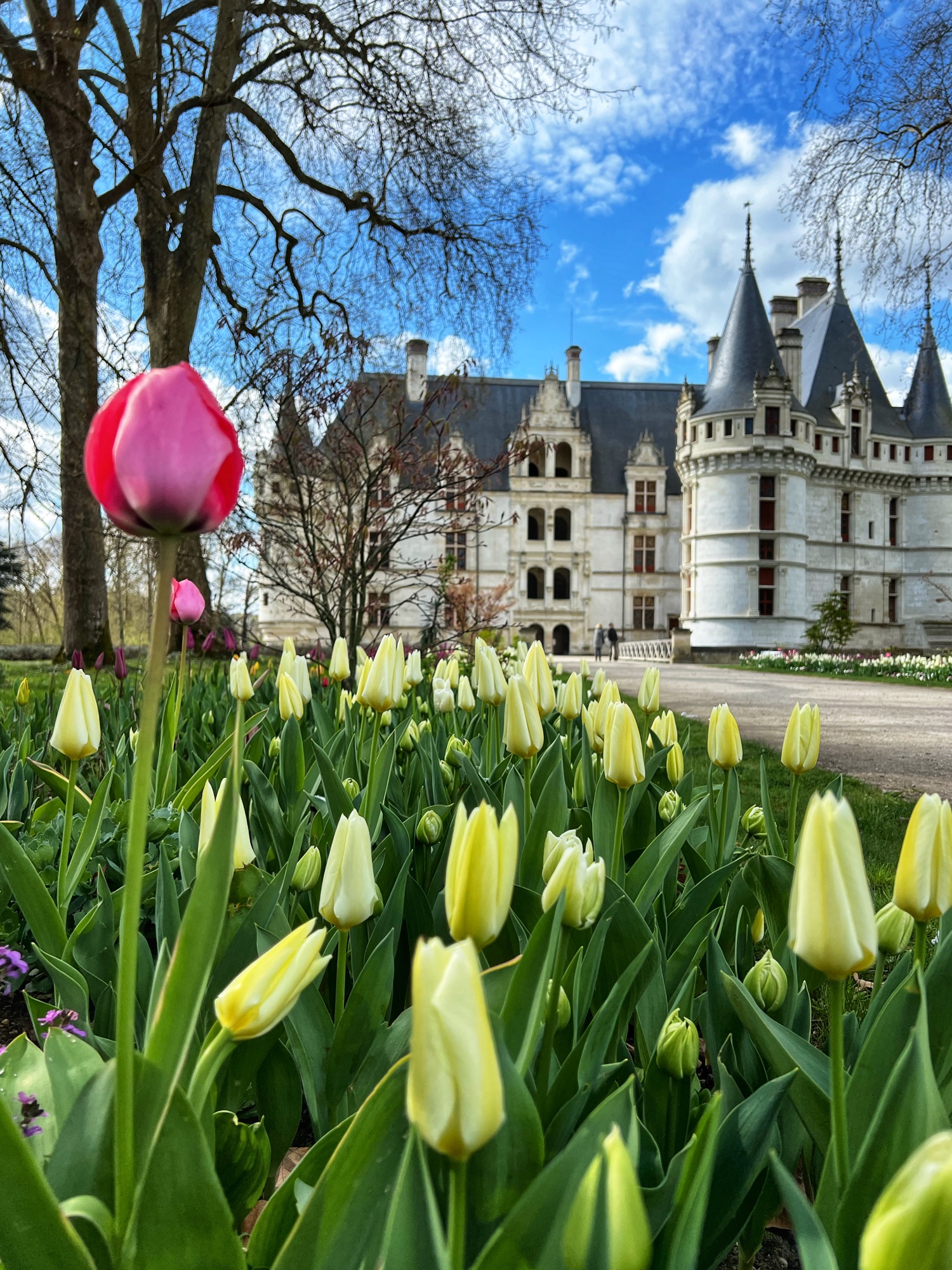 The Jardin d’Amour pops you out right at the amazing tulip rows lining long paths that head back towards the château. It was early April and they were already in full bloom!