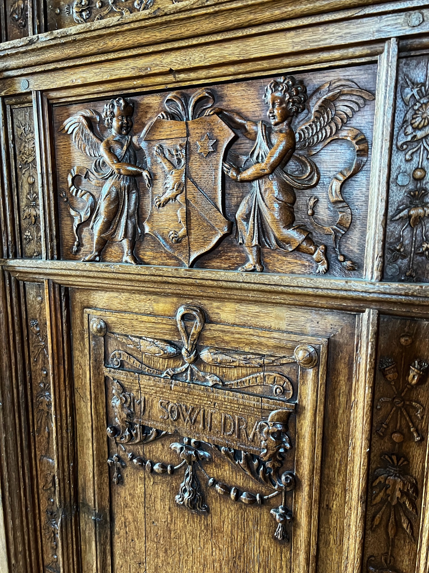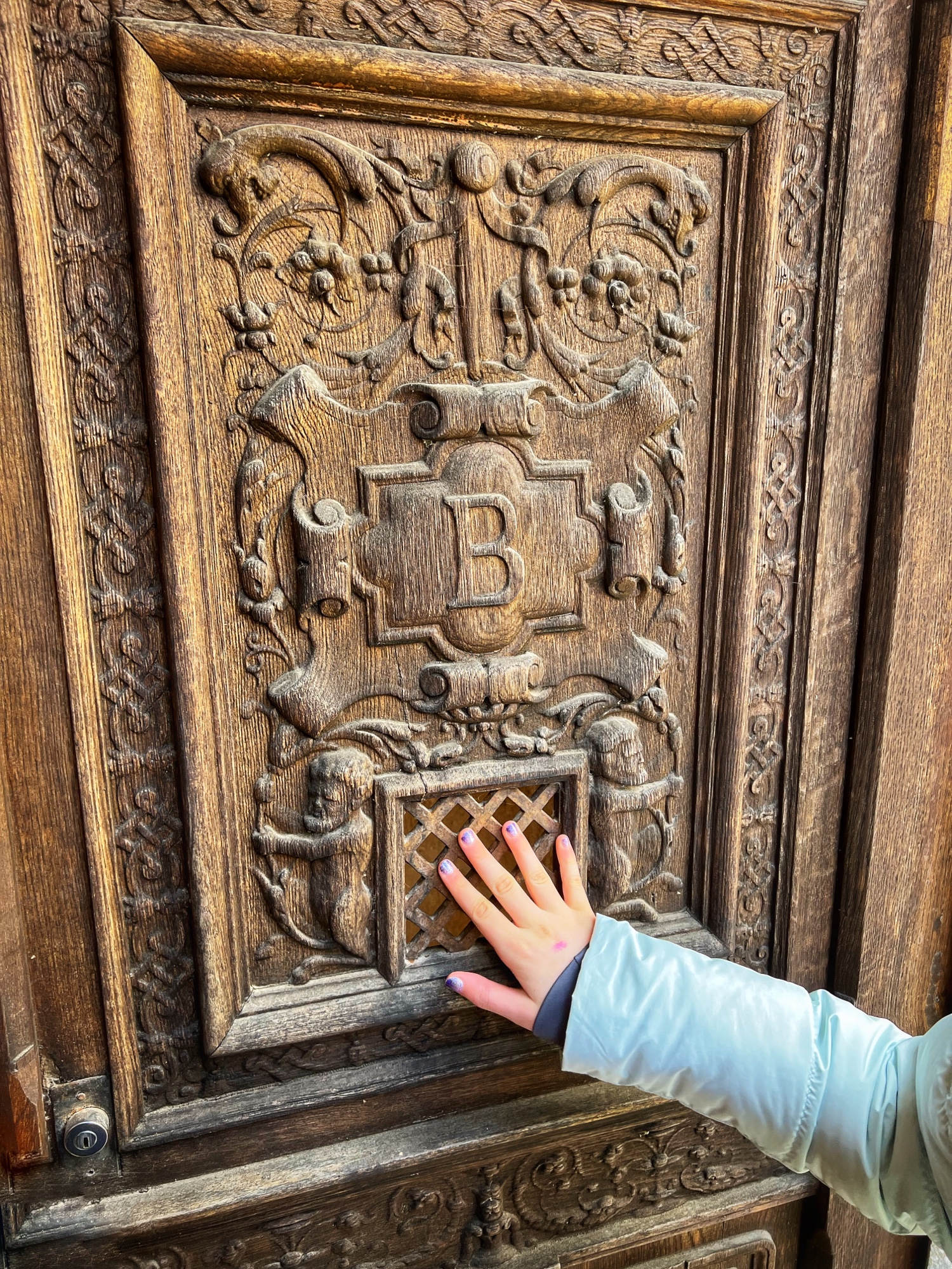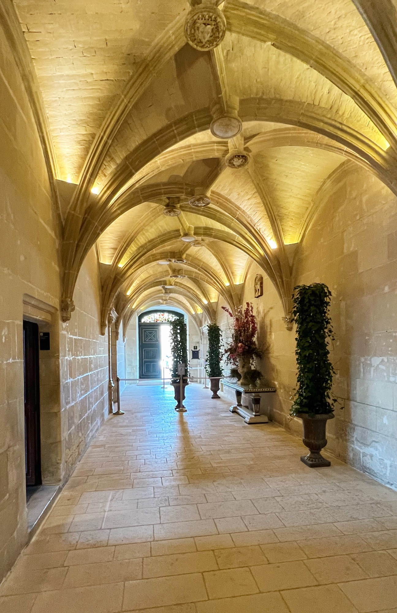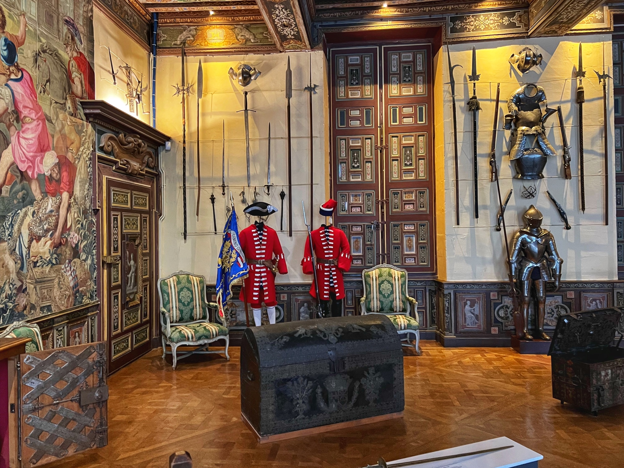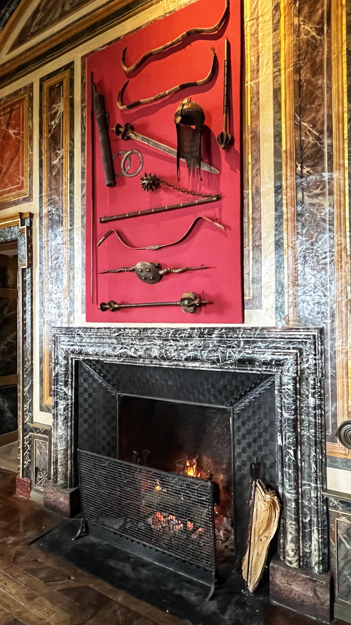 Right away we noticed the tapestries and carved wooden doorways. Also you can see the fire places do not have real fires in them as they are very careful to prevent accidents.