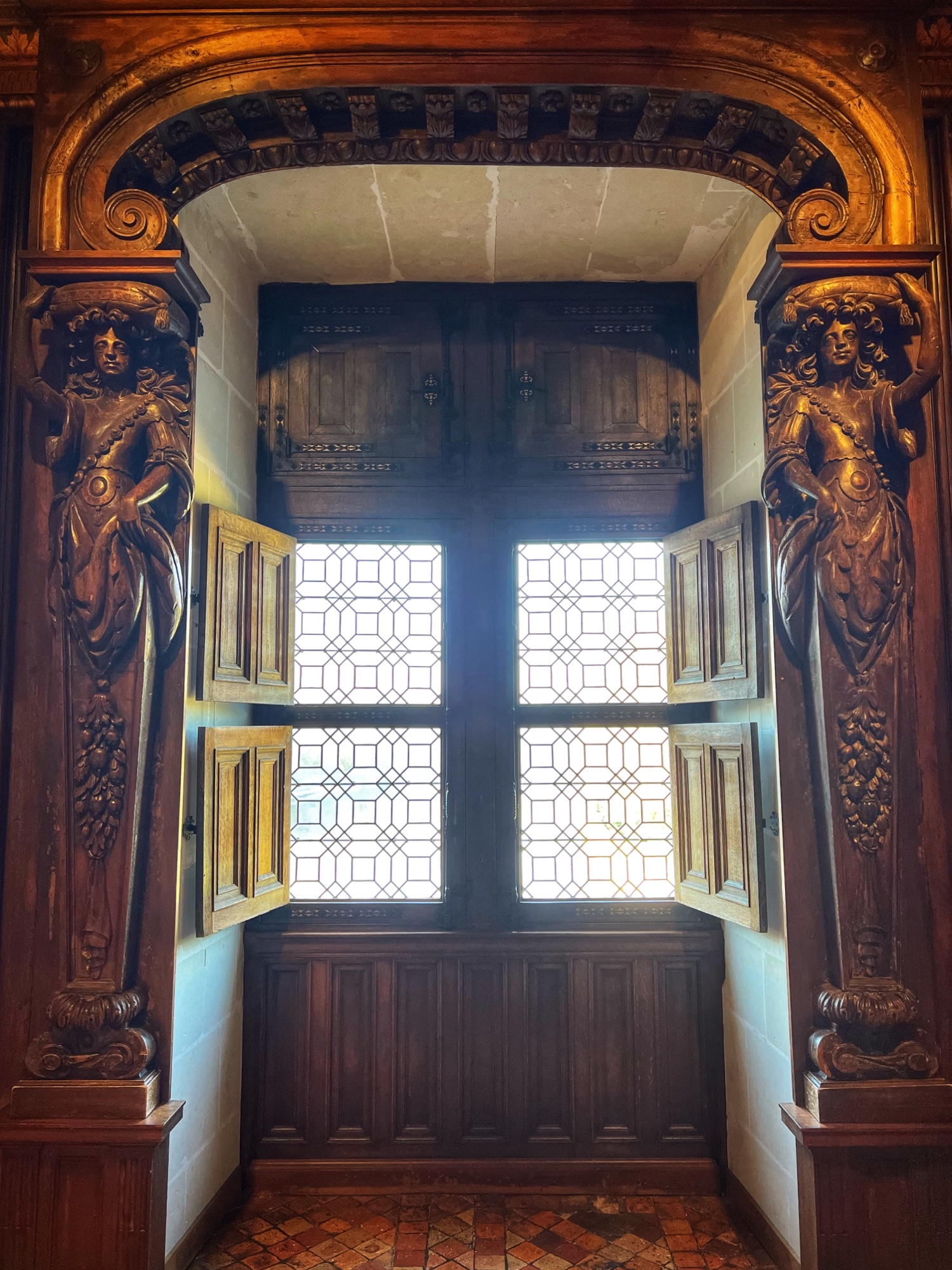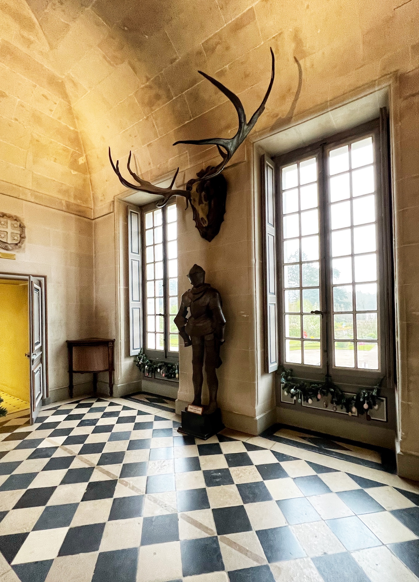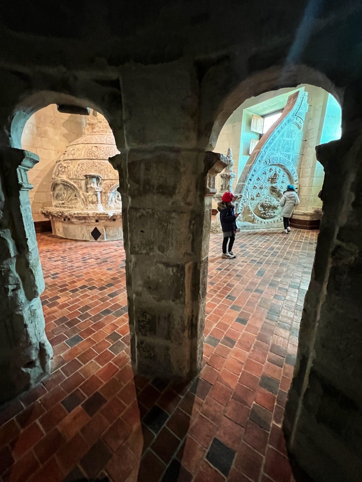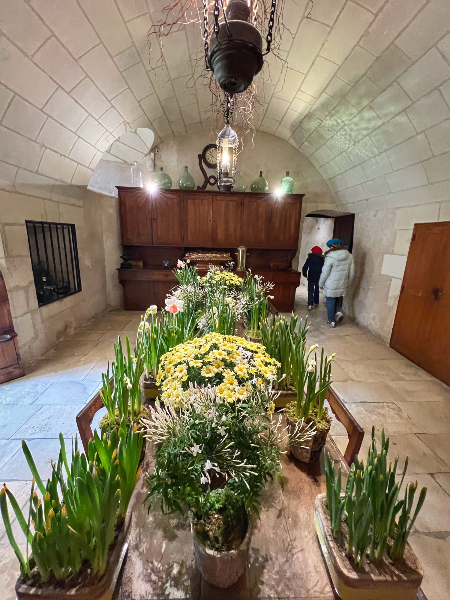 My absolute FAVORITE part of this castle is the series of kitchens. And I do mean series! This is not one big kitchen or a few rooms – it is the entire downstairs of two huge pillars that form the base of the bridge that reaches across the River cher. Pantry, dining area, larder, butchery, bridge, boat mooring area, baking and cooking areas, and all filled with light and beautiful arched ceilings. I could’ve spent hours down there and badly wanted to see it in action. All that copper…all those fresh flowers…all those wooden tables and hutches – such a dream! I’m sure at the time it felt more like a cave than a desirable “selling feature” but that didn’t stop me from drooling.
