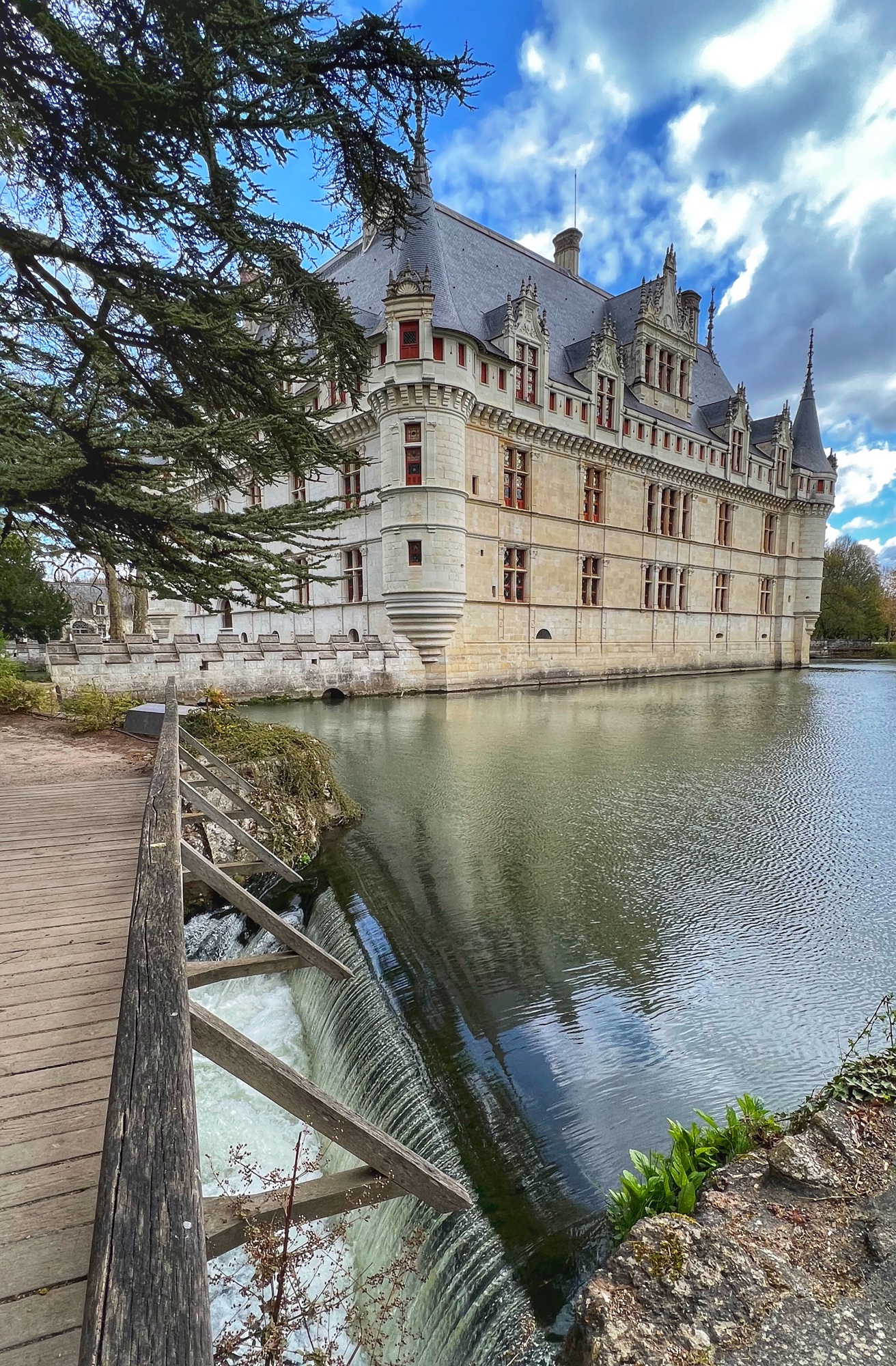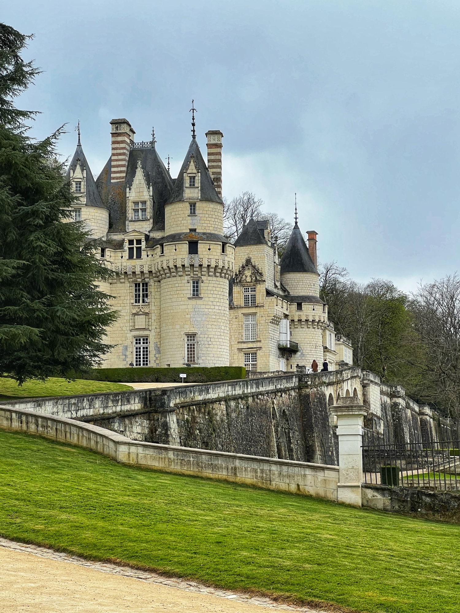 Outside the castle you can take a quick walk through the gardens. They aren’t immense like Villandry, but they are peaceful. There is a tiny waterfall, small bridge, and moat area. Also, look UP! There are two giant sequoias in the garden.