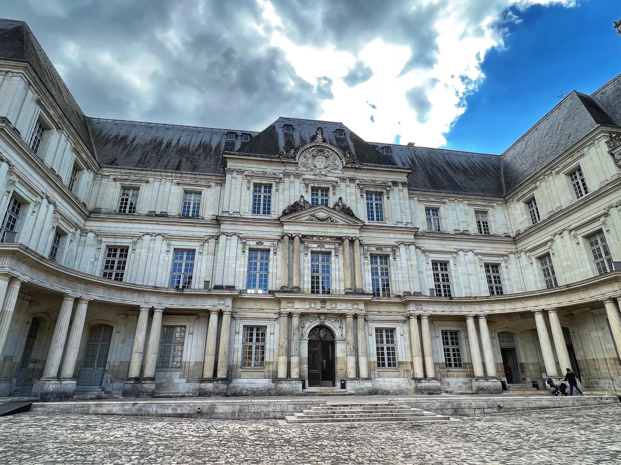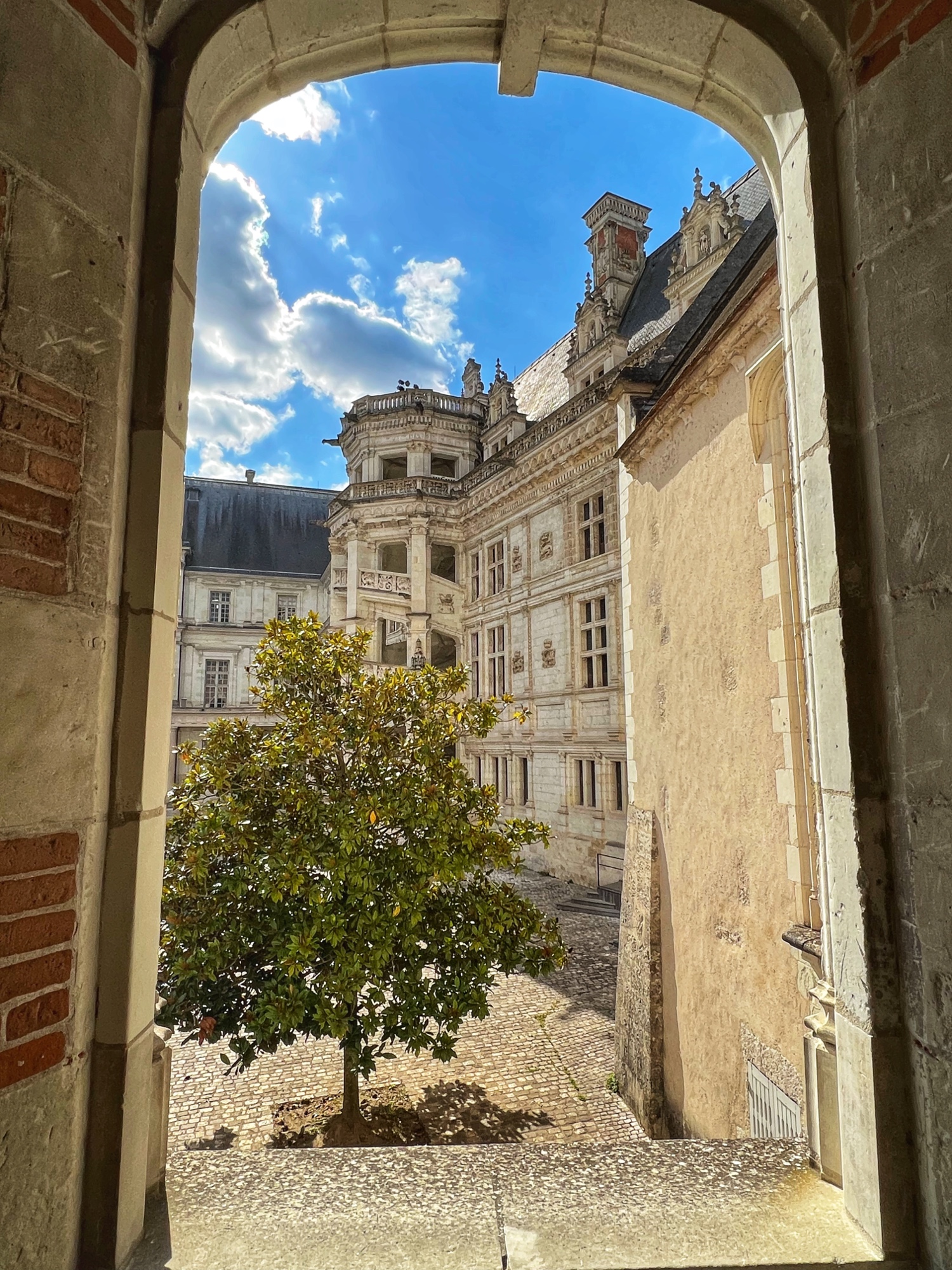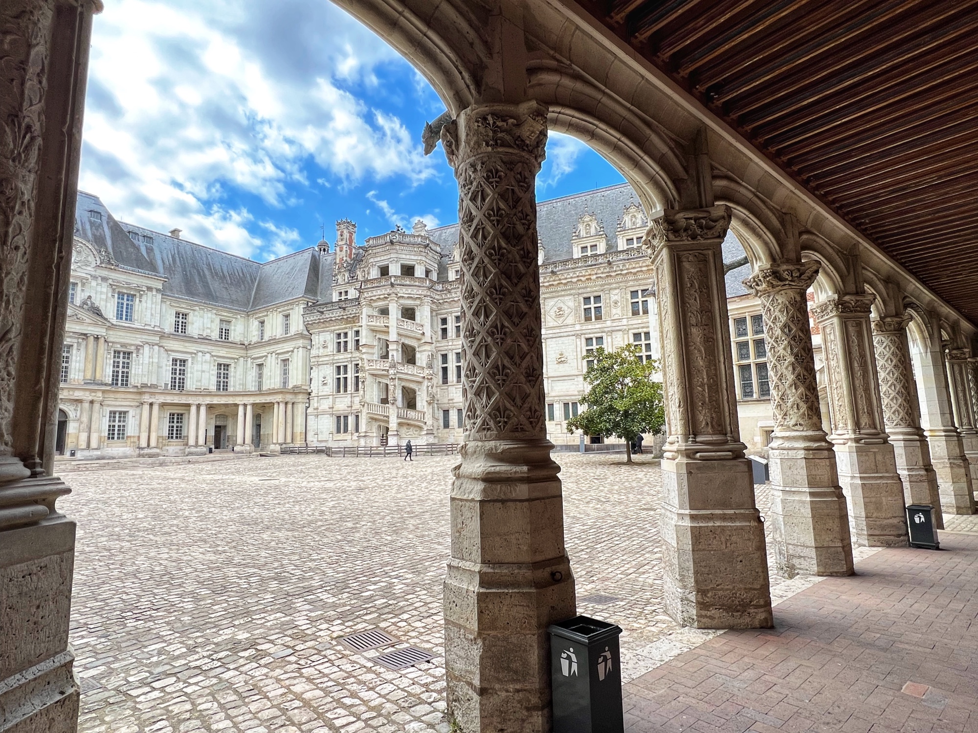Ground first broke in the 9th century, but the Gothic estate later built in the 13th century that still remains in the largest 13th century Gothic civilian room in France. In the late 15th and early 16th centuries, the Louis XII wing was added in “Flamboyant” style. Shorty after, the Francois I wing was added in traditional Renaissance style, including the famous staircase that is similar to those at Chambord. Finally, in the mid 17th century, Gaston d’Orléons added a Classicism wing but it was never finished; he was next in line to the throne after his brother King Louis XIII, but then little Louis the XIV was born and his aspirations and funds went right out the window. (We all know how Louis the XIV ended up…)