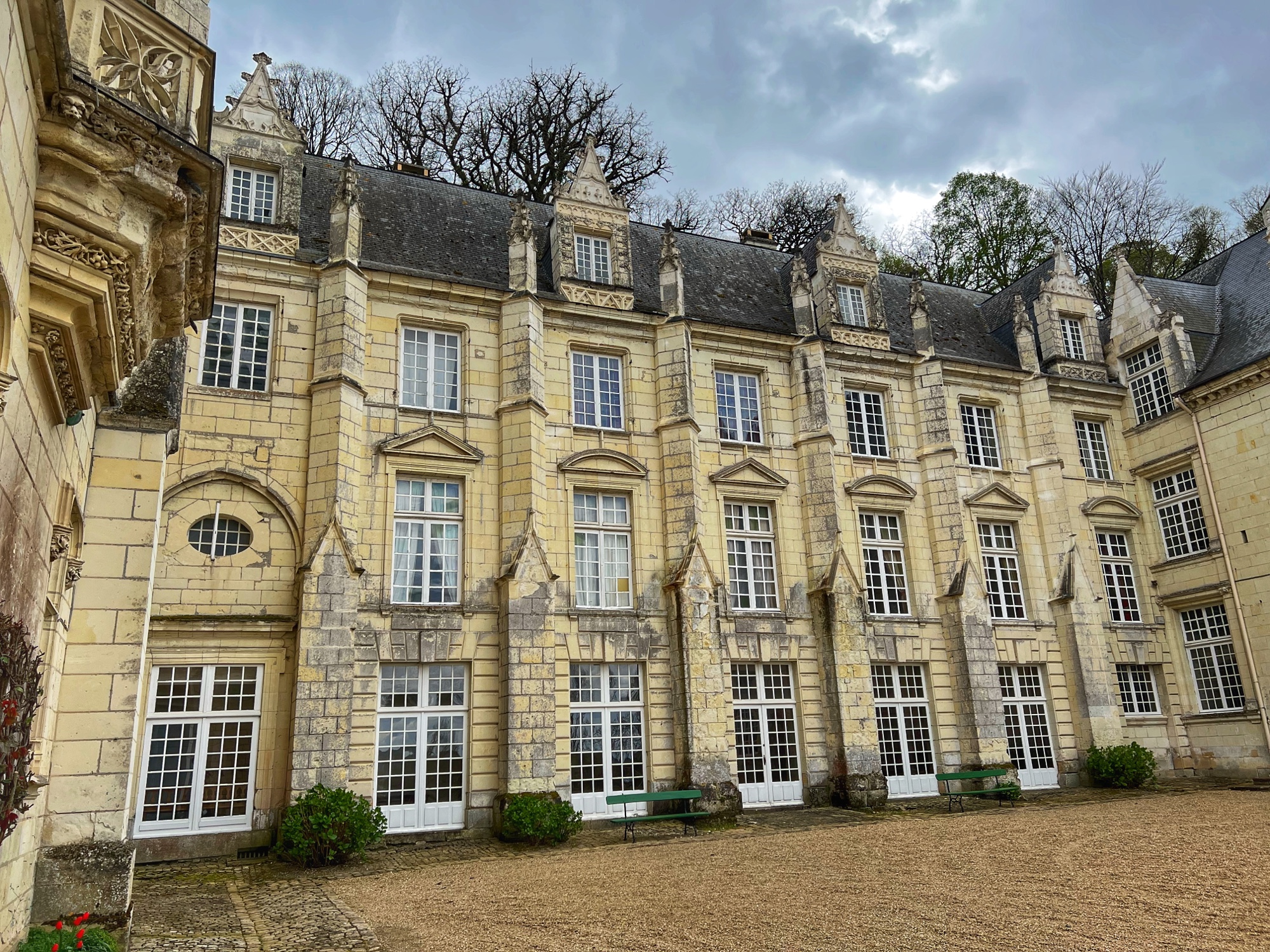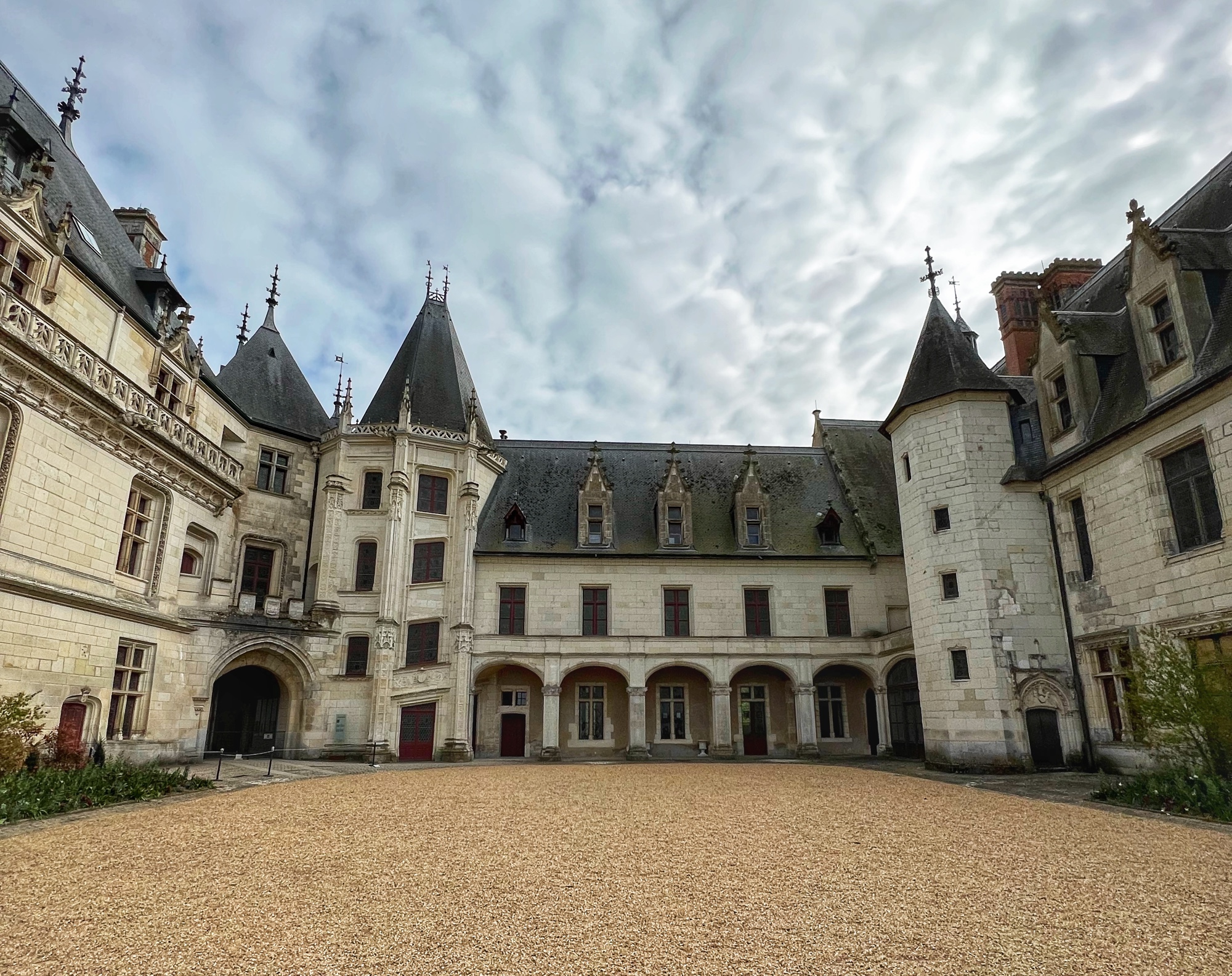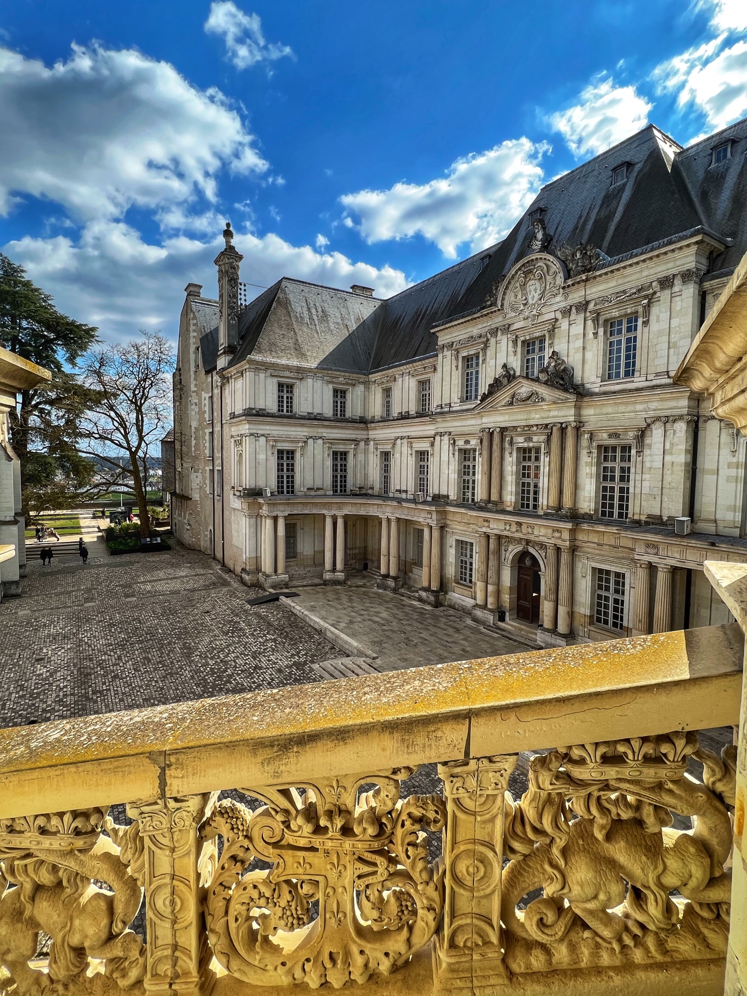 Ground first broke in the 9th century, but the Gothic estate later built in the 13th century that still remains in the largest 13th century Gothic civilian room in France. In the late 15th and early 16th centuries, the Louis XII wing was added in “Flamboyant” style. Shorty after, the Francois I wing was added in traditional Renaissance style, including the famous staircase that is similar to those at Chambord. Finally, in the mid 17th century, Gaston d’Orléons added a Classicism wing but it was never finished; he was next in line to the throne after his brother King Louis XIII, but then little Louis the XIV was born and his aspirations and funds went right out the window. (We all know how Louis the XIV ended up…)