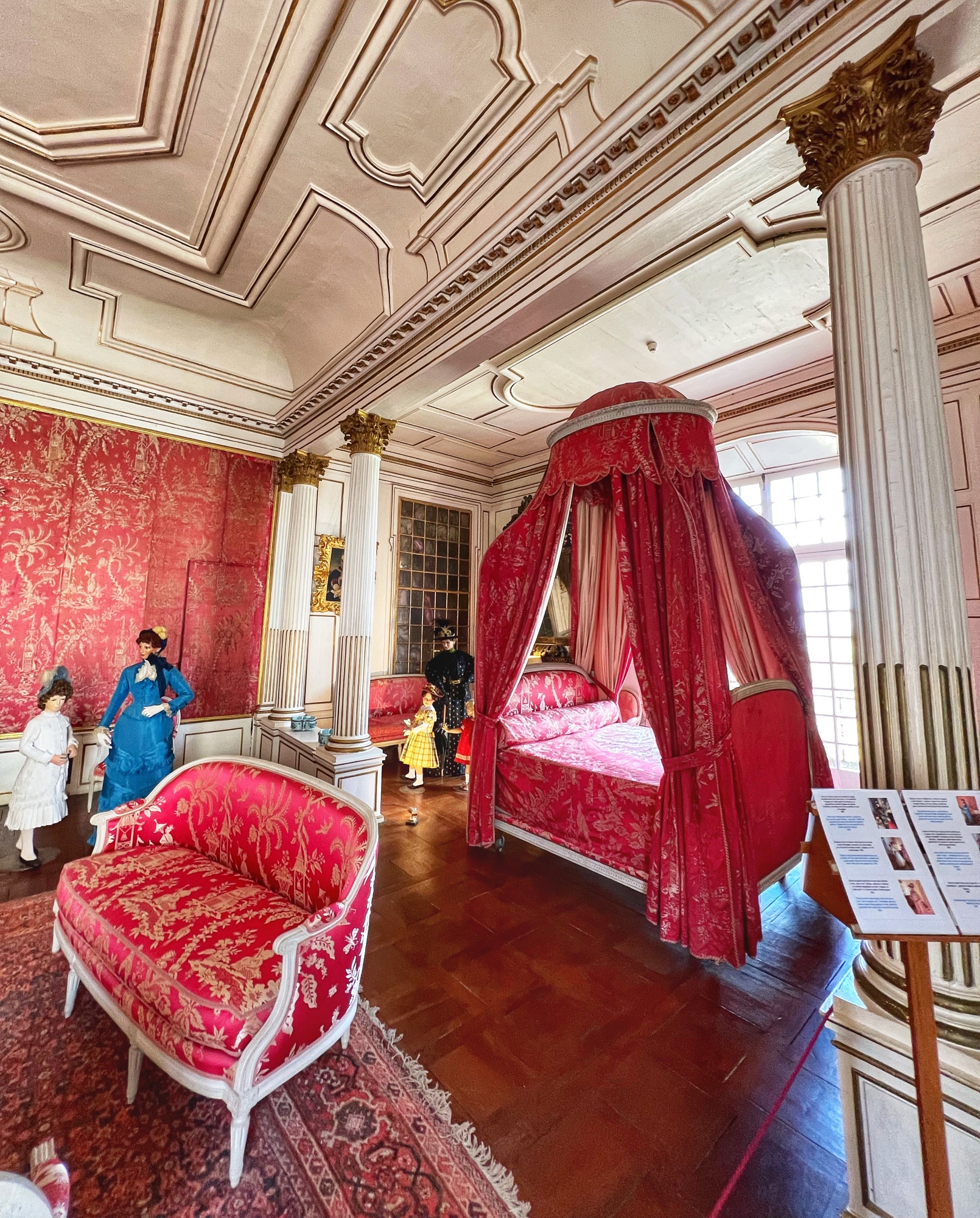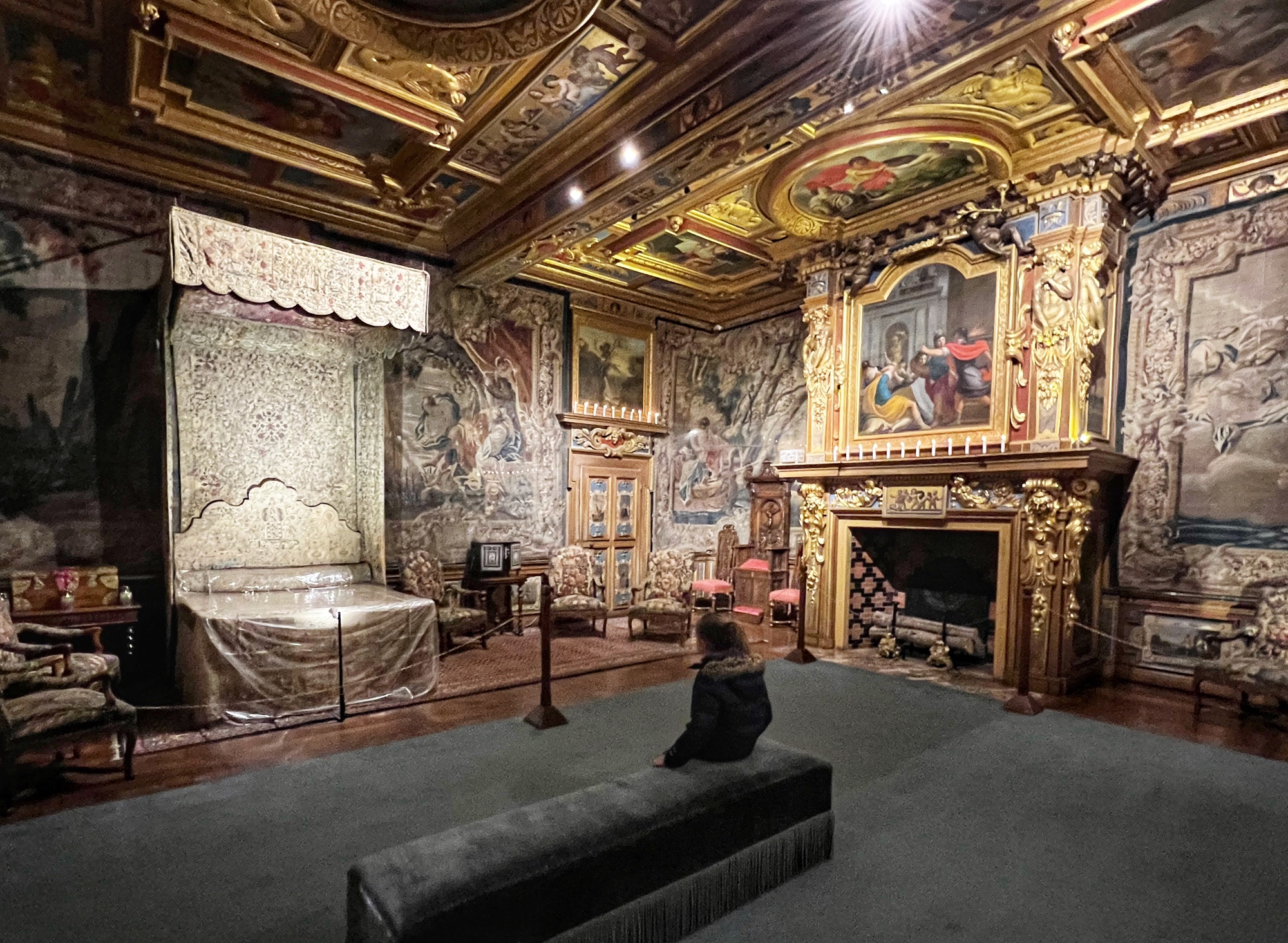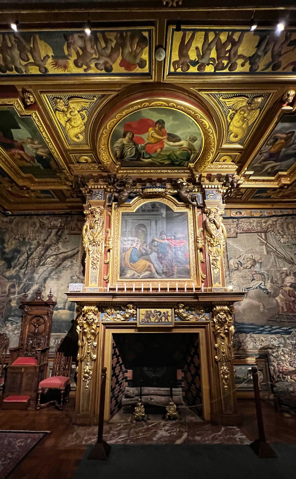 I was joking as we went through these opulent rooms that they got the fireplace mantel ideas from my house … HA! Imagine – just look at how fancy and detailed these sculpted furnishings are. And don’t forget to look up! The ceiling is ornamental, too…