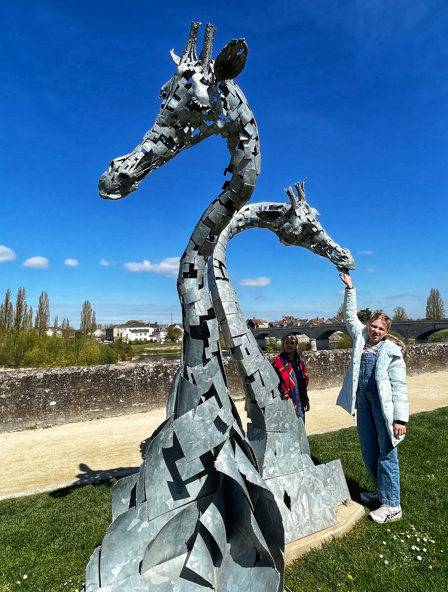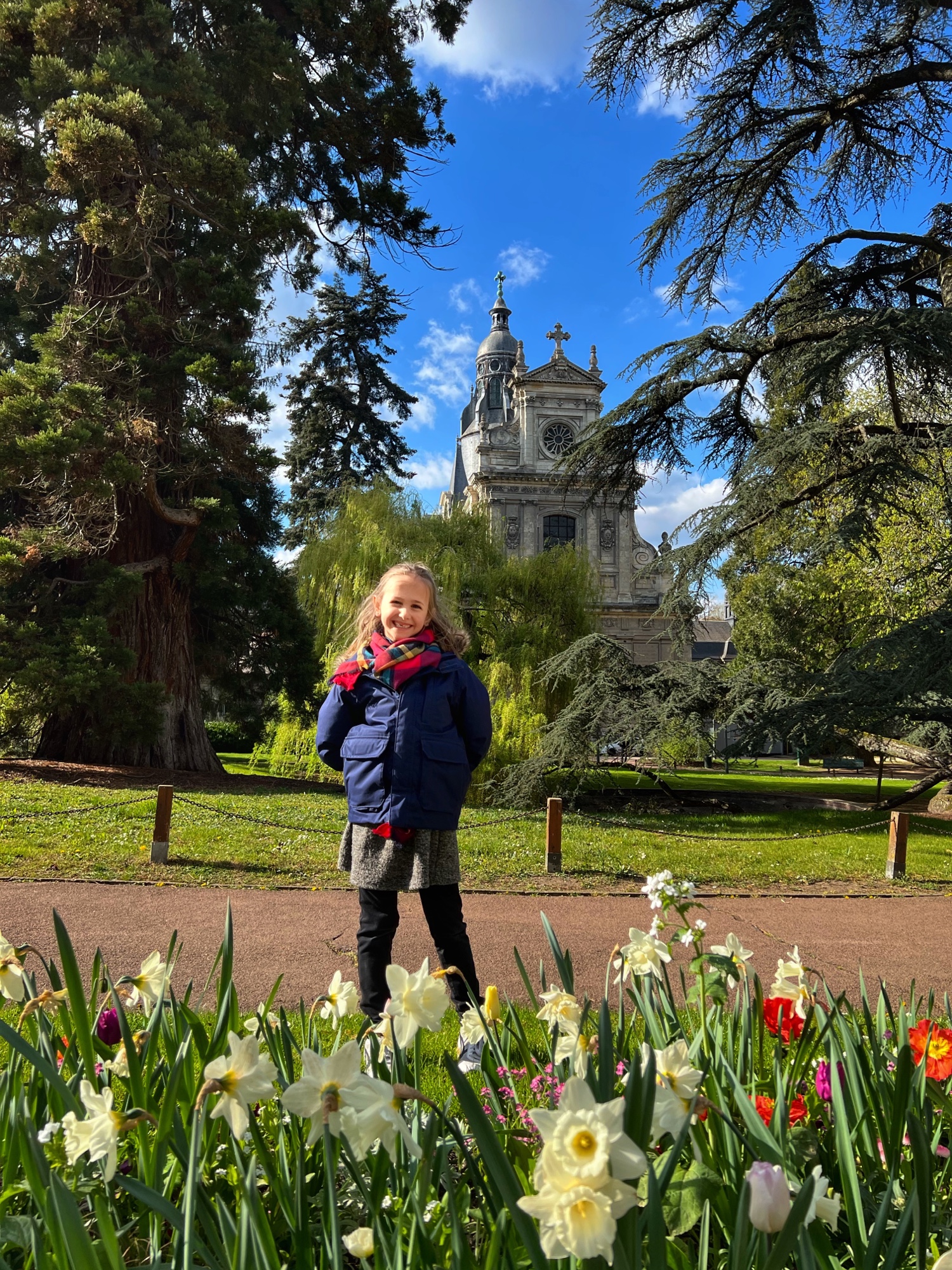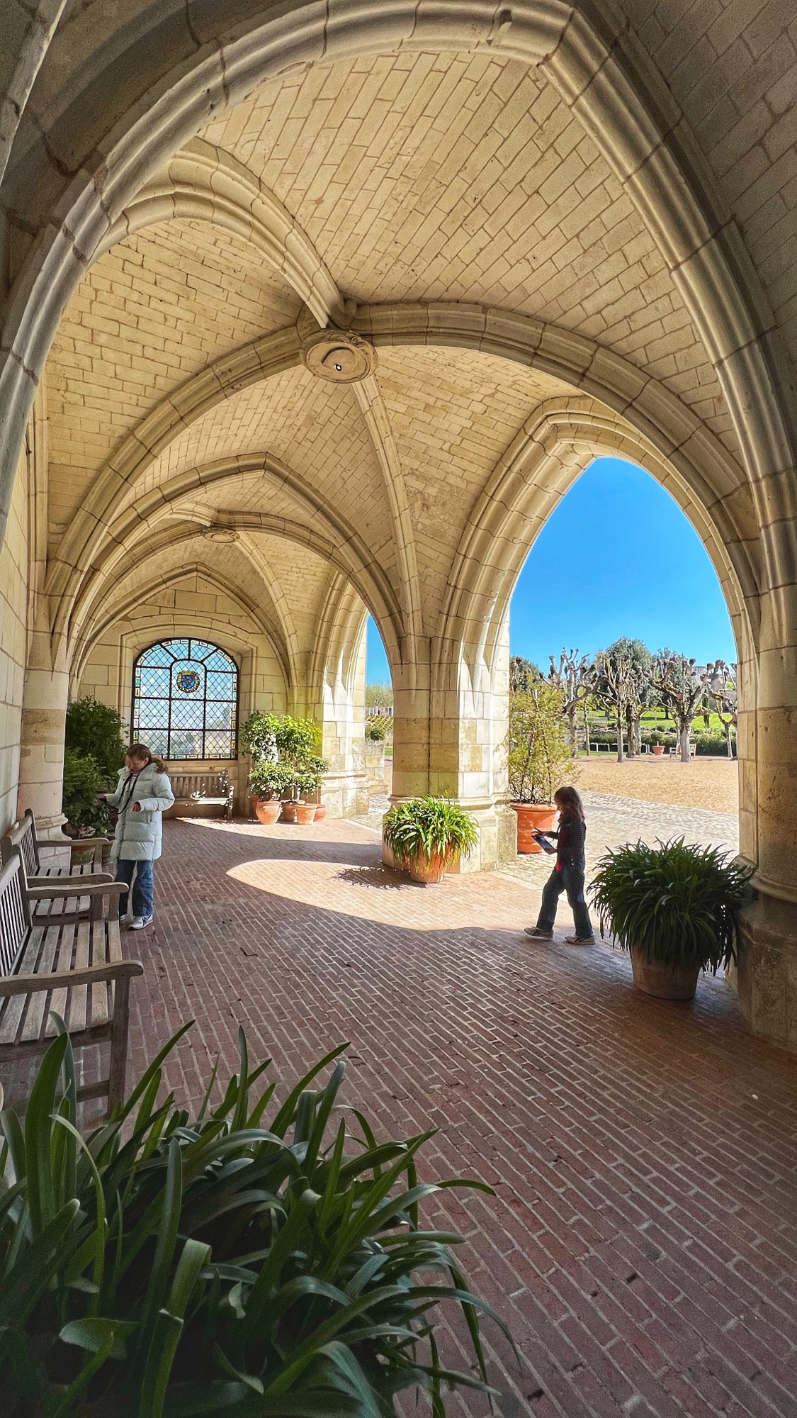 The most unique part of Amboise is the huge and ingenious spiral cavalier ramp that was used to trek carriages and horses up to the castle terraces from down in the town. The girls galloped up and down the ramp like horses! Outside there is a beautiful garden overlooking the river and town. It is simple and not flowering, but lovely nevertheless.