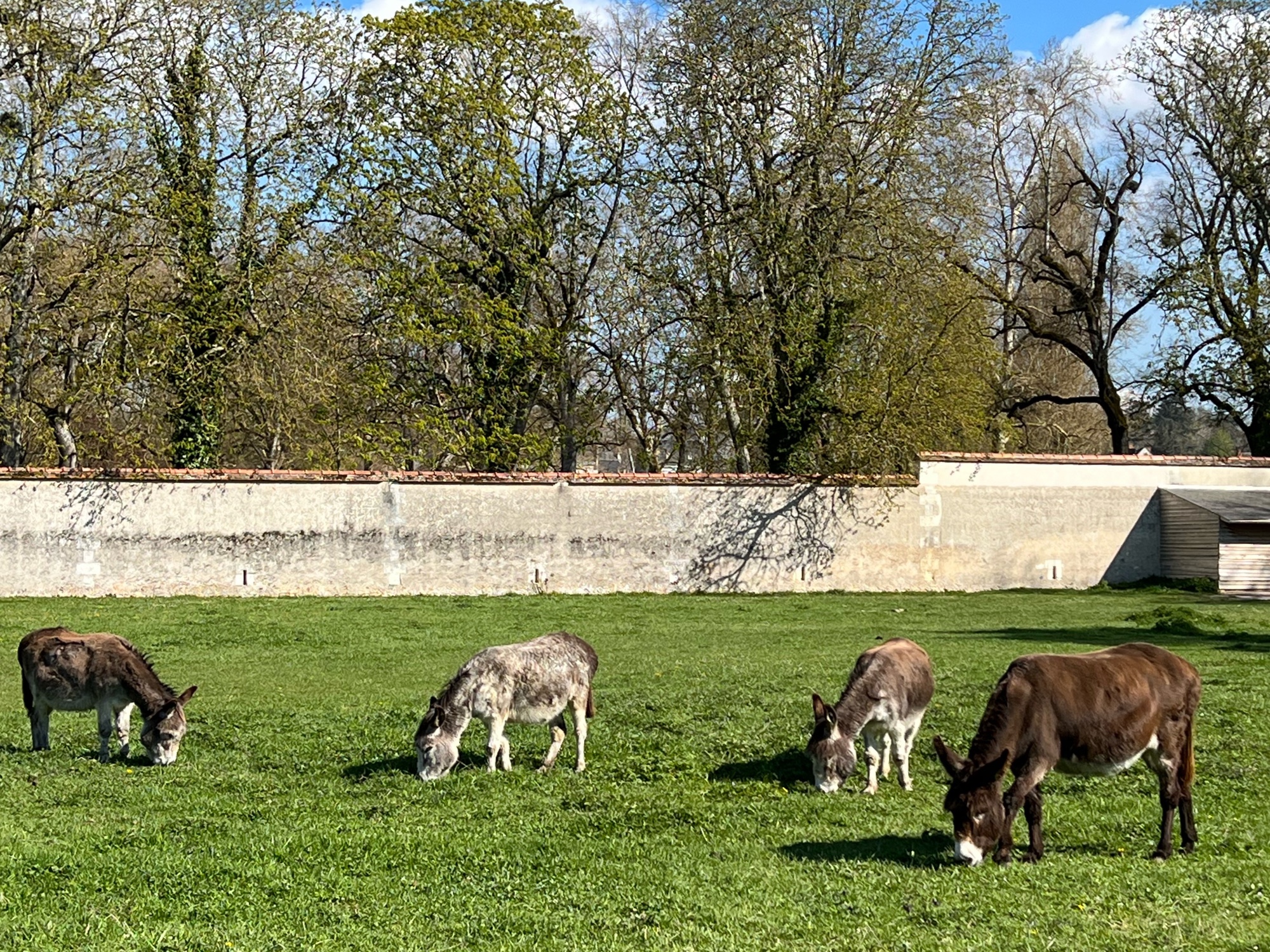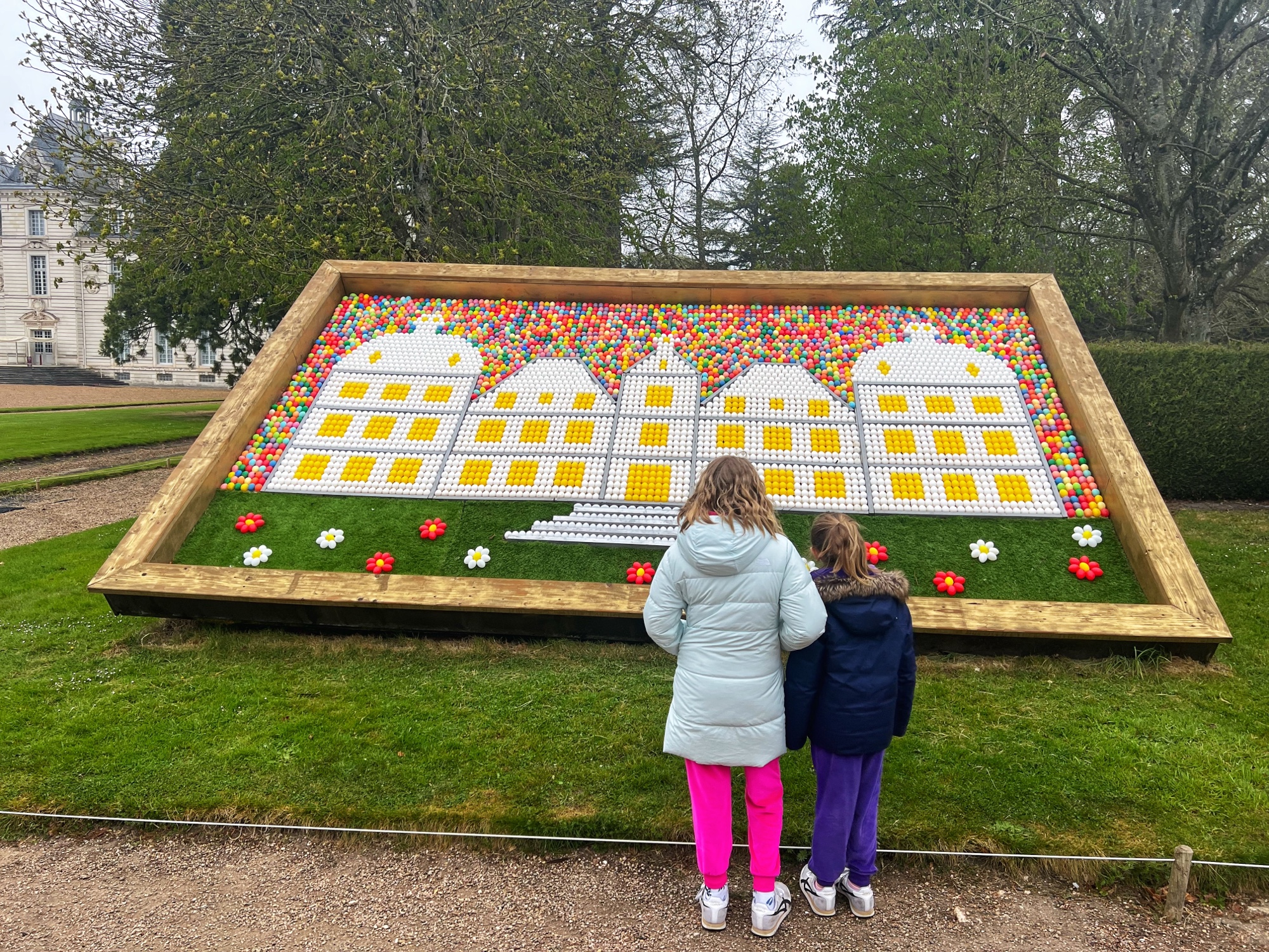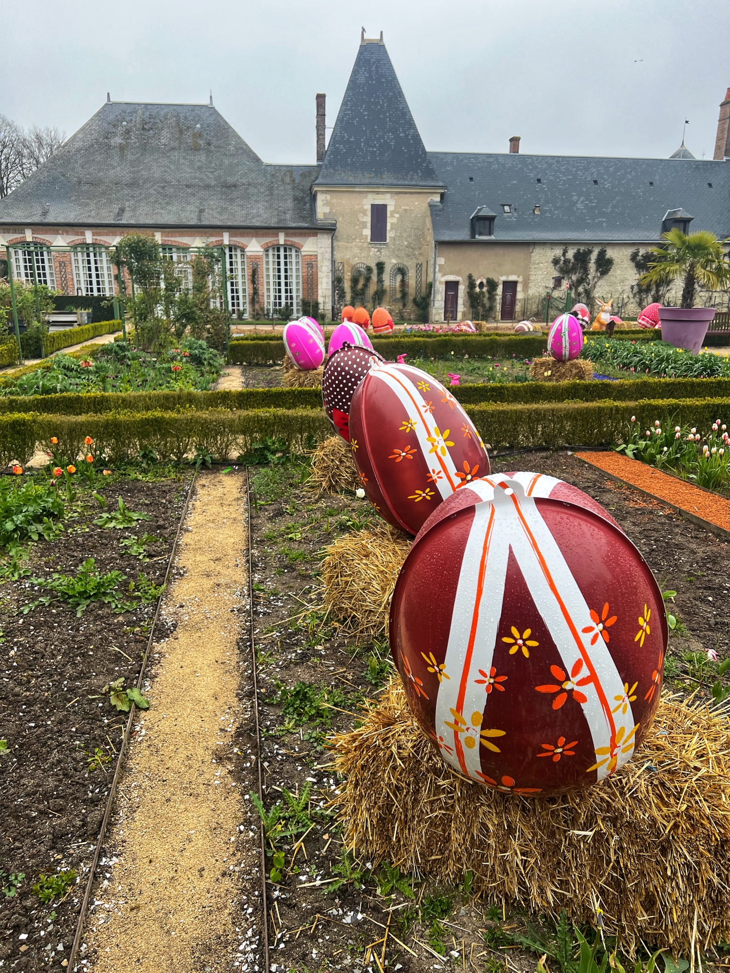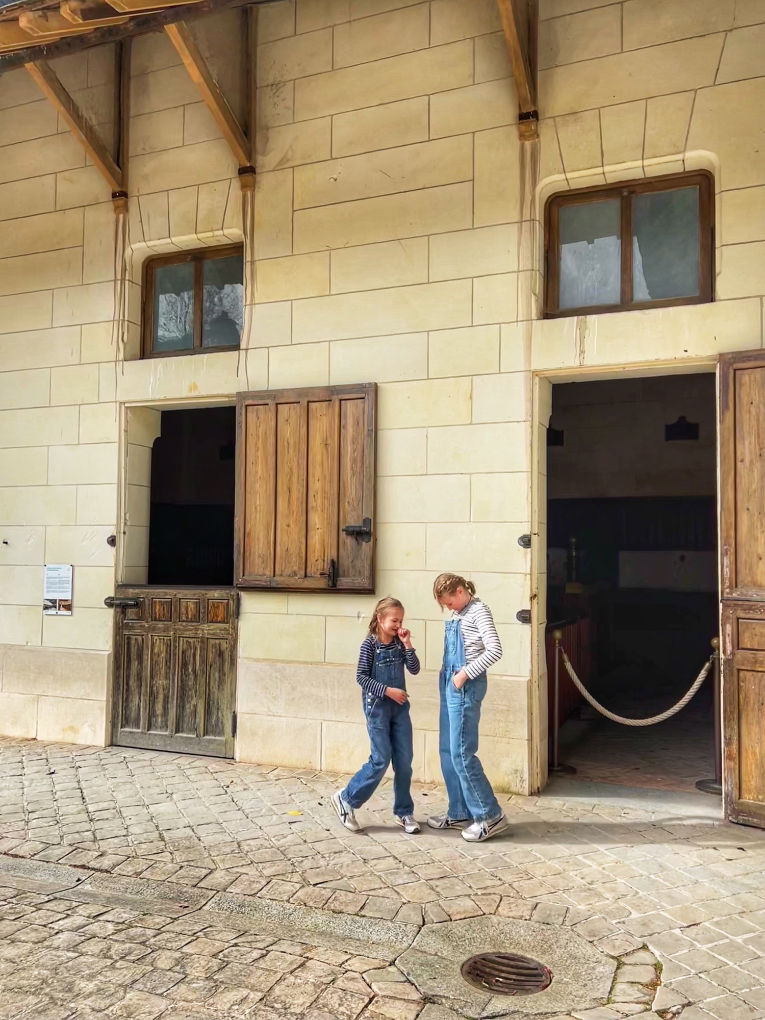 Finally we made it to the maze! The girls raced through it and even lost a beret – but we were able to retrace steps and find it. What an adventure! On the other side of the maze are the Caryatids, a monumental pillar structure that once decorated the Château facade with ancient Greek gods. Next to the flower and vegetable gardens you can visit the donkeys. The girls loved them – they were pretty friendly. We also saw chickens and beehives here. It’s quite a lively place!