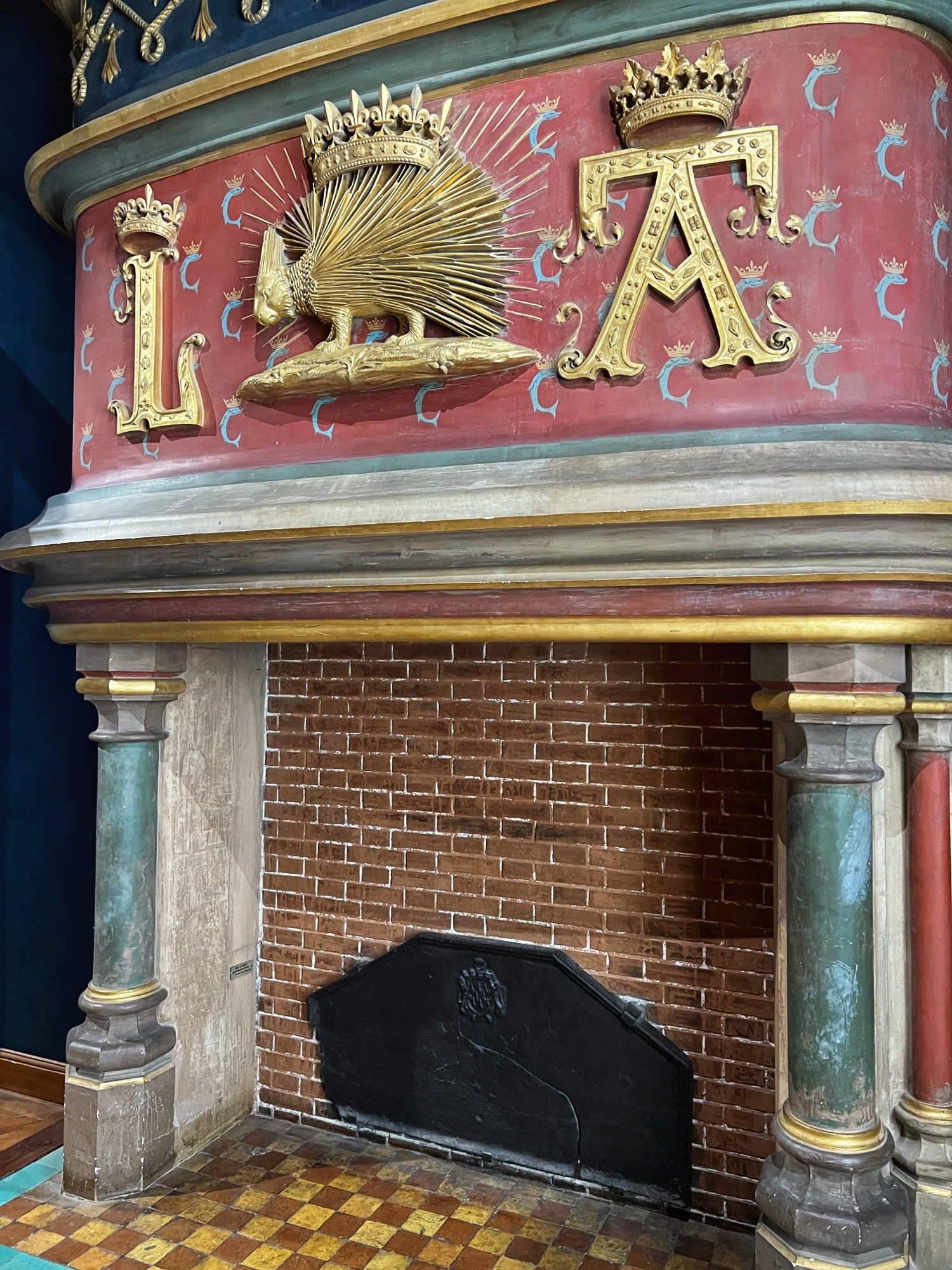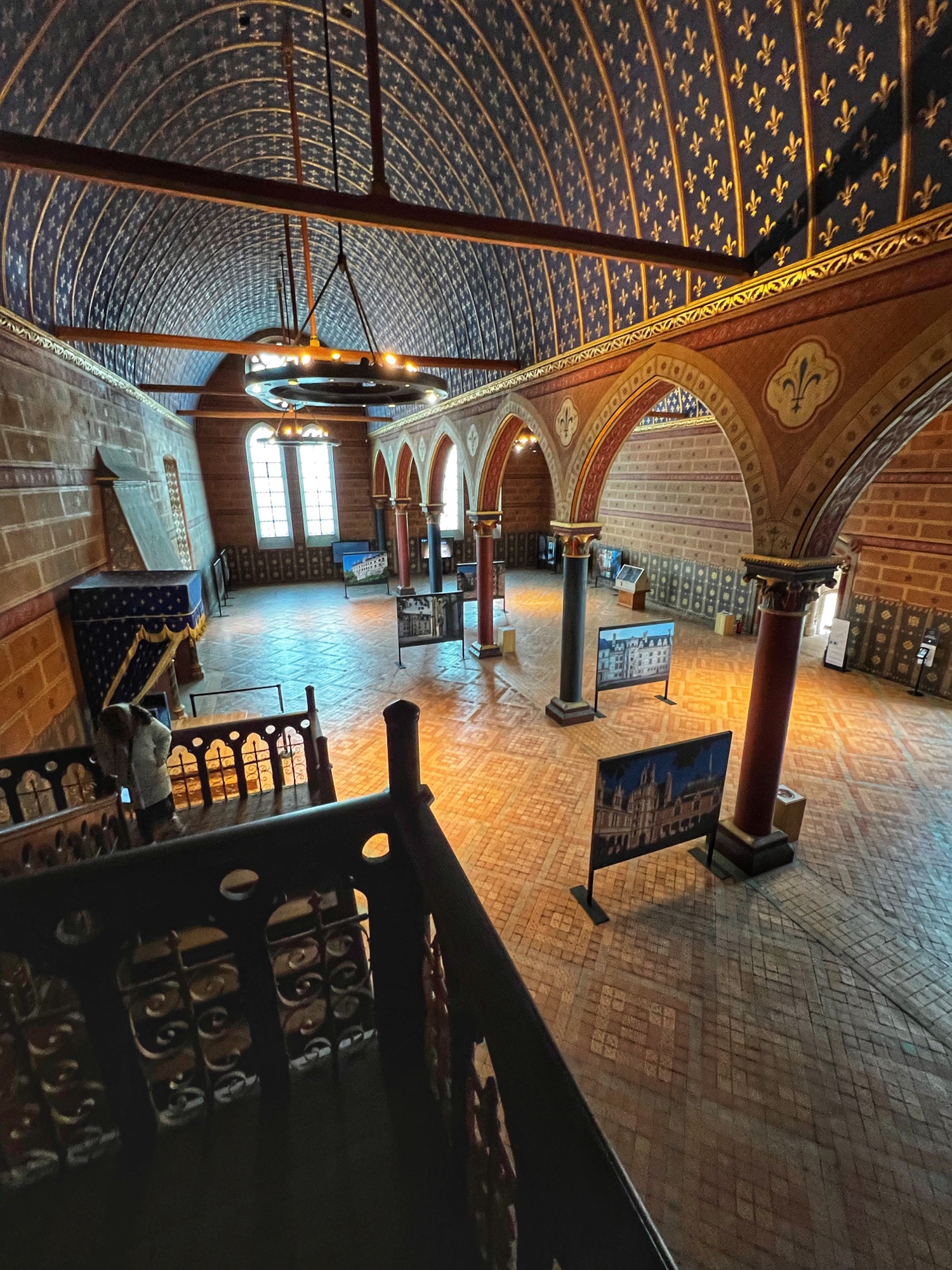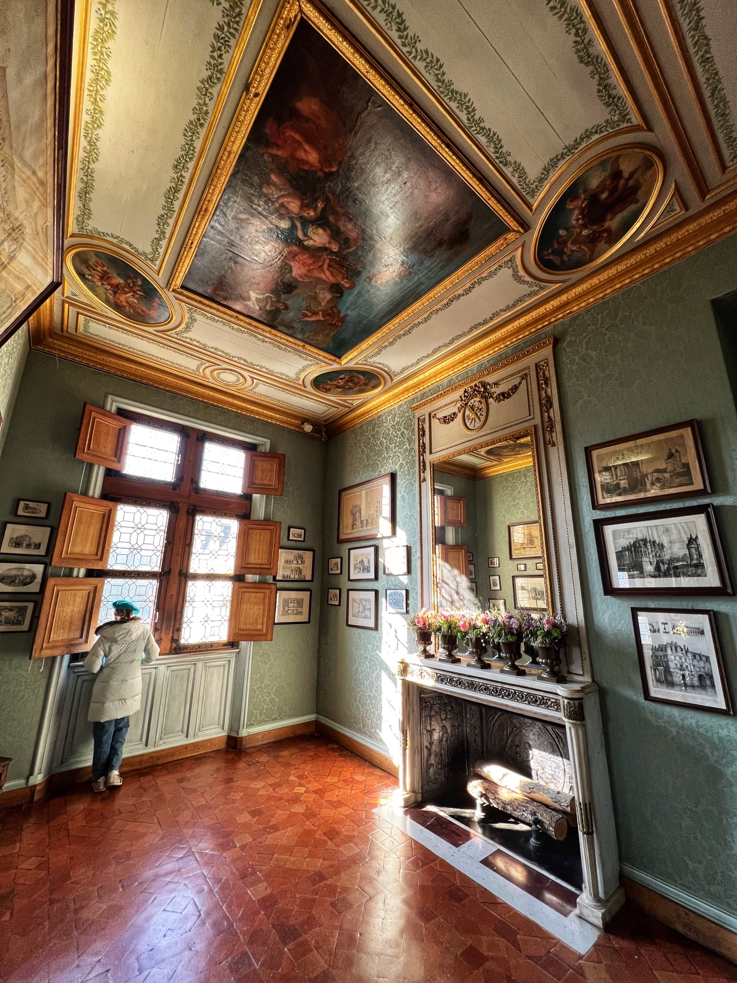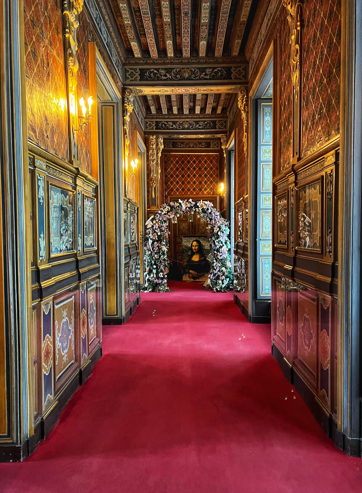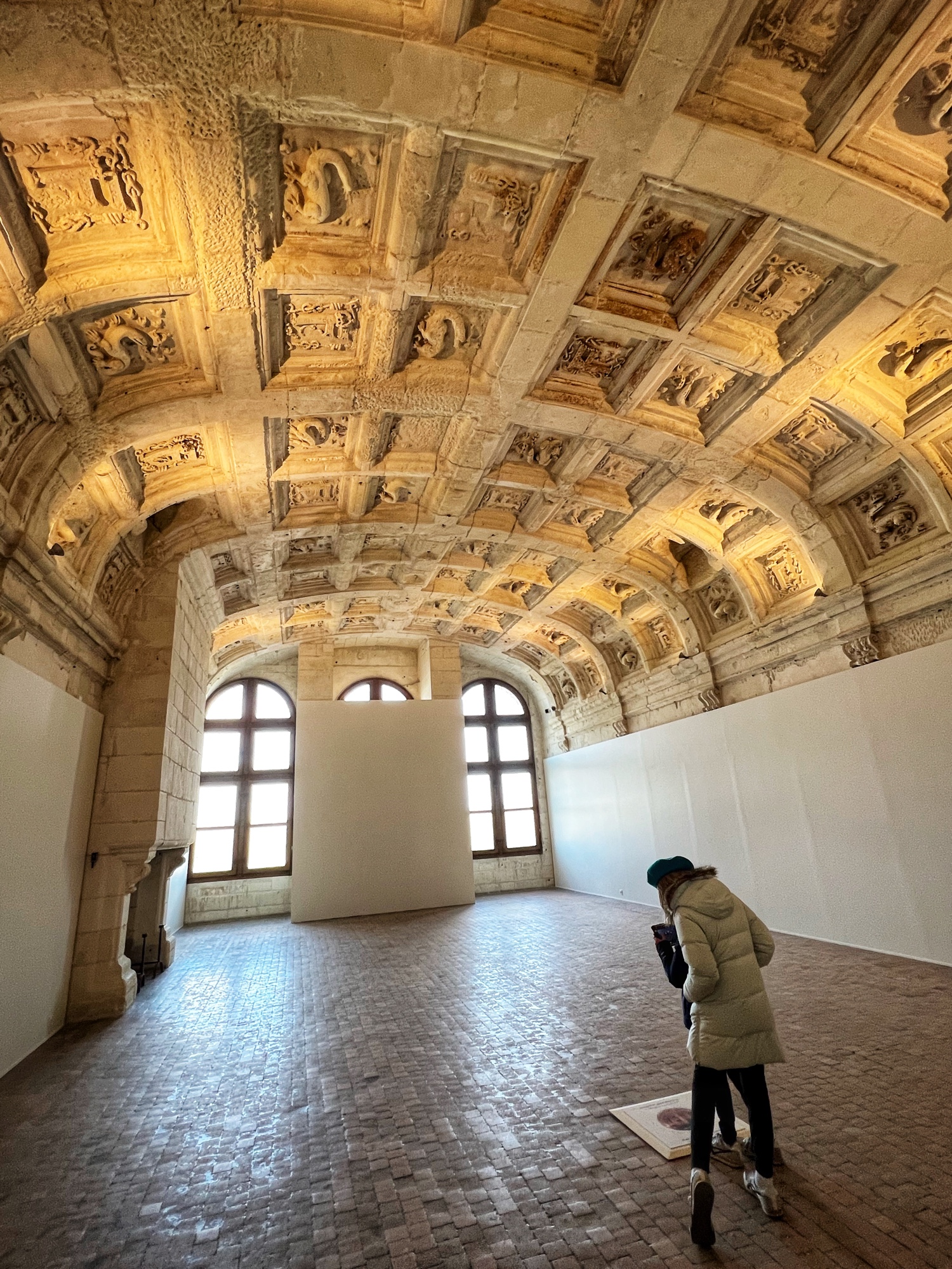 When exiting the central staircase, be sure to look up. The ceiling is adorned with the F for Francis the 1st (Premier) and his symbol, the salamander.