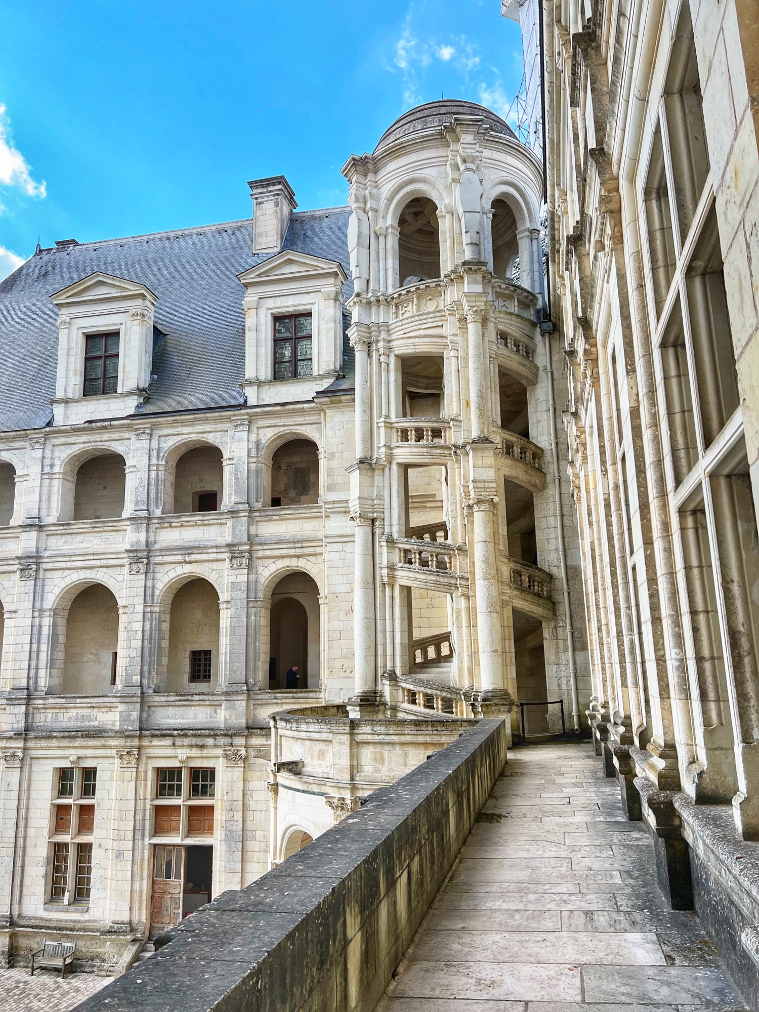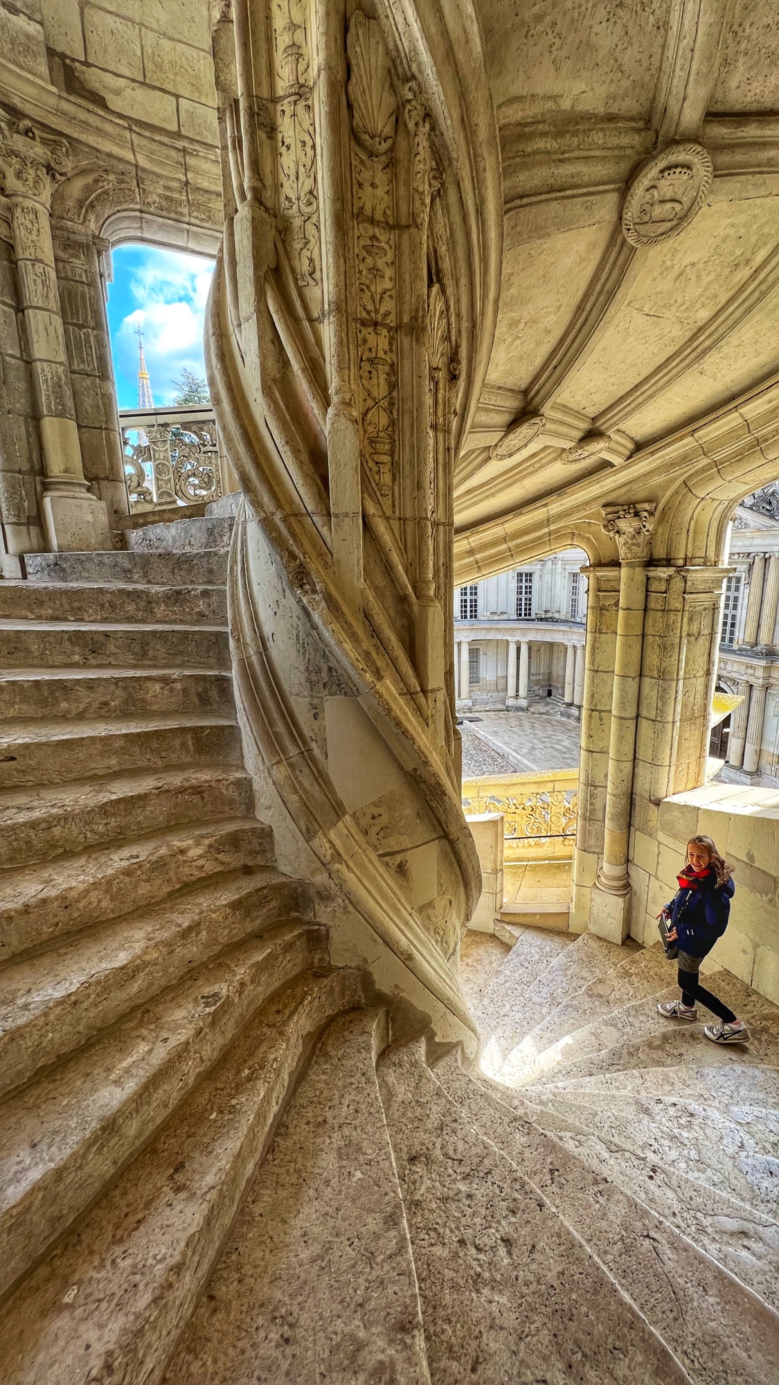 If you visit Chambord with someone, be sure to test out the staircase, walking up each side all the way to the top! You can peek through the windows on each level to see each other, and look all the way up the massive column from the bottom.