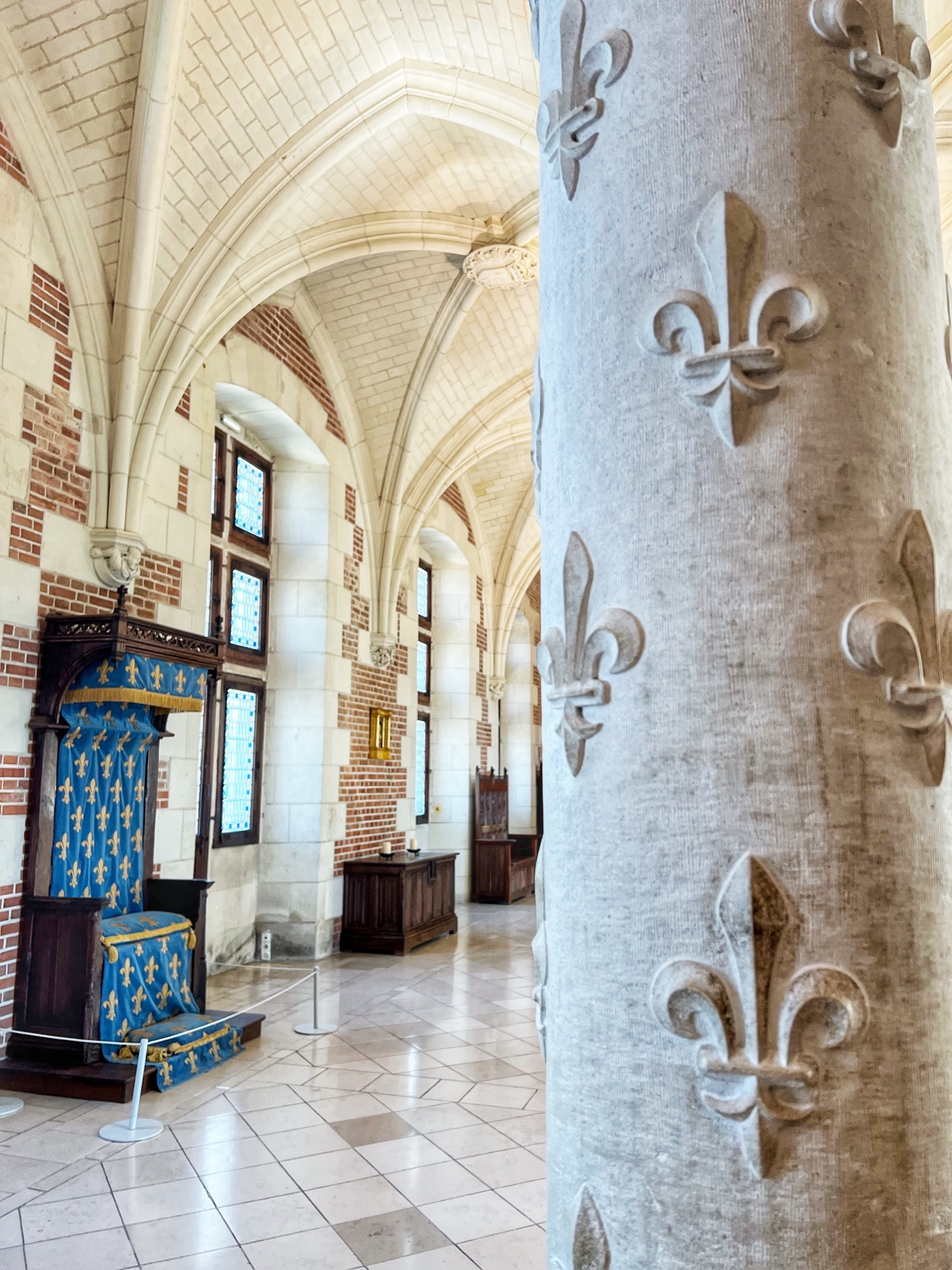 That said, Amboise deserves attention because of its history. The origins of Amboise fortress date back to the 9th century, but the château we see today was expanded in the 12th century, then eventually made its way into royal hands by the 1400s and was extensively renovated by a series of French kings over the next 200 years. As a palace of kings, many took up residence here including Louis XI, Charles VIII, Louis XII, Francois I (who was raised here – remember the salamanders in all the other castles?), and Henry II (and his wife Catherine de Medici) who raised their children here along with Mary Stuart, child Queen of Scotland who was betrothed to marry their son, Francois II. They married when Francis was only 15 years old just before his father died and he became king. He died of illness just 2 years later at age 17. His brother Charles IX then took over the throne (at age 10) and reigned for 14 years before dying of tuberculosis, and finally the youngest brother Henry III took the throne at age 23 and reigned 15 years before he was murdered in retaliation for assassinations orchestrated by Henry III during the French religious wars. What drama!