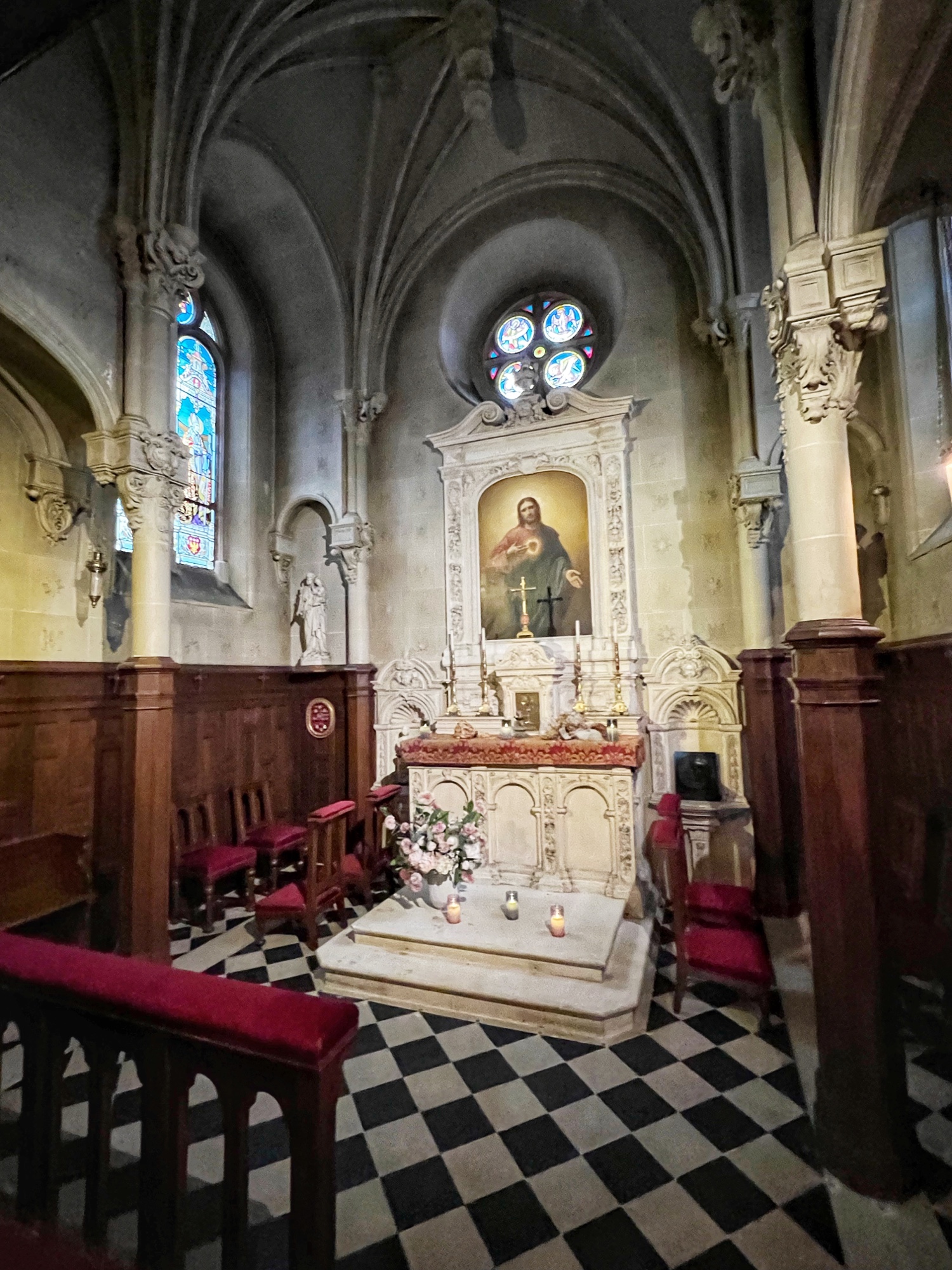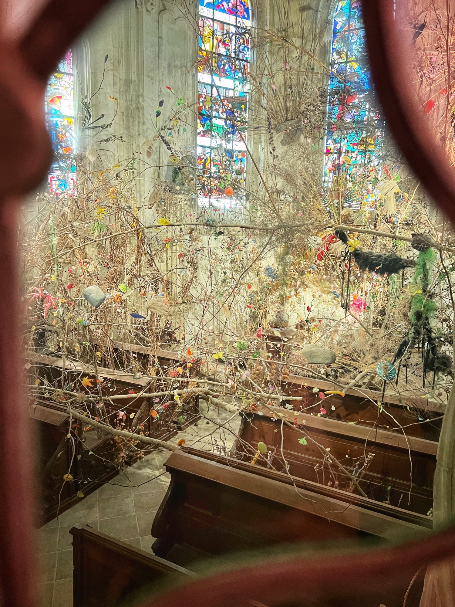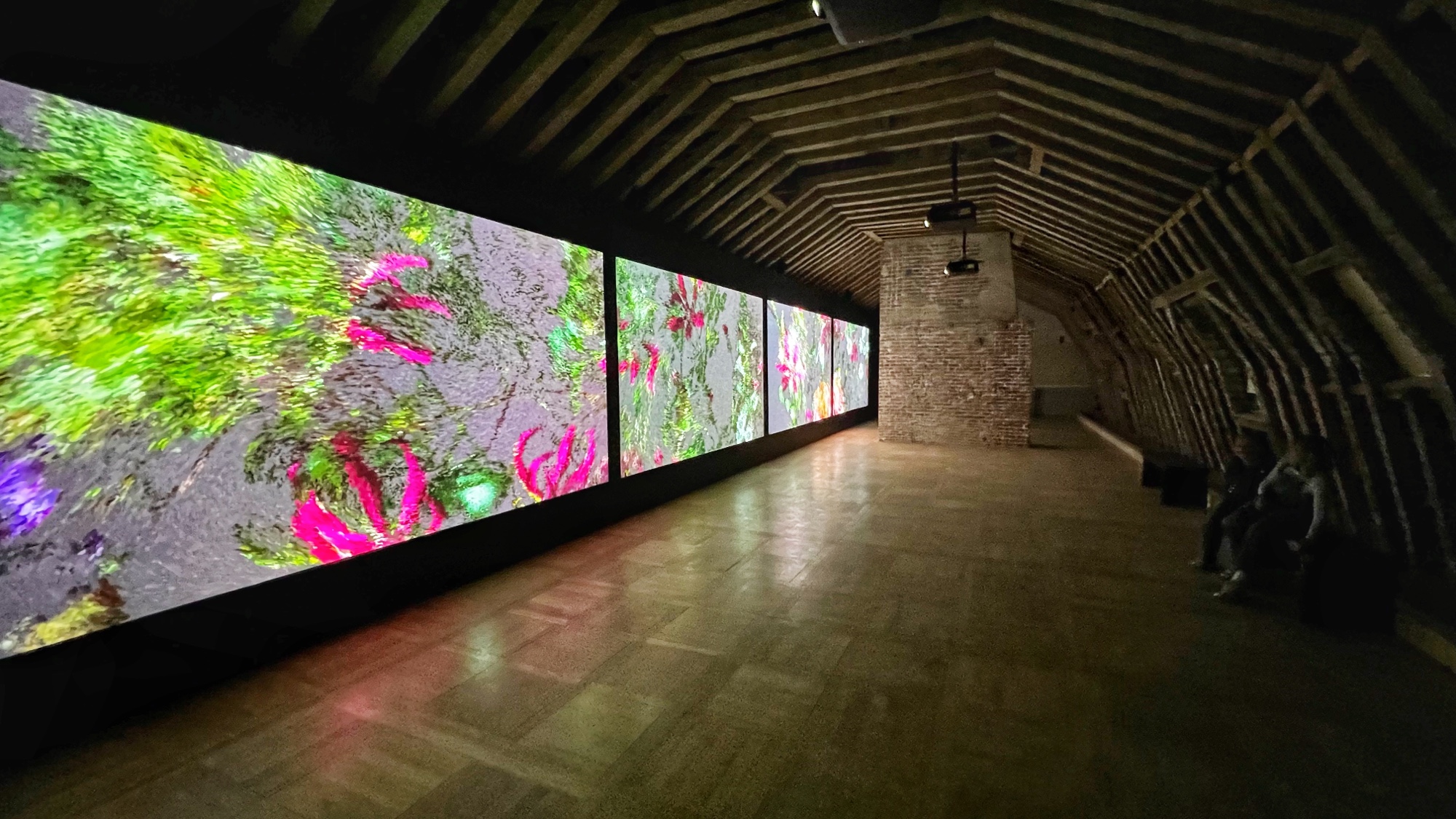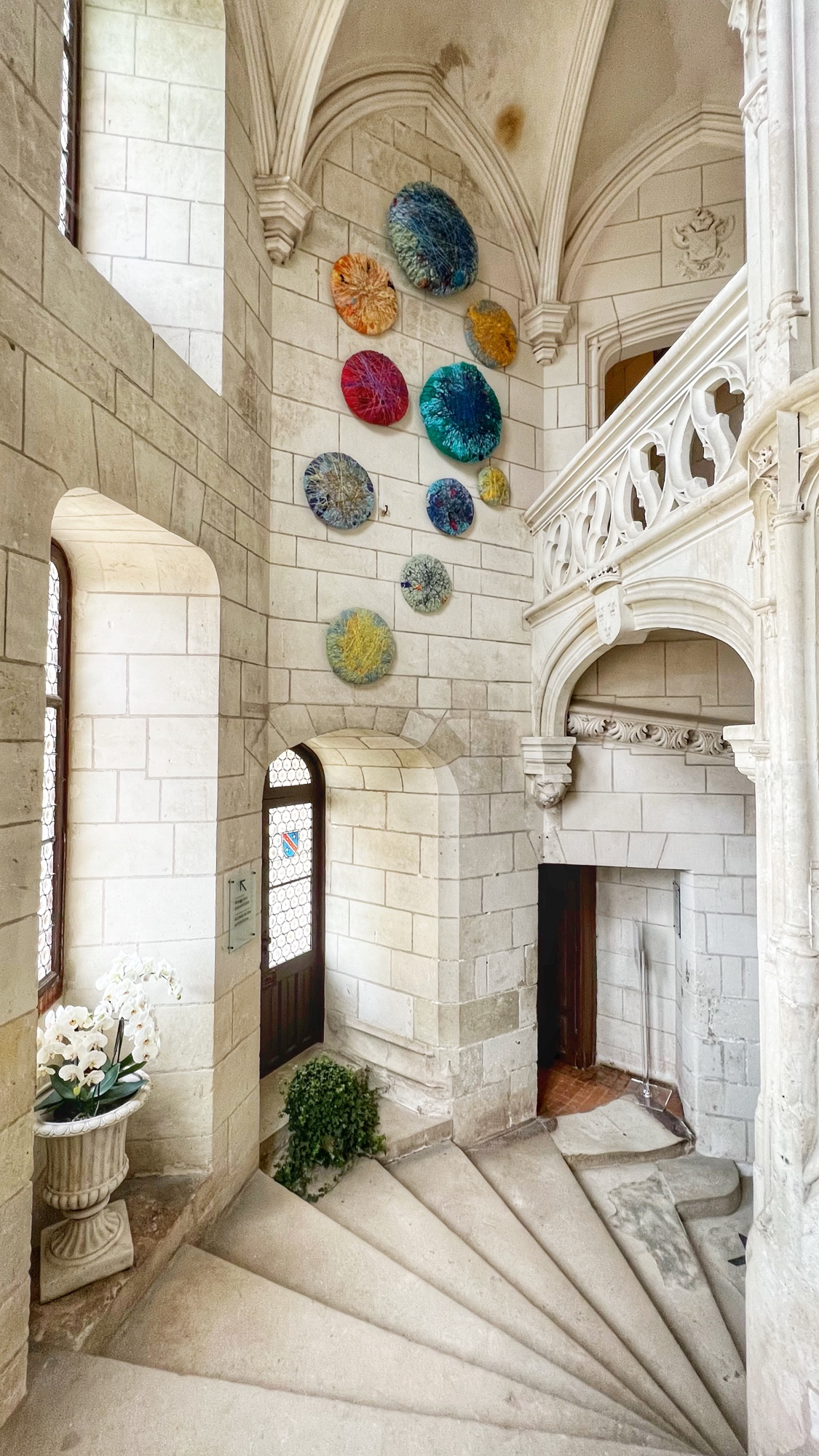 Inside the château we saw an art instillation inside the closed in chapel, and tons of art and furniture. The staircases were gorgeous too, adorned with unique art pieces as well. In the attic, a video display showcased pointillism trees and a vision for impressionist art inspired by flowers that spanned an entire room. So cool!