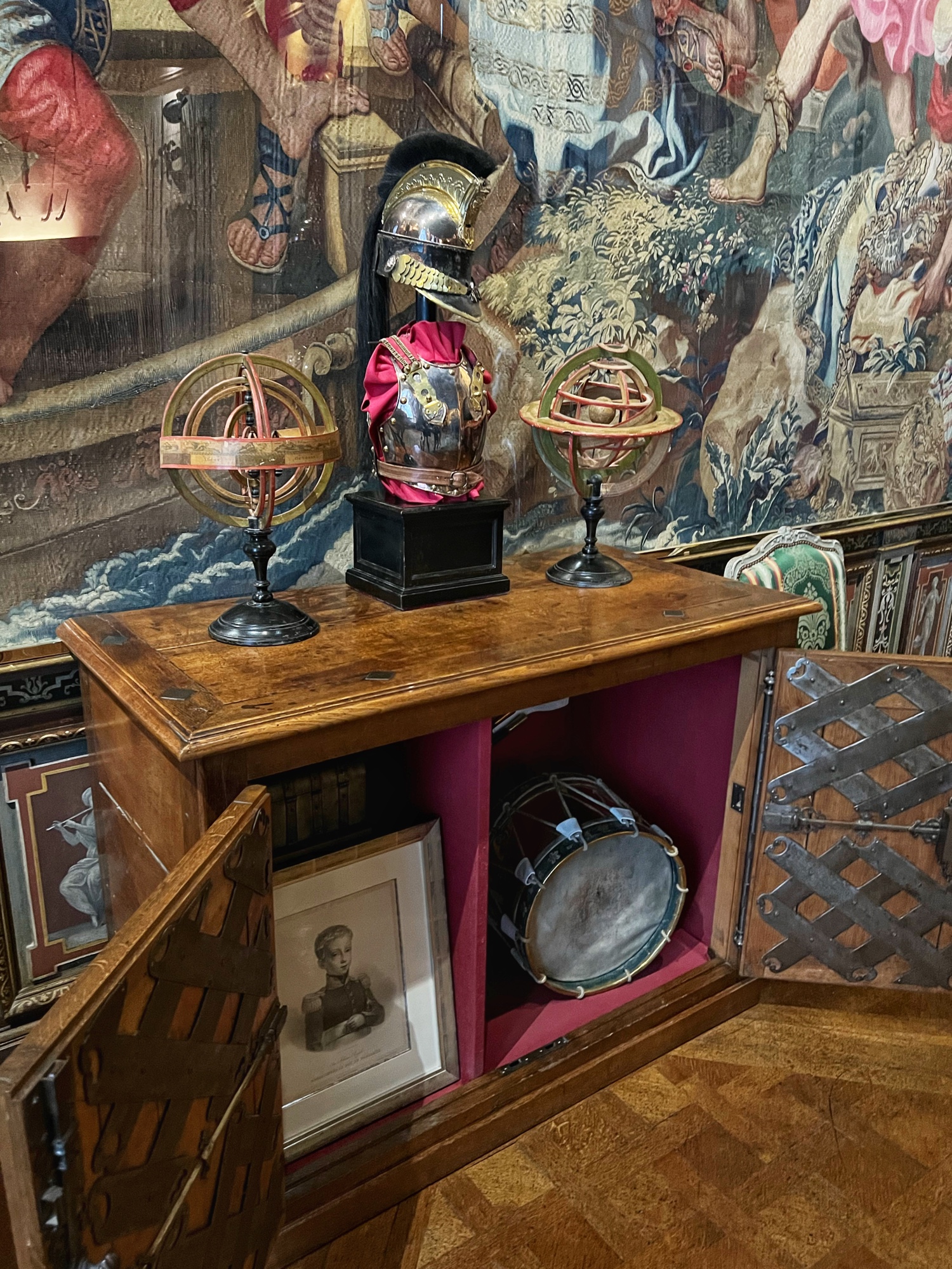 - Art: tapestries (remarkable), portraits, busts, statues and sculptures.