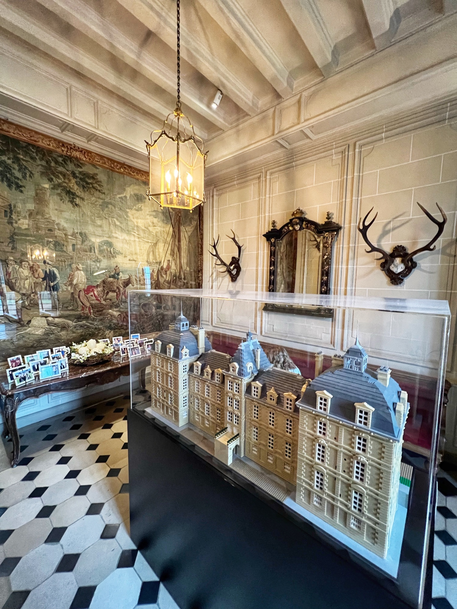 A more modern palace, there are still plenty of hints to Cheverny’s past. Originally built in the 14th century, it has been updated and rennovated over the last 700 years. It is really amazing to be in a castle and see family photos of the current residents! Keep an eye out for whimsical details like the Lego Mona Lisa, Lego chateau replica, and enormous prehistoric antlers mounted on the wall at the exact height of the extinct animal it came from (!). The furniture in this château is drool worthy. It’s a colorful place!