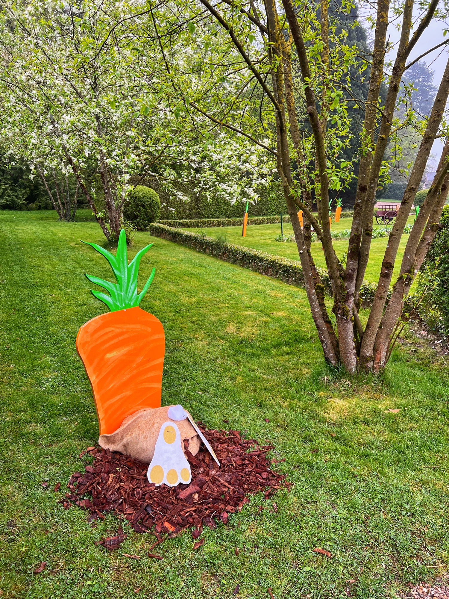 Before visiting the maze and donkeys, we checked out the Green Garden, Russell Page Garden (with fish box artwork below), and the huge vegetable and flower gardens.