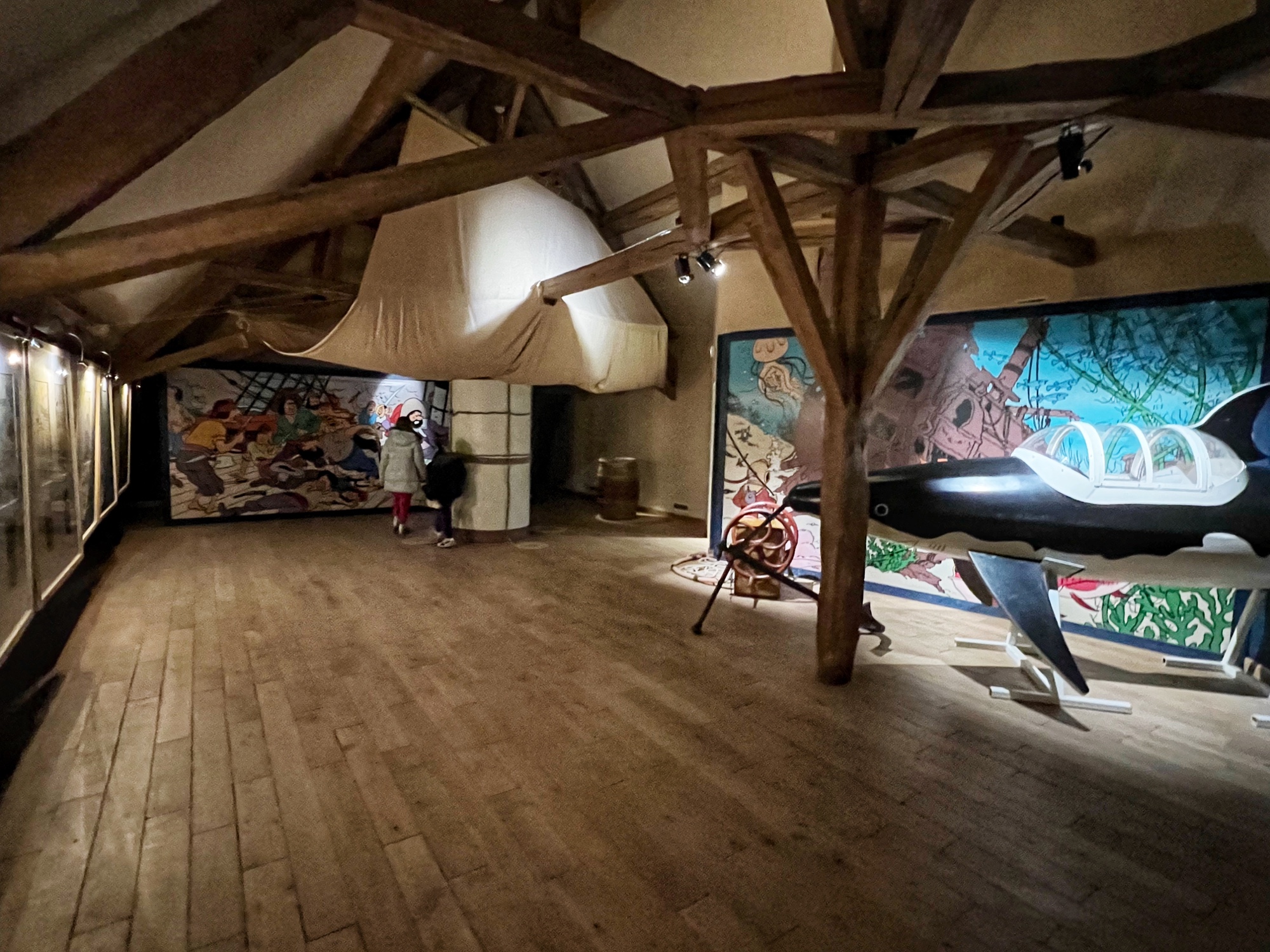 As we were winding down our visit we went into the Tin Tin exhibit called “The Secrets of Moulinsart.” It was in French, but the girls still enjoyed it. This is one of those things that’s great for a rainy day (like when we visited) but not necessarily essential viewing unless you know of and are a fan of the cartoon TinTin. If you plan to go, make sure to watch a few episodes before visiting the exhibit.