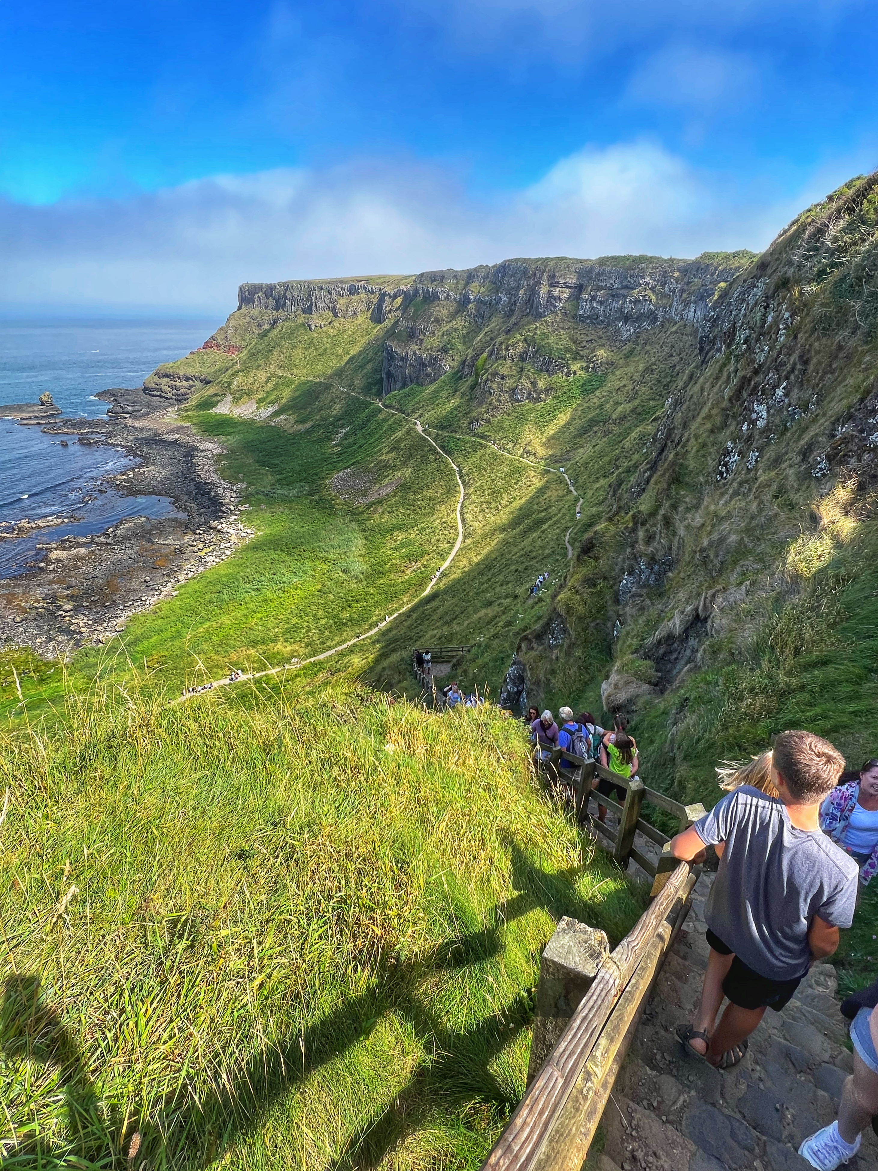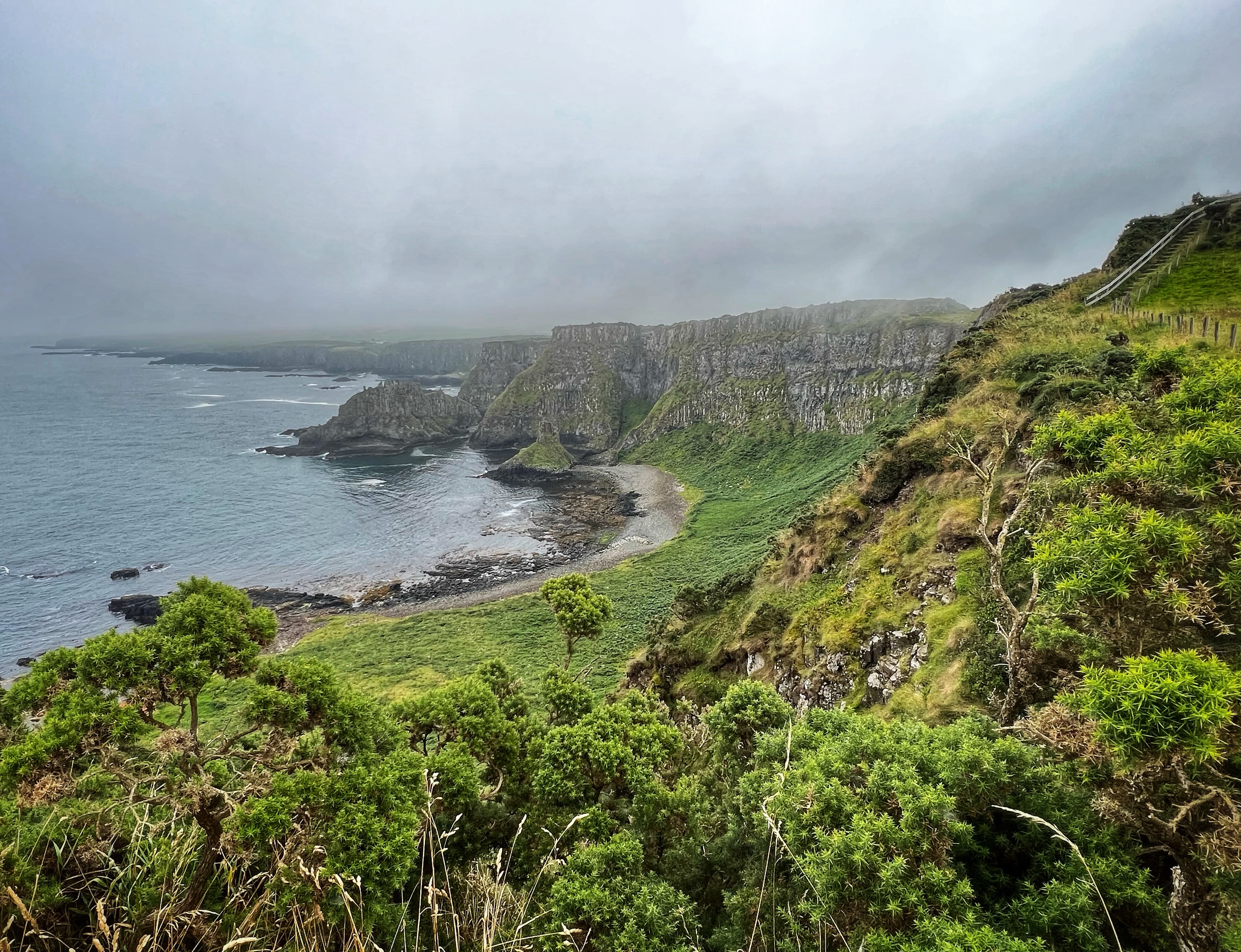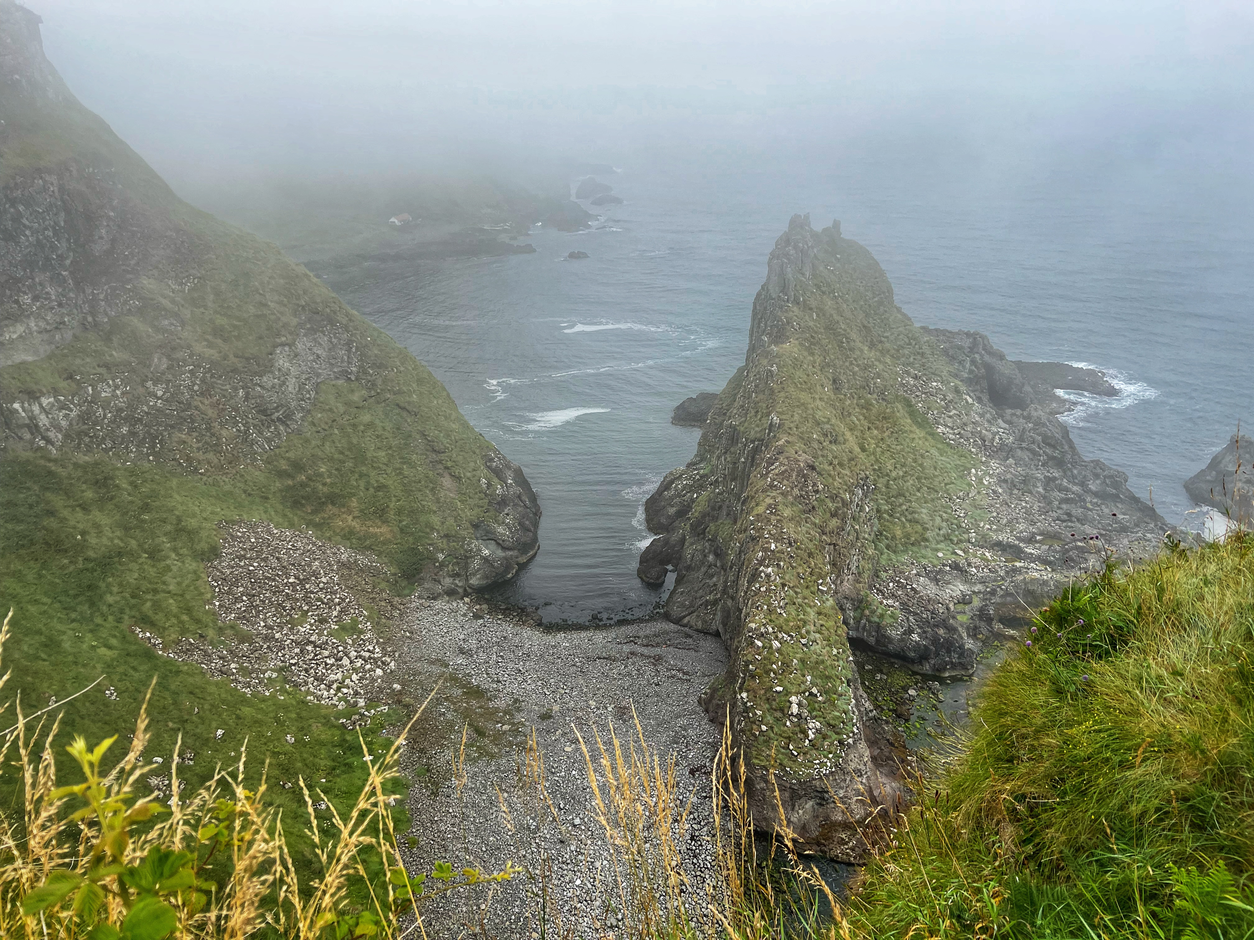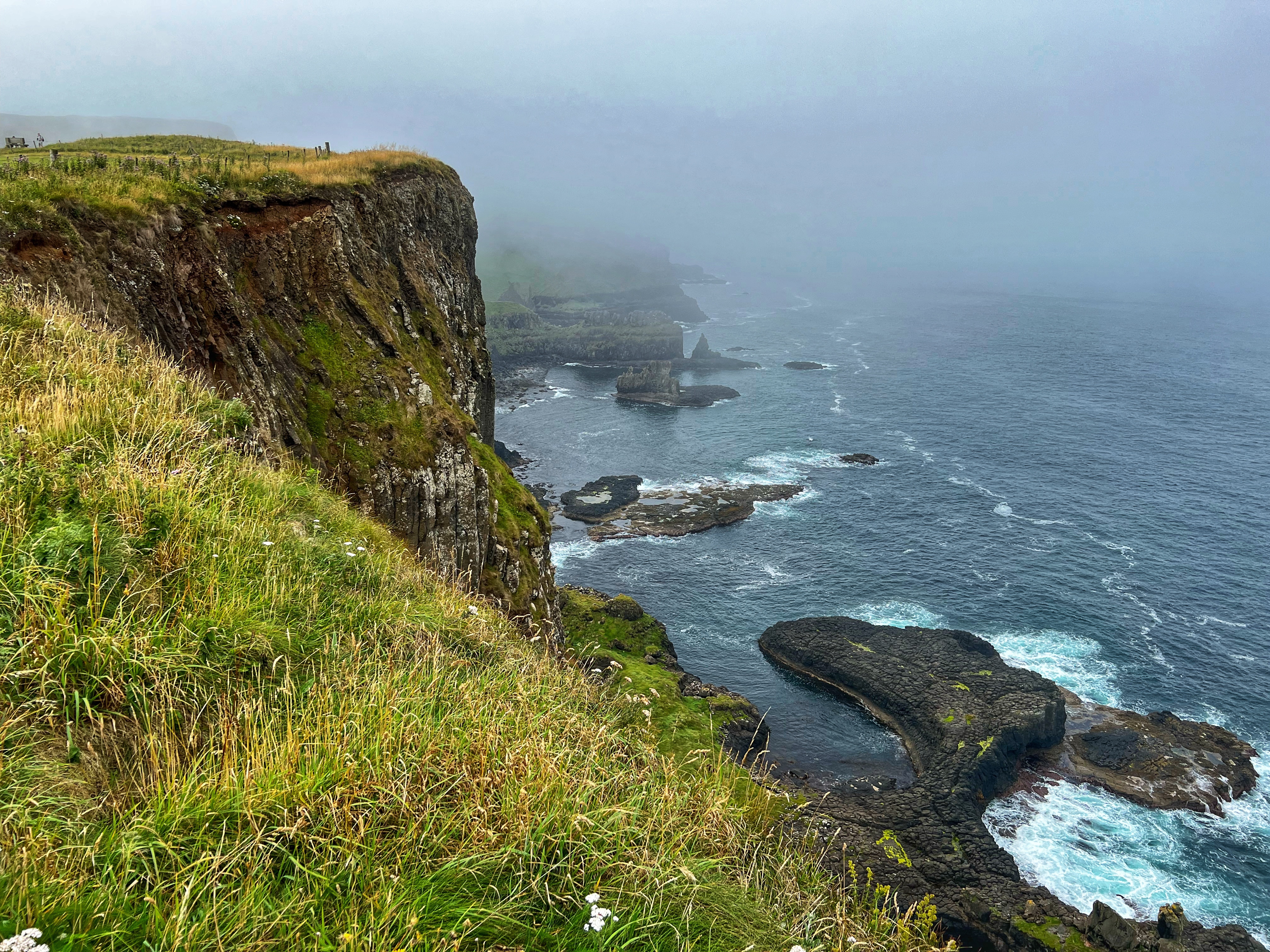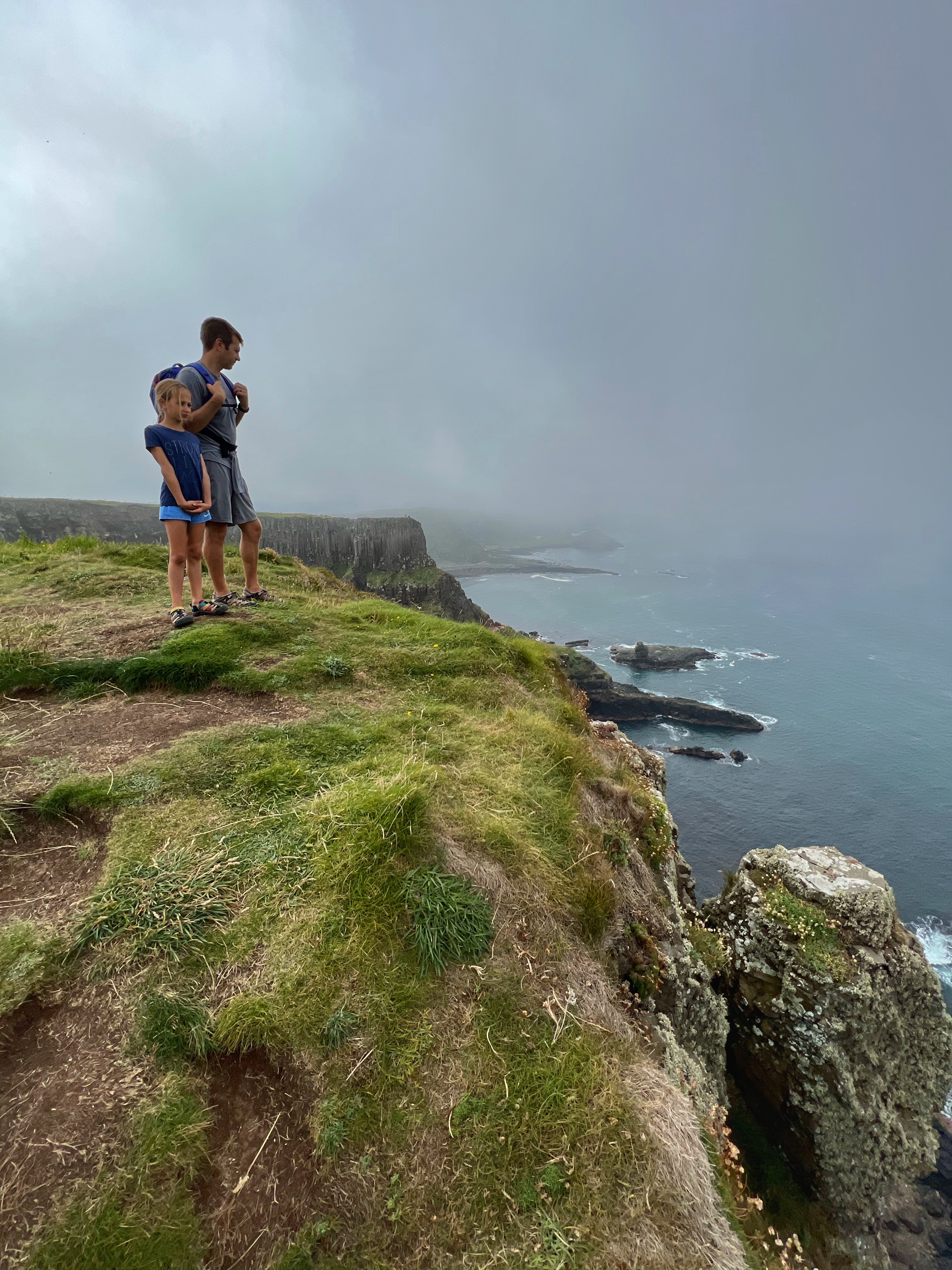 Our destination for the rest of the day was the Causeway Coast, including Giant’s Causeway, Bushmills, Carrick-a-Rede rope bridge area and Larrybane Quarry. This was another record breaking day for steps on the smartwatch, and every single one was beautiful. We wanted to hike the causeway coast instead of just heading straight to Giant’s Causeway’s infamous honeycombs, so we parked at Dunseverick castle ruins (a small pullout car park near a house with the nicest lady we made friends with) and hiked about 2 hours west to the Giant’s Causeway. This turned out to be a perfect plan, as the entire coast was socked in with fog until noon time, which was exactly when we arrived at Giant’s Causeway. It was amazing to see the blue skies emerge and made it all worthwhile, even with the mid day crowds.