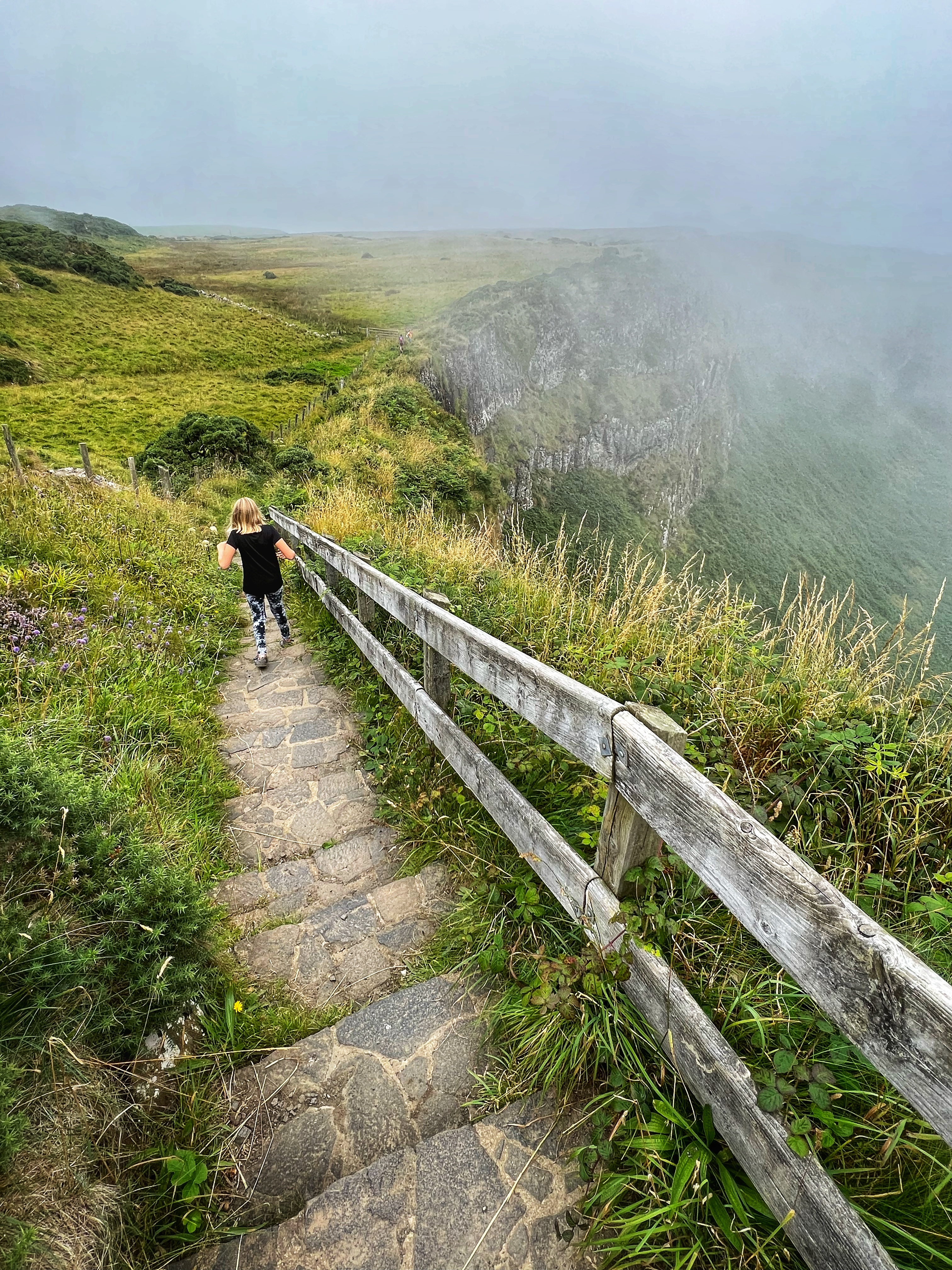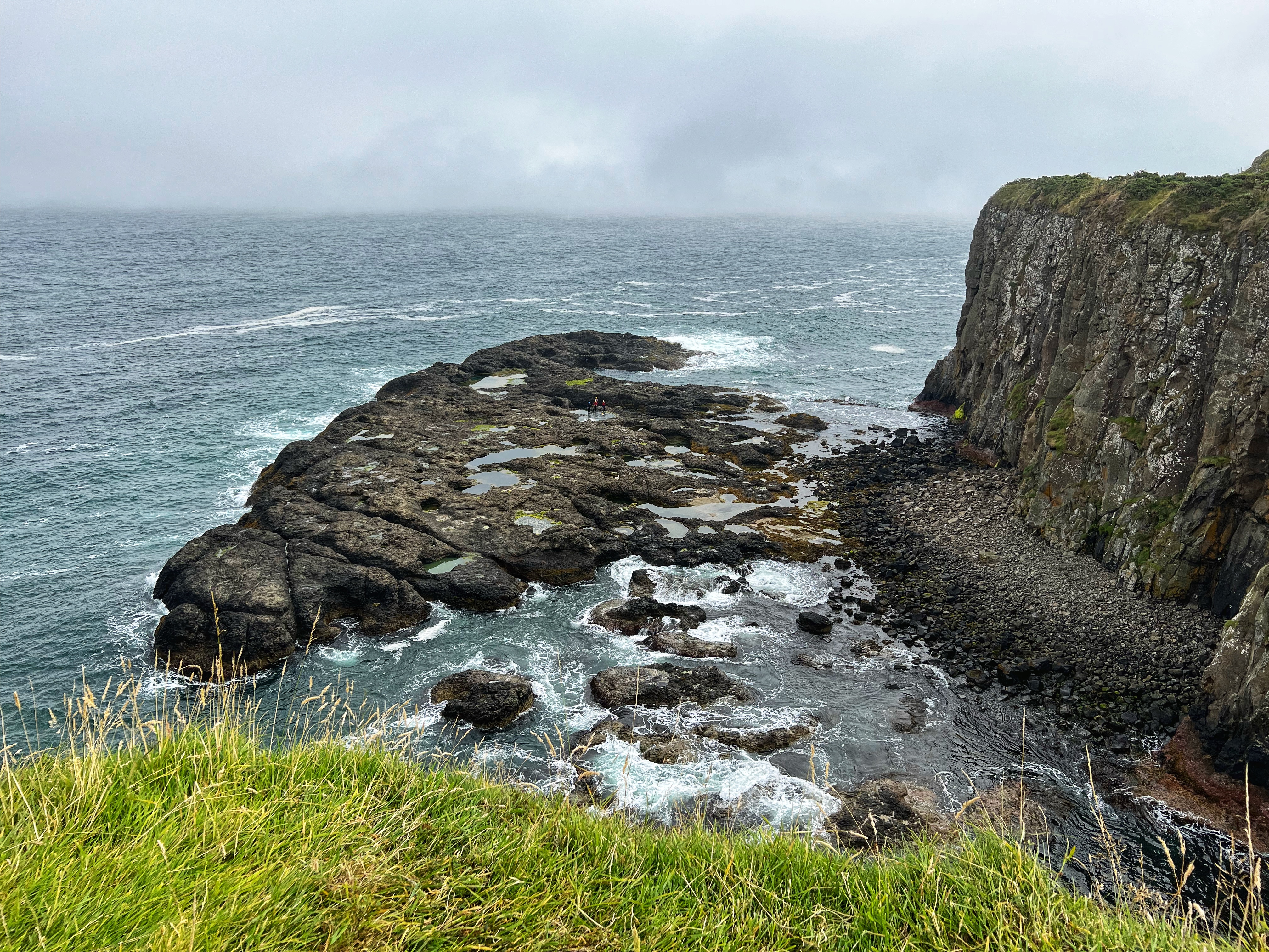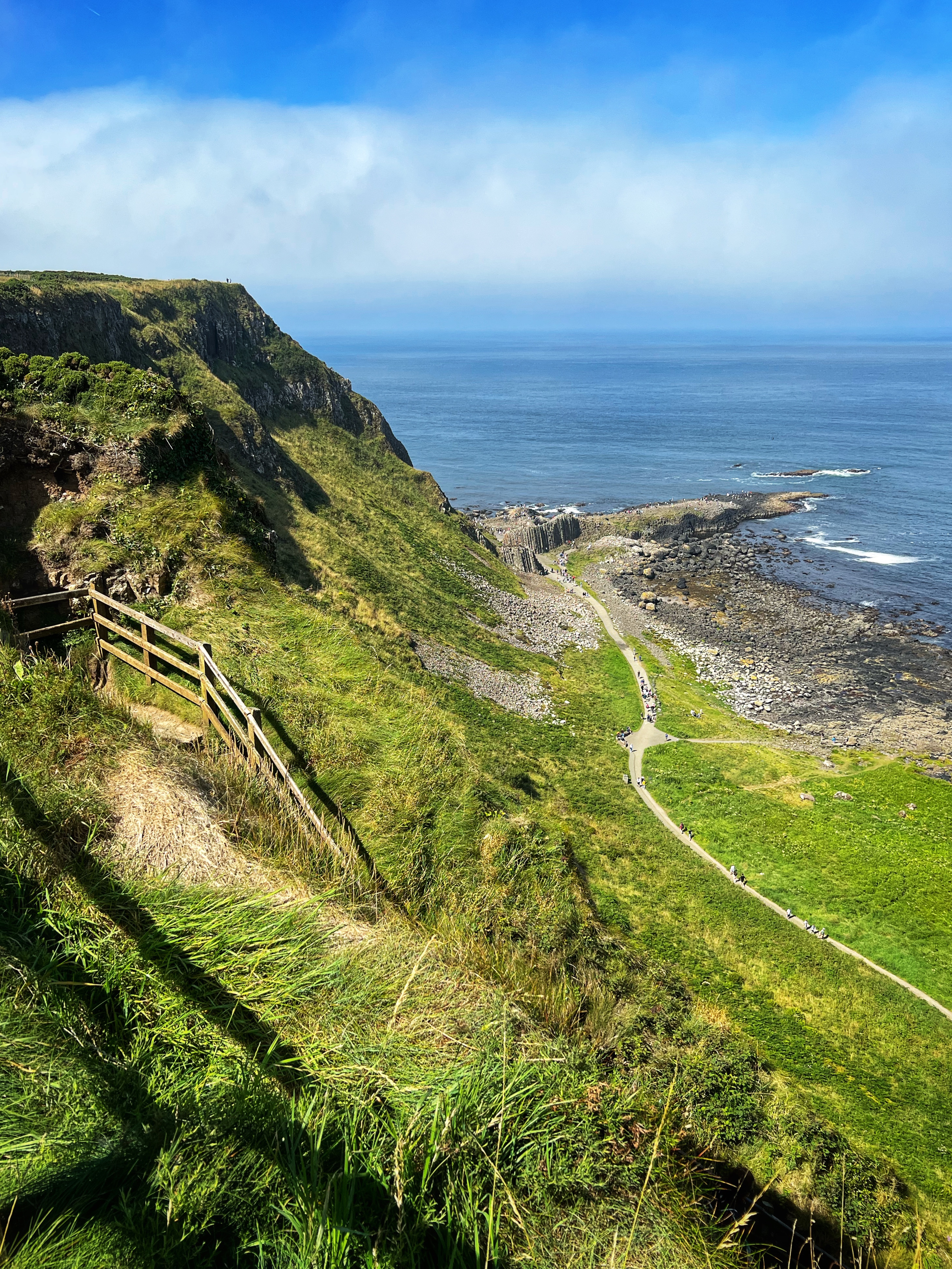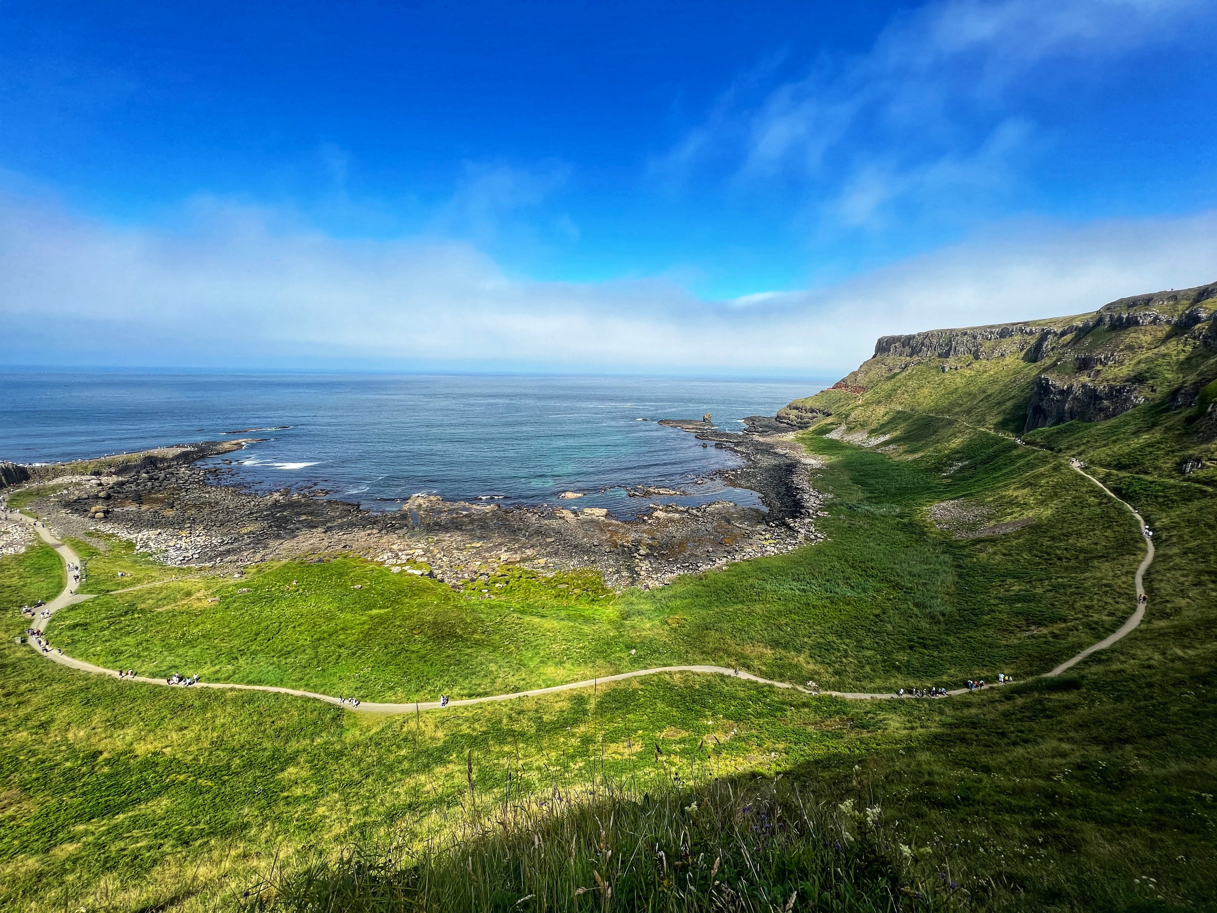 Our destination for the rest of the day was the Causeway Coast, including Giant’s Causeway, Bushmills, Carrick-a-Rede rope bridge area and Larrybane Quarry. This was another record breaking day for steps on the smartwatch, and every single one was beautiful. We wanted to hike the causeway coast instead of just heading straight to Giant’s Causeway’s infamous honeycombs, so we parked at Dunseverick castle ruins (a small pullout car park near a house with the nicest lady we made friends with) and hiked about 2 hours west to the Giant’s Causeway. This turned out to be a perfect plan, as the entire coast was socked in with fog until noon time, which was exactly when we arrived at Giant’s Causeway. It was amazing to see the blue skies emerge and made it all worthwhile, even with the mid day crowds.