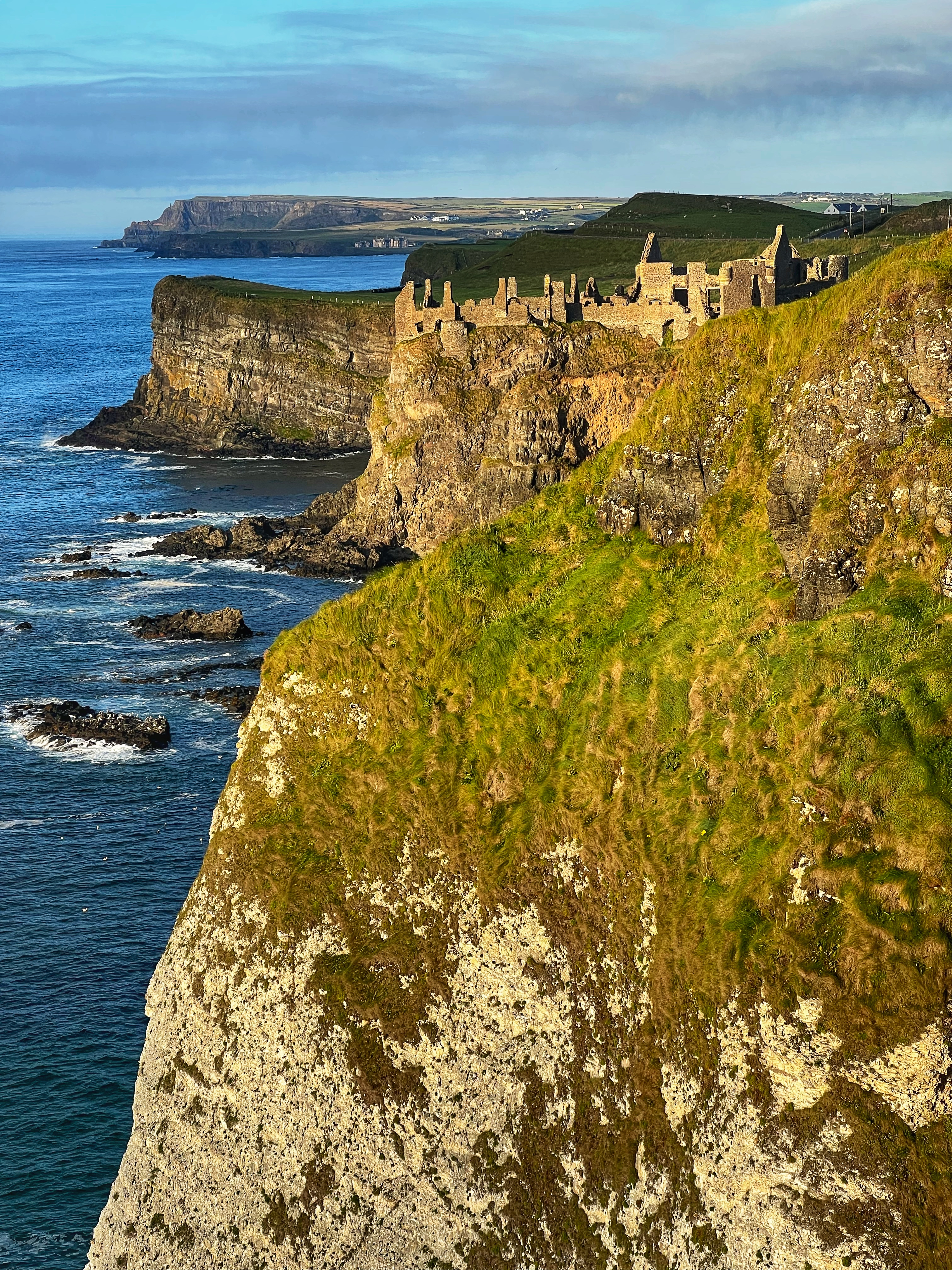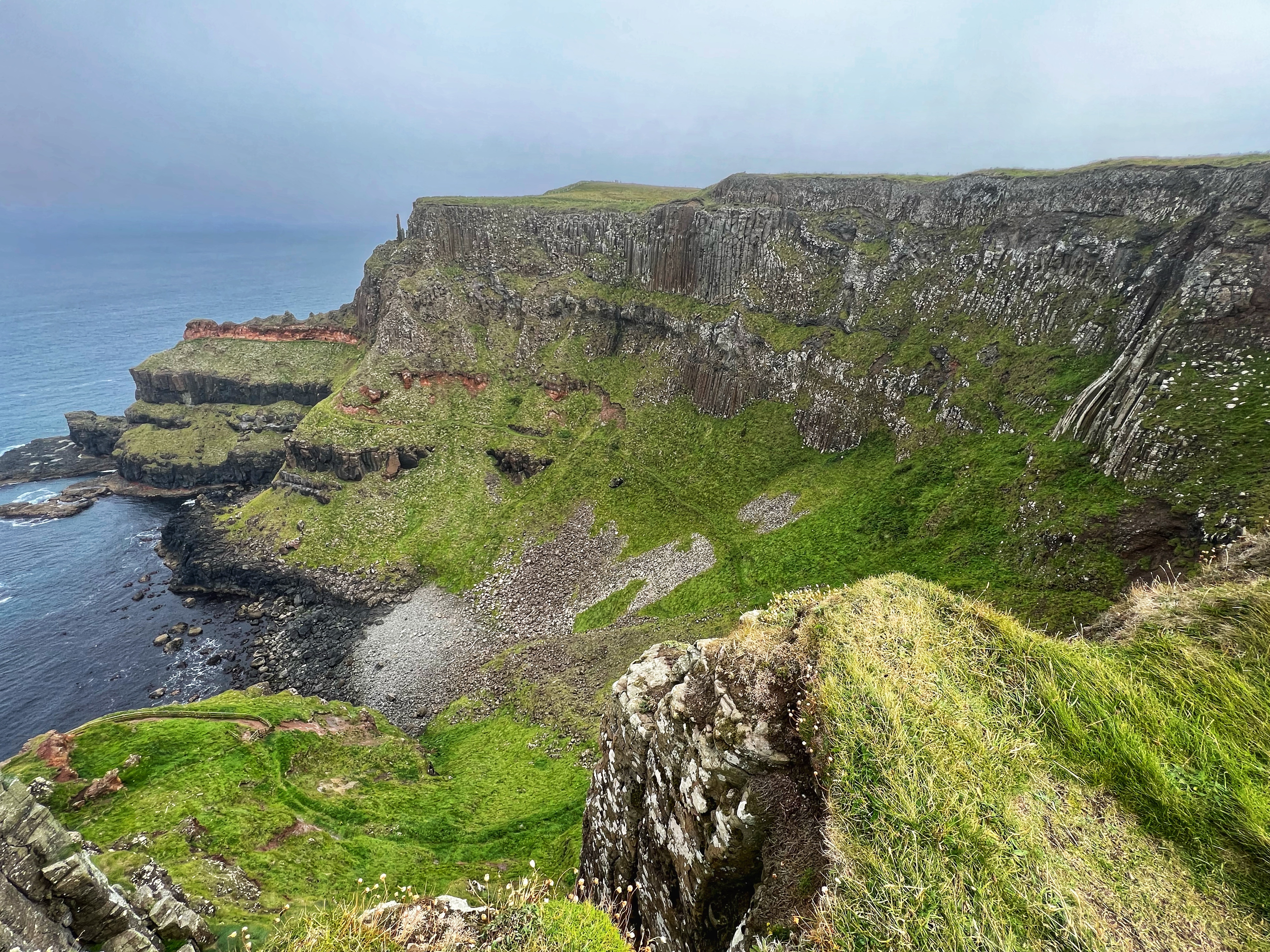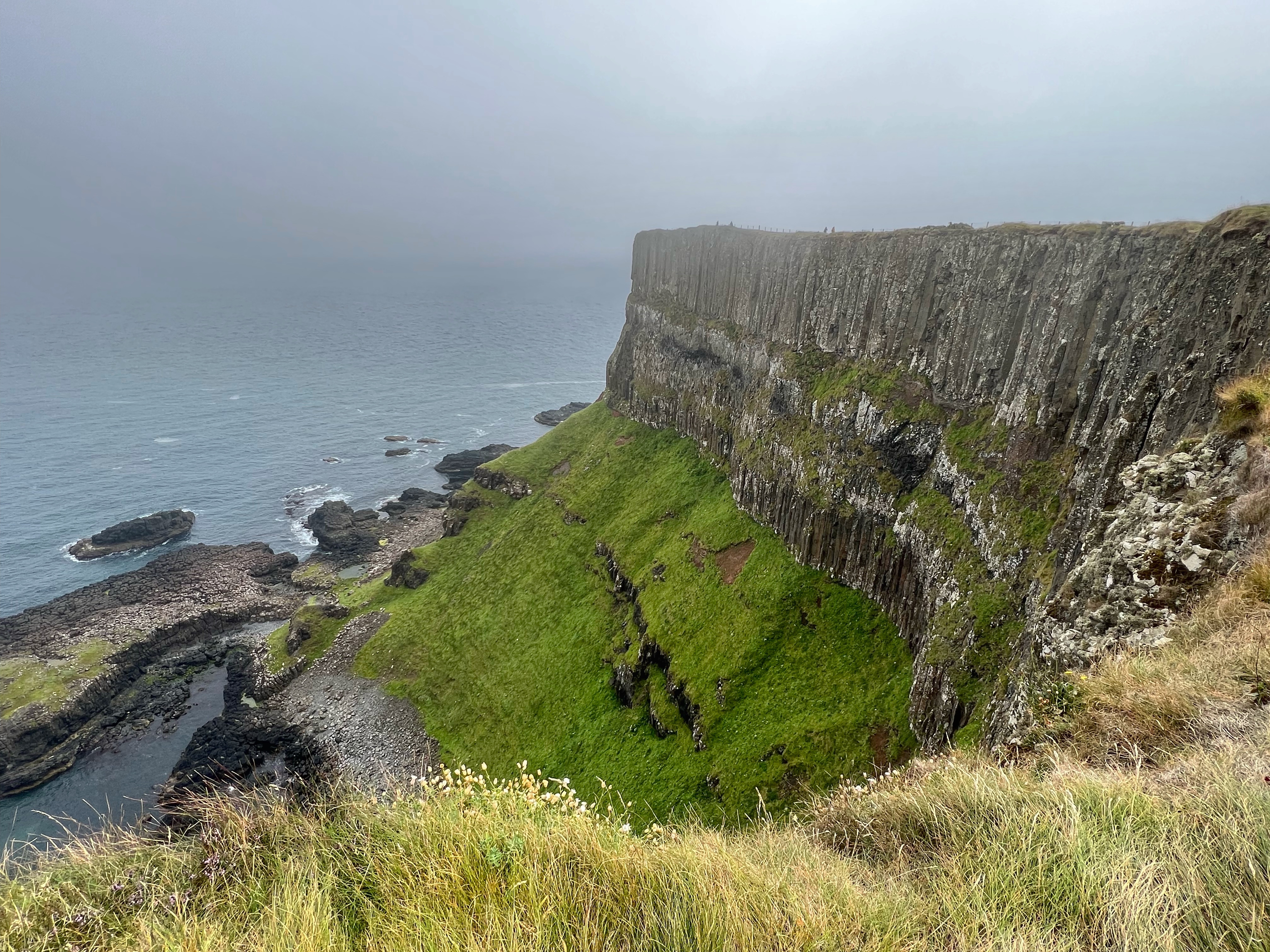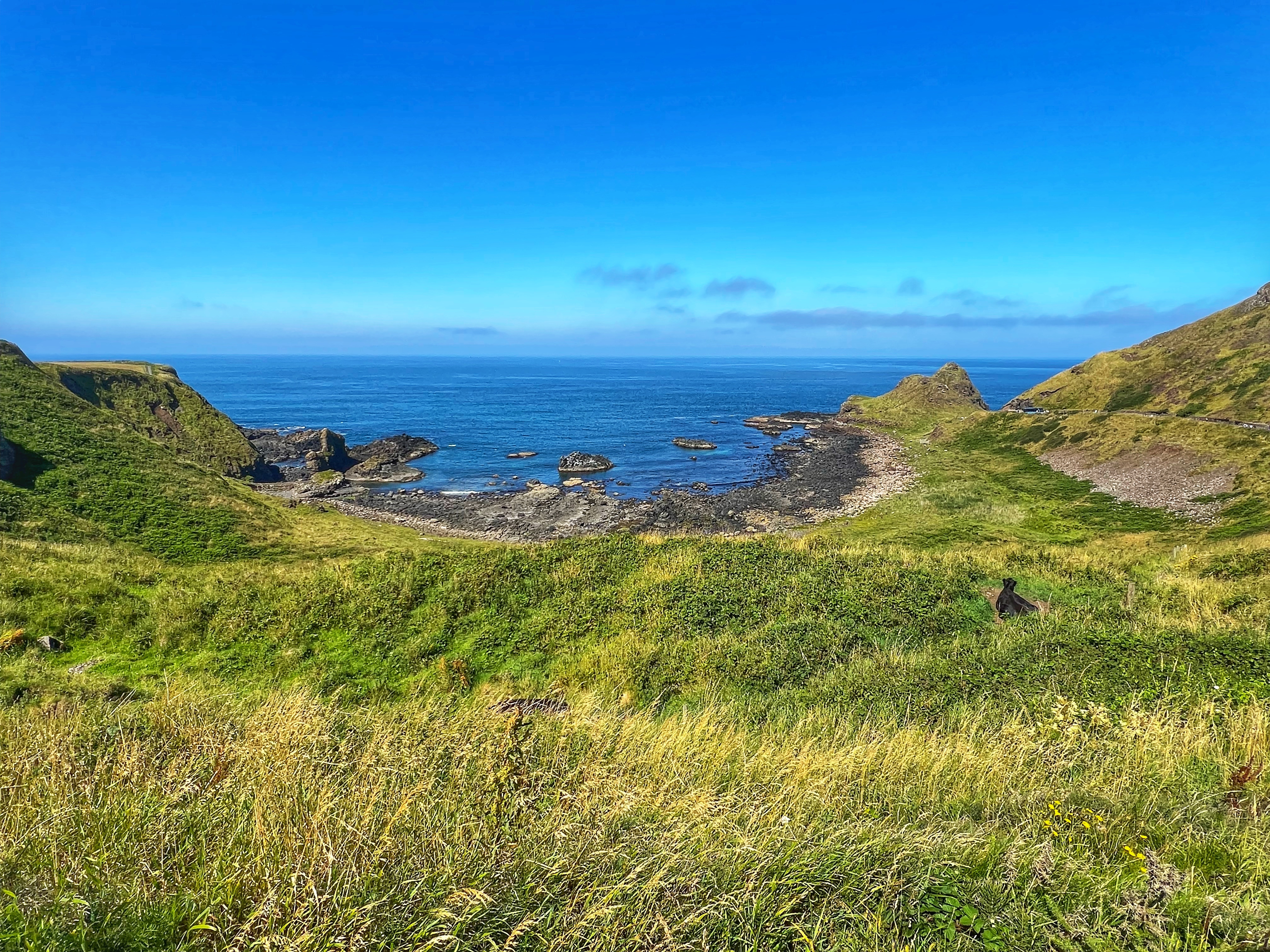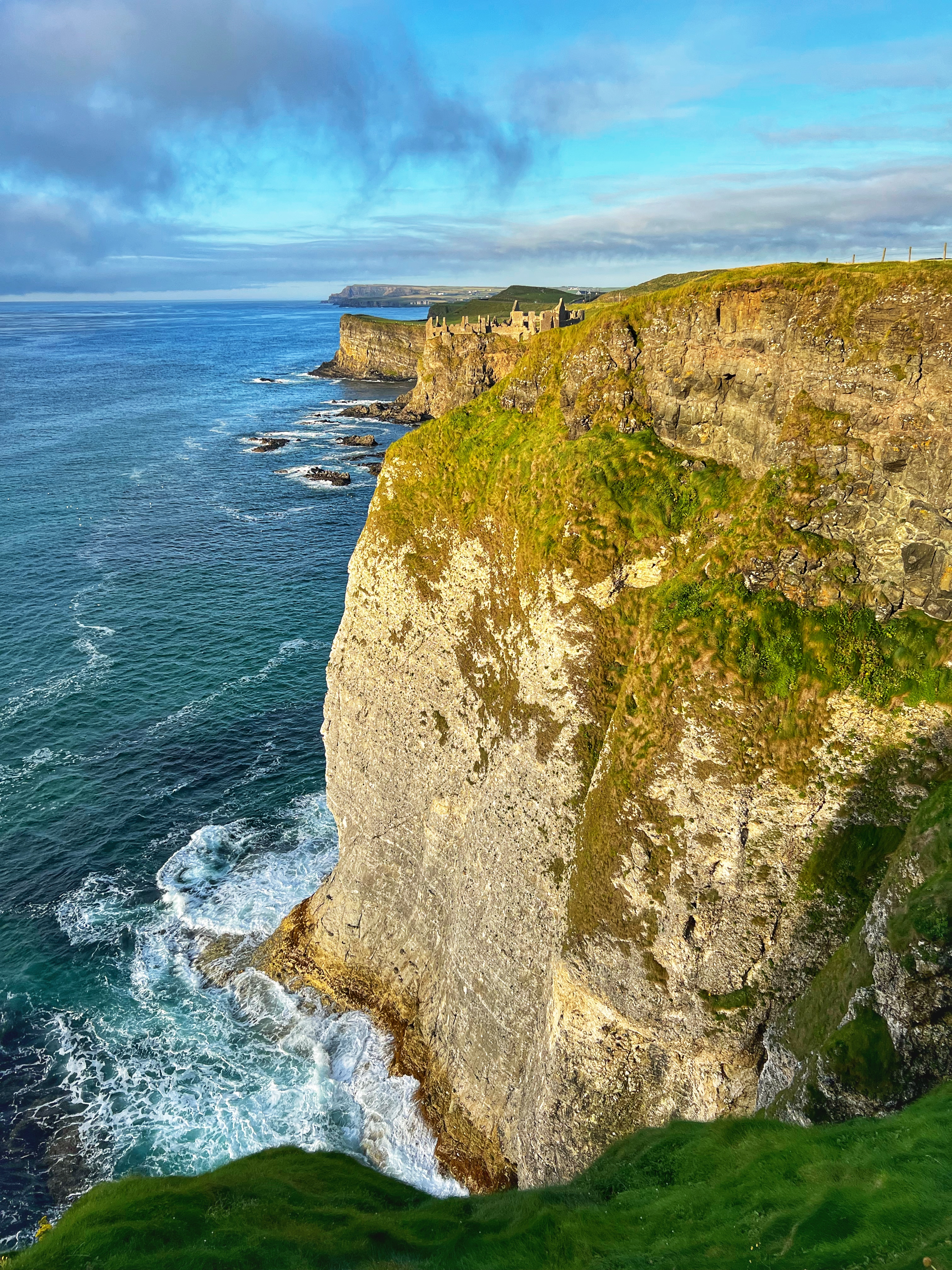Our destination for the rest of the day was the Causeway Coast, including Giant’s Causeway, Bushmills, Carrick-a-Rede rope bridge area and Larrybane Quarry. This was another record breaking day for steps on the smartwatch, and every single one was beautiful. We wanted to hike the causeway coast instead of just heading straight to Giant’s Causeway’s infamous honeycombs, so we parked at Dunseverick castle ruins (a small pullout car park near a house with the nicest lady we made friends with) and hiked about 2 hours west to the Giant’s Causeway. This turned out to be a perfect plan, as the entire coast was socked in with fog until noon time, which was exactly when we arrived at Giant’s Causeway. It was amazing to see the blue skies emerge and made it all worthwhile, even with the mid day crowds.