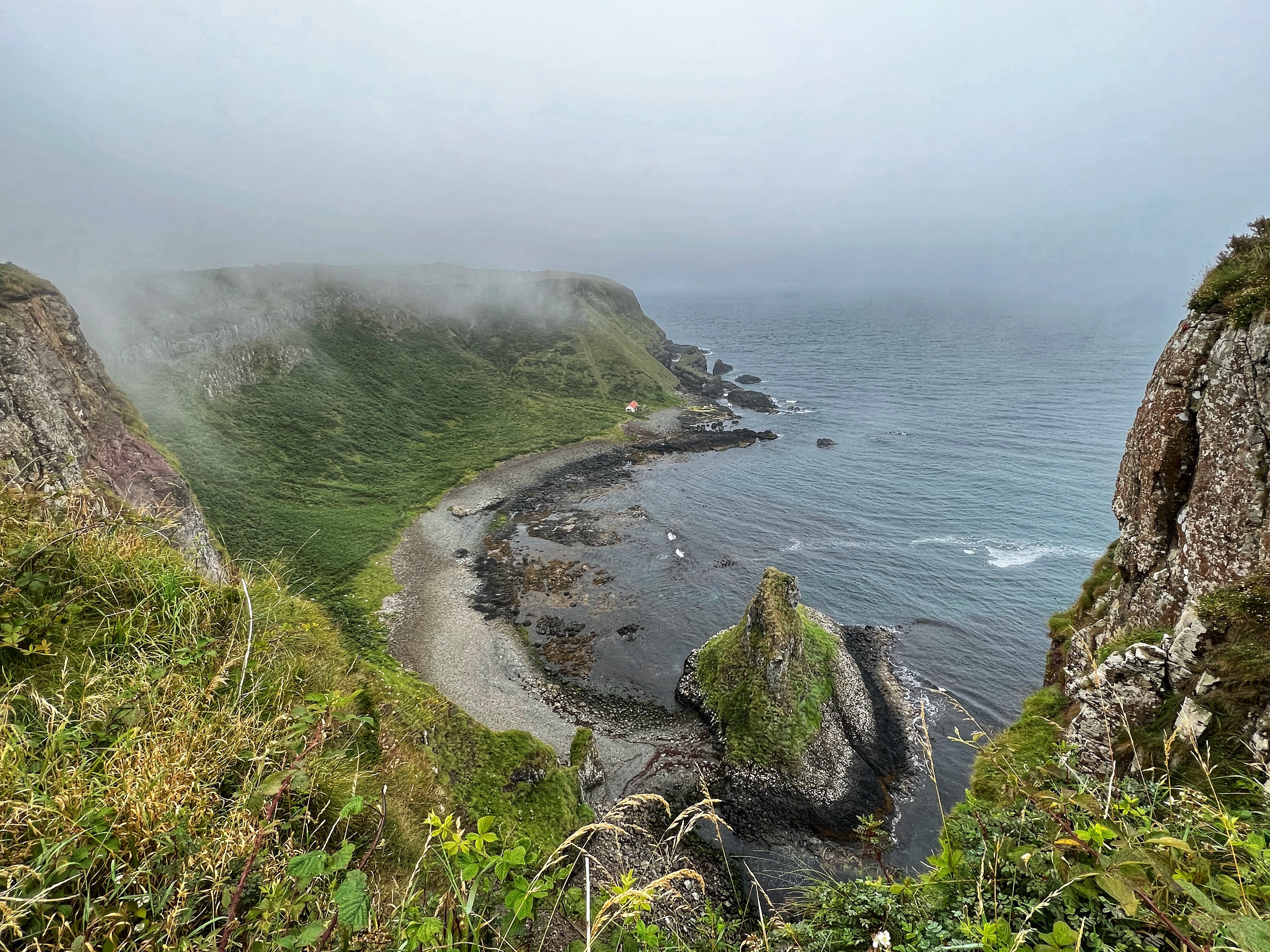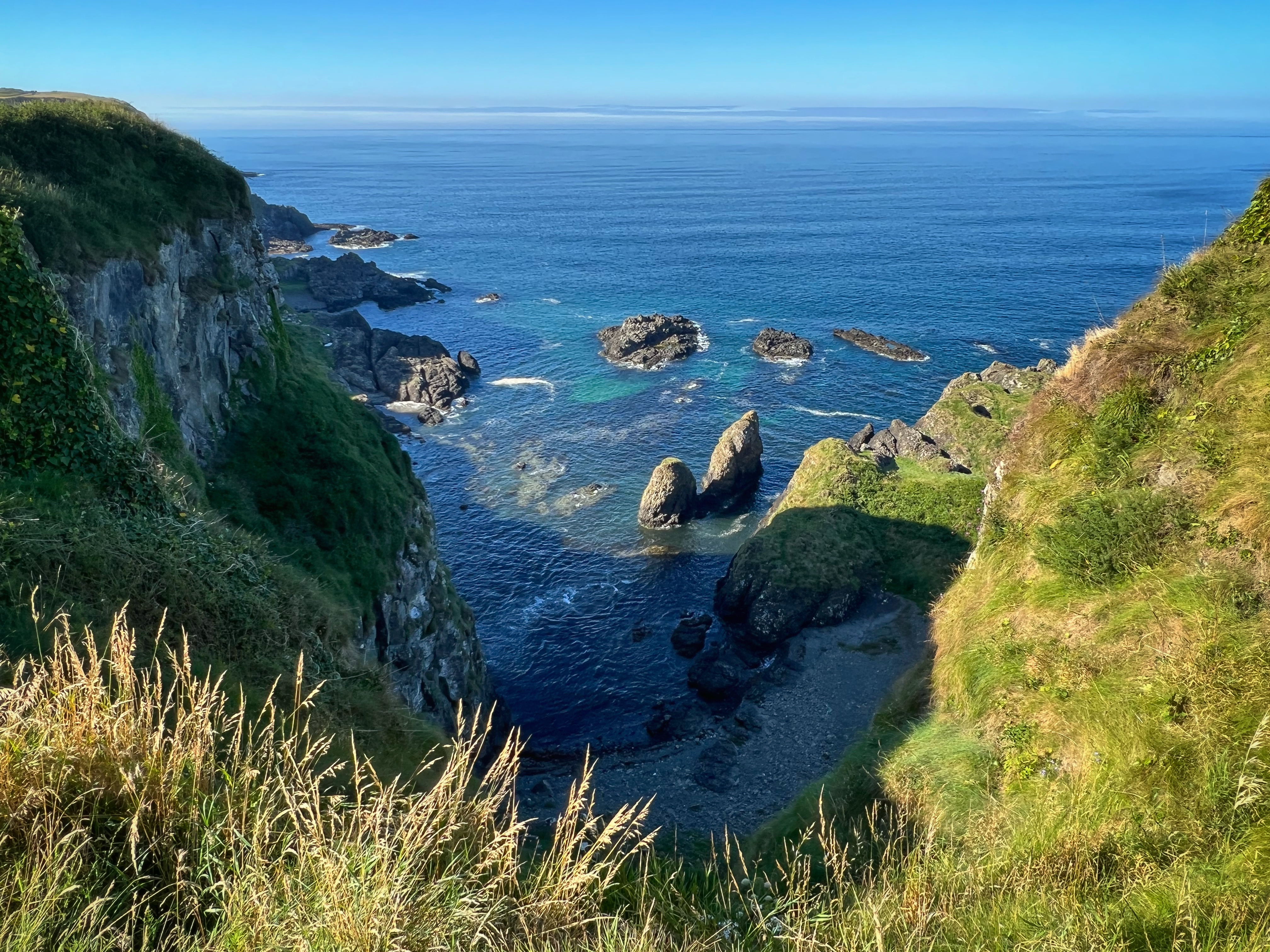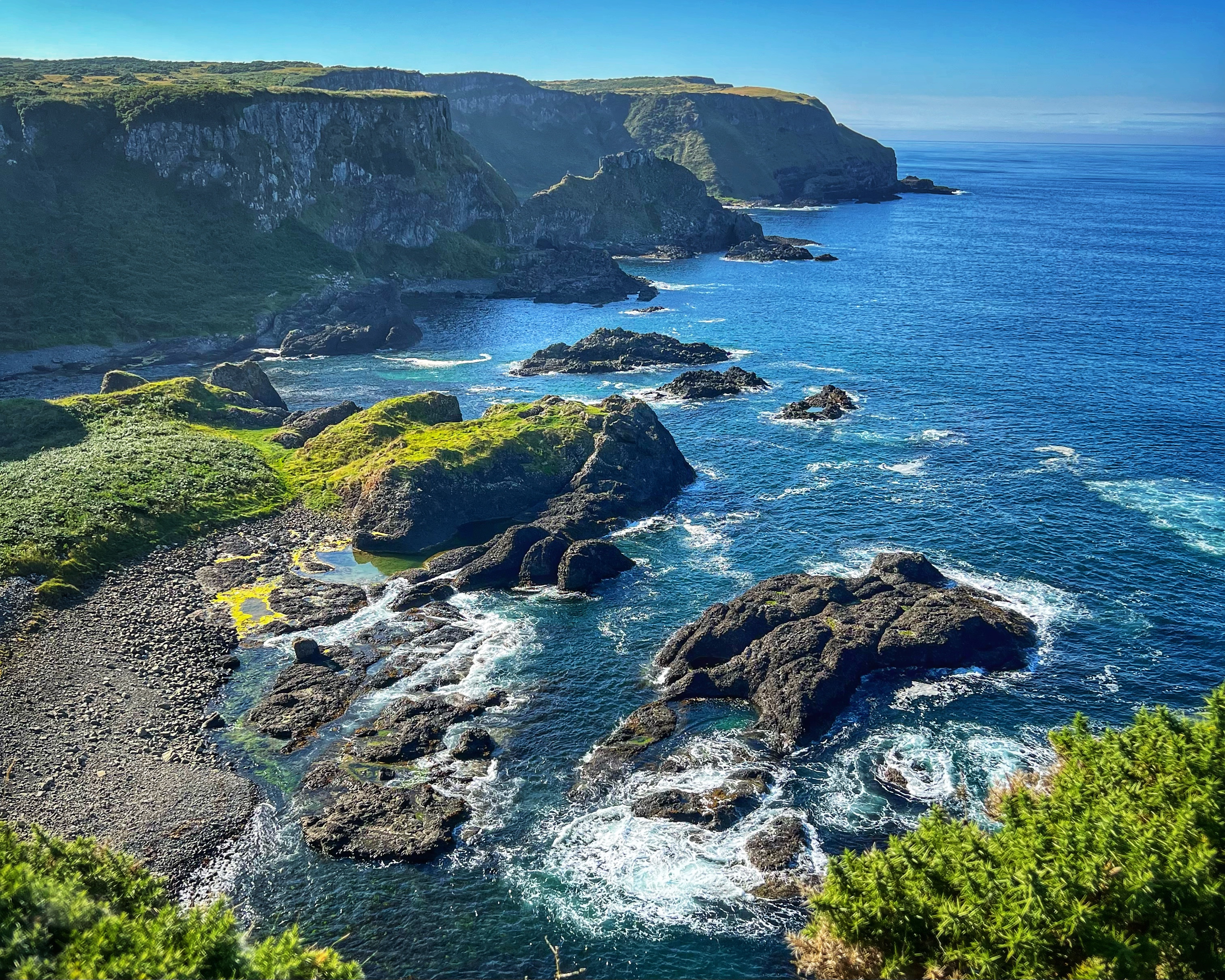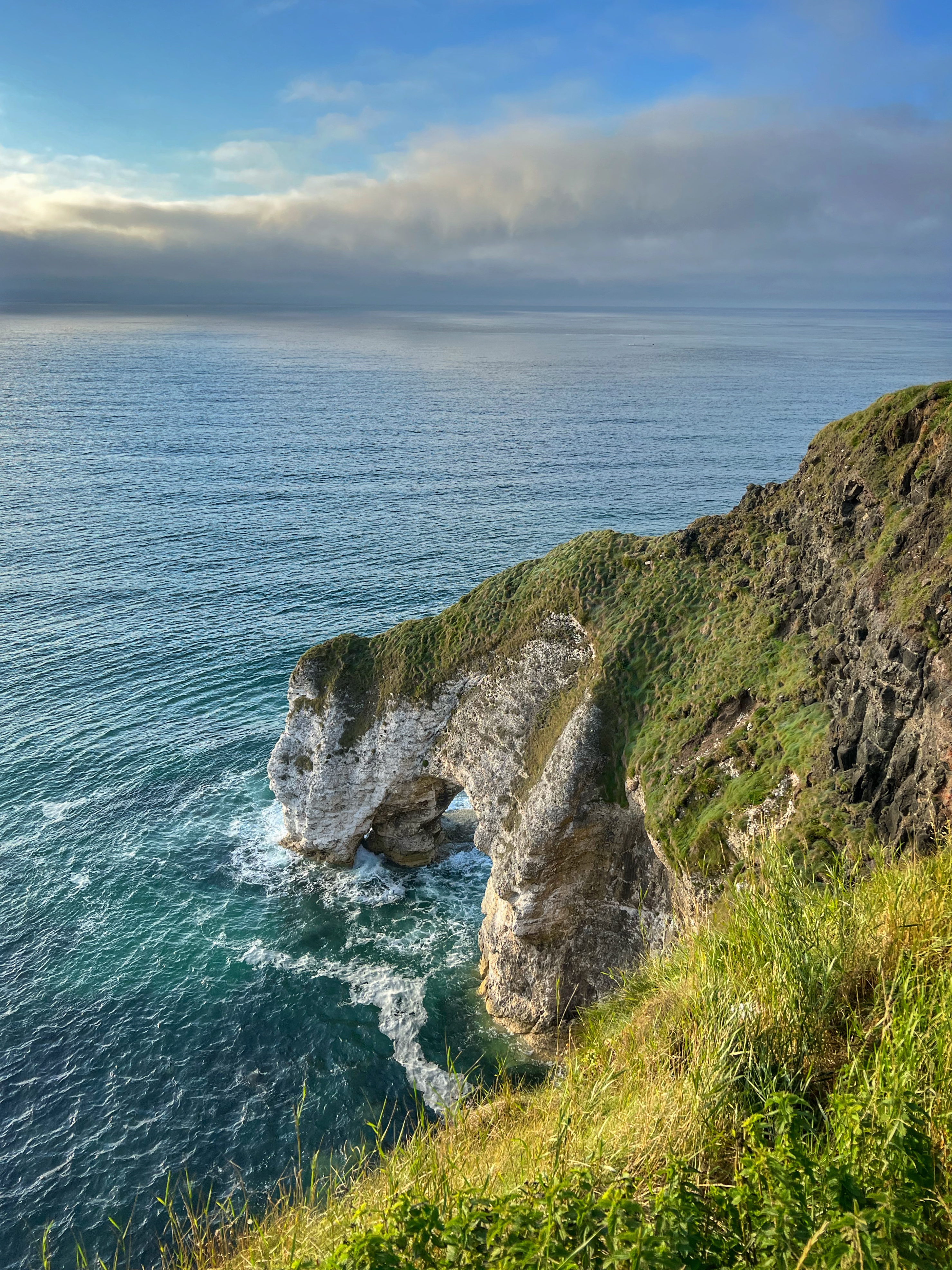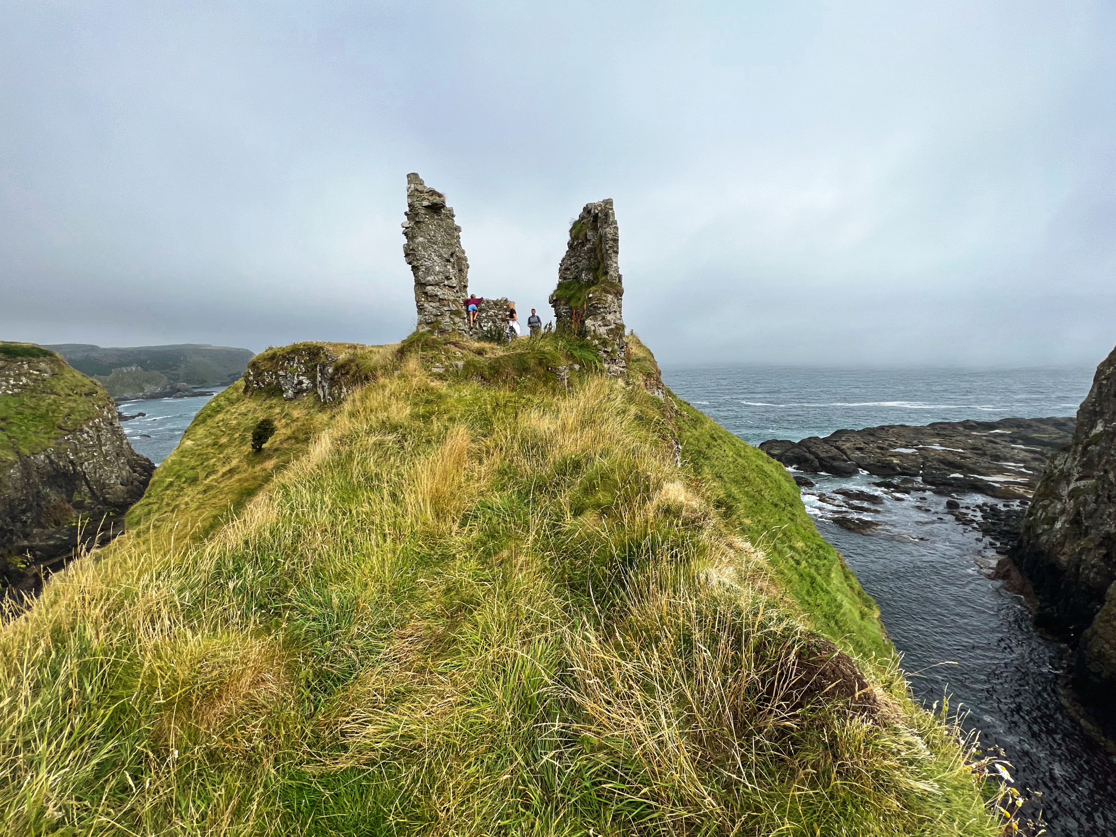 Our destination for the rest of the day was the Causeway Coast, including Giant’s Causeway, Bushmills, Carrick-a-Rede rope bridge area and Larrybane Quarry. This was another record breaking day for steps on the smartwatch, and every single one was beautiful. We wanted to hike the causeway coast instead of just heading straight to Giant’s Causeway’s infamous honeycombs, so we parked at Dunseverick castle ruins (a small pullout car park near a house with the nicest lady we made friends with) and hiked about 2 hours west to the Giant’s Causeway. This turned out to be a perfect plan, as the entire coast was socked in with fog until noon time, which was exactly when we arrived at Giant’s Causeway. It was amazing to see the blue skies emerge and made it all worthwhile, even with the mid day crowds.