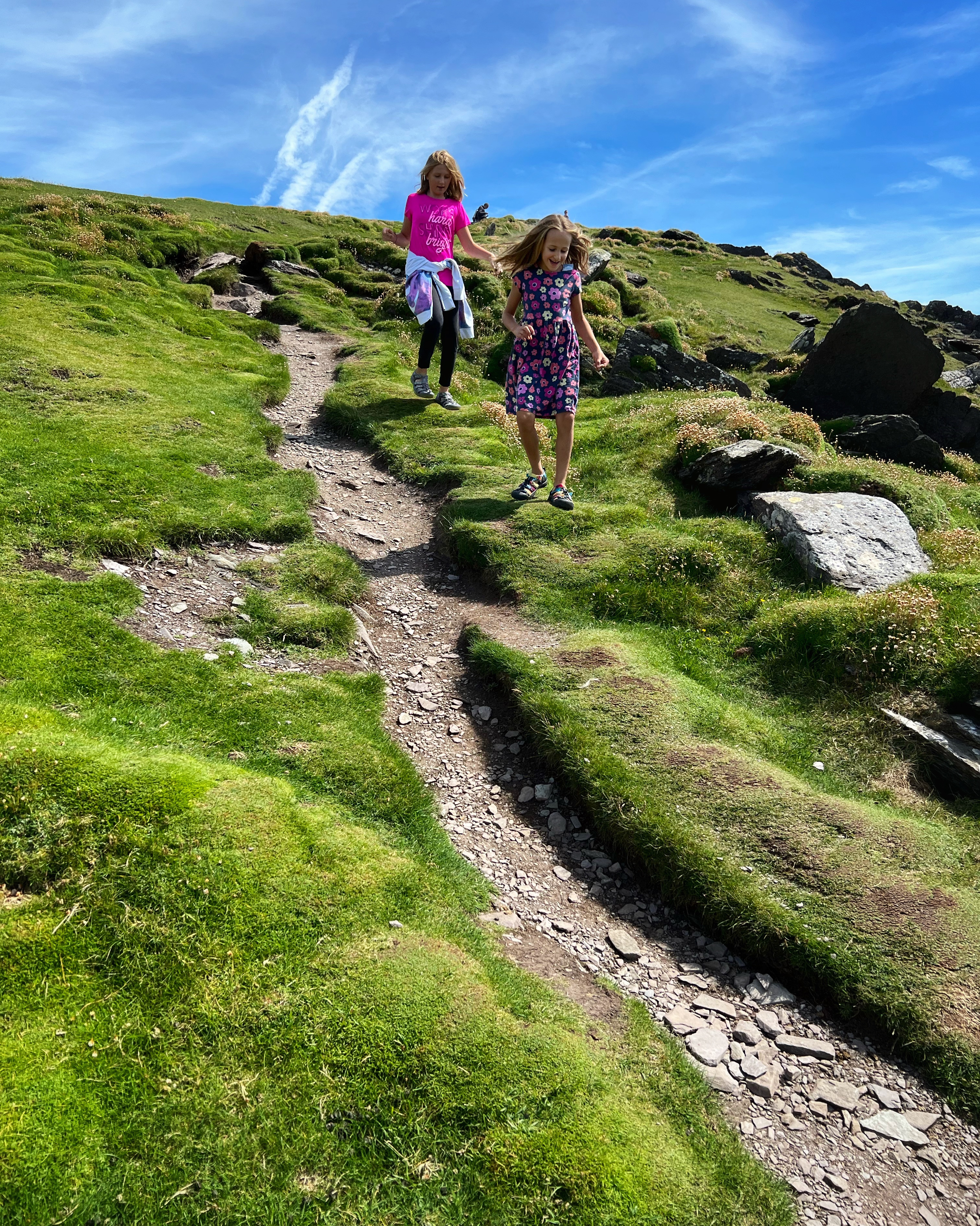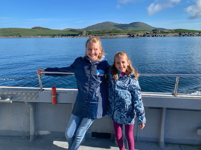 While we boarded our boat for the Skelligs, daddy took the girls on a fishing excursion. They weren’t yet old enough to land on Skellig Michael (must be age 12+), so this was a fun alternative. They love fishing! The tour was organized through Murphy’s Atlantic Angling; they scheduled a half day tour for €300 (3 people). It was a small boat and the seas were choppy by mid day when they were ready to return to shore, but they had a great time and caught several good looking pollack. In fact, the girls brought back the biggest fish and cooked it up for lunch. It was delicious!