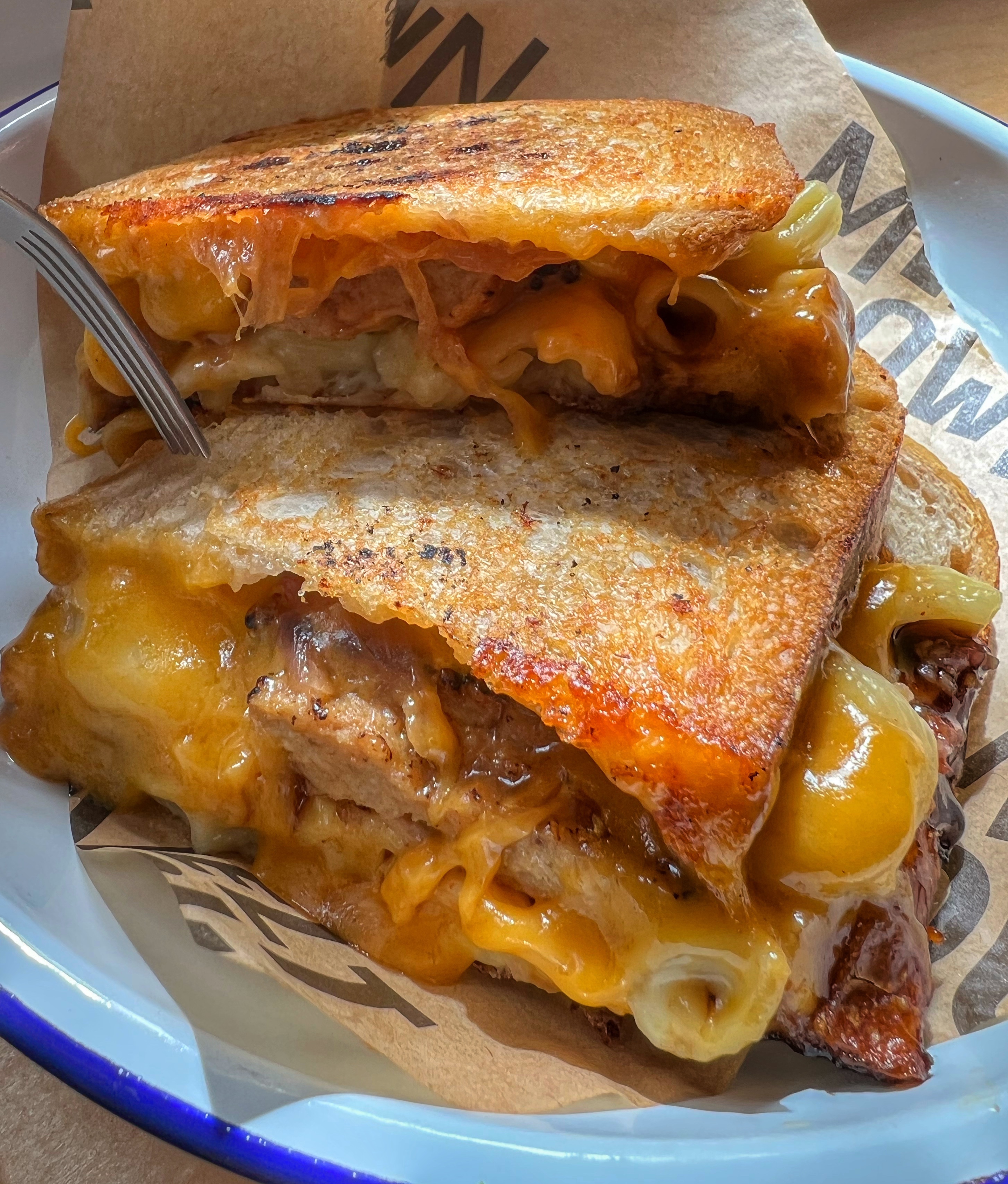 From the hotel we took a walk up the street, tummies grumbling for some good eats. We found The Meltdown, a quirky hole in the wall restaurant with the most amazing “toasties” (grilled sandwiches) that were to die for. The most unique one had macaroni and cheese inside! Just look at this goodness: