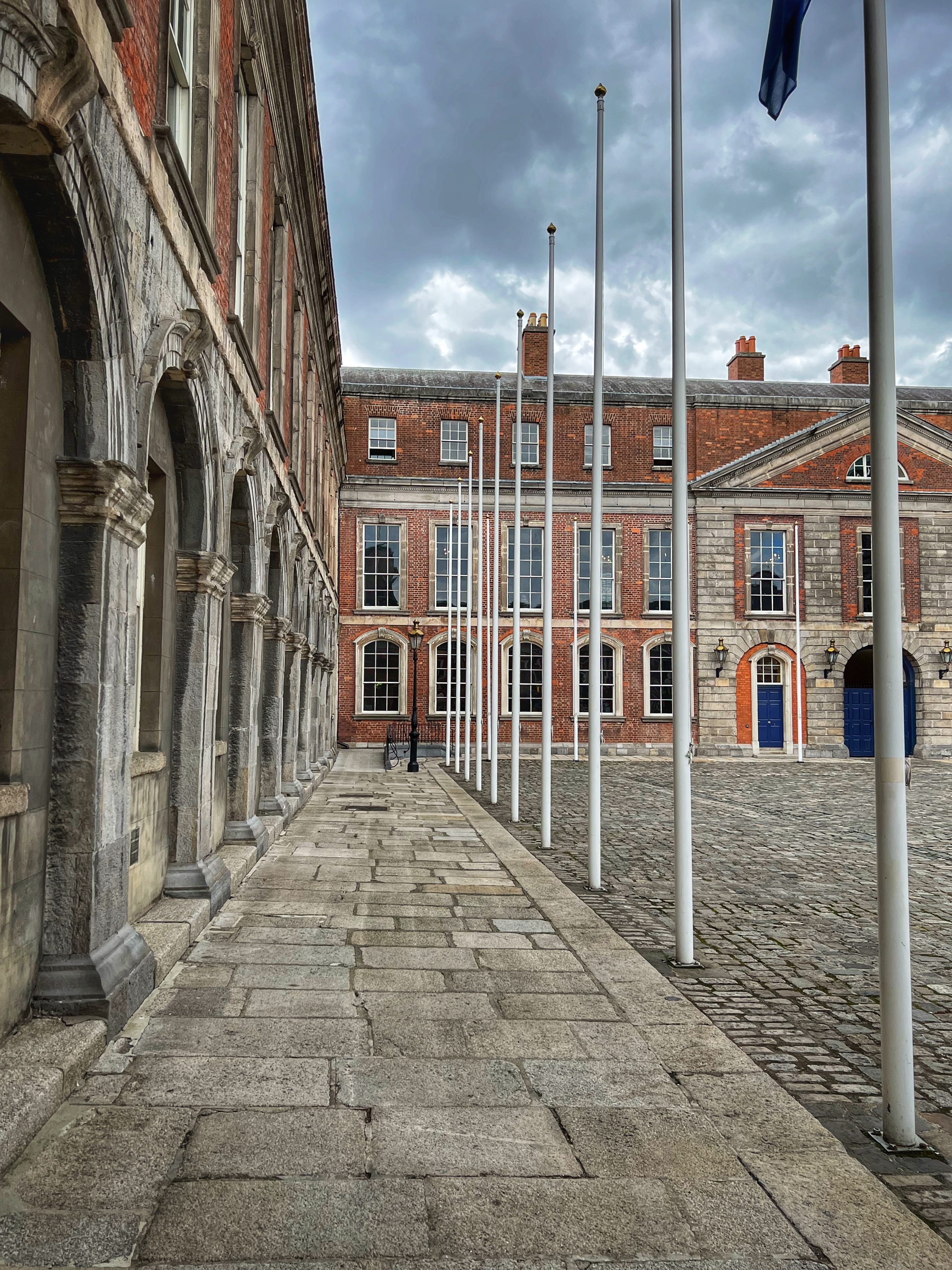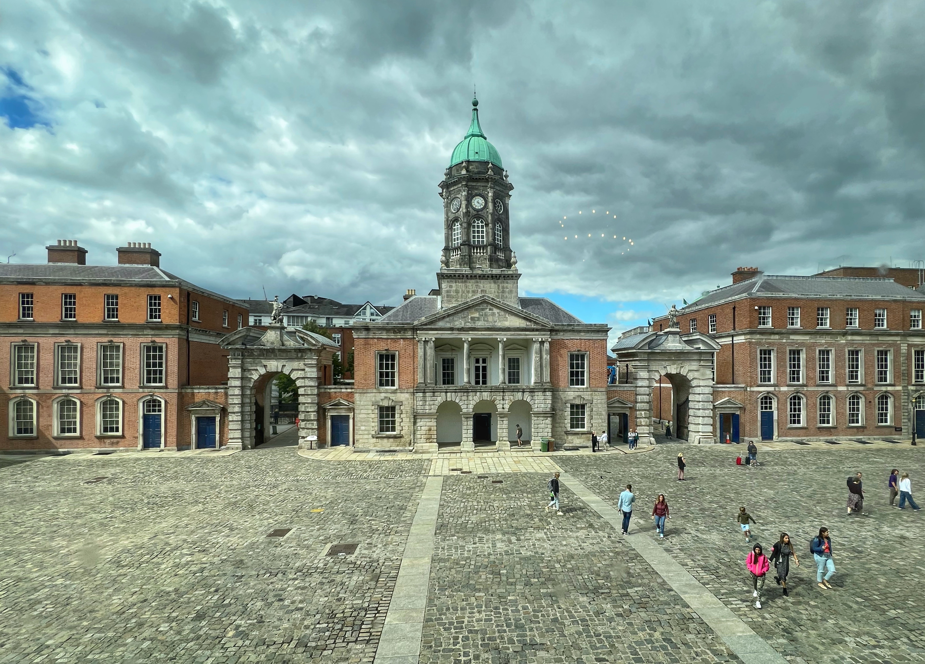 We continued on, admiring the colorful streets and giving thanks for the awesome weather. We couldn’t believe how nice it was. The whole month before we arrived it rained every day, and the forecast didn’t call for a drop of rain that day or for at least a week. We sure lucked out! (Luck of the Irish?) Our next stop was Dublin Castle.