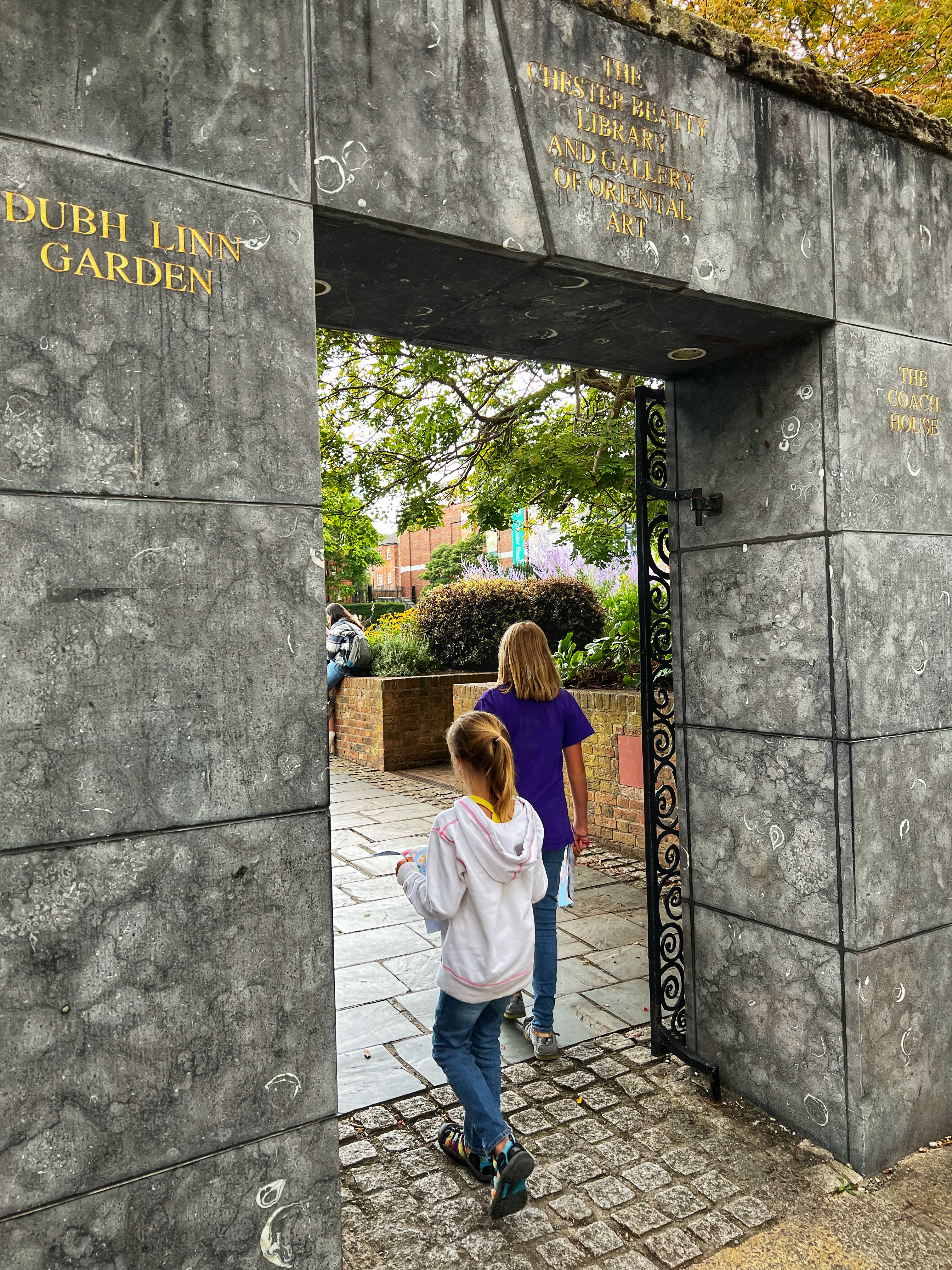 You have to exit the castle to go nearby to the Dubh Linn Garden where you will learn all about the origins of the name Dublin (hint: it had to do with the name Dubh Linn, meaning “black water”) and go nearby to the Chester Beatty library for refreshments and restrooms if you need it.