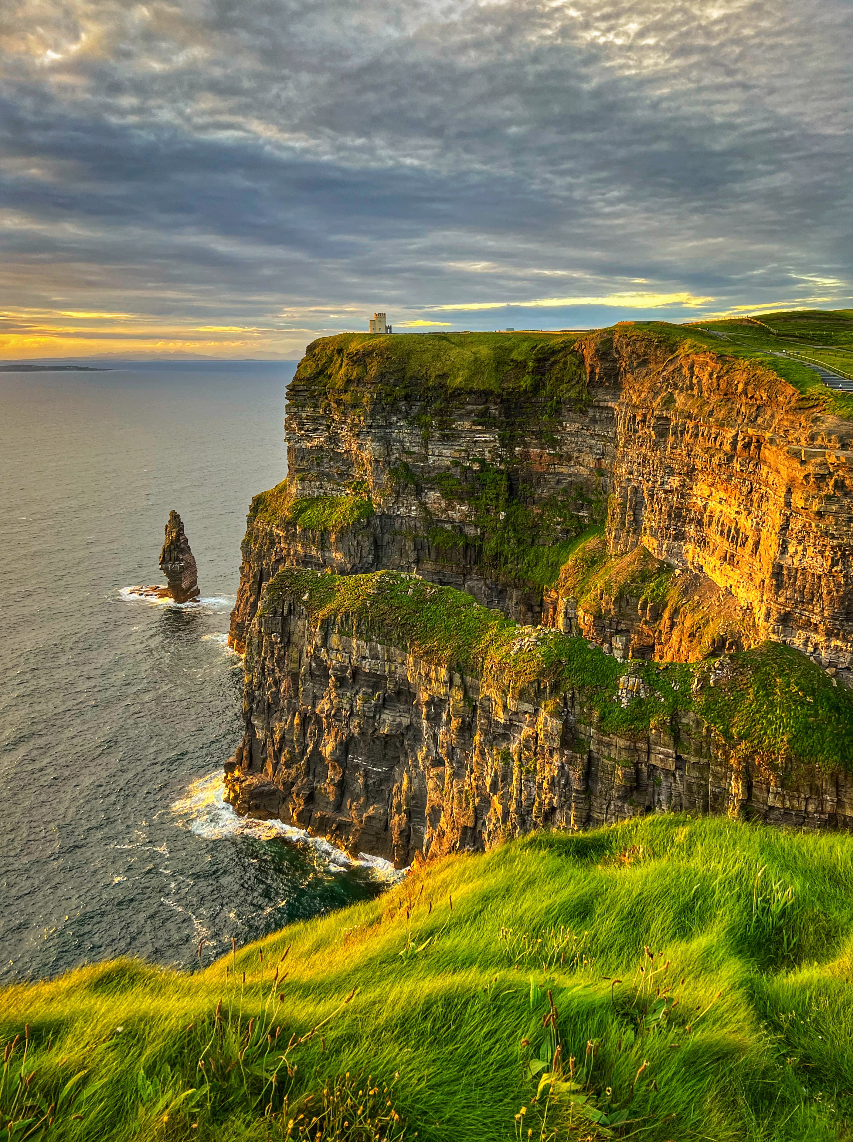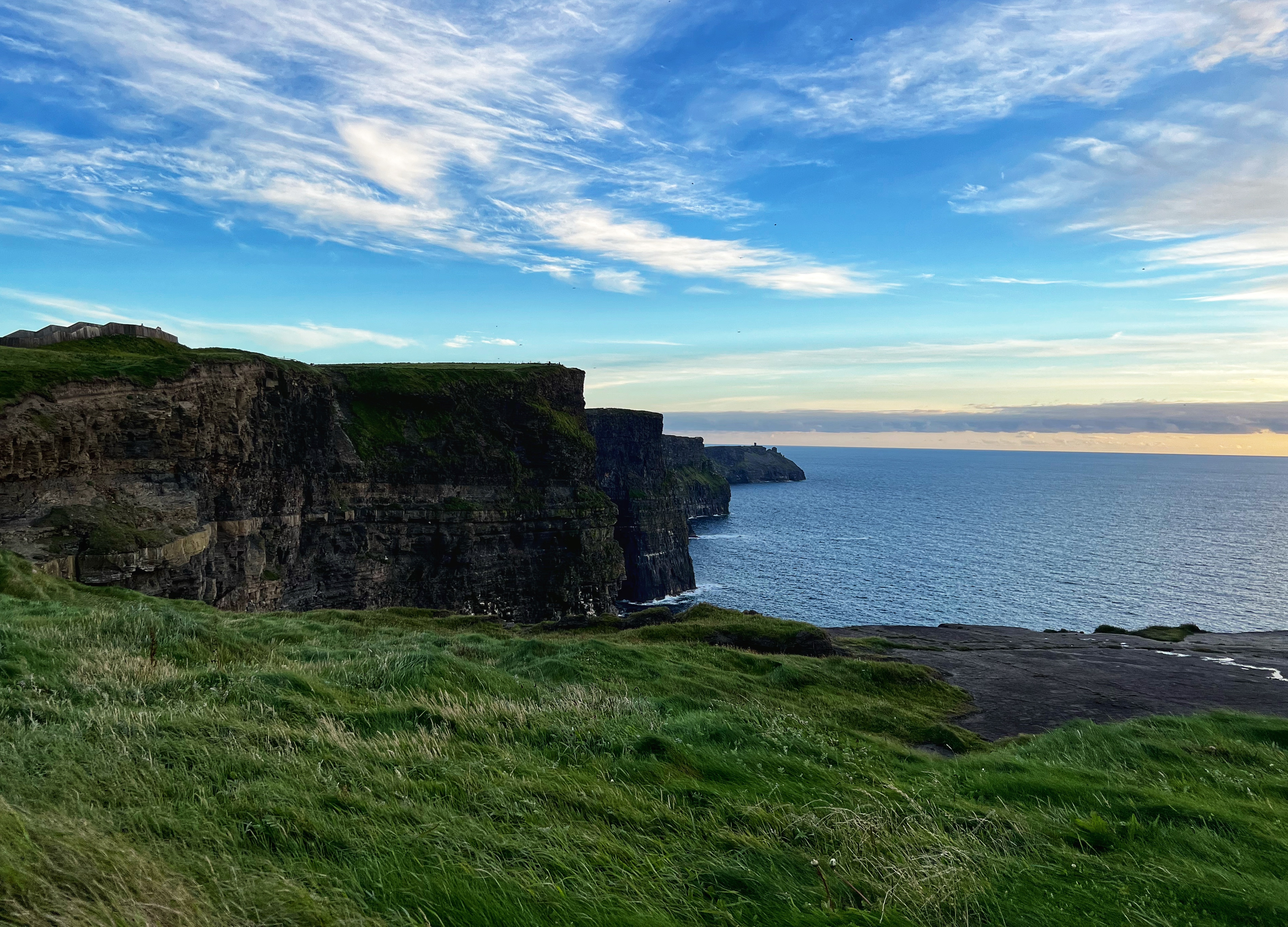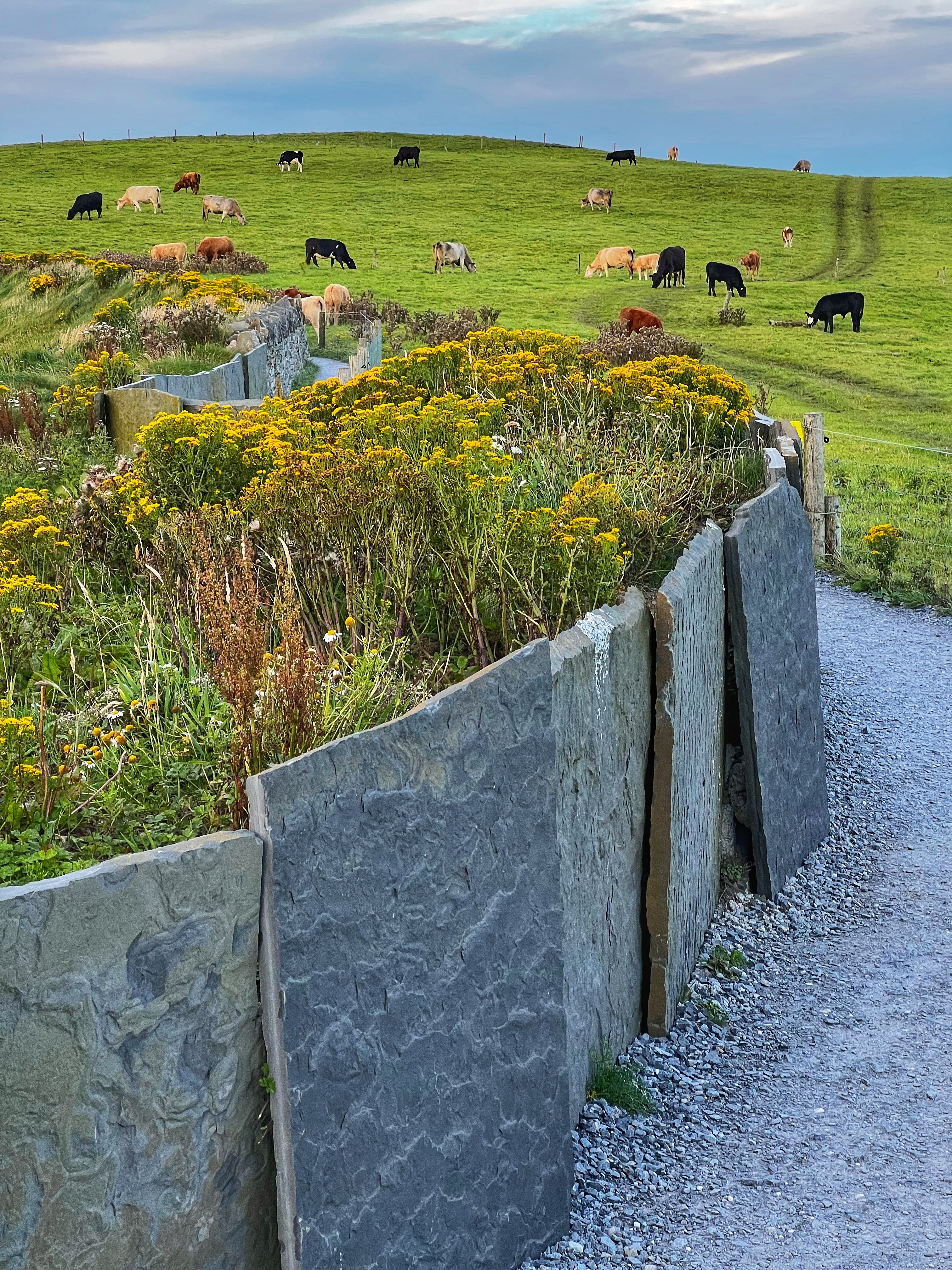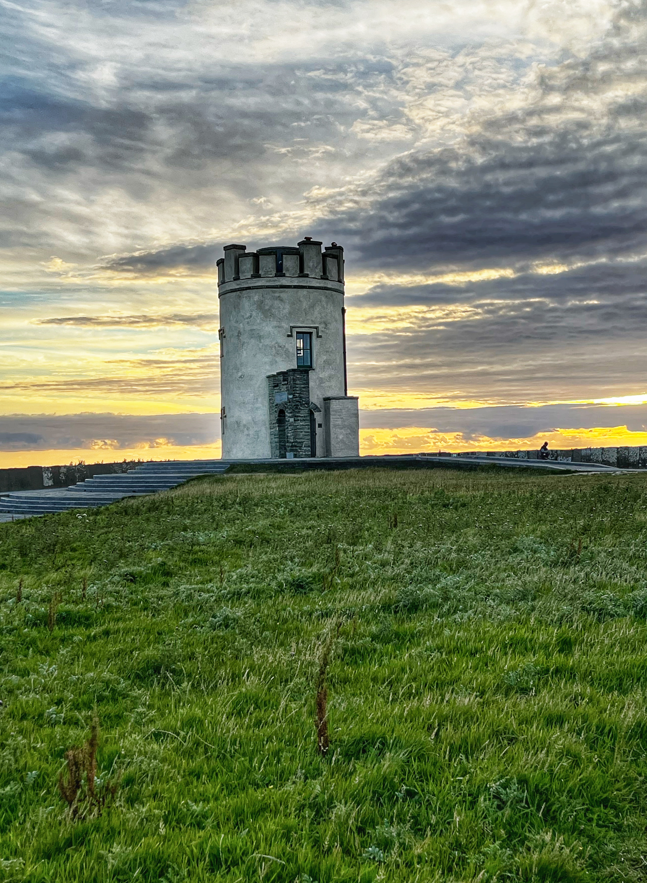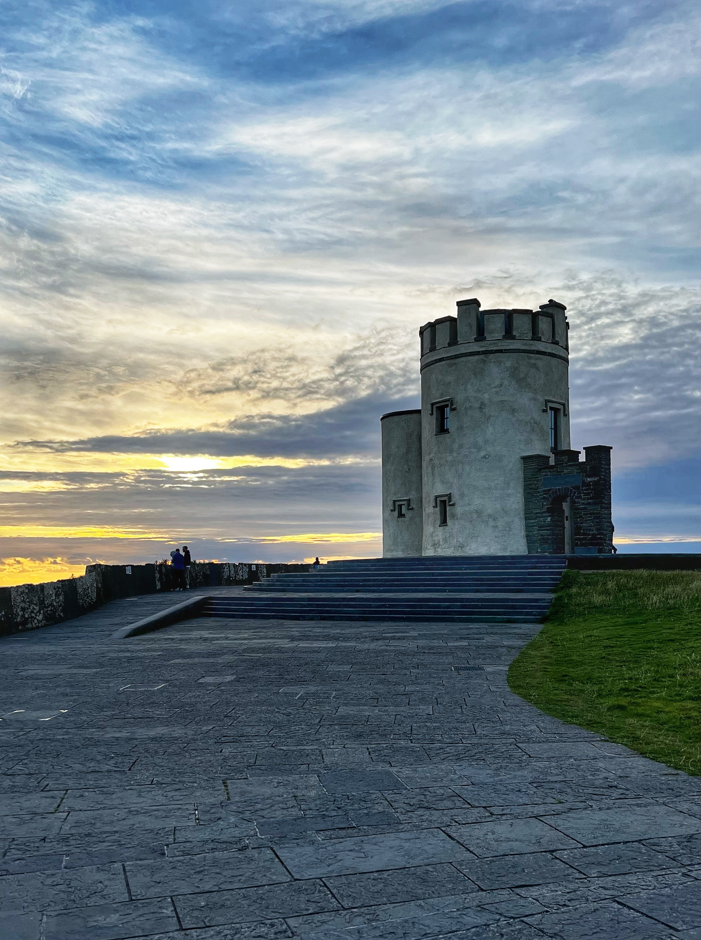 If you arrive a bit earlier, you can visit the Hungry Veggie (below) a food truck located on Burren Way path out to the south Cliffs of Moher viewpoint in the direction of Hag’s Head. I wish we could’ve had a bite to eat here before they closed at 5PM. I messaged the owner on instagram @thehungryveggiefoodtrailer to find out the hours and he said 12-5PM weather permitting, except Tuesdays. There are many, many trails along the cliffs of Moher. The most popular ones lead to O’Brien’s Tower to the north, and Moher Tower at Hag’s Head to the south. We didn’t have time to hike all the way to Moher’s Tower, but we were able to fit in walks from O’Brien’s Tower all the way to Johnston’s Quarry viewpoint area in the 2 hours we stayed to watch the sunset. The hike from the visitor center to Hag’s Head would take about one hour. The trails are very well marked and labeled (with warning signs), but people were still hopping over for closer-to-the-cliffs views. Just be extra careful, especially with kids.