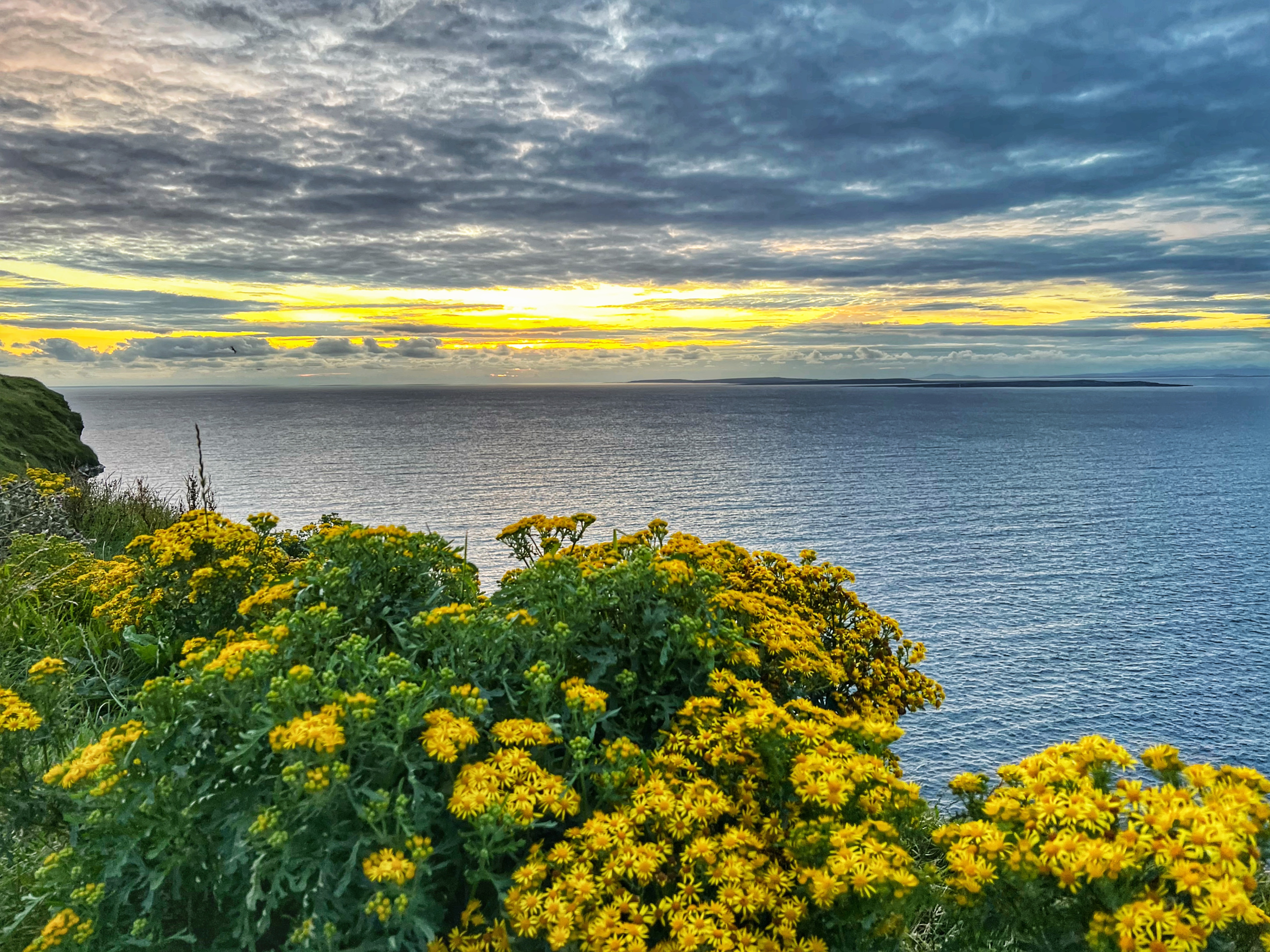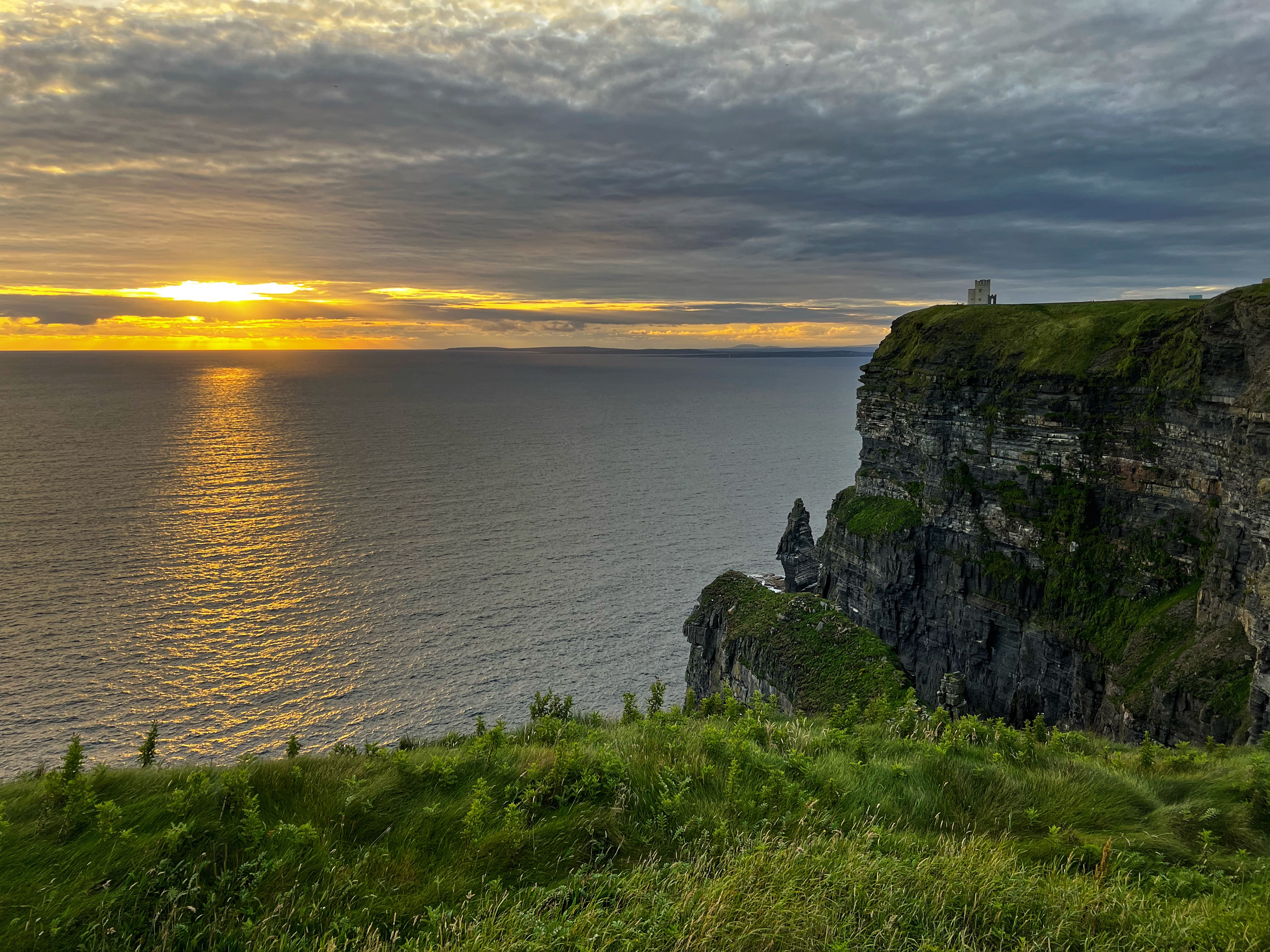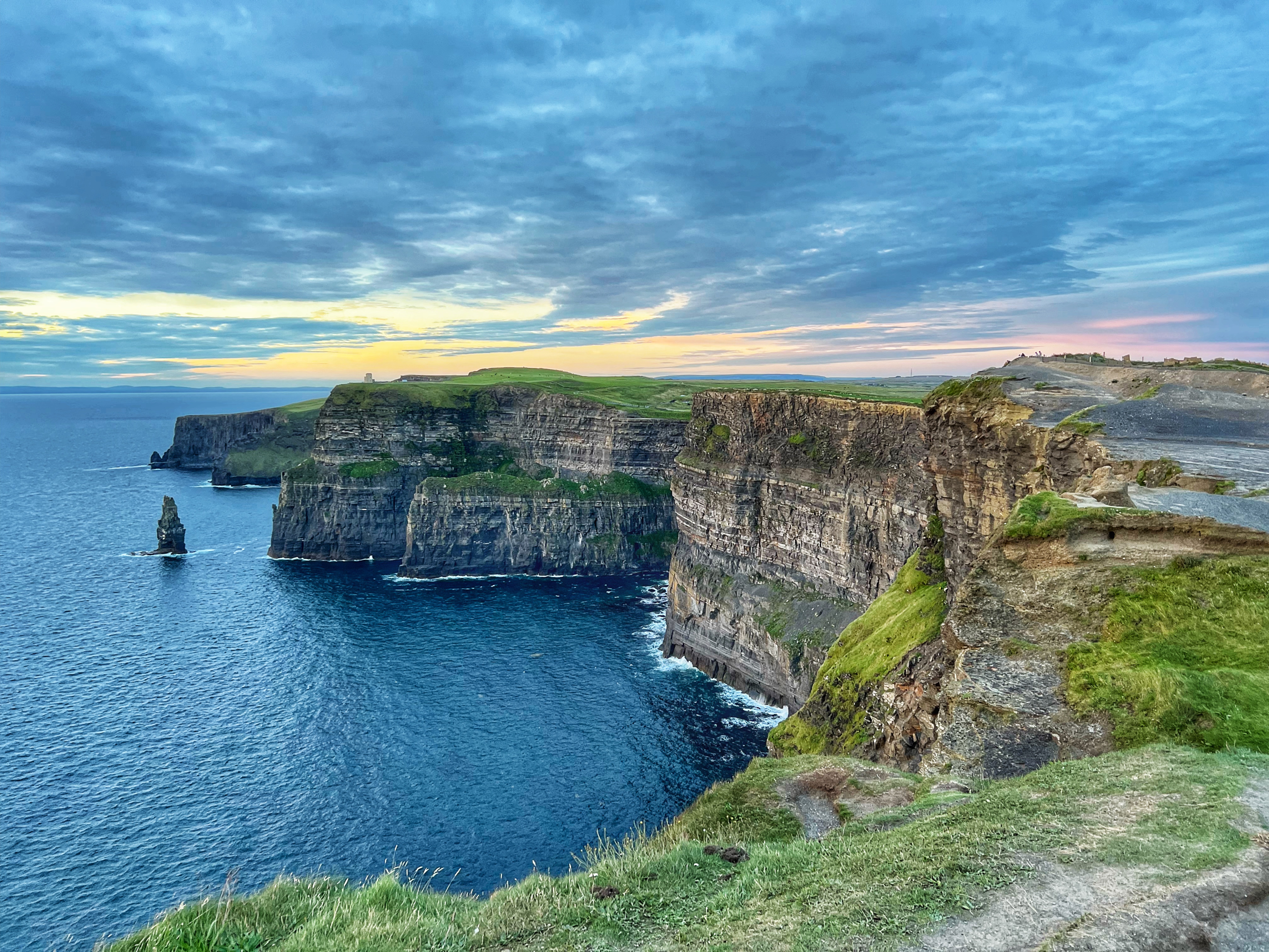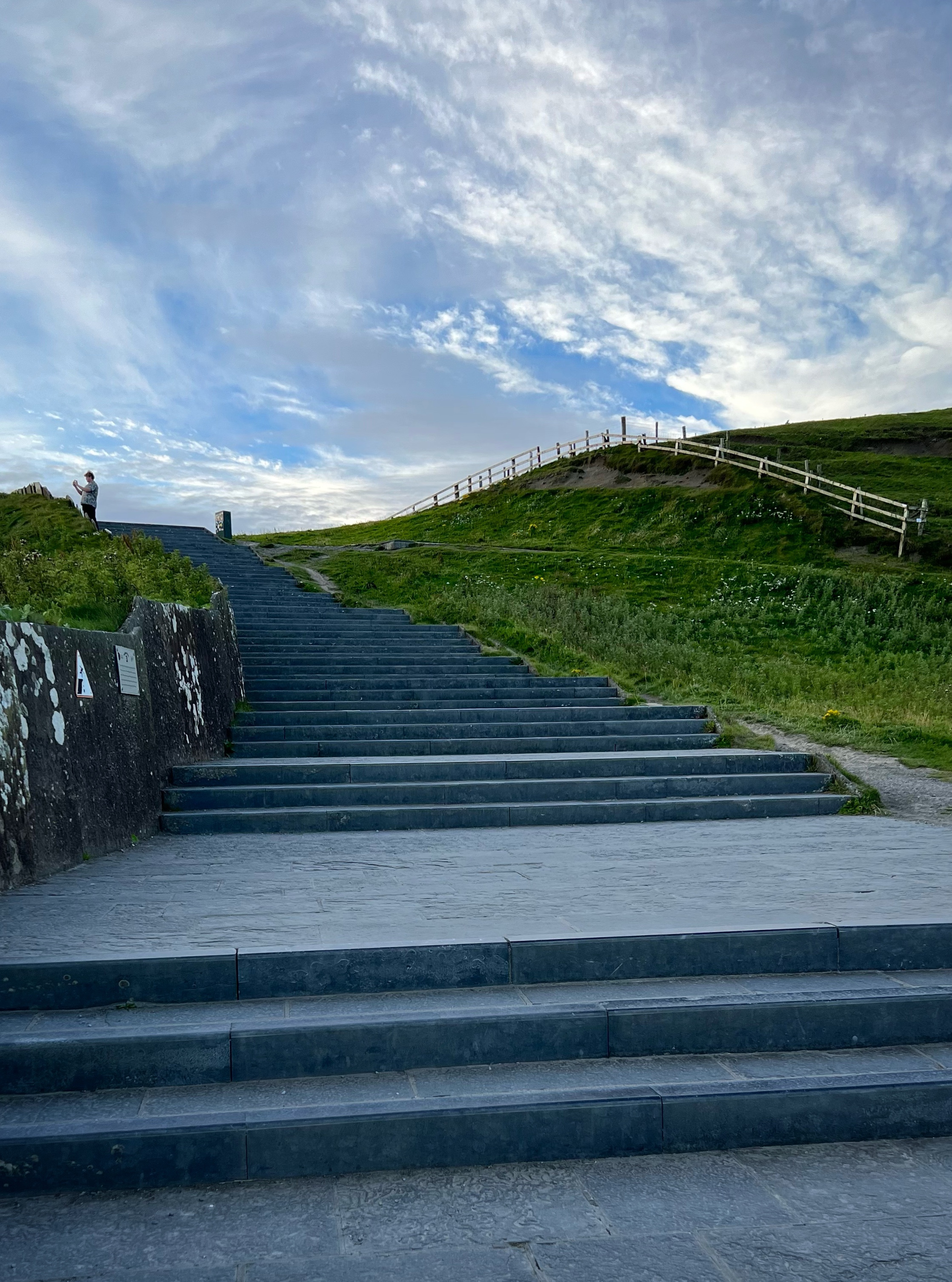 If you arrive a bit earlier, you can visit the Hungry Veggie (below) a food truck located on Burren Way path out to the south Cliffs of Moher viewpoint in the direction of Hag’s Head. I wish we could’ve had a bite to eat here before they closed at 5PM. I messaged the owner on instagram @thehungryveggiefoodtrailer to find out the hours and he said 12-5PM weather permitting, except Tuesdays. There are many, many trails along the cliffs of Moher. The most popular ones lead to O’Brien’s Tower to the north, and Moher Tower at Hag’s Head to the south. We didn’t have time to hike all the way to Moher’s Tower, but we were able to fit in walks from O’Brien’s Tower all the way to Johnston’s Quarry viewpoint area in the 2 hours we stayed to watch the sunset. The hike from the visitor center to Hag’s Head would take about one hour. The trails are very well marked and labeled (with warning signs), but people were still hopping over for closer-to-the-cliffs views. Just be extra careful, especially with kids.