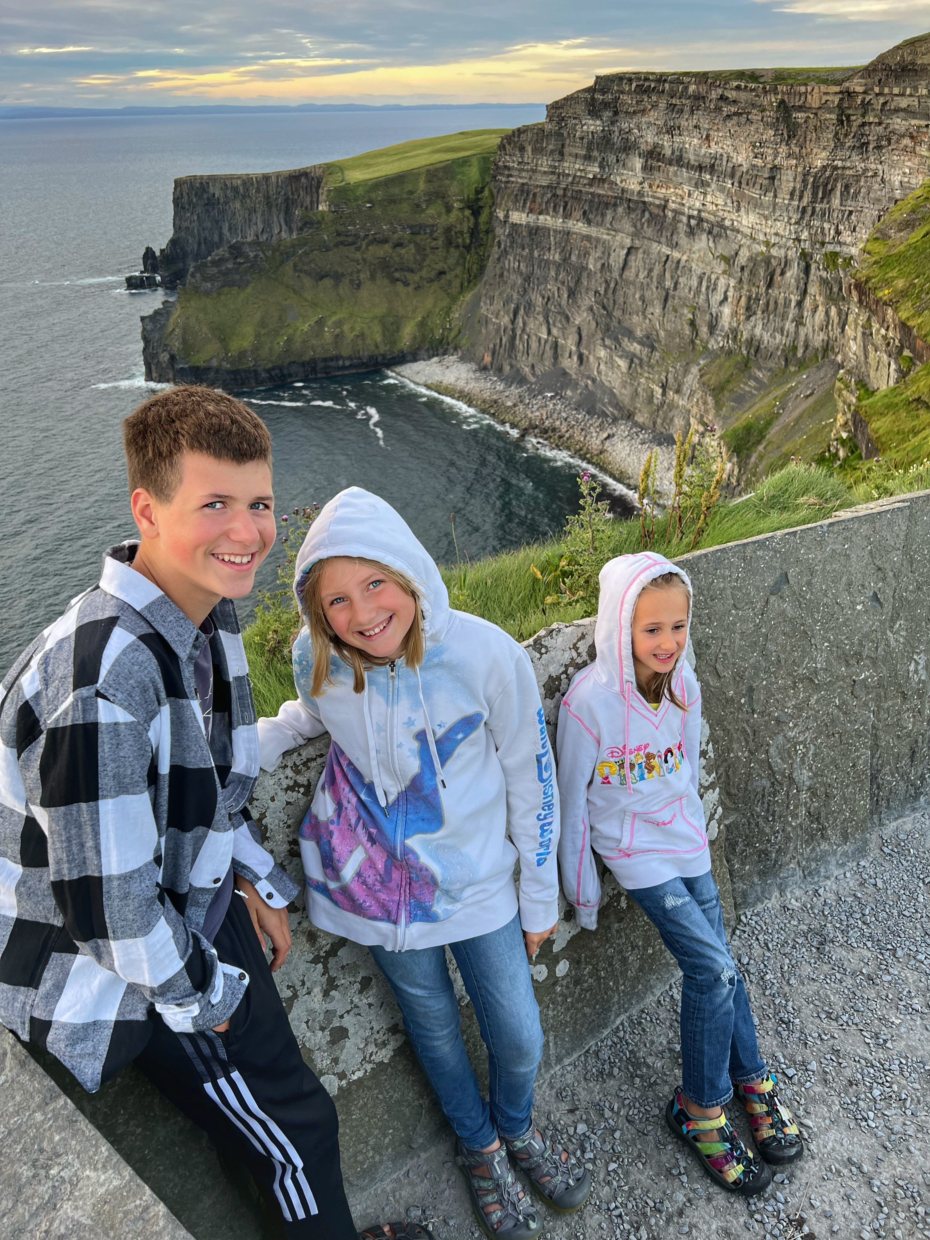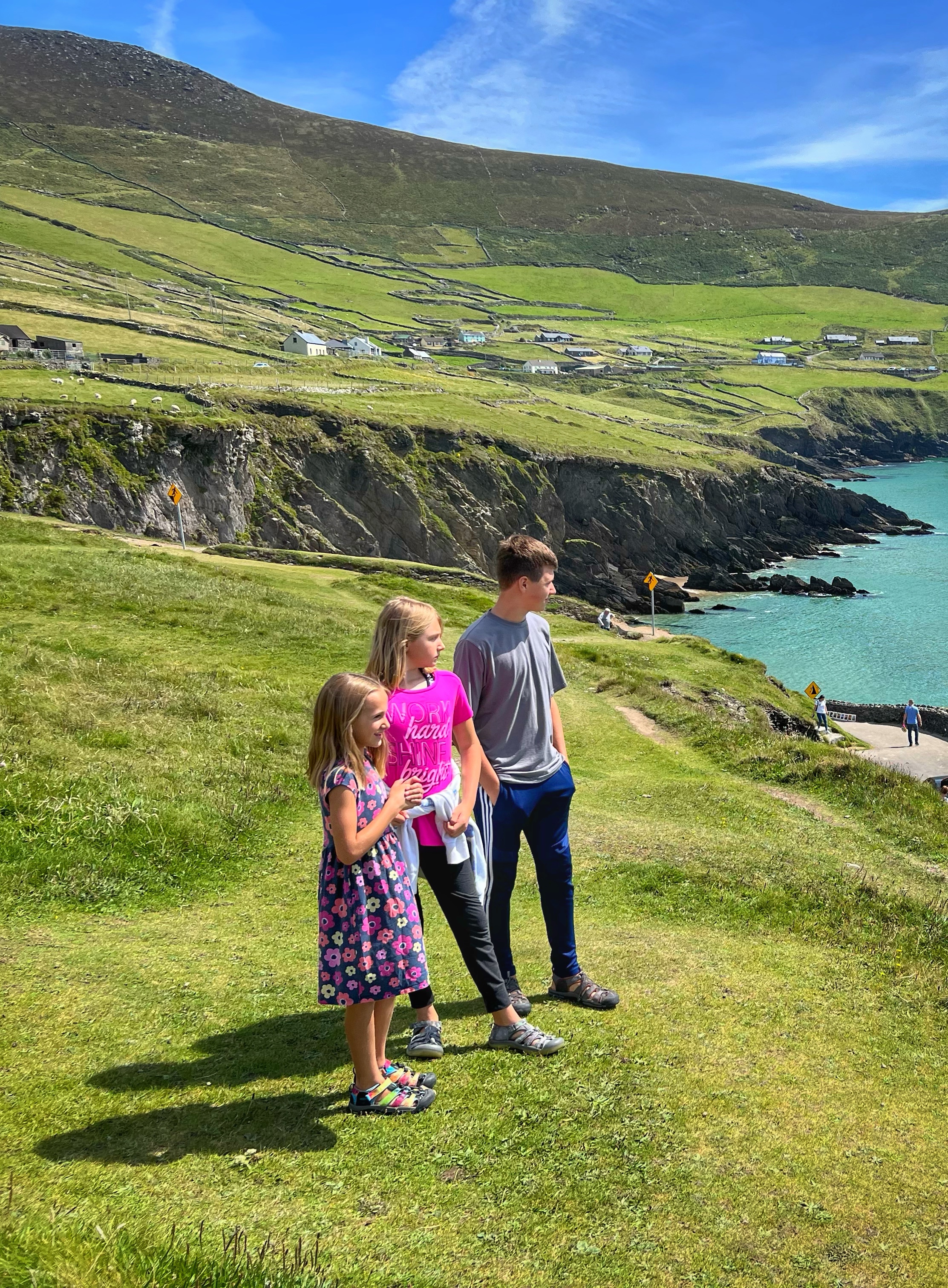 It was a phenomenal evening, punctuated by happy grazing cows and a glorious sunset. Our first night sleeping in the campervan was great. The kids loved it – it’s very comfortable – and after a full day of touring Dublin, driving across Ireland and hiking the cliffs of Moher, everyone was pooped. The next day promised blue skies for our drive south, and some very memorable stops…
