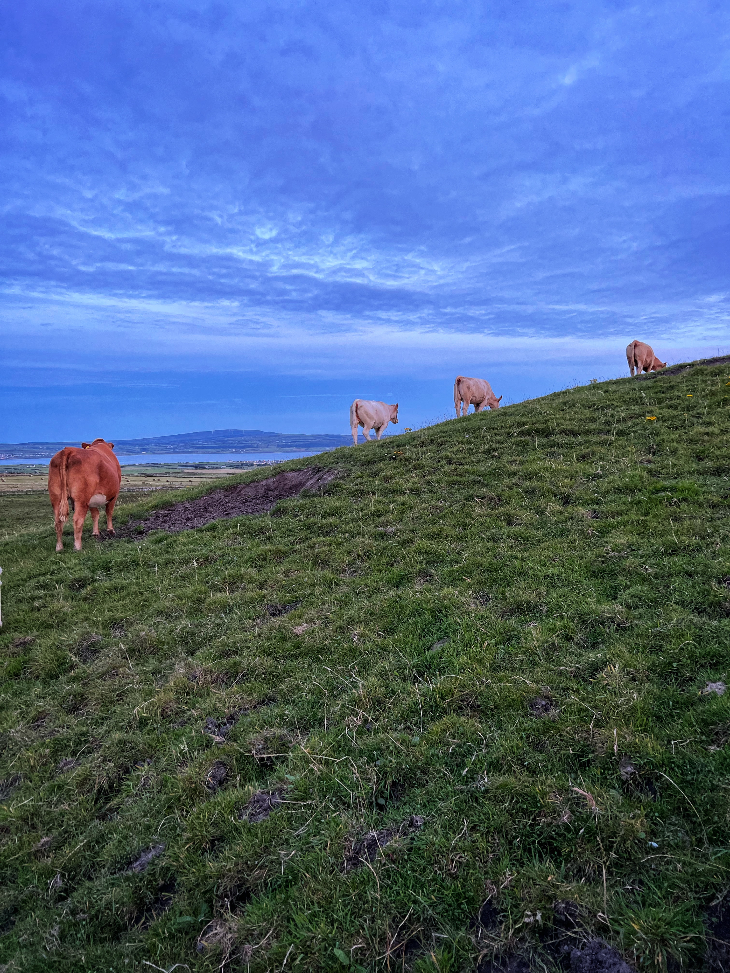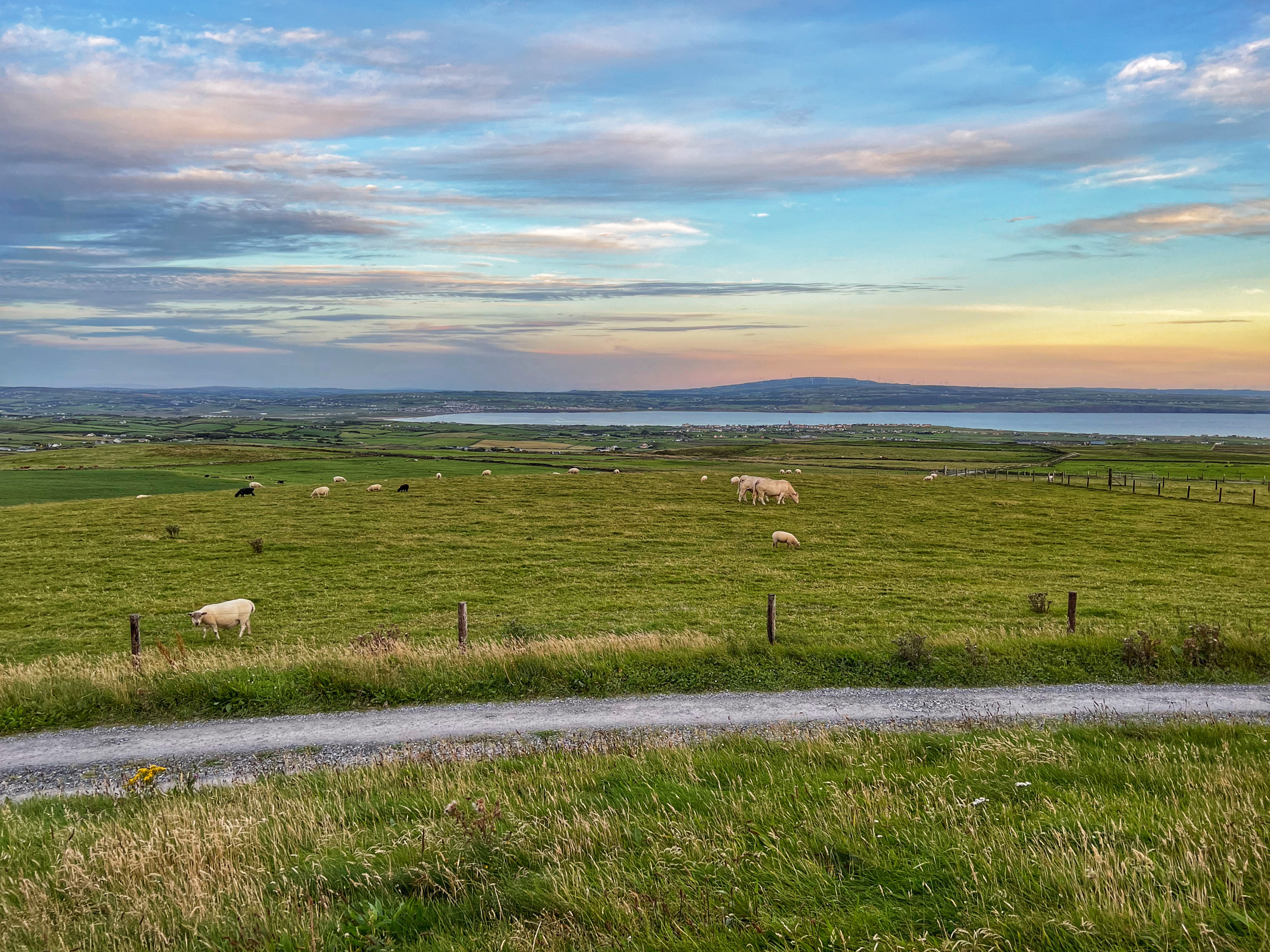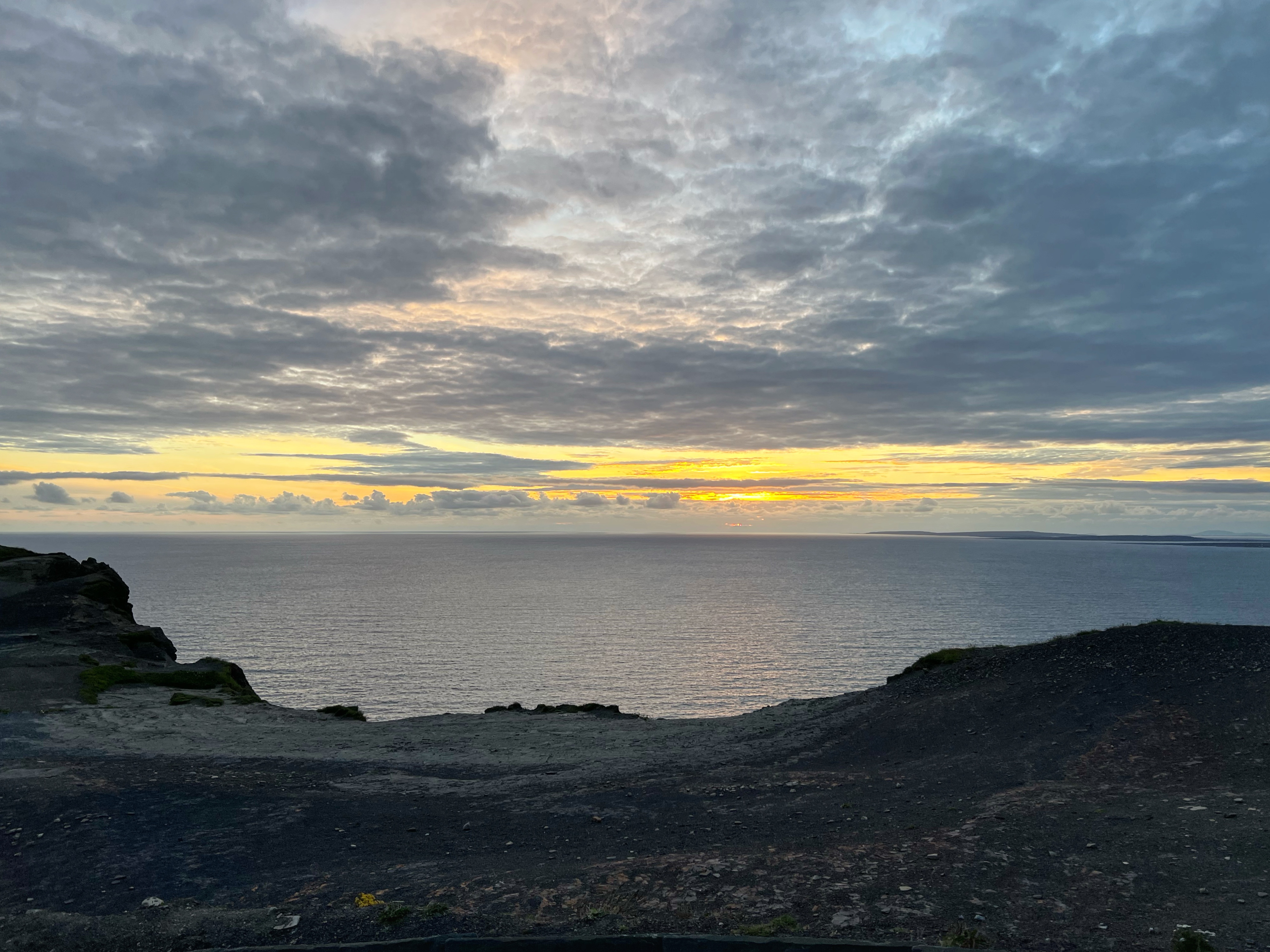 So we finally have this great, comfortable rig – our home for the week – but where do we stay? We were determined to find free places to park each night, and had great luck using the park4night app. After loading up on groceries at Lidl, we hit the road to cross the island of Ireland all the way to the Cliffs of Moher. We arrived in time for the most beautiful, chilly sunset walk along the cliffs, and just as the visitor center was closing (so we could use the rest room and save our onboard toilet for emergencies) so it was perfect timing. The best part? We paid ahead for parking and we were able to stay overnight in the Cliffs of Moher parking lot! We weren’t the only ones to do it, either. There were probably about 15 various vehicles using the lot overnight. It was a bit slanted, so we got creative to find level ground. But what a place to wake up to! We were glad to have food with us for the first night as there were no places to eat after the Cliffs of Moher experience shops closed at 7PM. Either way, this is a fabulous place for a hike and a picnic.
