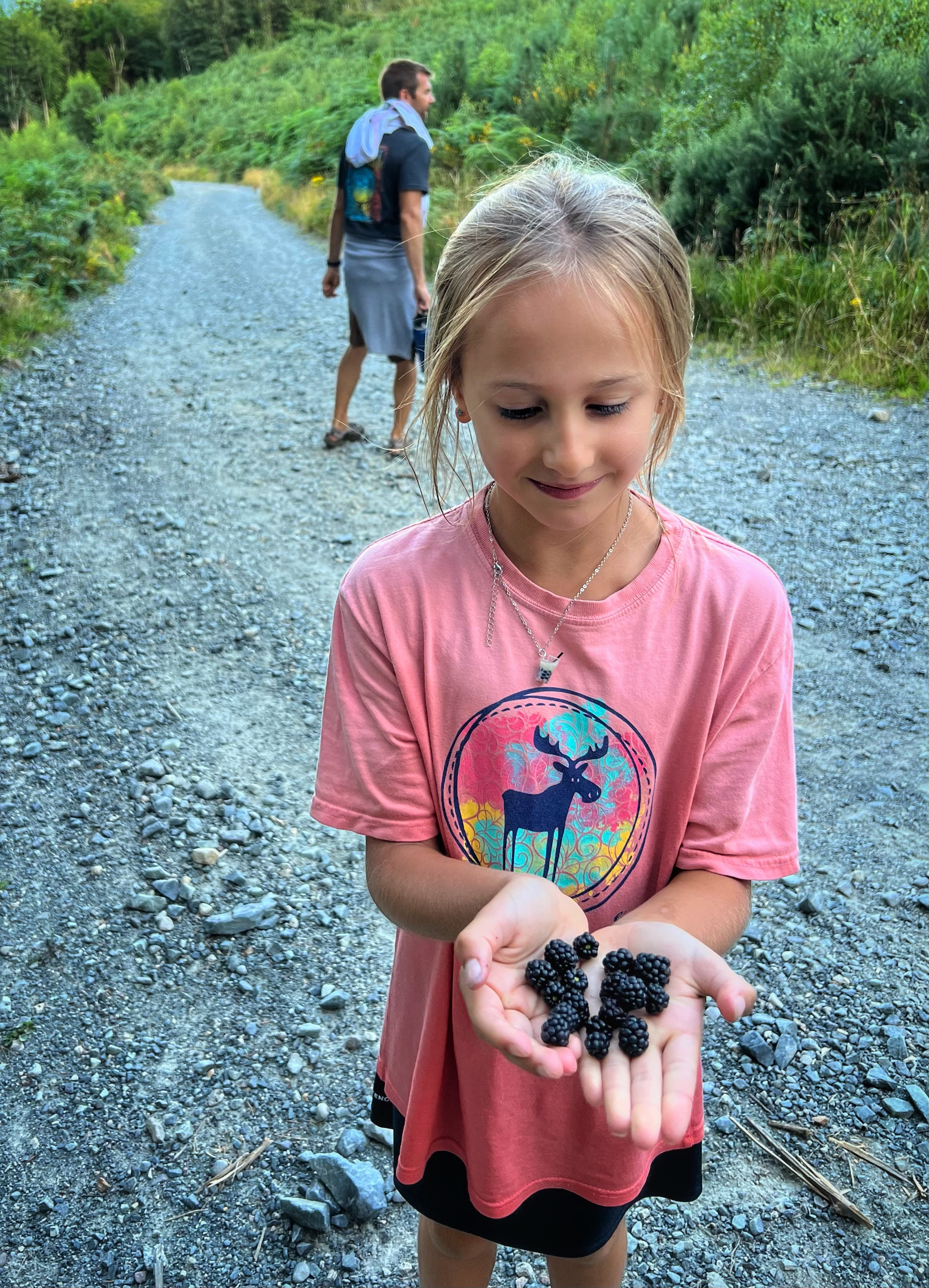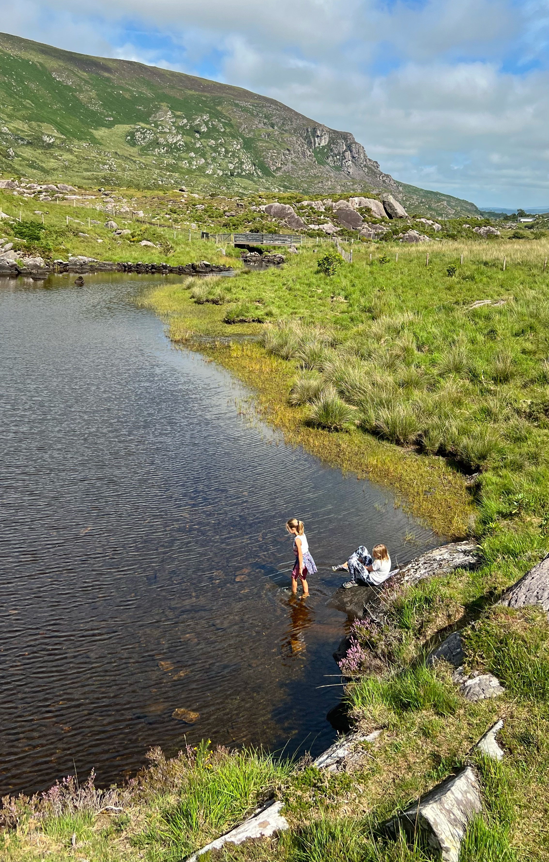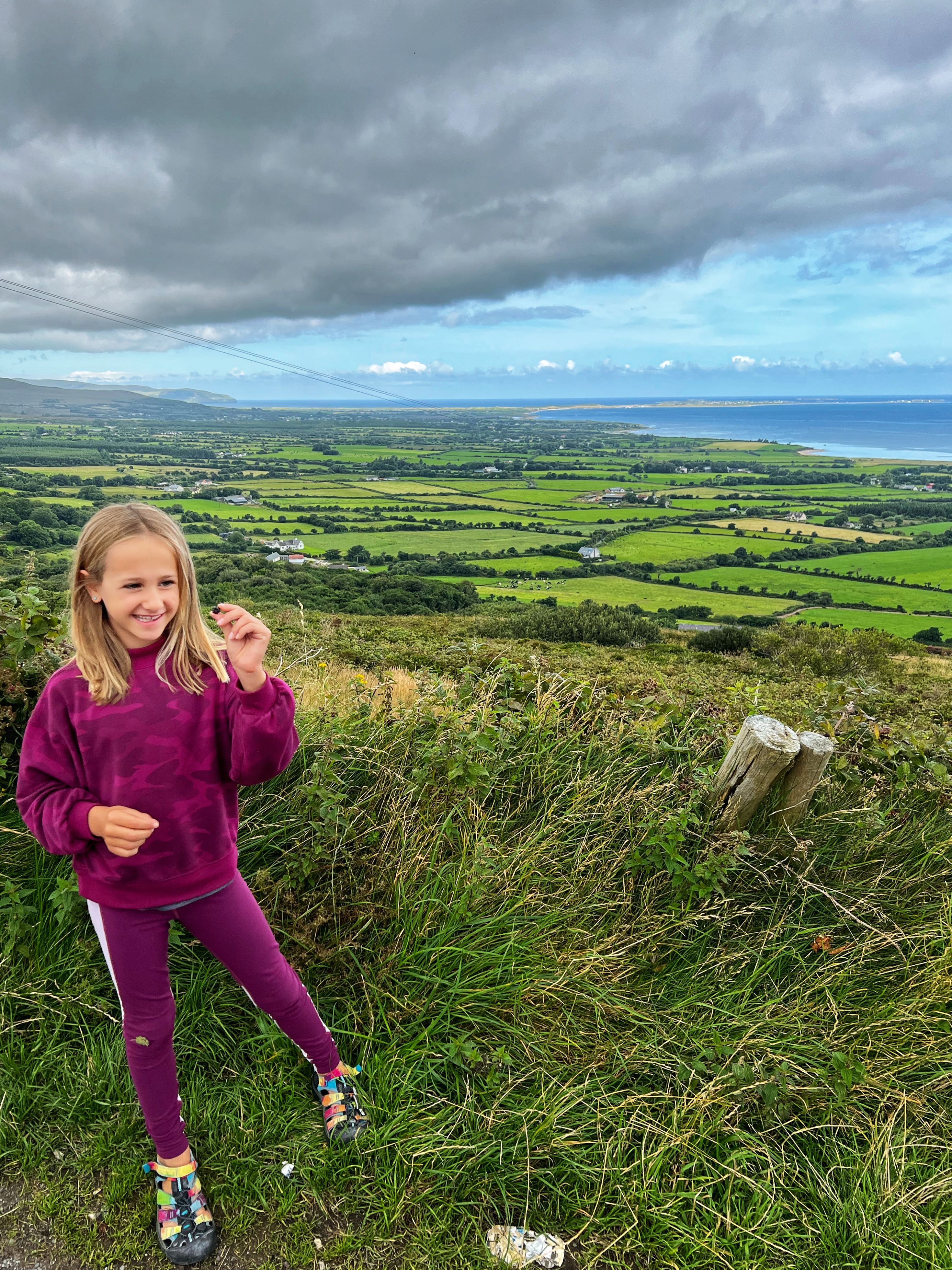 This beautiful view made me feel better after missing out on the 4-5 hour hike up and down Slieve Donard. We were pretty tired, too, and we probably would’ve had to start out much earlier to make that hike as a family. At least this way the kids could splash around in the river, eat ripe blackberries, and swing from trees…