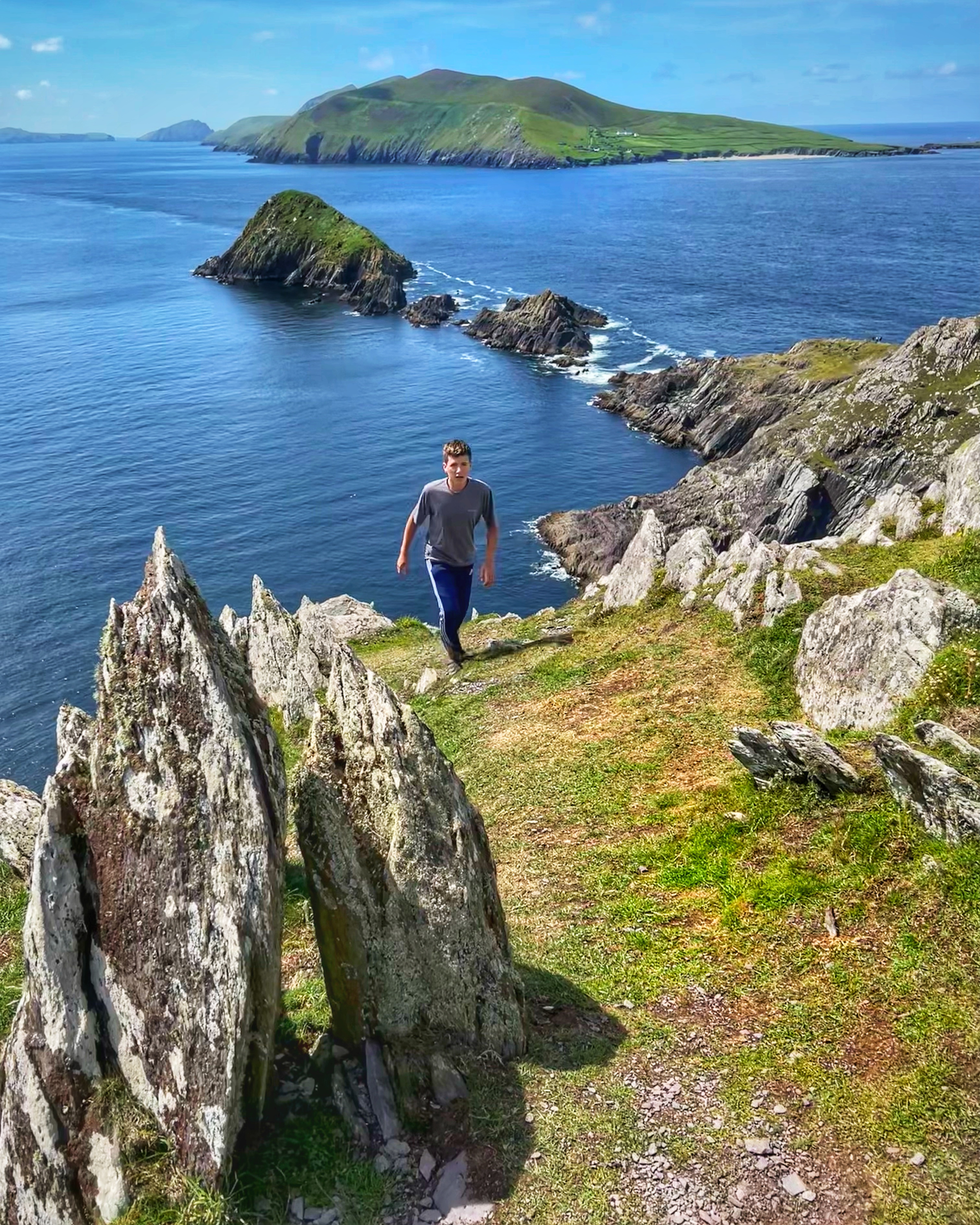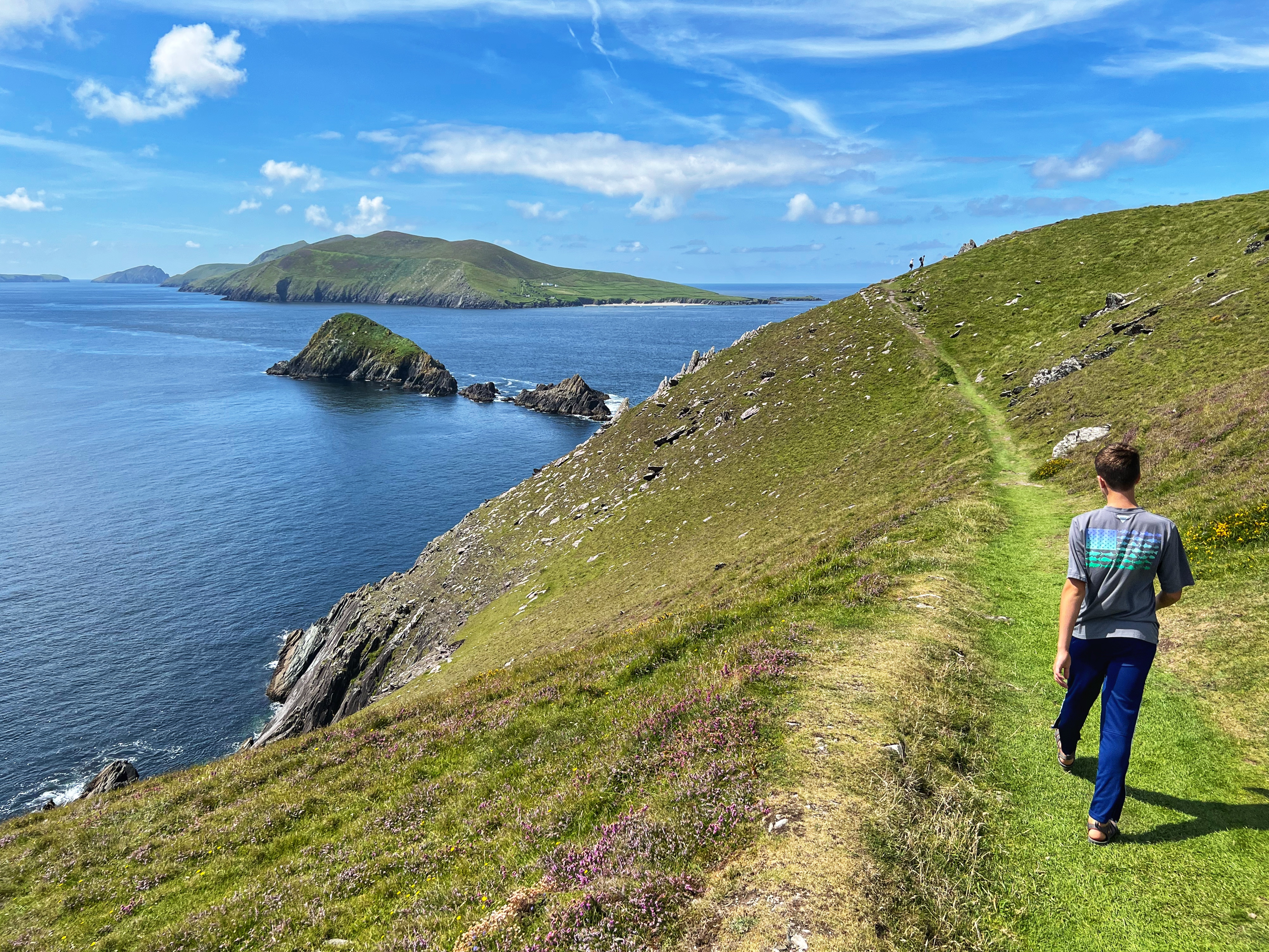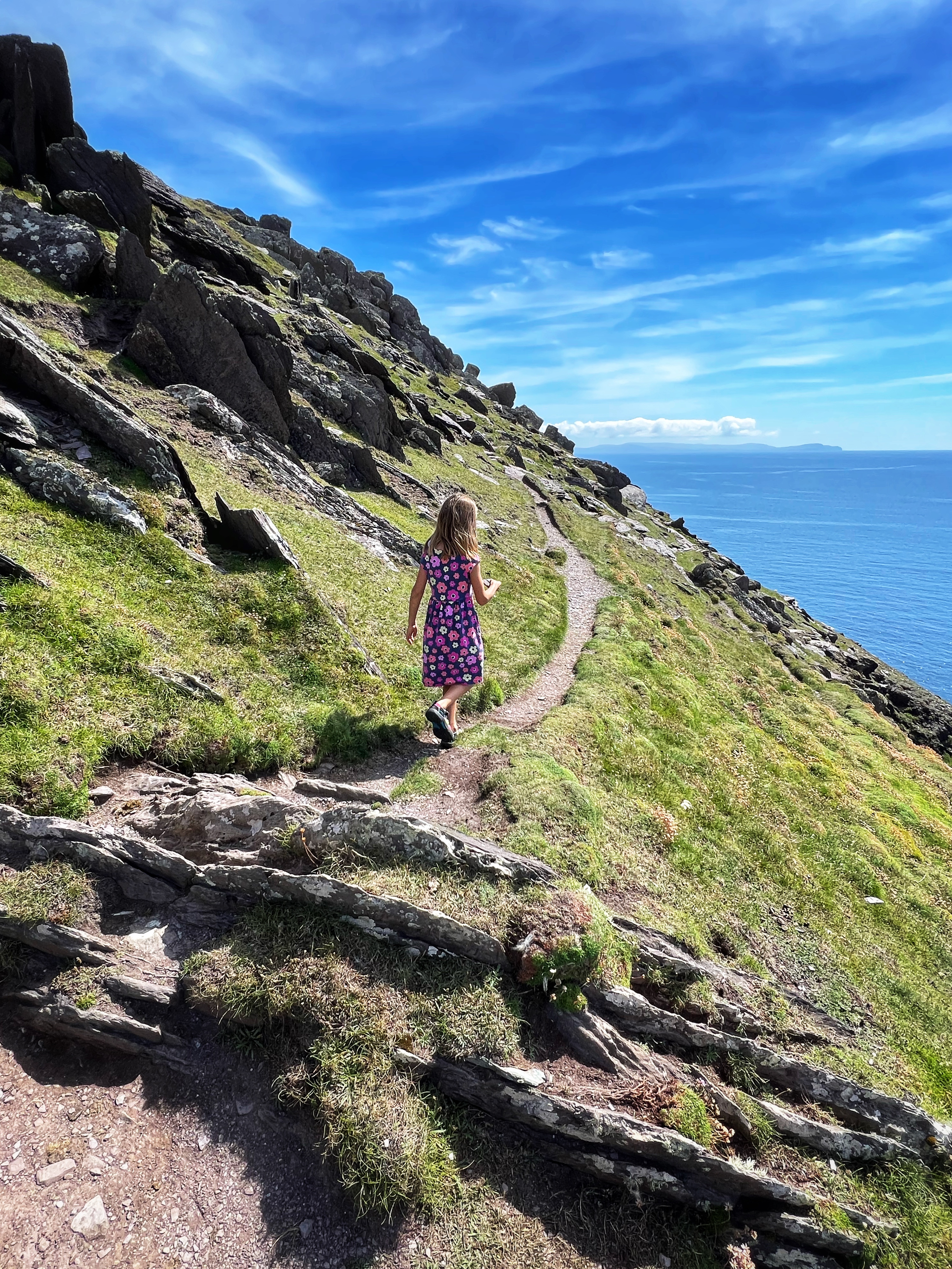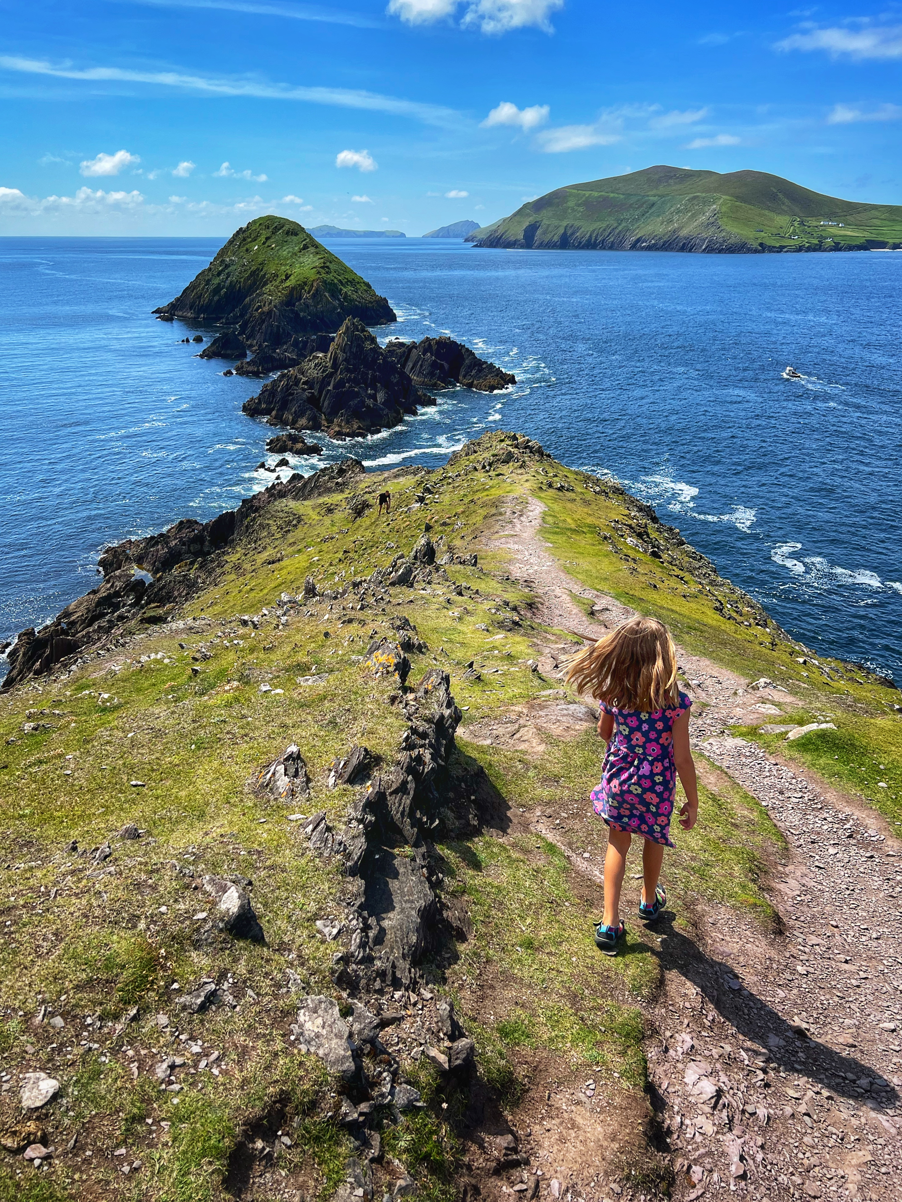 • Day 4: Morning landing tour of Skellig Michael (mom + son), fishing excursion (dad + daughters), drive Ring of Kerry to Killarney, Celtic Steps Show, stay Killarney.