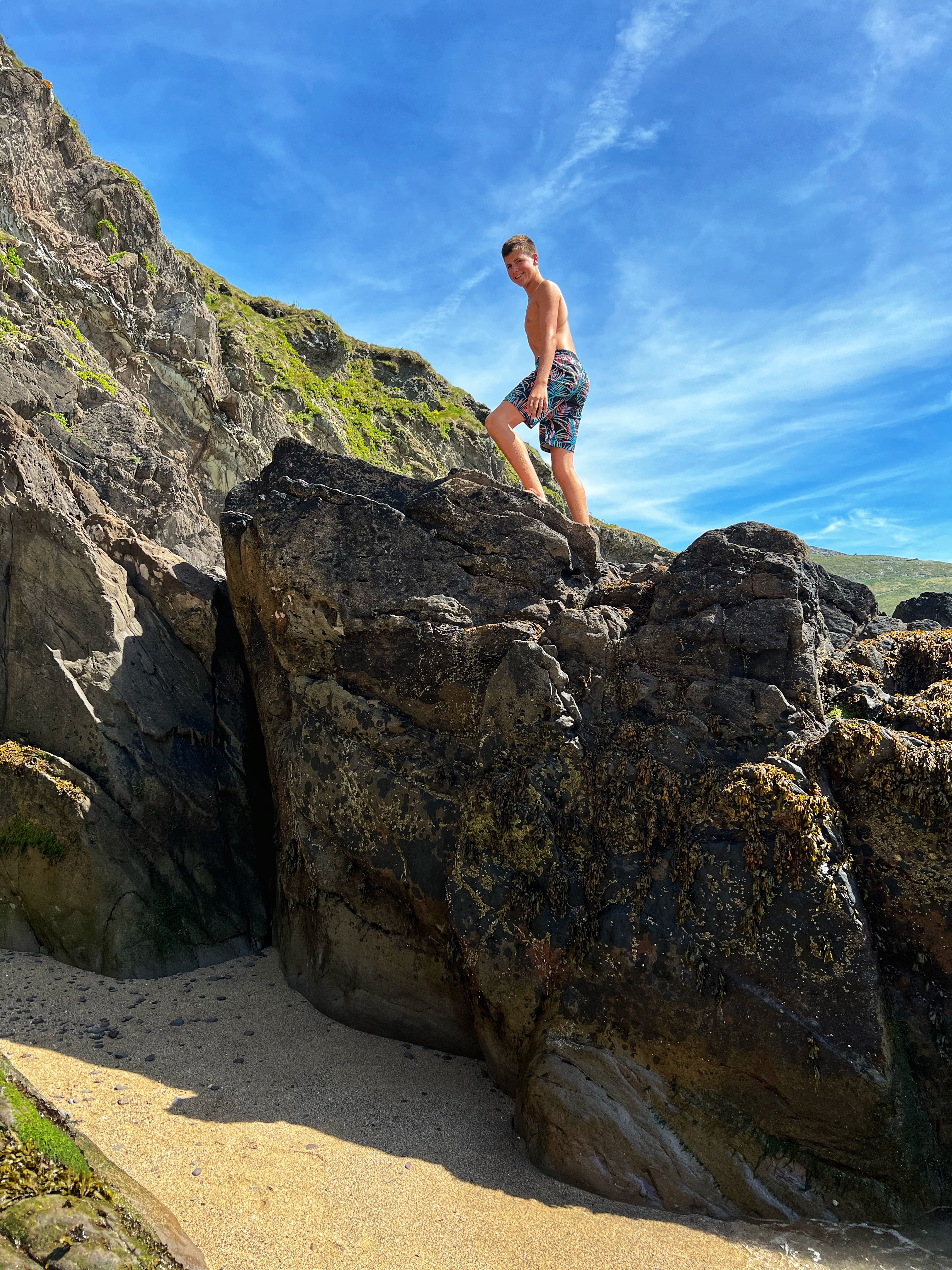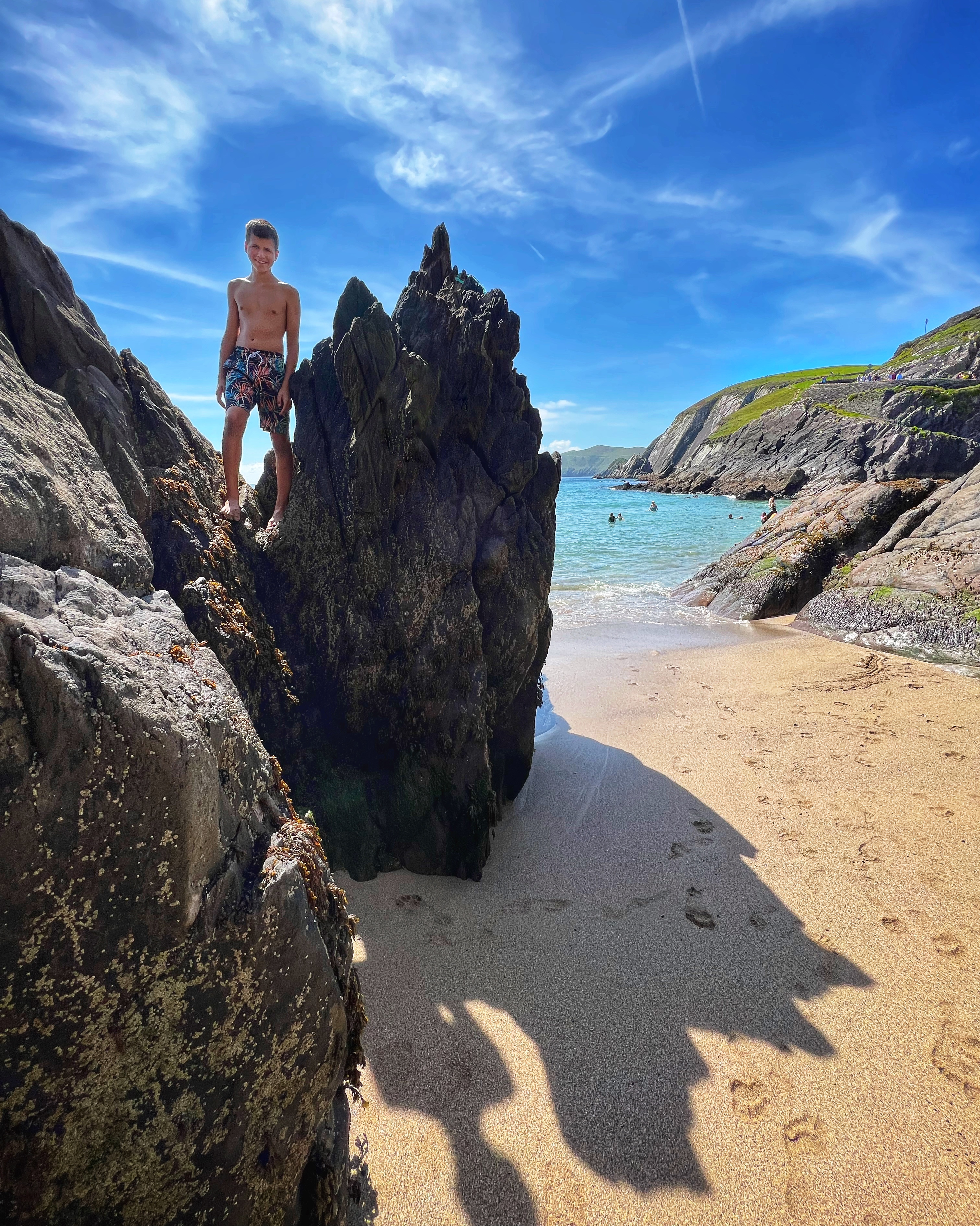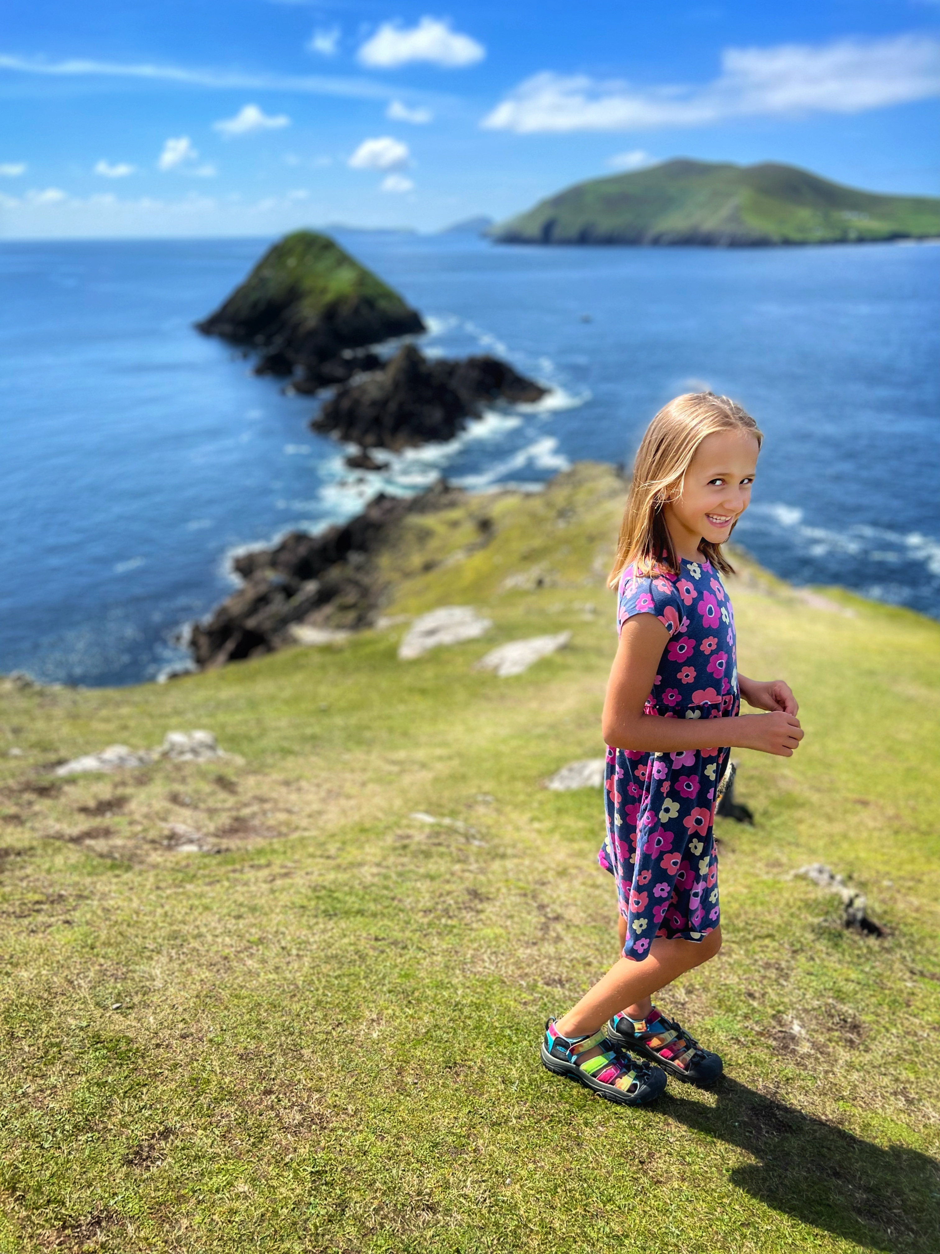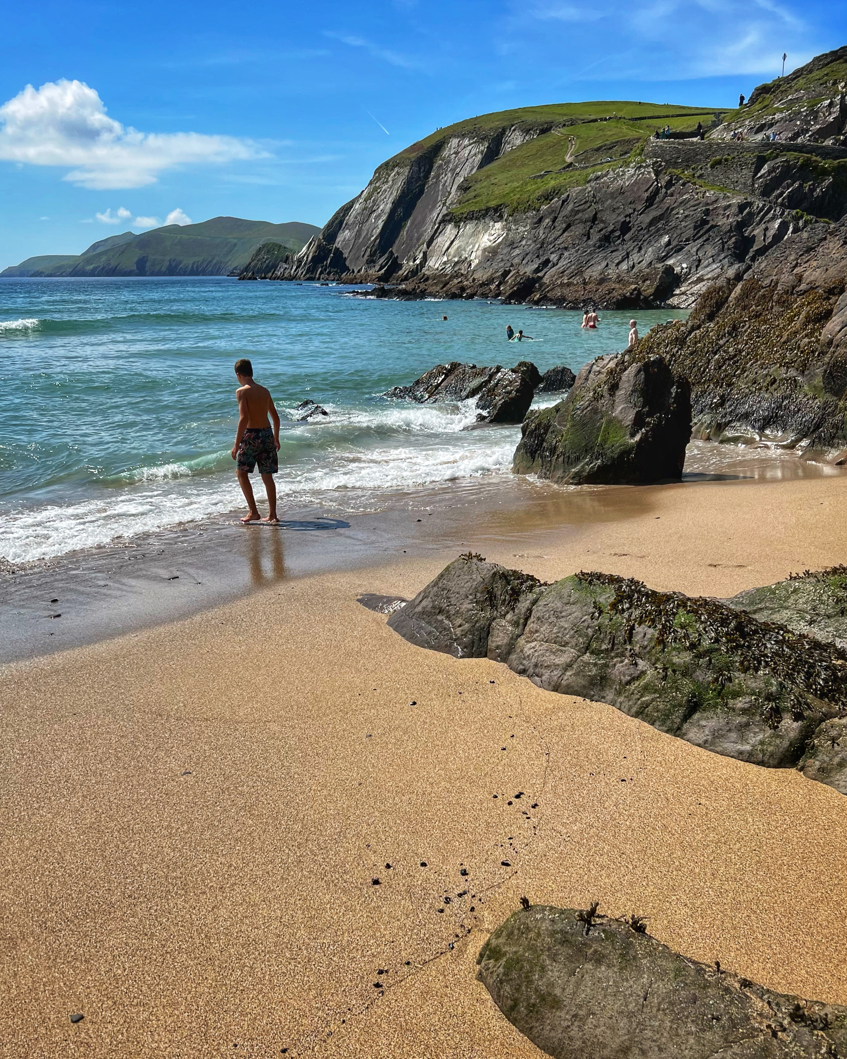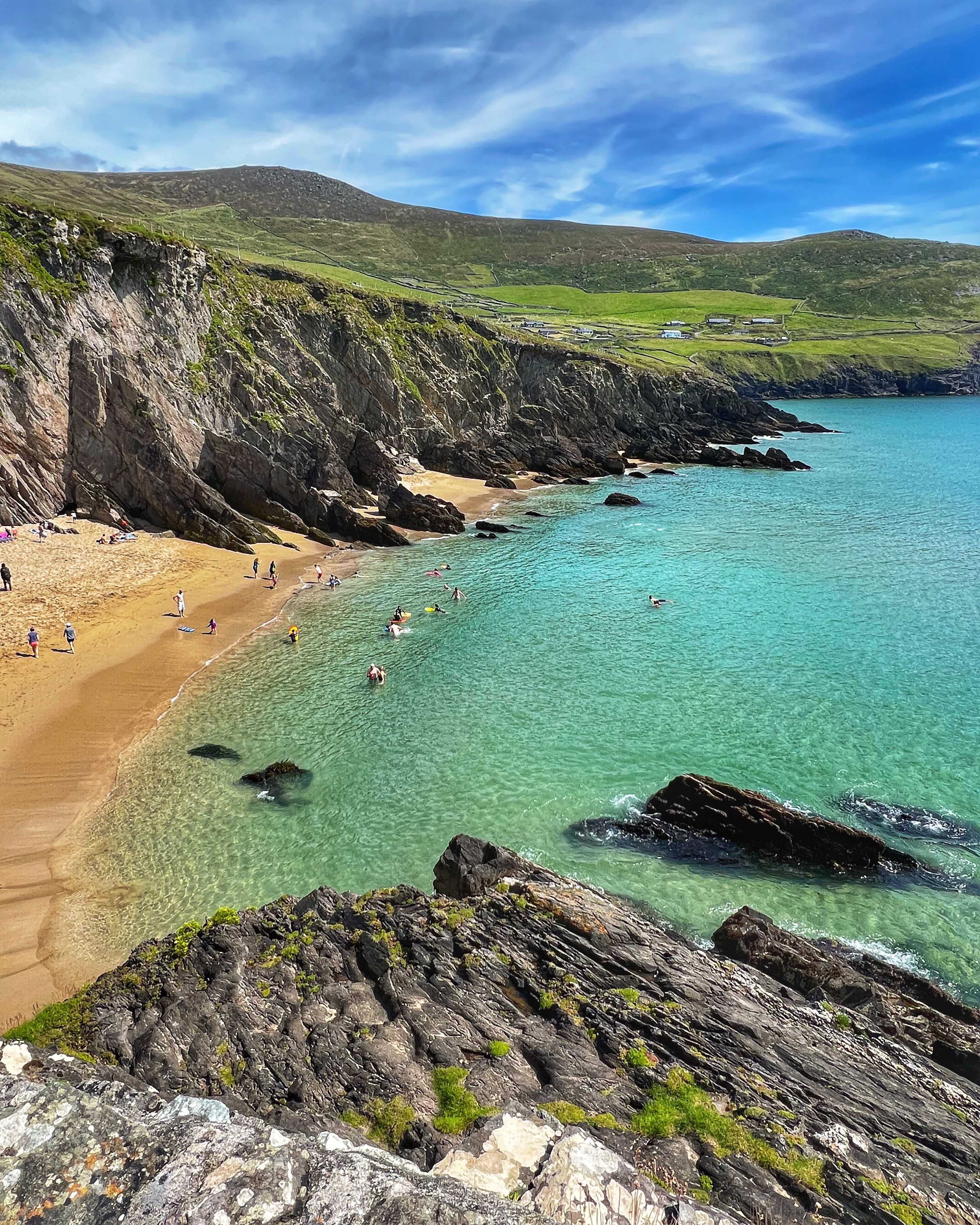 You don’t have to be a STAR WARS fan to appreciate the gorgeous rock formations and incredible vistas of Dunmore Head. It’s an absolute must visit if you ask me. If you luck out and get a warm, sunny summer day like we did, head down to Coumeenoole Beach right there next to Dunmore Head. It has impossibly turquoise waters (why?!) and although it was a chilly swim, the sand was warm and the landscape was so much fun for the kids to explore. We were glad to have a campervan here because there are no facilities anywhere – plan accordingly! There are other large beaches on the peninsula such as Fionn Tra Bay Beach and Clogher Strand, but Coumeenoole is secluded and in my opinion, the most beautiful.