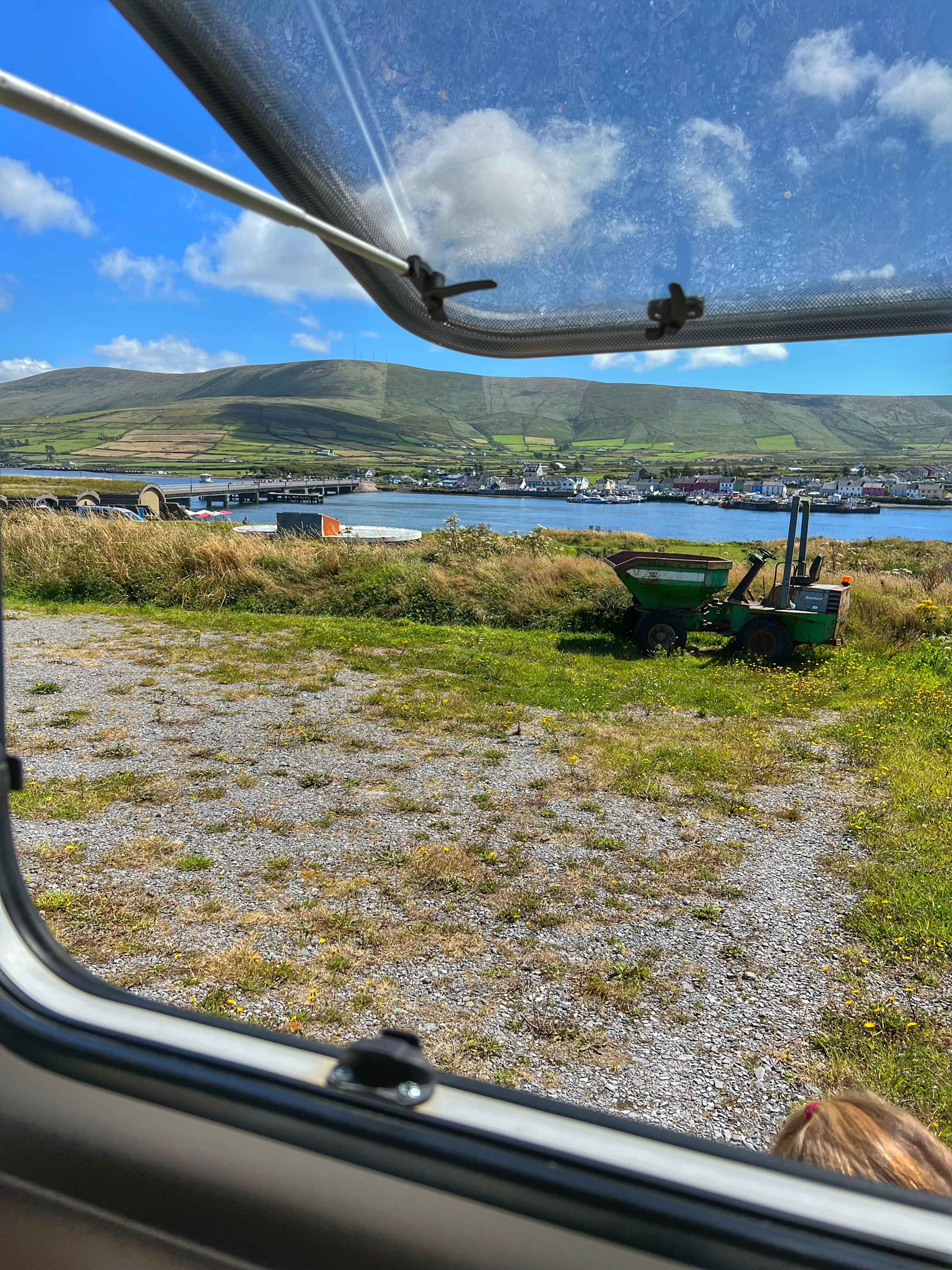 When we awoke, we were determined to make the most of the day and improvised an oil cap with rags and hair ties so we could drive the short distance to our destinations for the day. We made sure to drive slow and keep RPMs down. We confirmed that the oil cap would be delivered the following morning and that Indiecampers would reimburse us for the purchase of the new oil cap plus the cab rides we needed to take to and from Killarney the previous night. This was a very nice relief, and props to Indiecampers for solving this so smoothly.