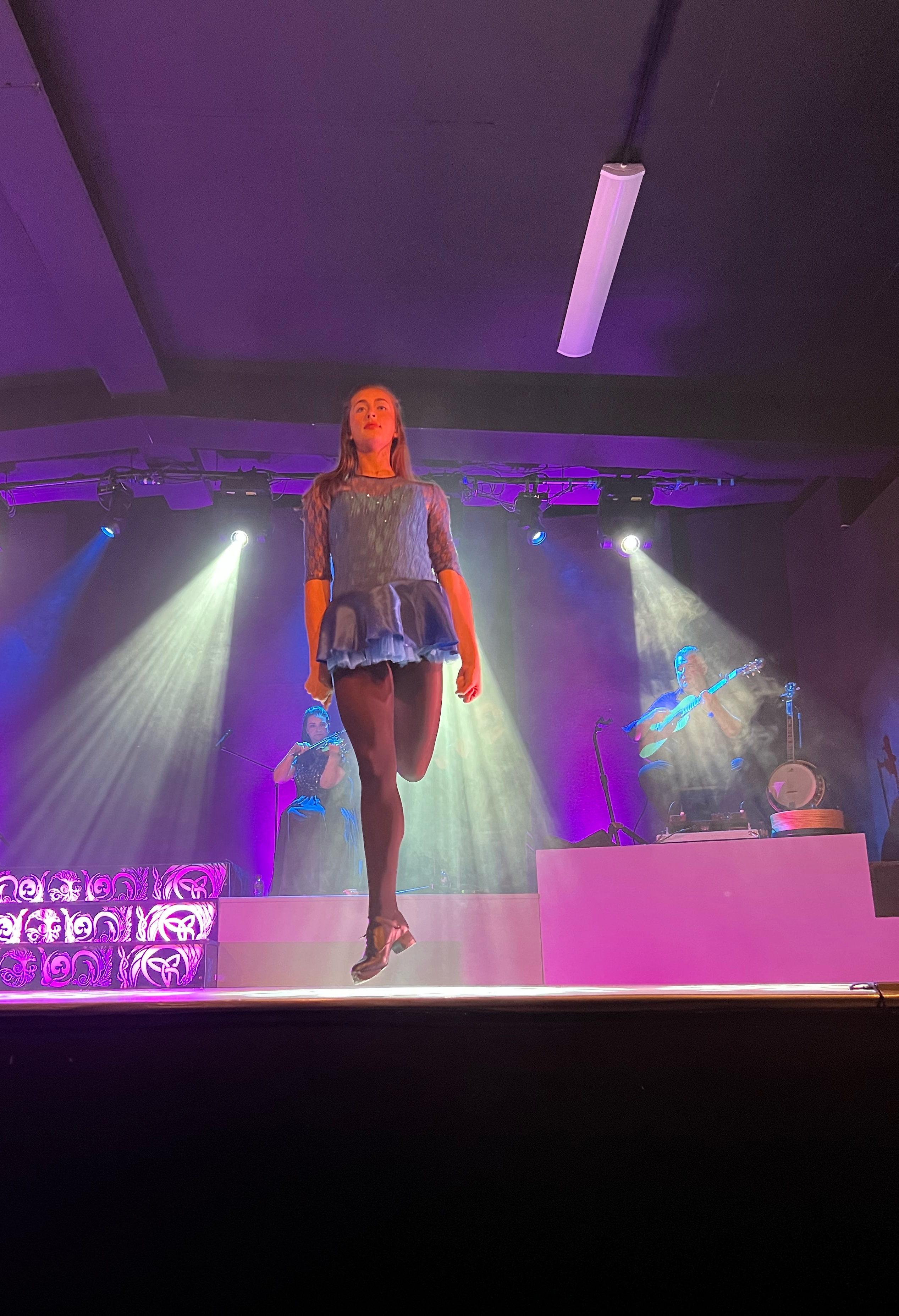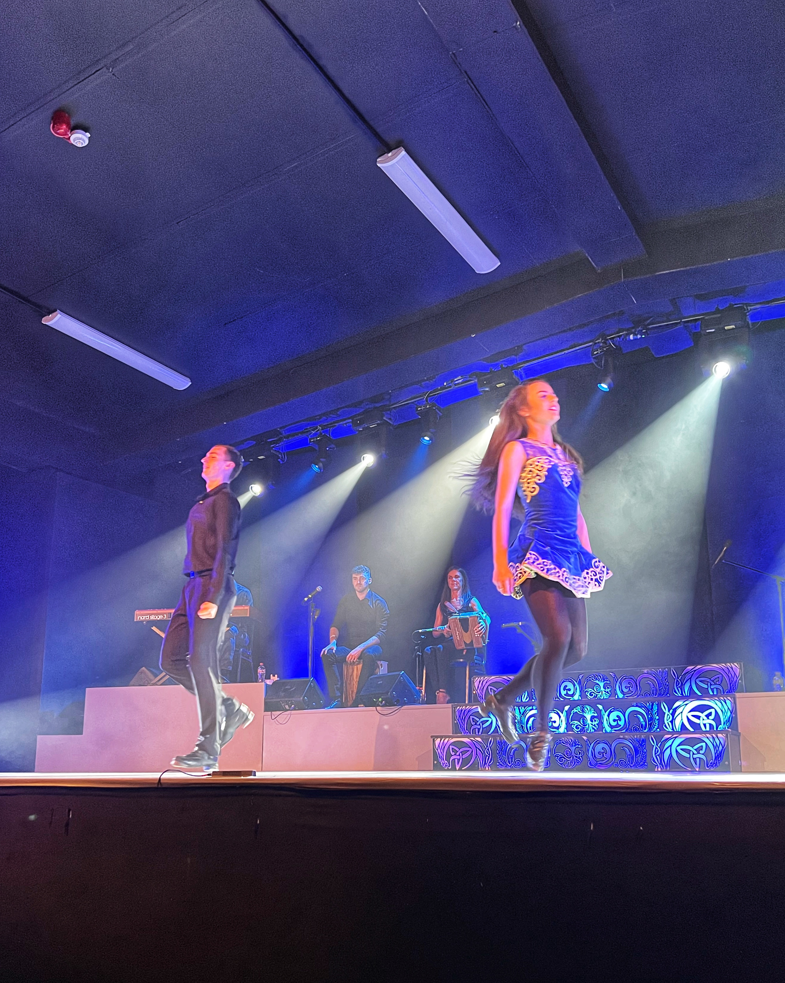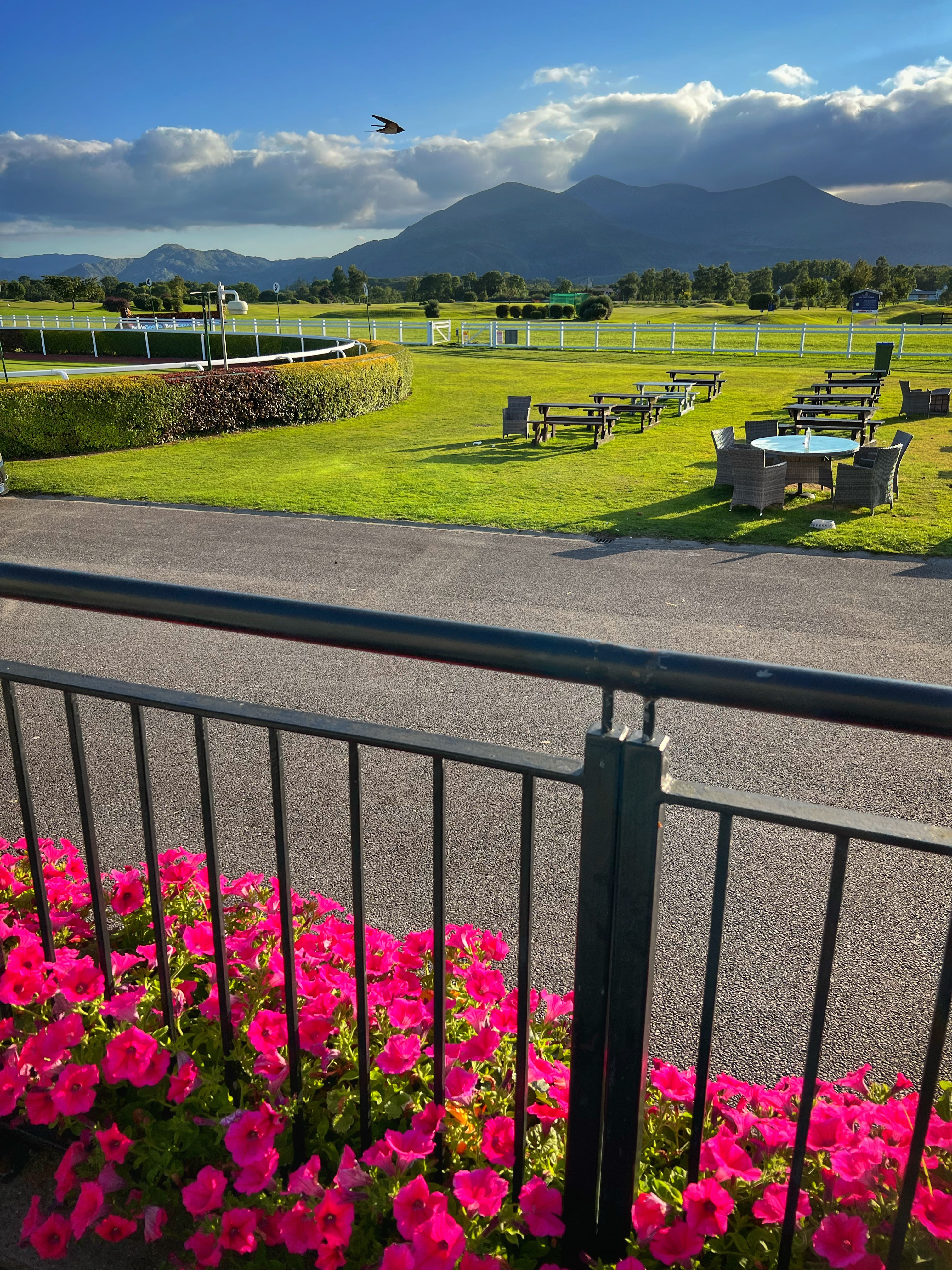 Here we were at this gorgeous viewpoint overlooking Upper Lake Killarney (also lovely to explore) but we were stuck. One quick view peek the hood and we saw the problem – the oil cap had popped off somewhere along these bumpy, winding roads, and oil had splashed and spilled all over the place making quite a mess. Thankfully we were able to remedy the problem fairly quickly, although it was nerve racking at first. We messaged the Indiecampers help line and asked them what to do. They got back to us eventually, and in the meantime we were able to get a cab into town (about 20 mins) so we didn’t miss the Celtic Steps show we had tickets for that evening at 8. There was plenty of time to get there and order pizza delivery for dinner right to the race track (where the Celtic Steps show performs) while we waited. Sometimes a snaffu can be fun! This also changed our itinerary a bit, as we had to order a new oil cap and that wouldn’t be delivered until day 6, so we planned to stay overnight in Killarney at Fossa campground on day 5 instead of driving up to Connemara and Galway. But here we were on a full, amazing day 4 (remember we did the Skelligs in the morning!) and nothing was going to put a damper on our fun. We attended the Celtic Steps show – get there early as its open seating, and we got to sit in the front row – it was totally worth it! The kids loved the dancing, music and all around wonderful Irish entertainment of the night, and they even got to meet the award winning dancers after the show. It would be fun to attend an event at the racetrack as well, since that is where the show is held. It was about 10:15 when the show was over – definitely a late night for the kiddos.