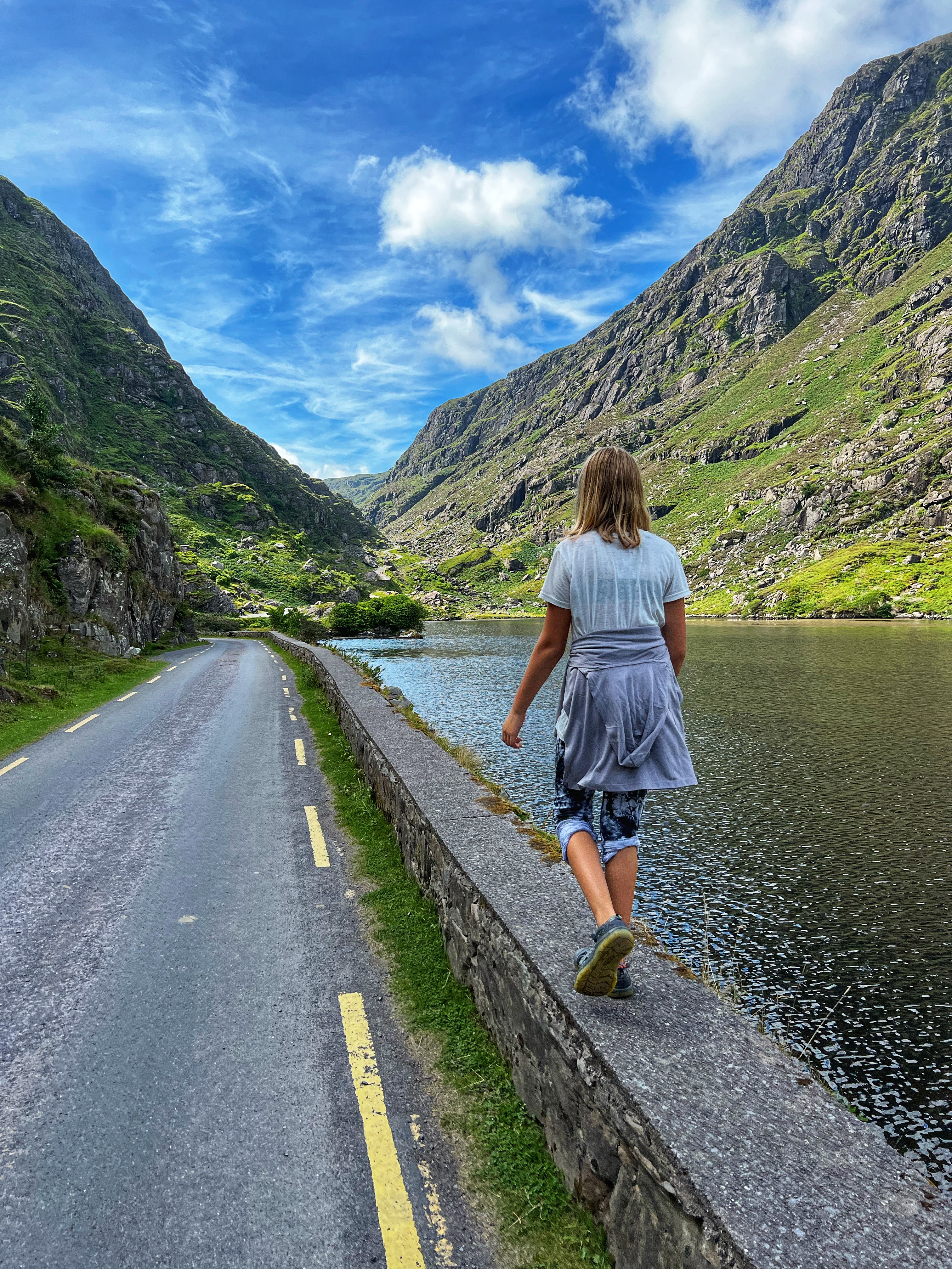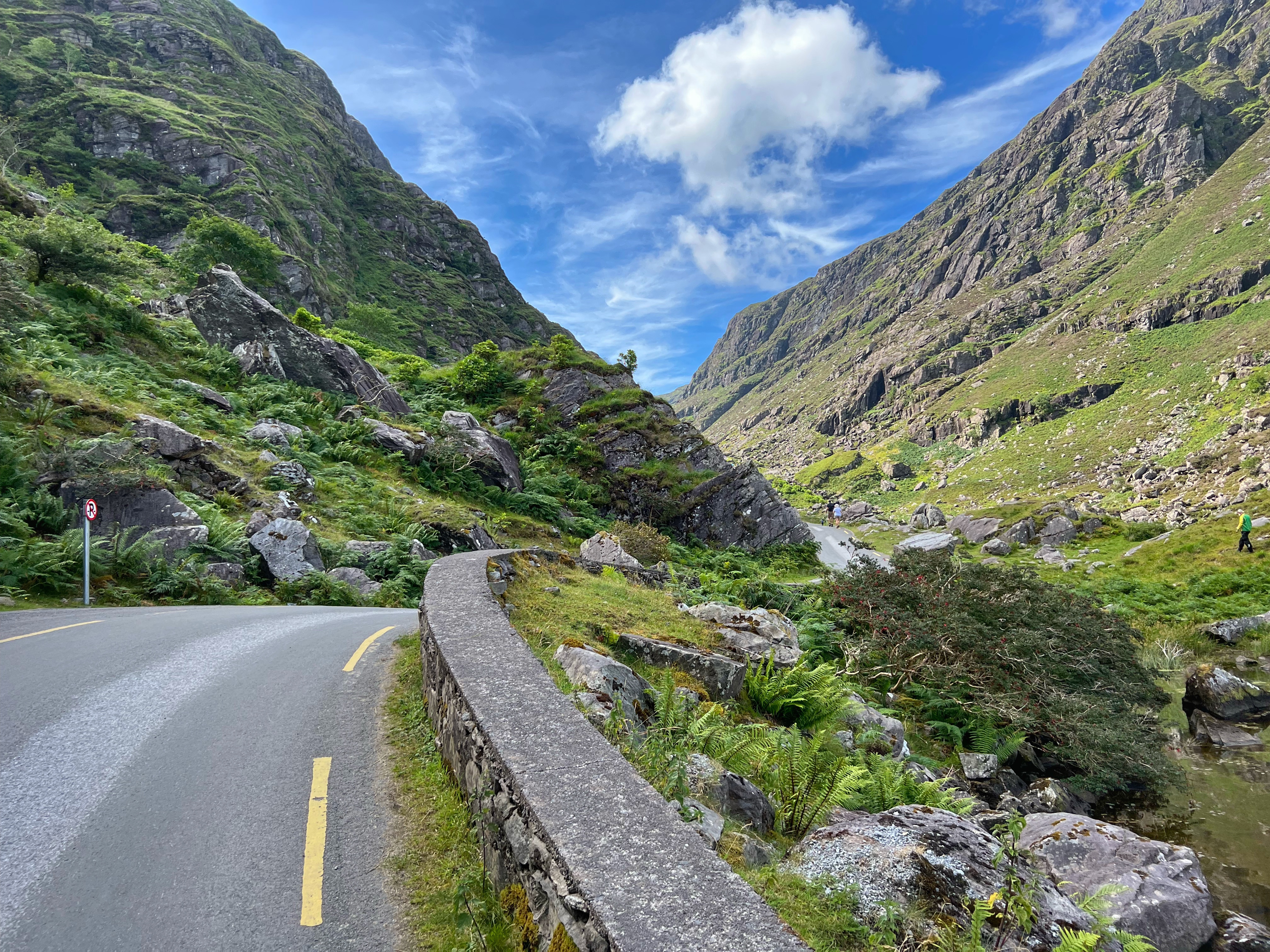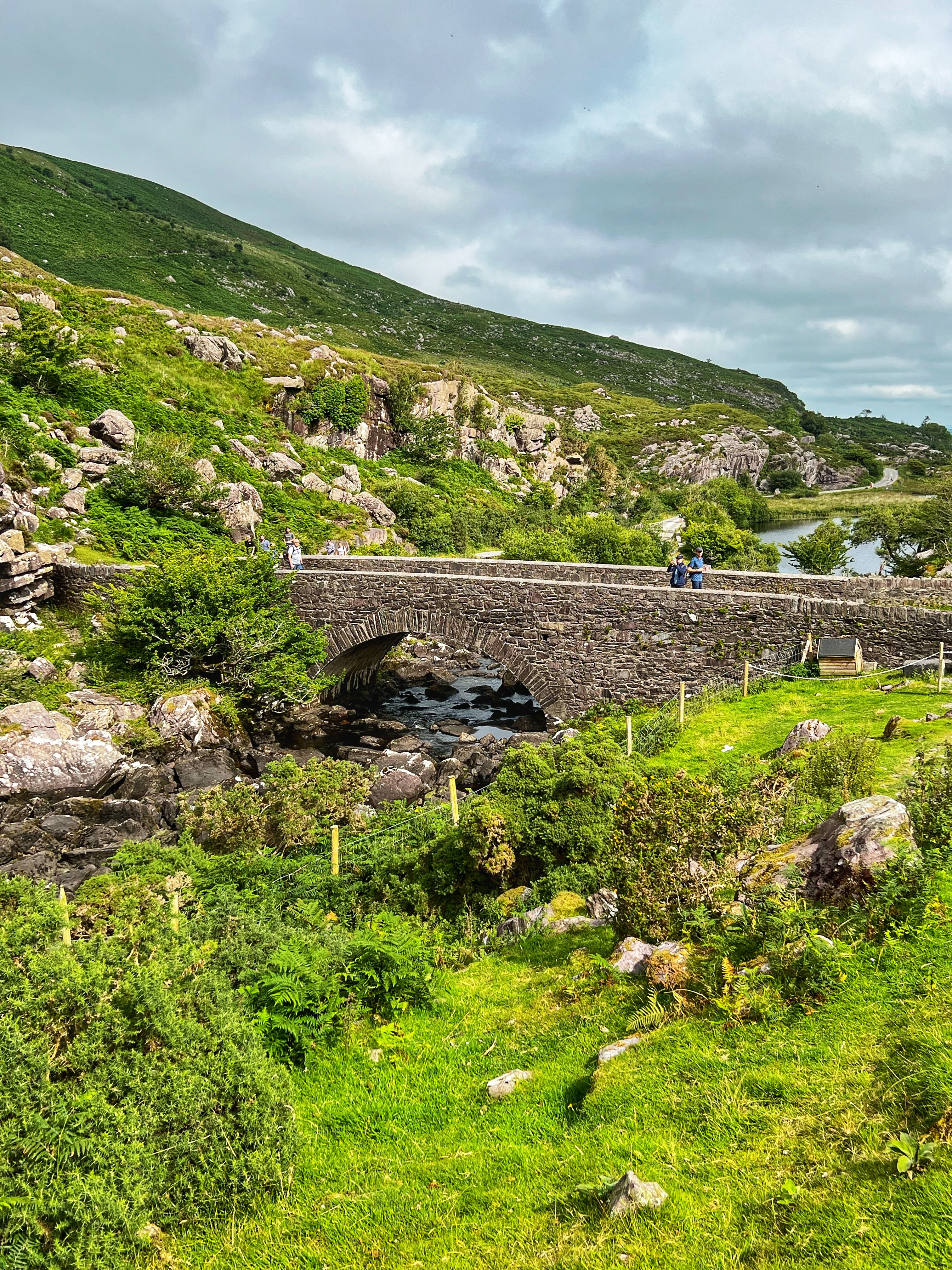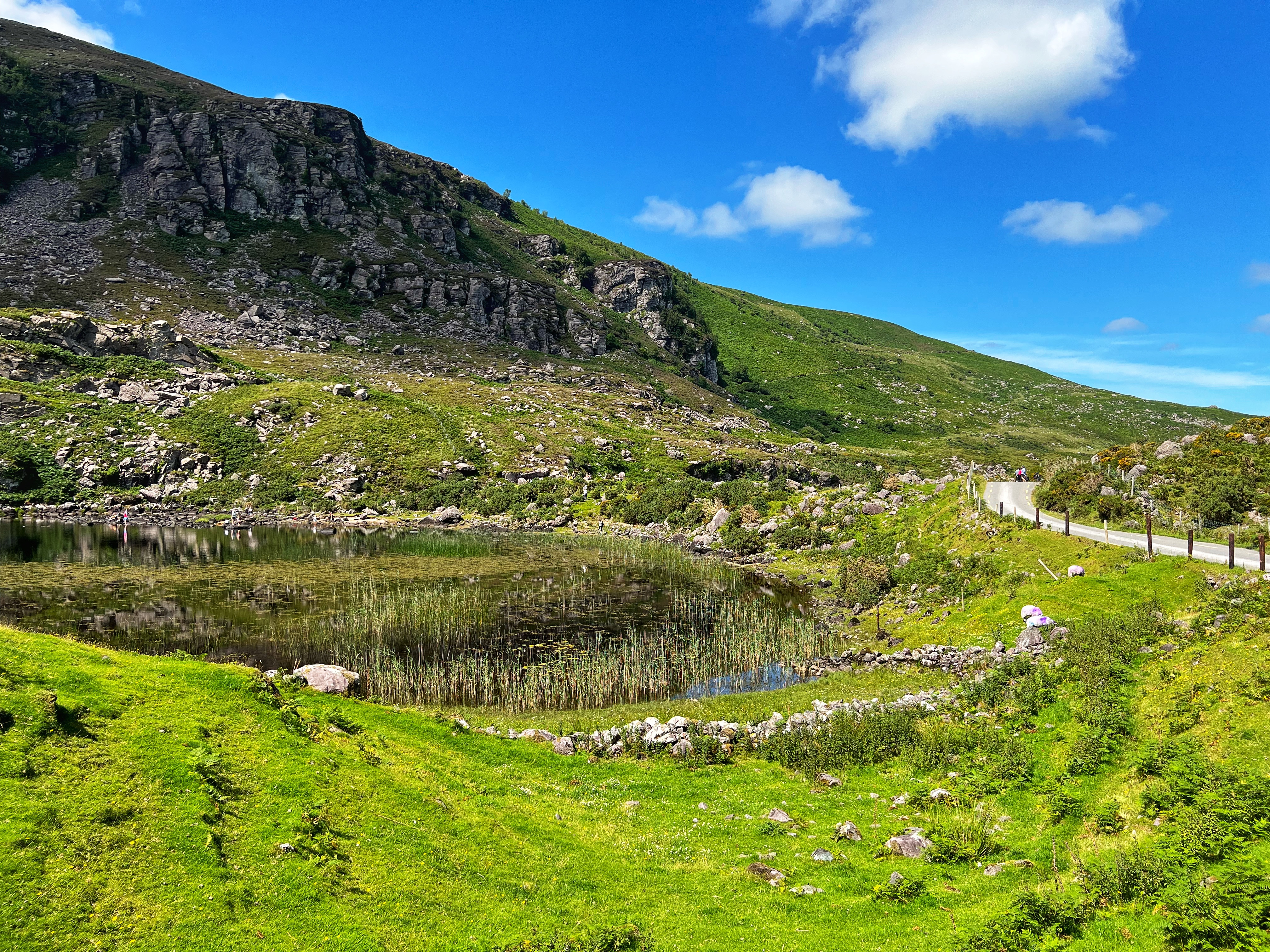 The horse and carriage rides can be hired ahead of time or right there on the day of, for around €100 depending on how long of a tour you’d like. Instead, we decided to walk as it was another glorious day. It is about 7.5 miles round trip from Kate Kearney’s Cottage to the head of the Gap of Dunloe, or 6km both ways. The views are incredible and ever changing, and you can see horses and sheep along the way, too. We stopped at several points to get better views closer to Black Lake, Cushvally Lake and Augher Lake as we continued our walk to the gap. The hike is slightly uphill on the way, but all paved road so quite easy. Keep an eye out for the Wishing Bridge as well as an echo point that has fabulous acoustics across Black Lake just as you turn the corner past the Wishing Bridge. We even saw a wedding party taking photos along the road!