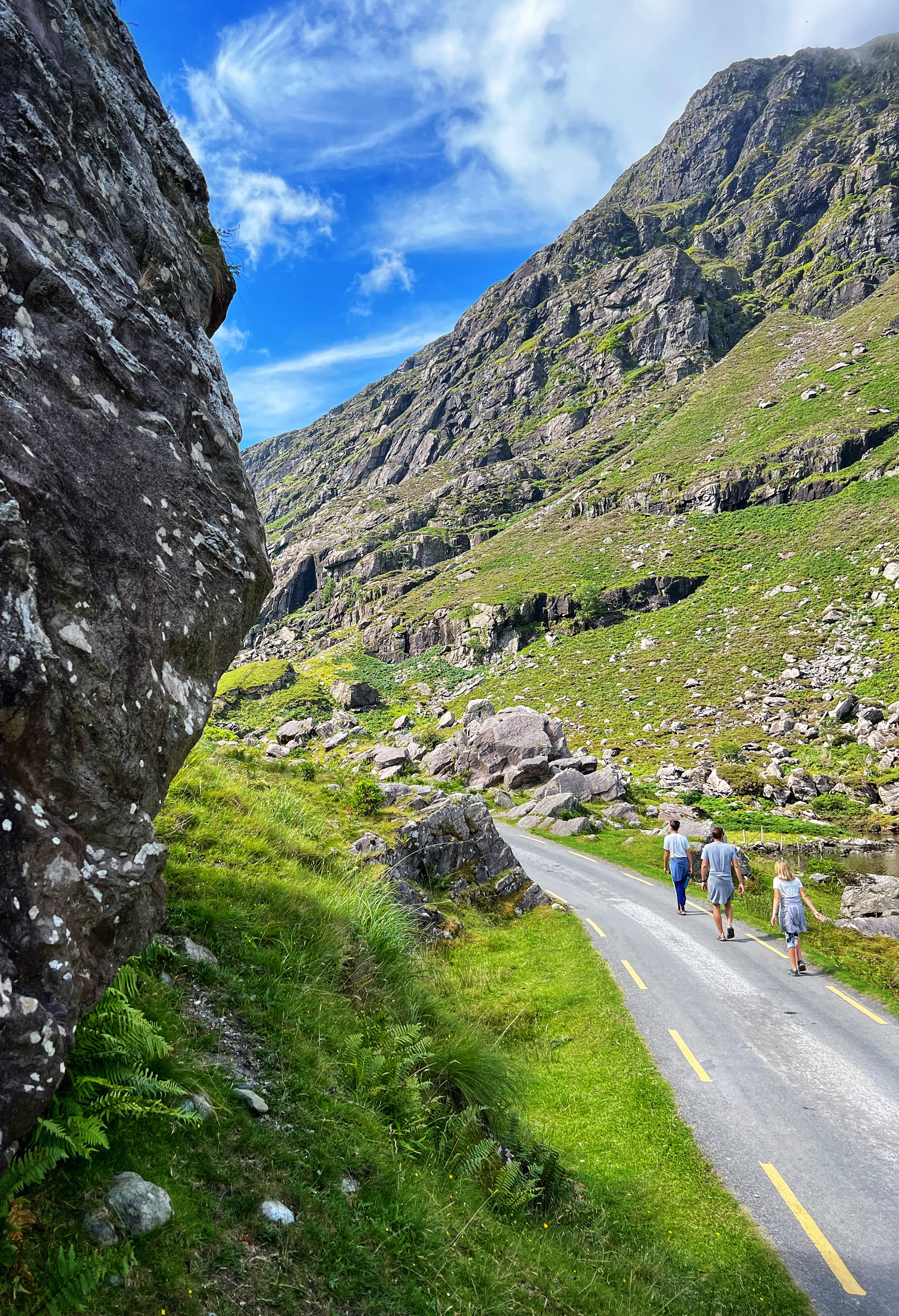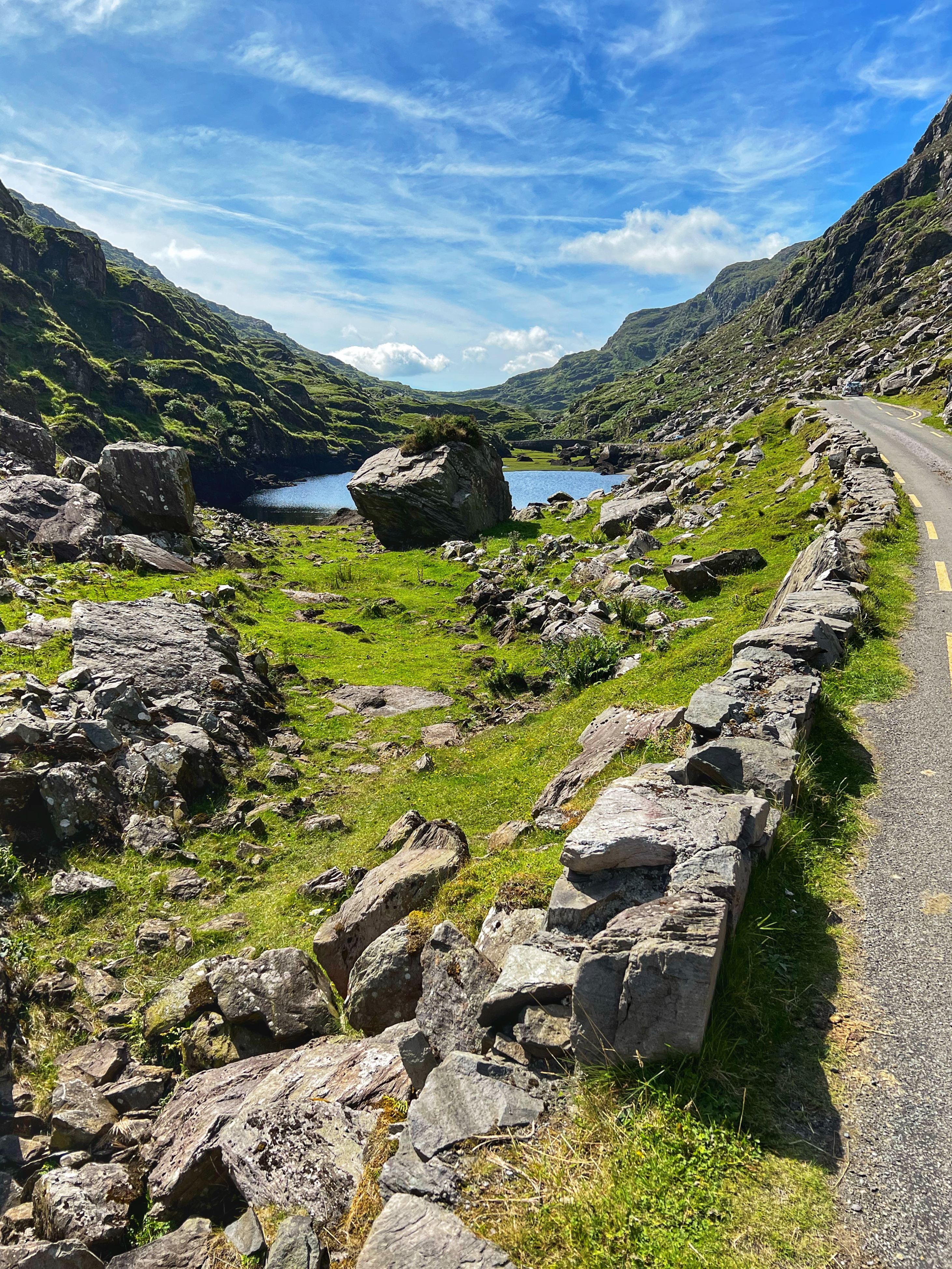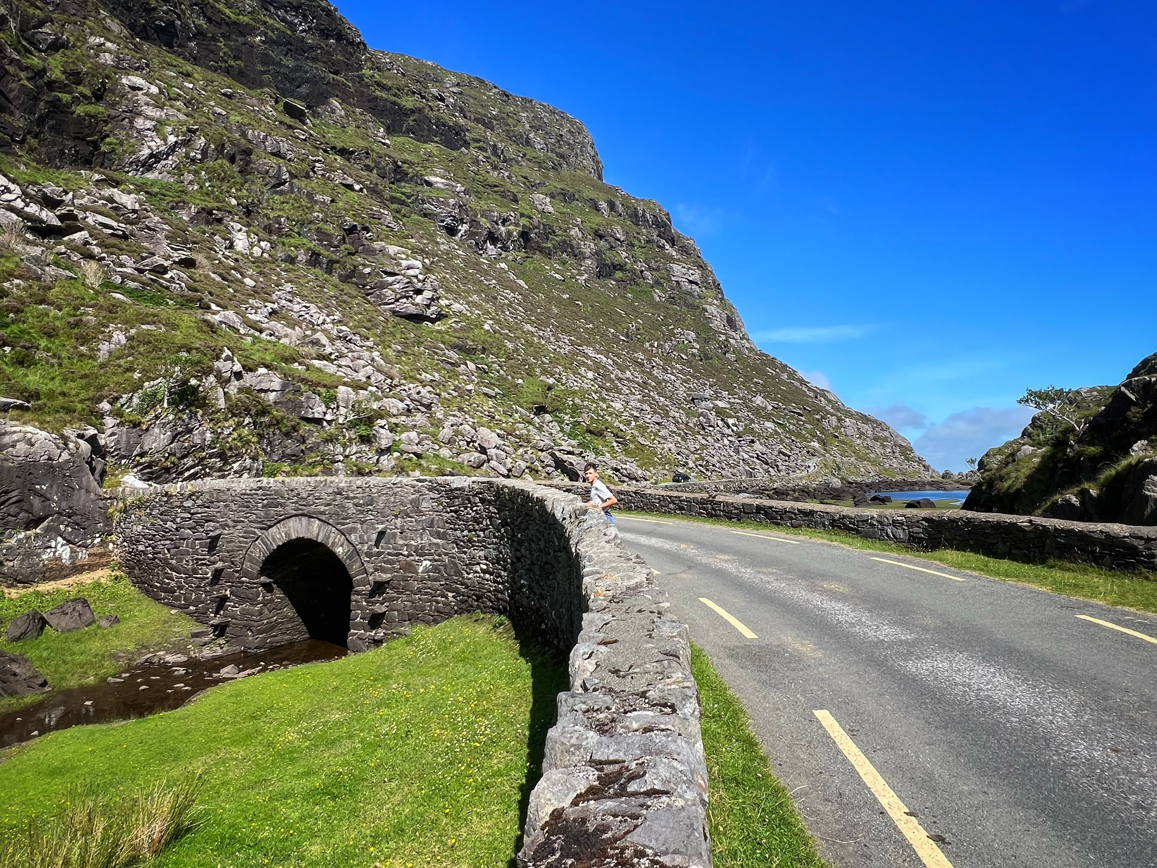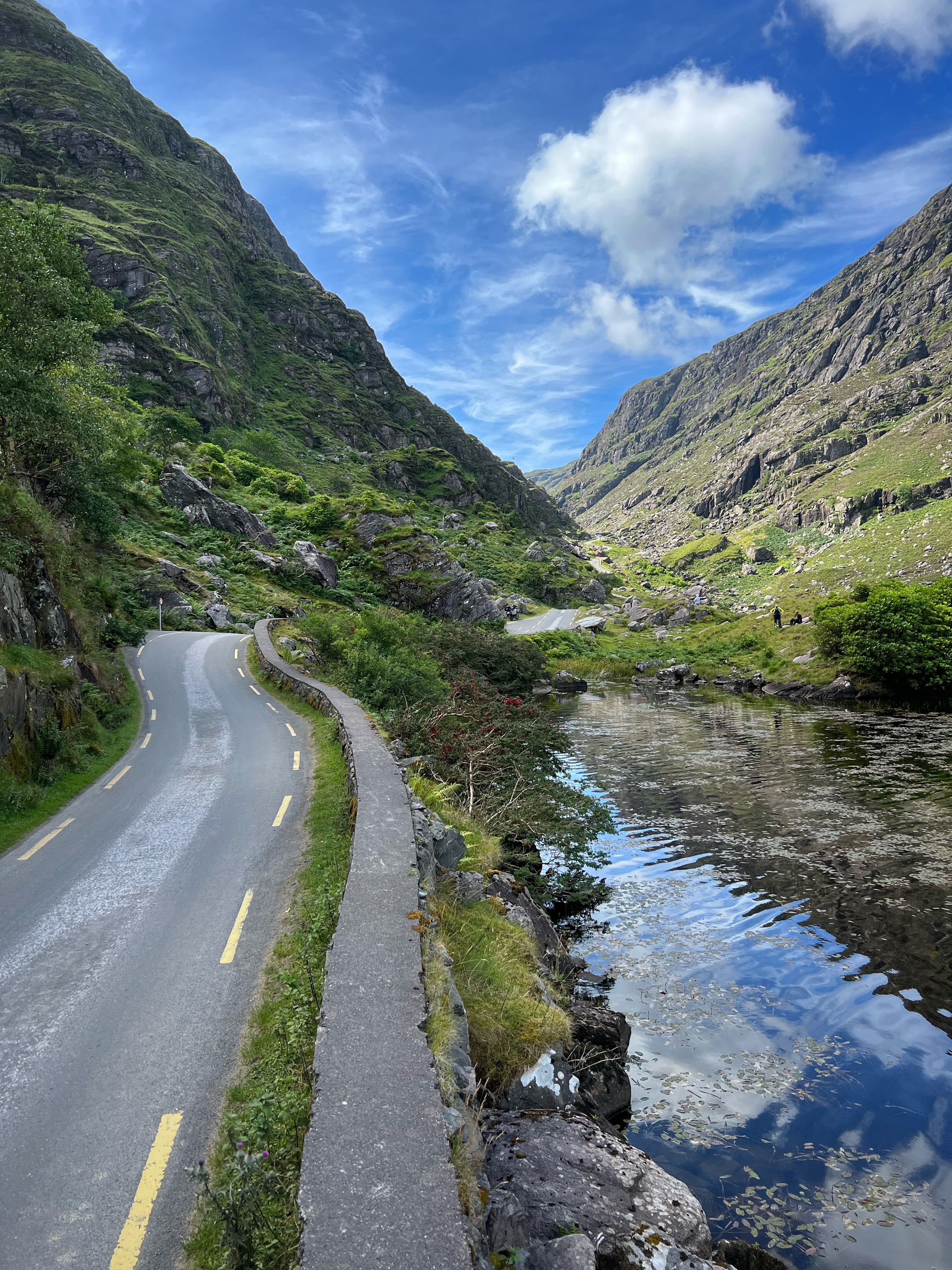 The horse and carriage rides can be hired ahead of time or right there on the day of, for around €100 depending on how long of a tour you’d like. Instead, we decided to walk as it was another glorious day. It is about 7.5 miles round trip from Kate Kearney’s Cottage to the head of the Gap of Dunloe, or 6km both ways. The views are incredible and ever changing, and you can see horses and sheep along the way, too. We stopped at several points to get better views closer to Black Lake, Cushvally Lake and Augher Lake as we continued our walk to the gap. The hike is slightly uphill on the way, but all paved road so quite easy. Keep an eye out for the Wishing Bridge as well as an echo point that has fabulous acoustics across Black Lake just as you turn the corner past the Wishing Bridge. We even saw a wedding party taking photos along the road!