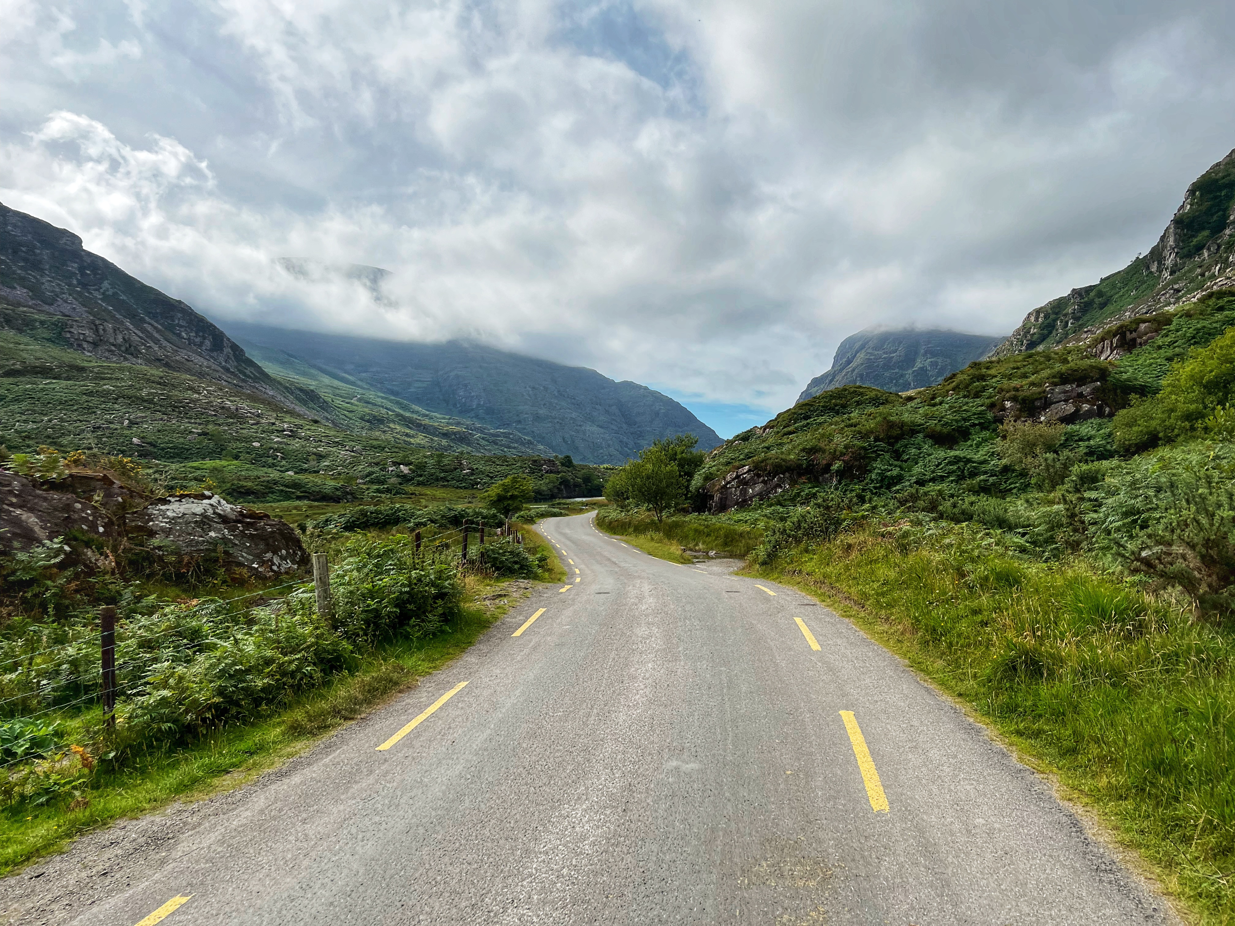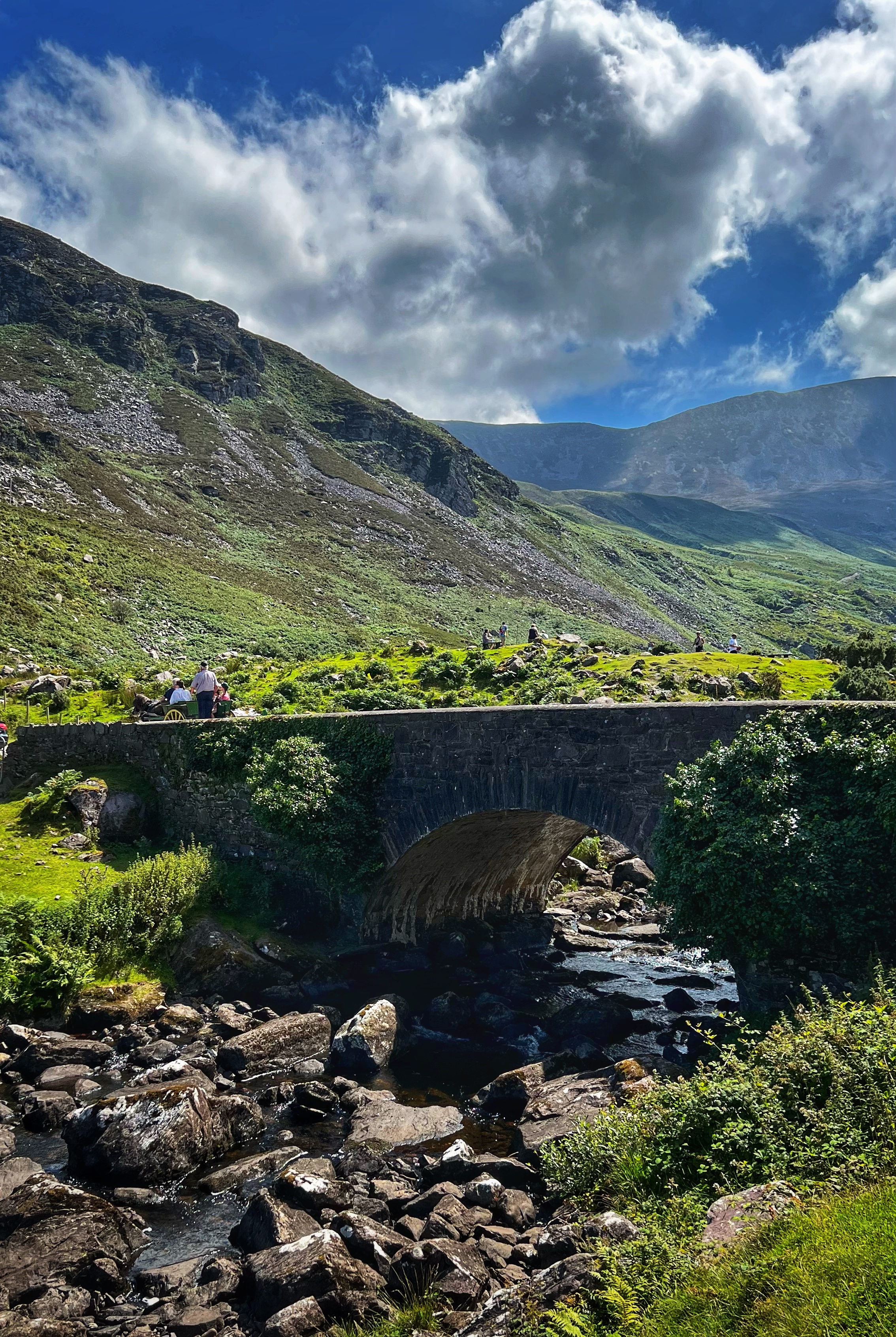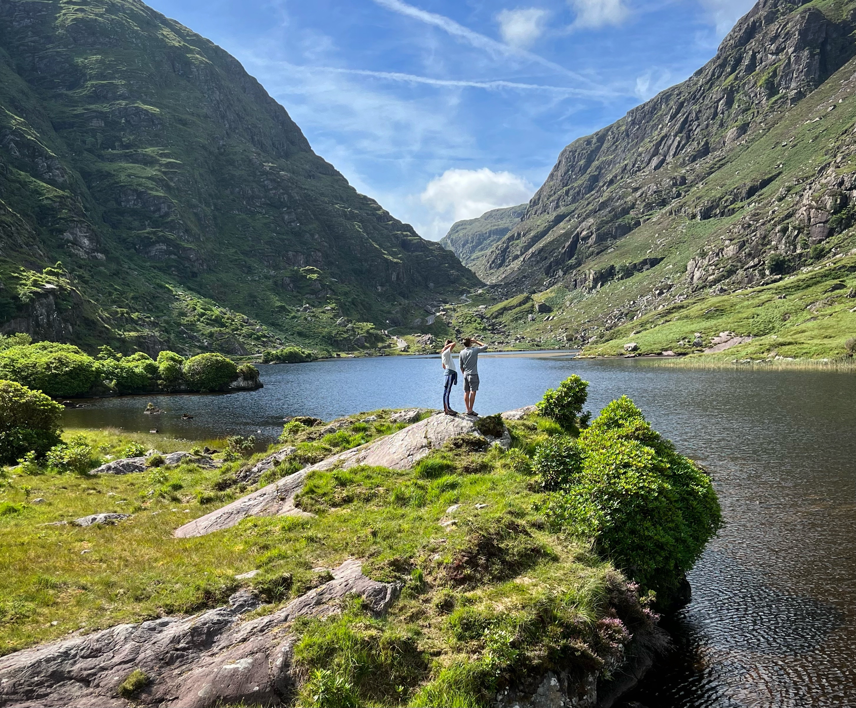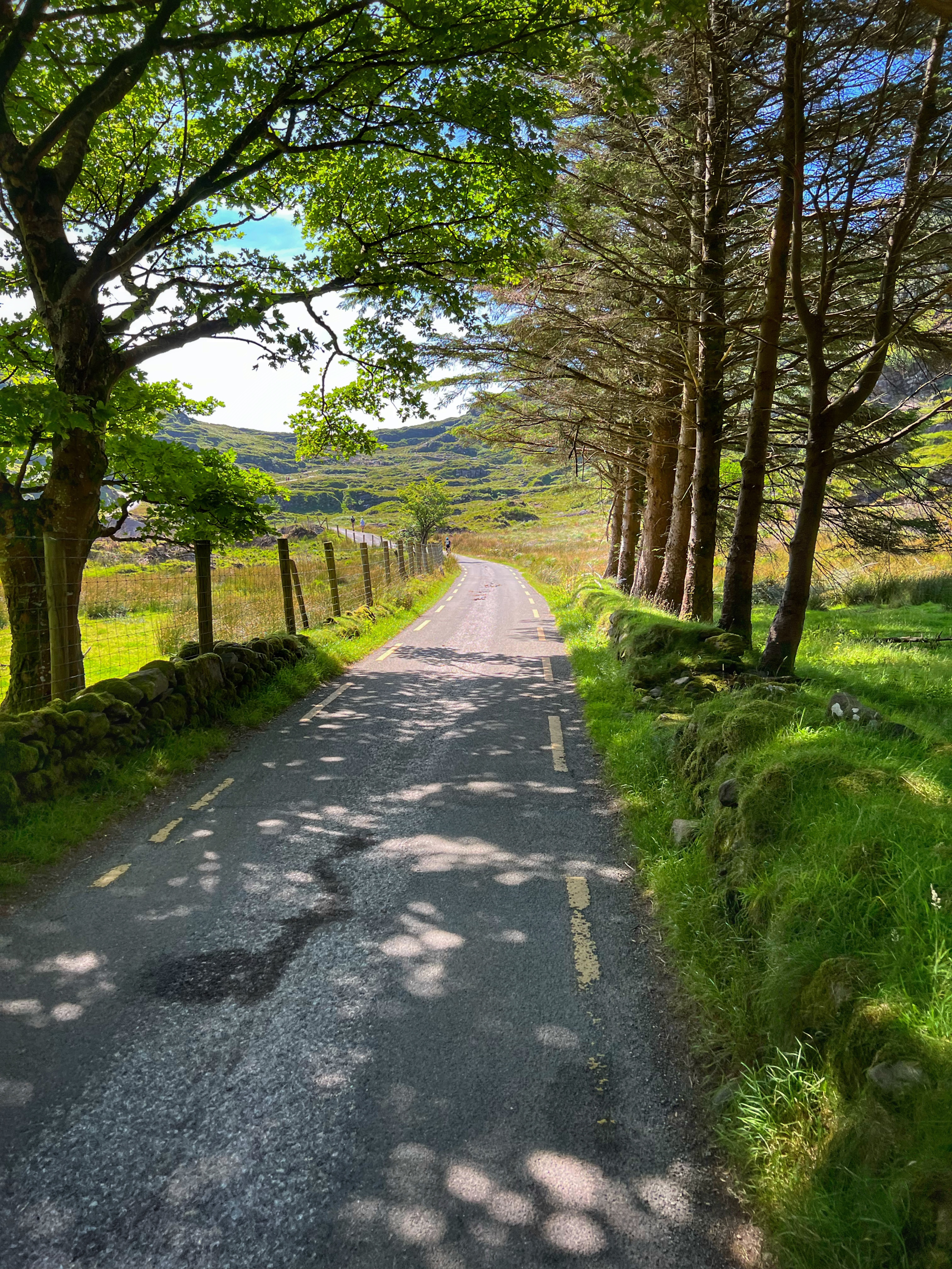 The horse and carriage rides can be hired ahead of time or right there on the day of, for around €100 depending on how long of a tour you’d like. Instead, we decided to walk as it was another glorious day. It is about 7.5 miles round trip from Kate Kearney’s Cottage to the head of the Gap of Dunloe, or 6km both ways. The views are incredible and ever changing, and you can see horses and sheep along the way, too. We stopped at several points to get better views closer to Black Lake, Cushvally Lake and Augher Lake as we continued our walk to the gap. The hike is slightly uphill on the way, but all paved road so quite easy. Keep an eye out for the Wishing Bridge as well as an echo point that has fabulous acoustics across Black Lake just as you turn the corner past the Wishing Bridge. We even saw a wedding party taking photos along the road!