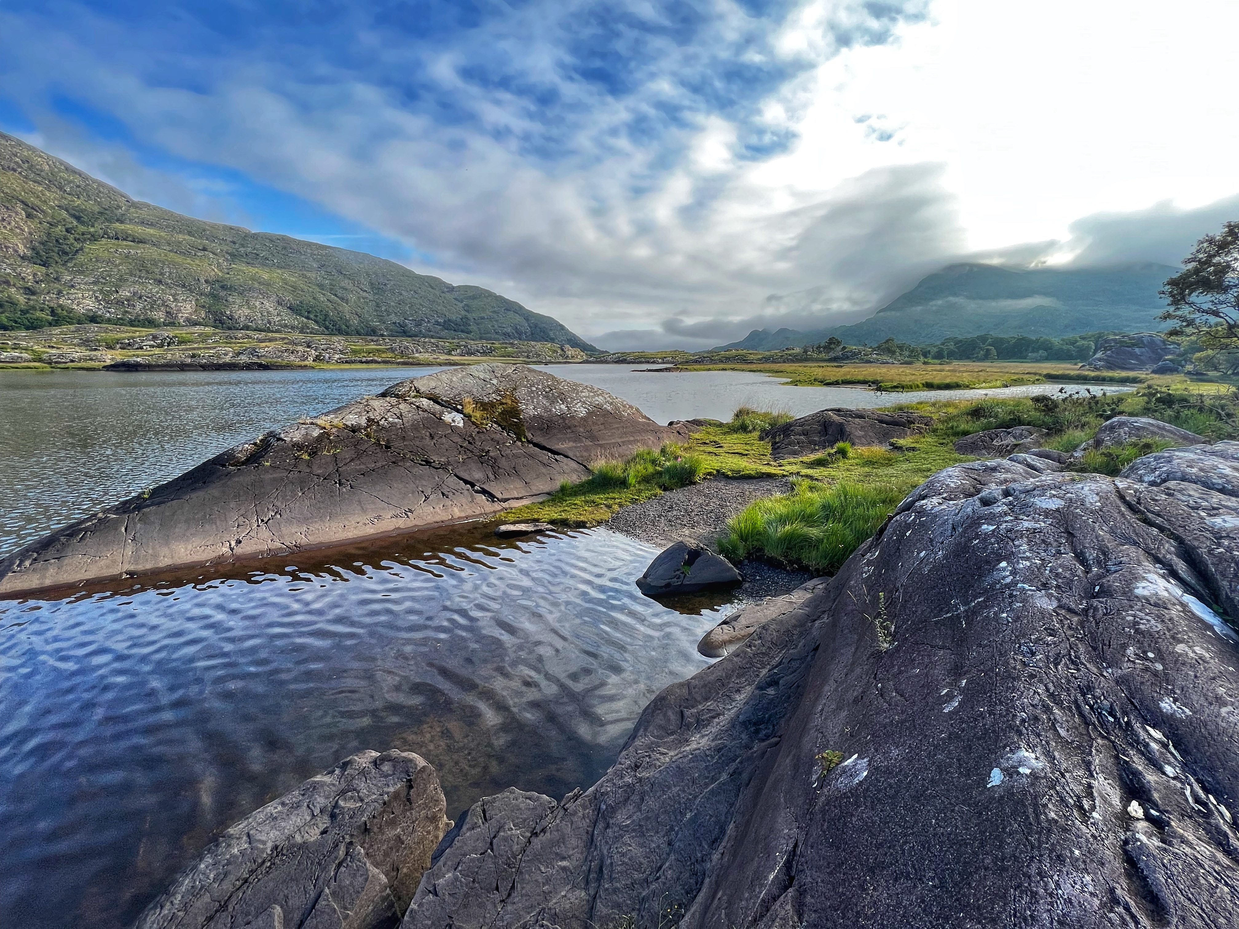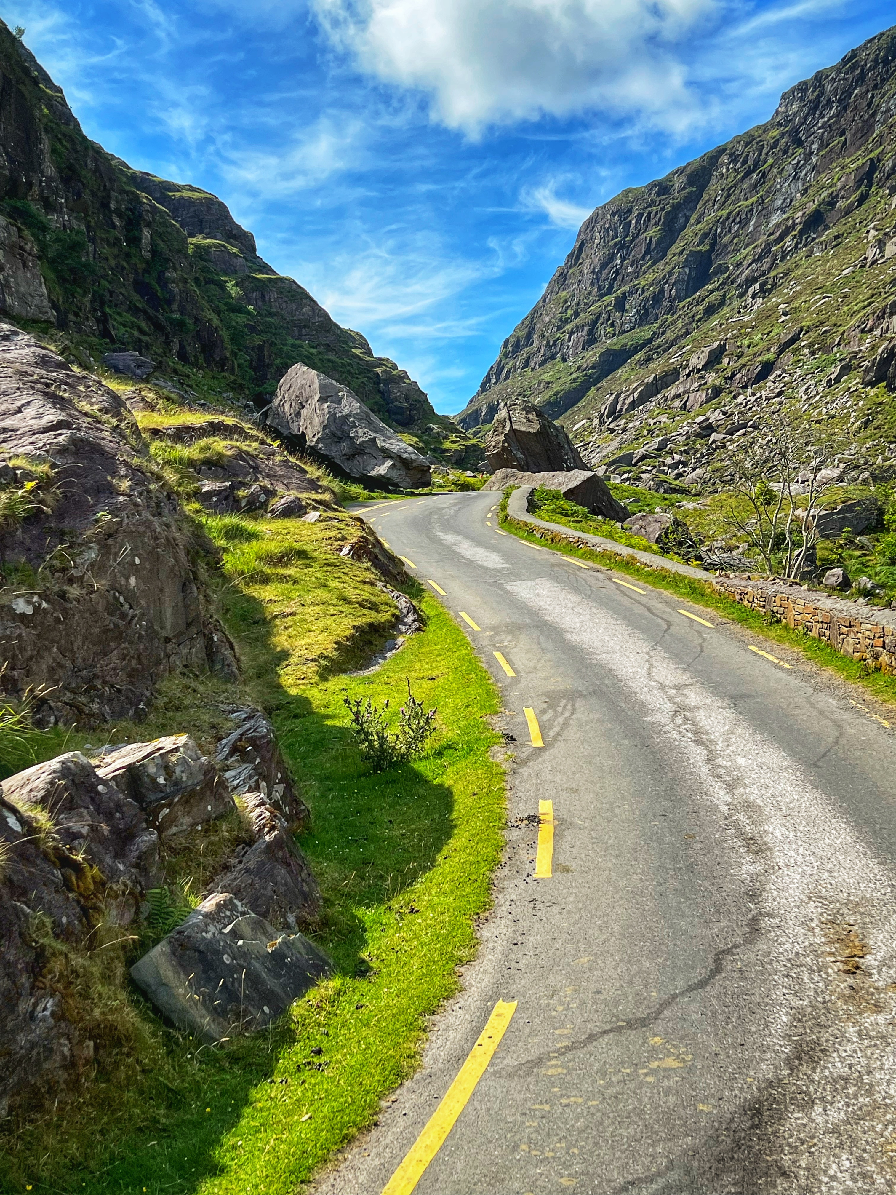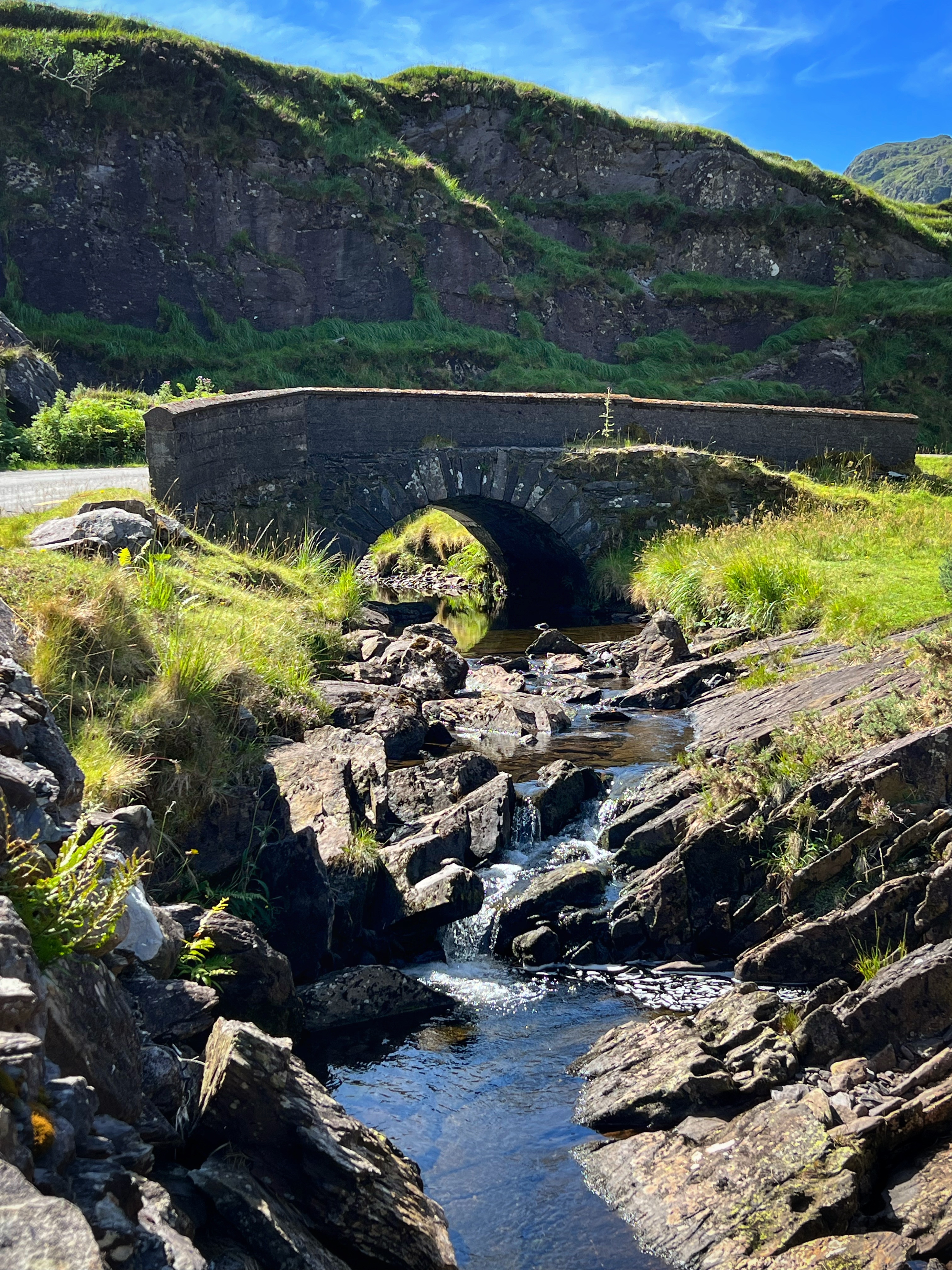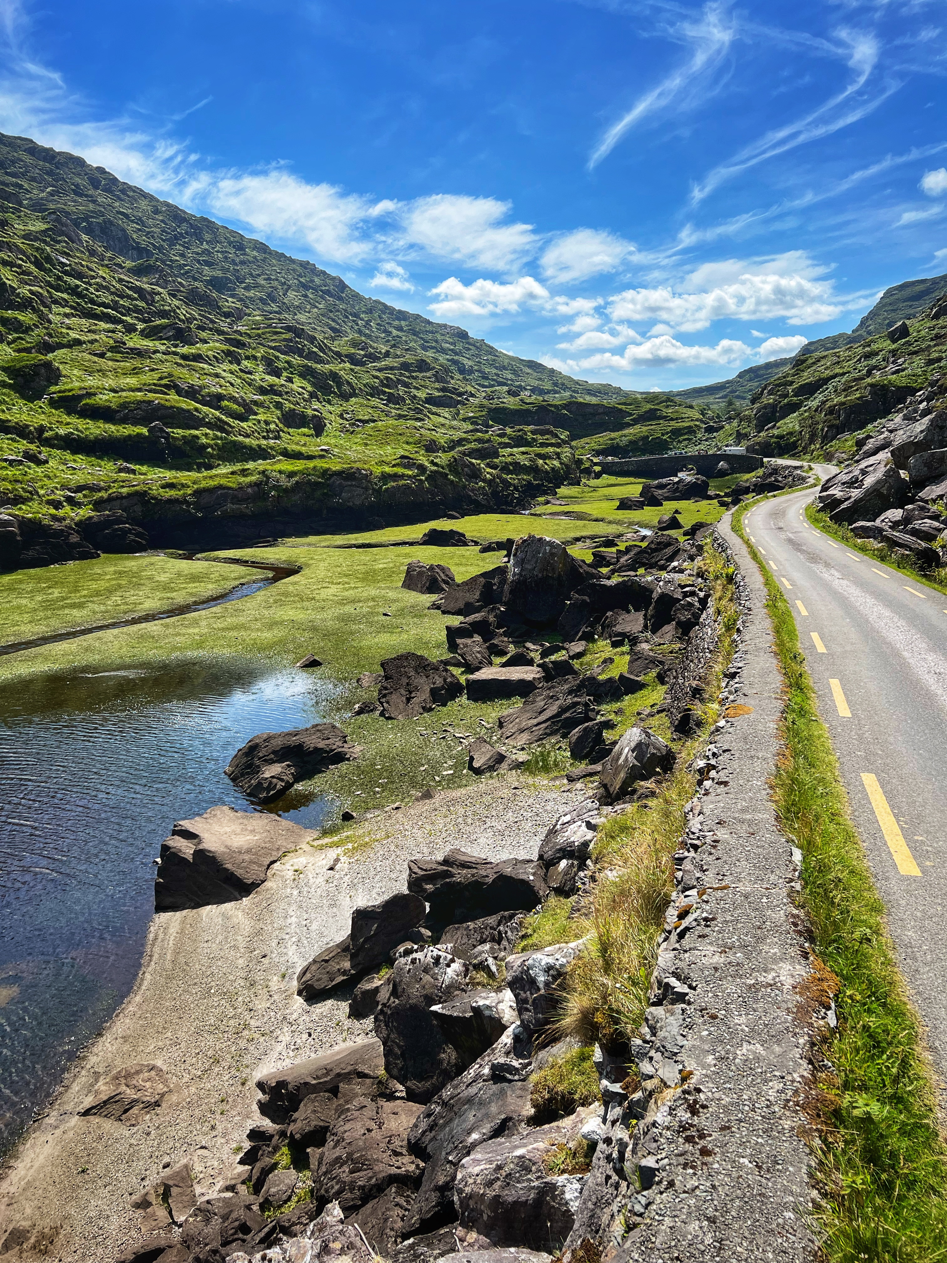 The horse and carriage rides can be hired ahead of time or right there on the day of, for around €100 depending on how long of a tour you’d like. Instead, we decided to walk as it was another glorious day. It is about 7.5 miles round trip from Kate Kearney’s Cottage to the head of the Gap of Dunloe, or 6km both ways. The views are incredible and ever changing, and you can see horses and sheep along the way, too. We stopped at several points to get better views closer to Black Lake, Cushvally Lake and Augher Lake as we continued our walk to the gap. The hike is slightly uphill on the way, but all paved road so quite easy. Keep an eye out for the Wishing Bridge as well as an echo point that has fabulous acoustics across Black Lake just as you turn the corner past the Wishing Bridge. We even saw a wedding party taking photos along the road!
