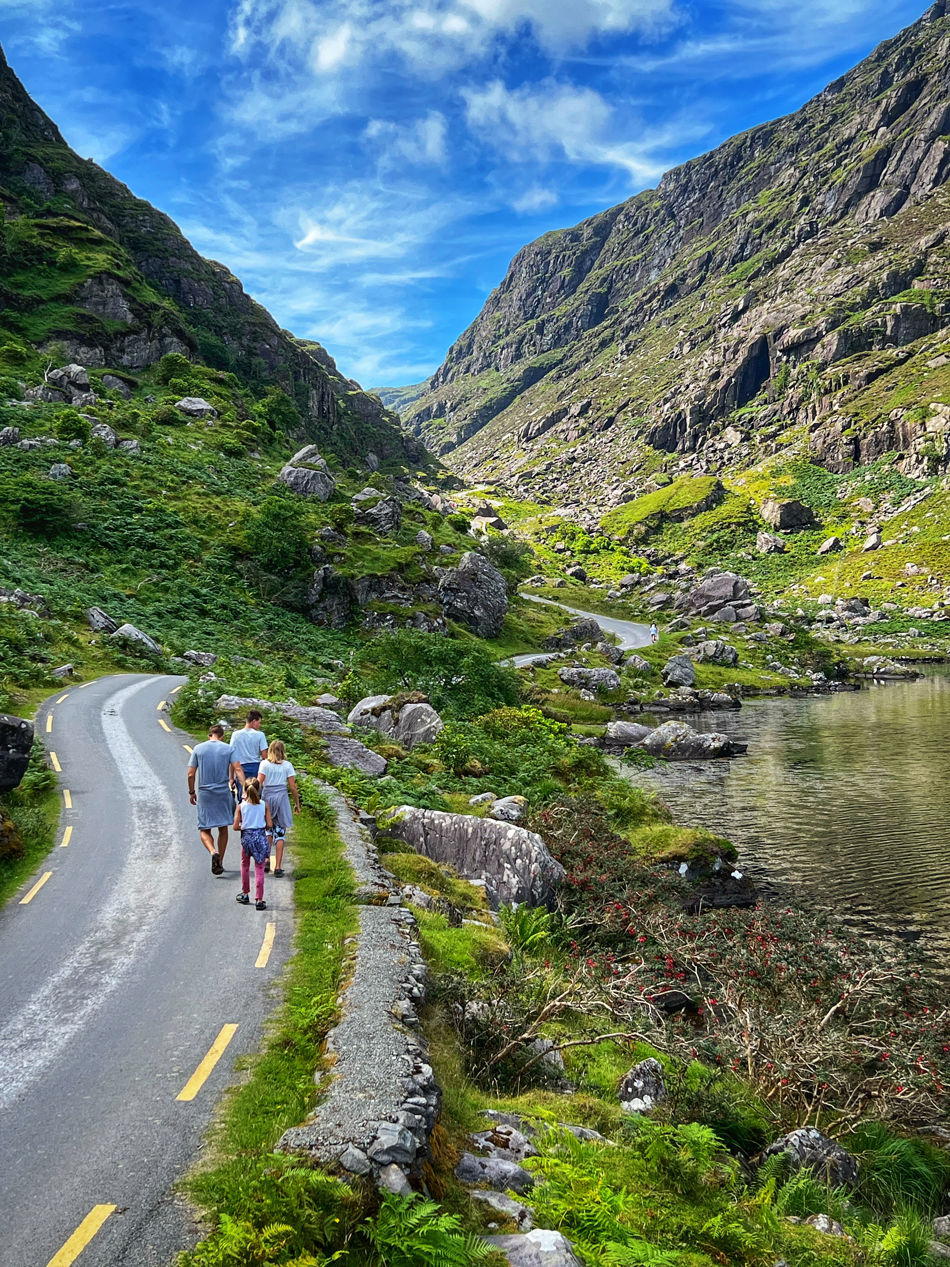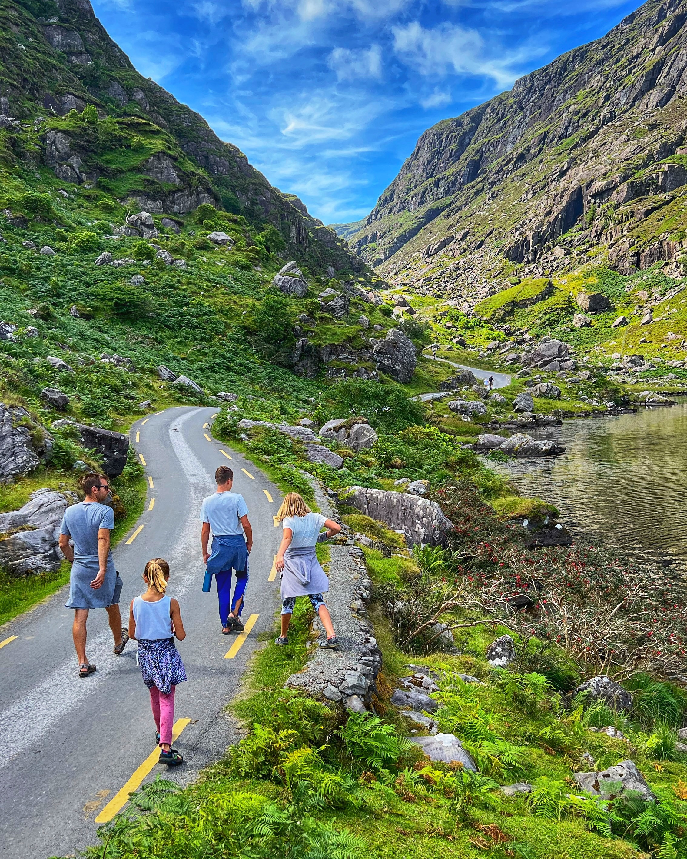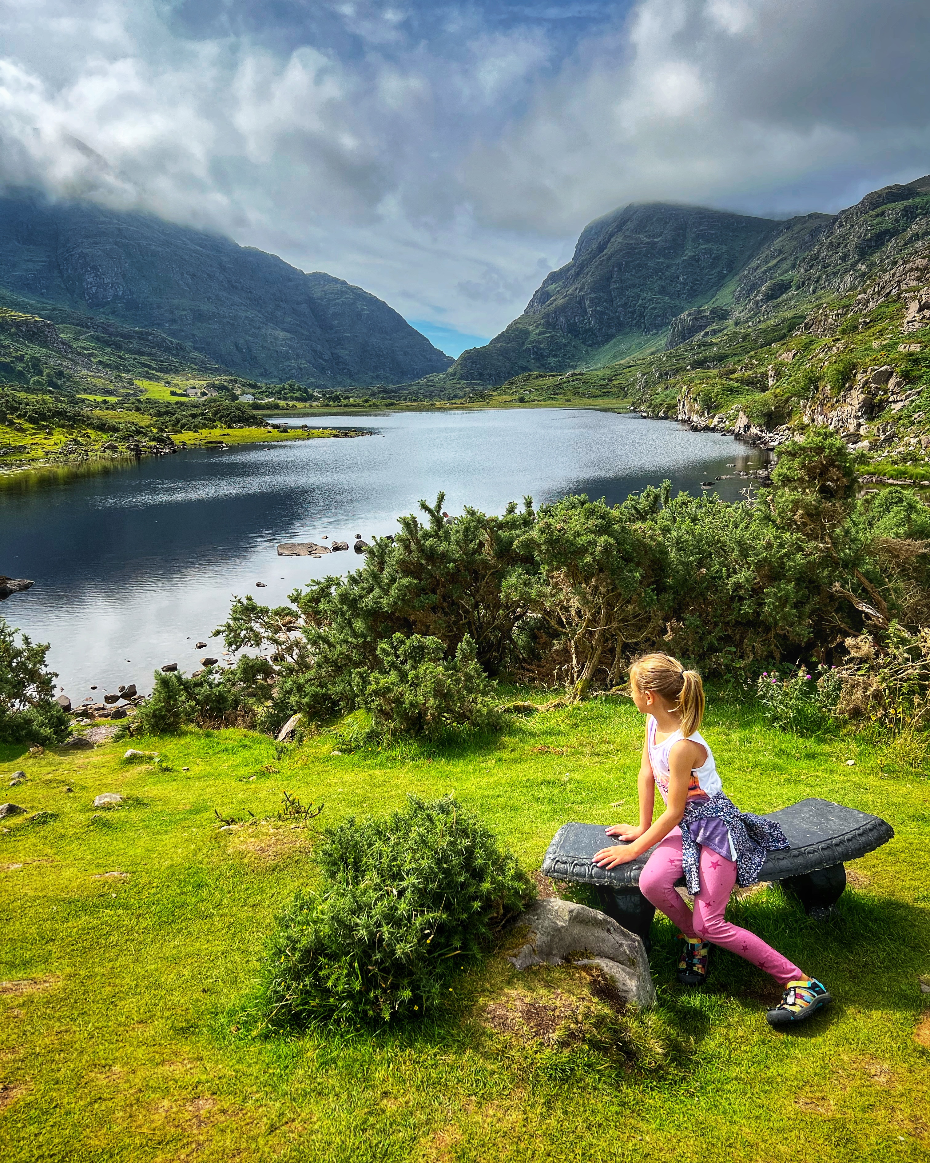 It took us about 90 minutes to reach the midway point, so about 3 hours to complete the entire hike, with stops and rests. Be sure to bring lots of water with you as there are no facilities anywhere until you return to Kate Kearney’s. It’s also a great place for a picnic! You can continue into the Black Valley, which I recommend if you’re on wheels, as that is a beautiful section of road leading back to Killarney National Park via Molls Gap. Overall this was a 10/10 for beautiful views and a relatively fun and easy hike for the whole family.