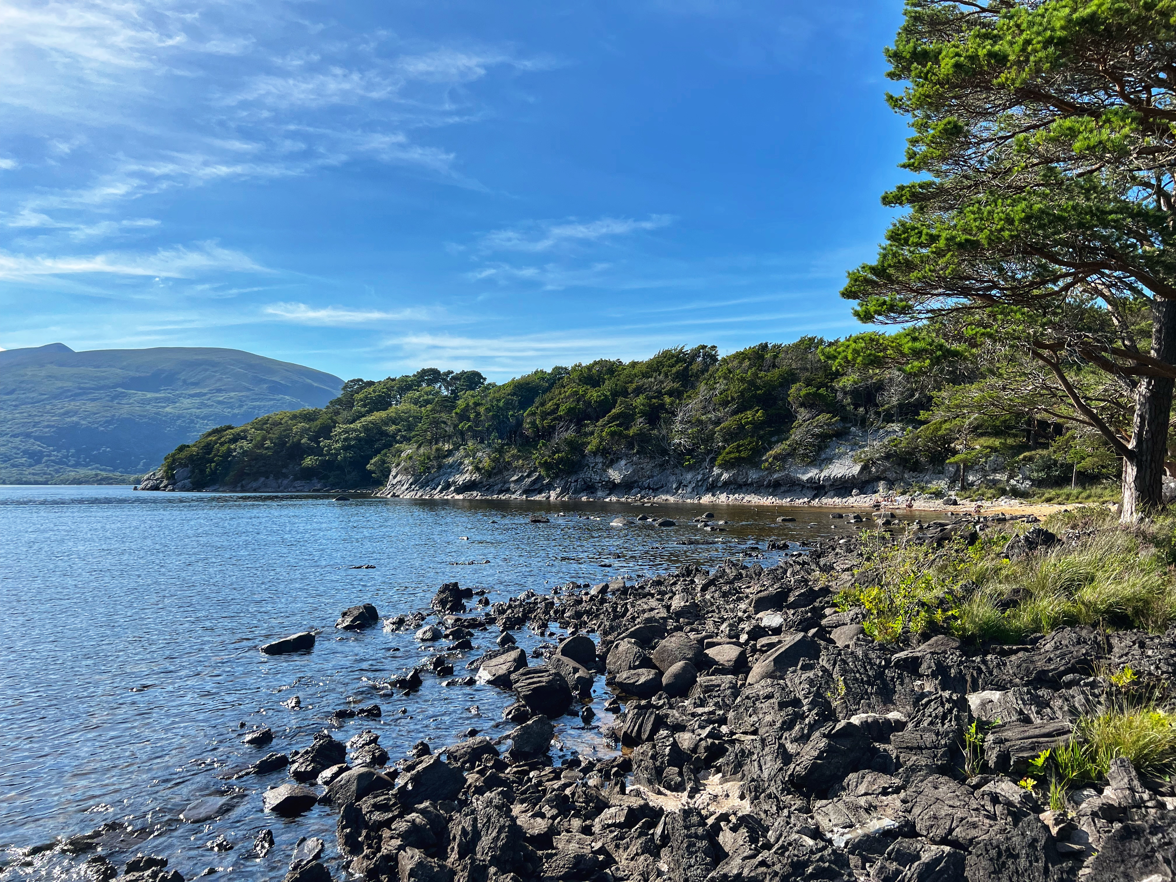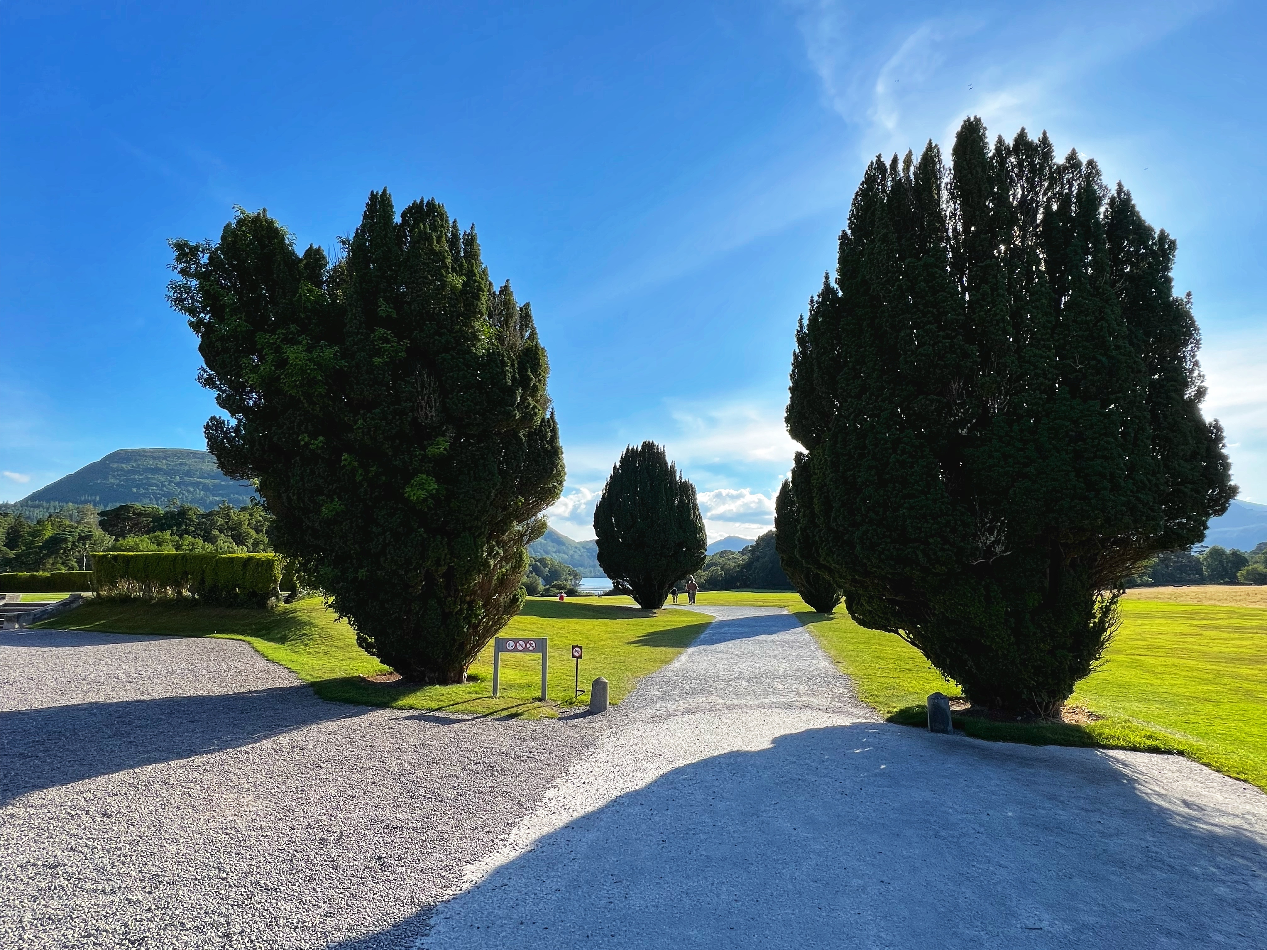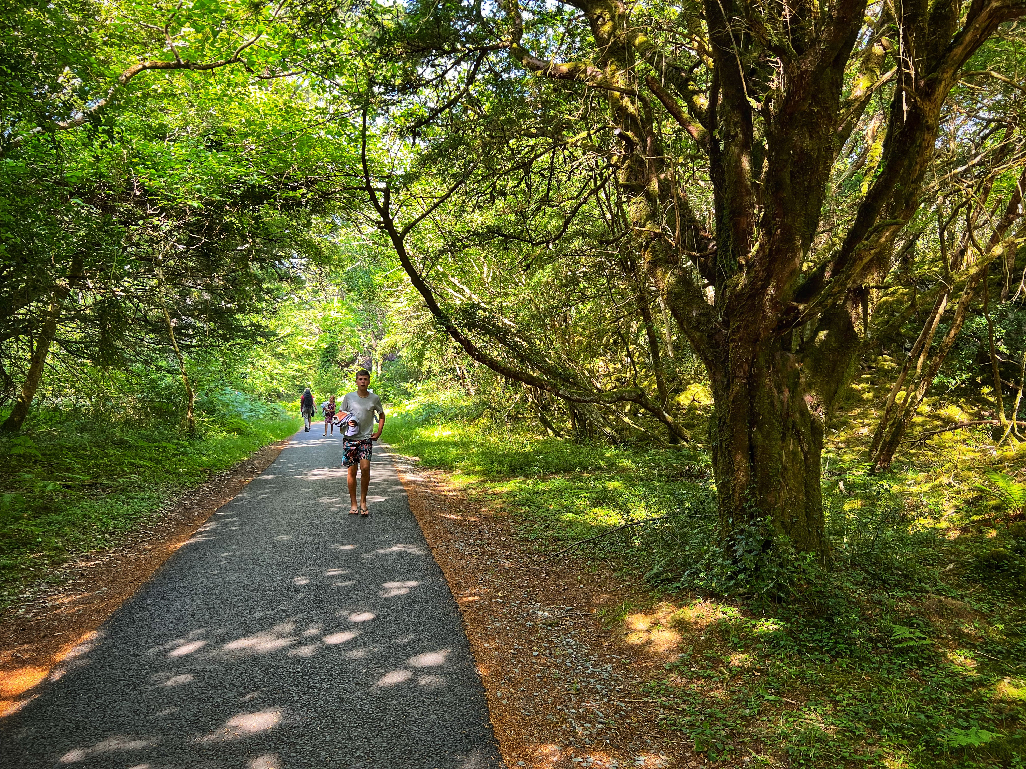 I had read about a “secret” beach called Rose Beach, but the directions online turned out to be fuzzy. There is plentiful free parking at Muckross House and it’s a beautiful place to spend the afternoon wandering the trails and frolicking in the park. In spite of wonky directions to the secluded beach, we found it anyway, and can say that it was a nice place to go for a quick dip. The location is here. To get there, walk on the paved path in the direction of Brickeen Bridge, about one mile from the parking lot or Muckross House (whichever is your starting point). When you reach a big clearing, there will be a bench on your right. The path to the beach is on your left and goes through the woods (see photo below of bench and path). The walk itself is lovely! Only a couple other people were there, and the views were nice. The water was very comfortable mid-August and the kids loved swimming. The only bummer was that we were all covered in ticks from sitting on the rocks by the shore. We were finding micro ticks the whole walk back to the campervan – so beware! We didn’t end up touring Muckross House itself, but wanderound around it and thoroughly enjoyed this 19th century mansion and property.