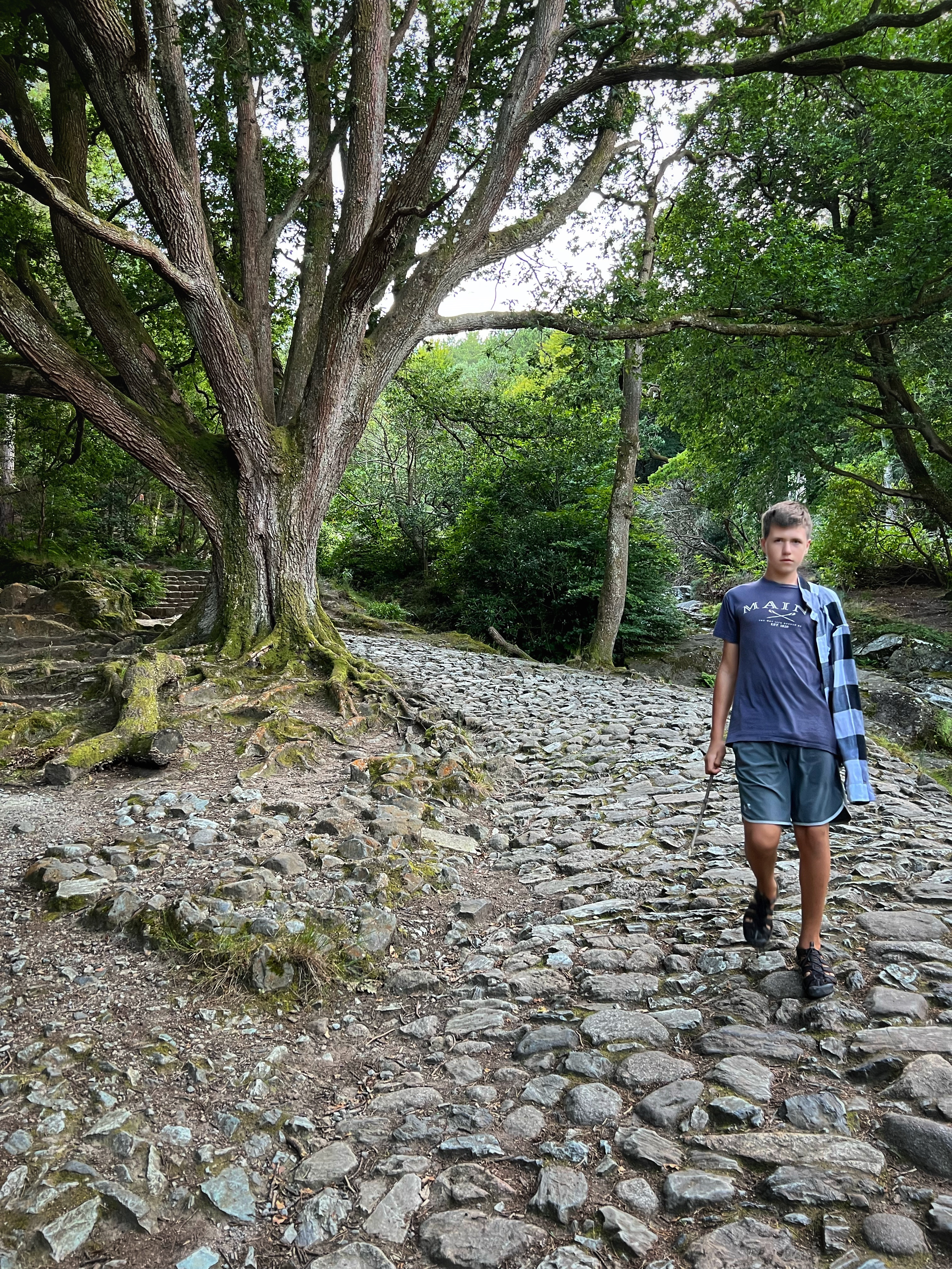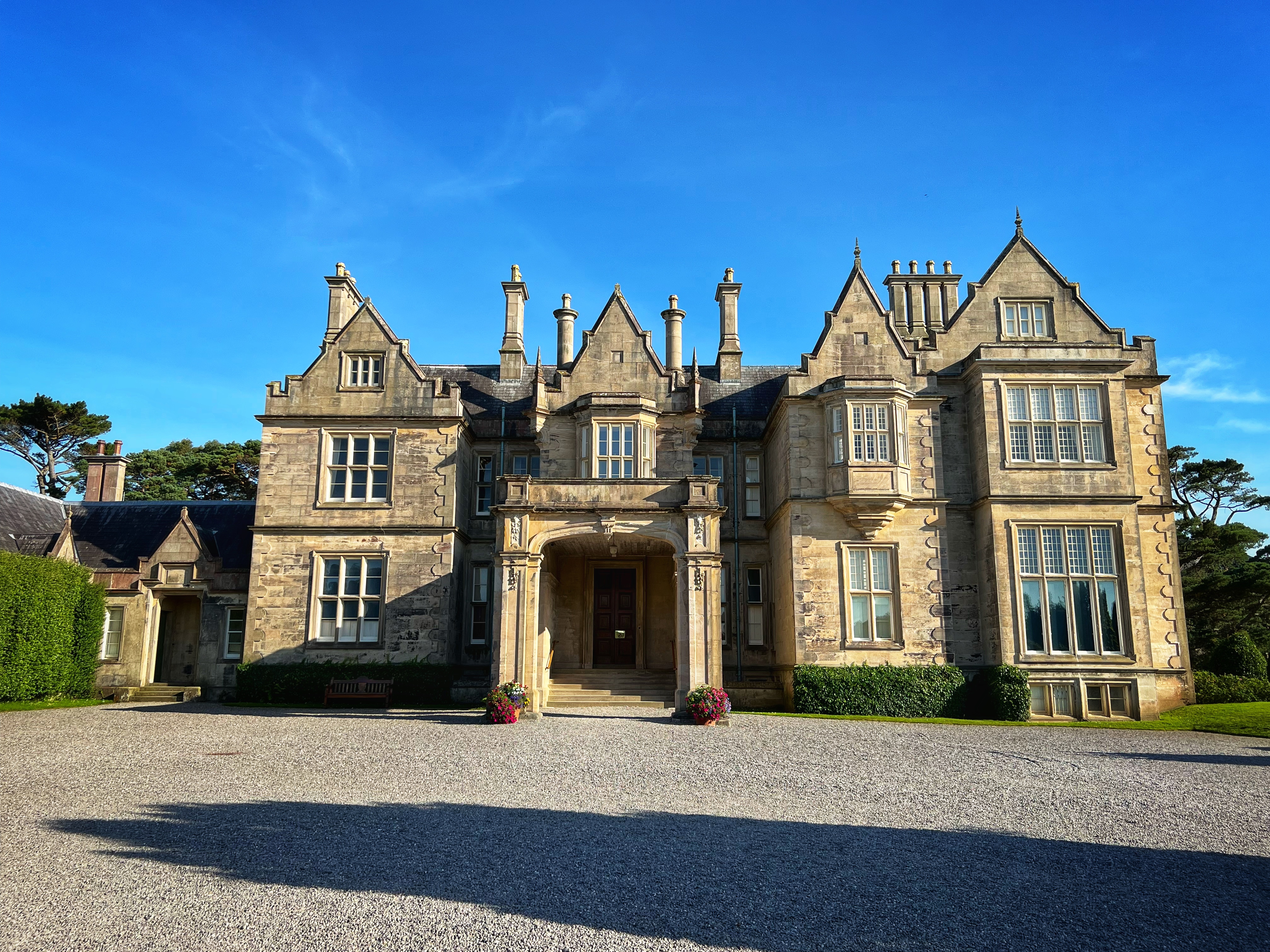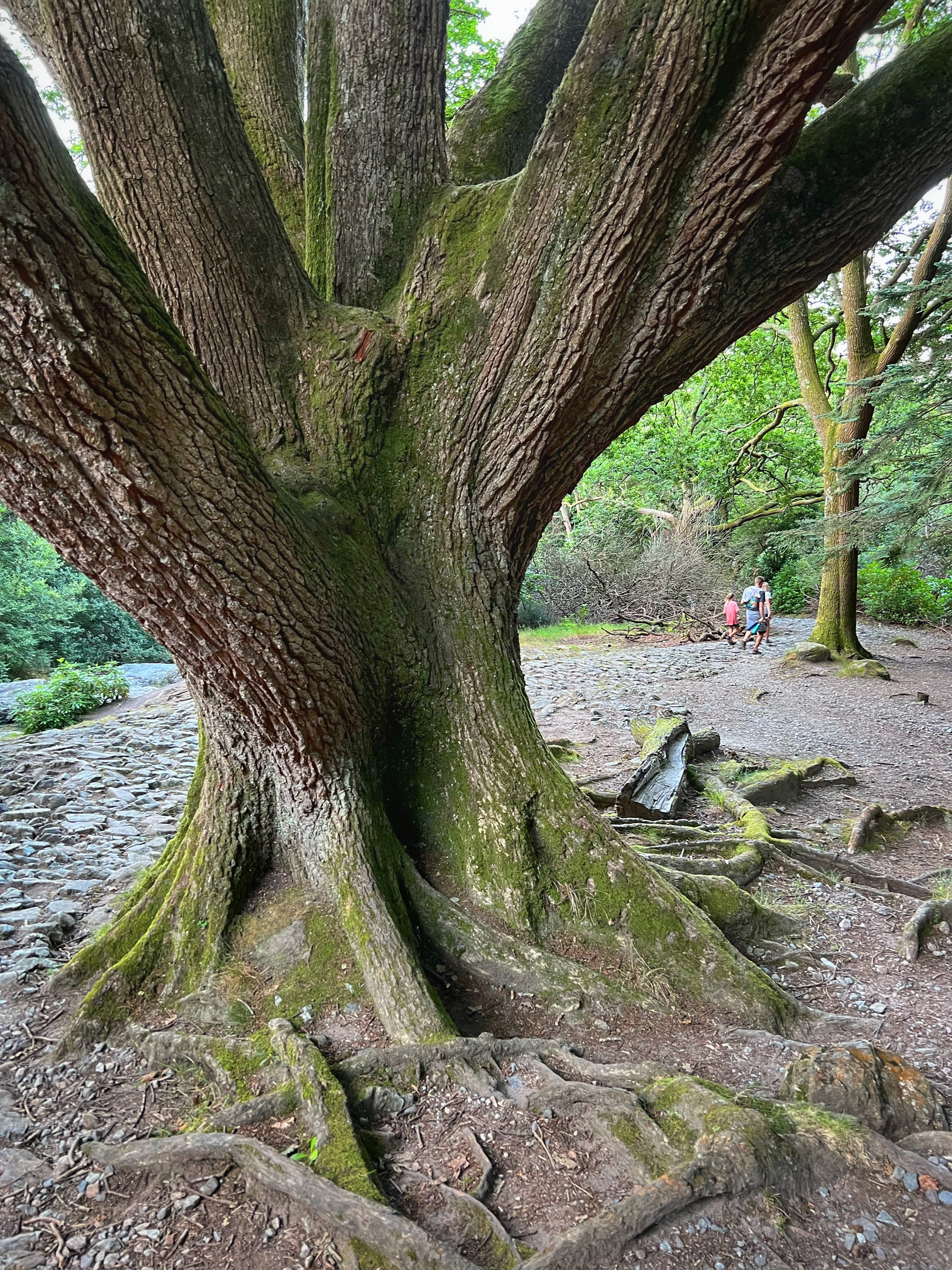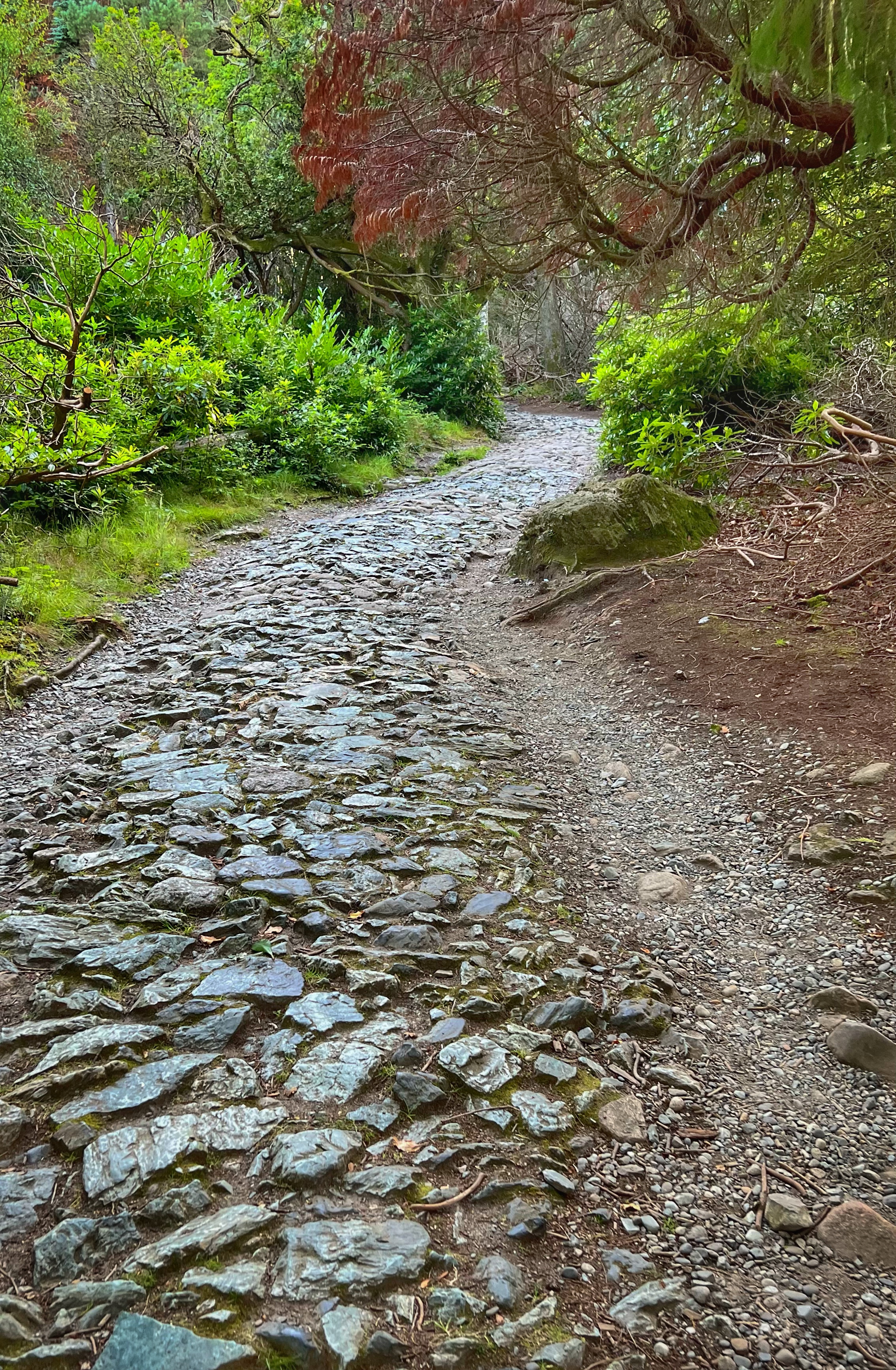 I had read about a “secret” beach called Rose Beach, but the directions online turned out to be fuzzy. There is plentiful free parking at Muckross House and it’s a beautiful place to spend the afternoon wandering the trails and frolicking in the park. In spite of wonky directions to the secluded beach, we found it anyway, and can say that it was a nice place to go for a quick dip. The location is here. To get there, walk on the paved path in the direction of Brickeen Bridge, about one mile from the parking lot or Muckross House (whichever is your starting point). When you reach a big clearing, there will be a bench on your right. The path to the beach is on your left and goes through the woods (see photo below of bench and path). The walk itself is lovely! Only a couple other people were there, and the views were nice. The water was very comfortable mid-August and the kids loved swimming. The only bummer was that we were all covered in ticks from sitting on the rocks by the shore. We were finding micro ticks the whole walk back to the campervan – so beware! We didn’t end up touring Muckross House itself, but wanderound around it and thoroughly enjoyed this 19th century mansion and property.