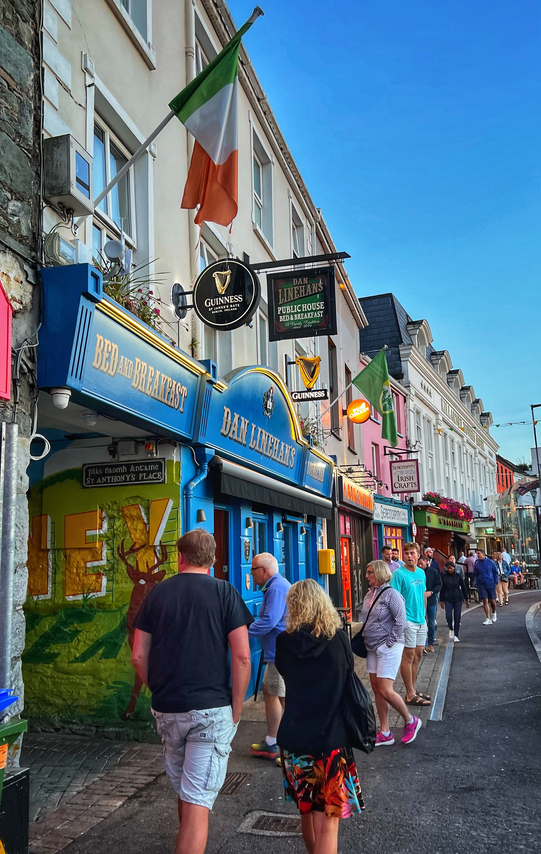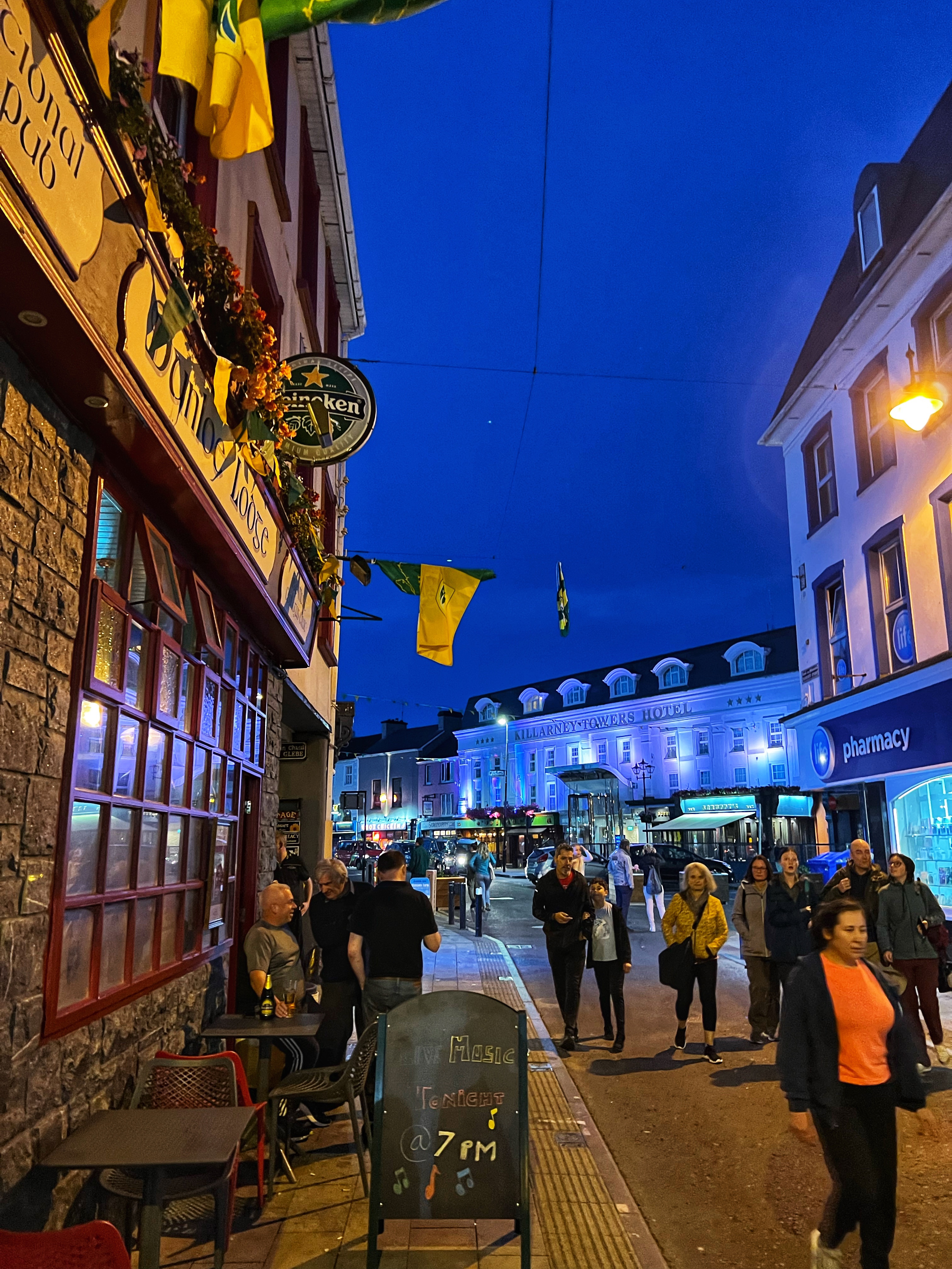 Later, we checked into our campground and everyone took proper showers (not just a quick rinse) for the first time in 3 days. It was also nice to empty the toilet reservoir, refill the water, and plug into electricity to make sure every single device was well charged for the next part of our voyage. Fossa Campground was great – and at about €45, it had everything we needed. There is a nice restaurant there too, but we didn’t end up eating there, in favor of taking a cab into Killarney for dinner, shopping, and exploring town instead.