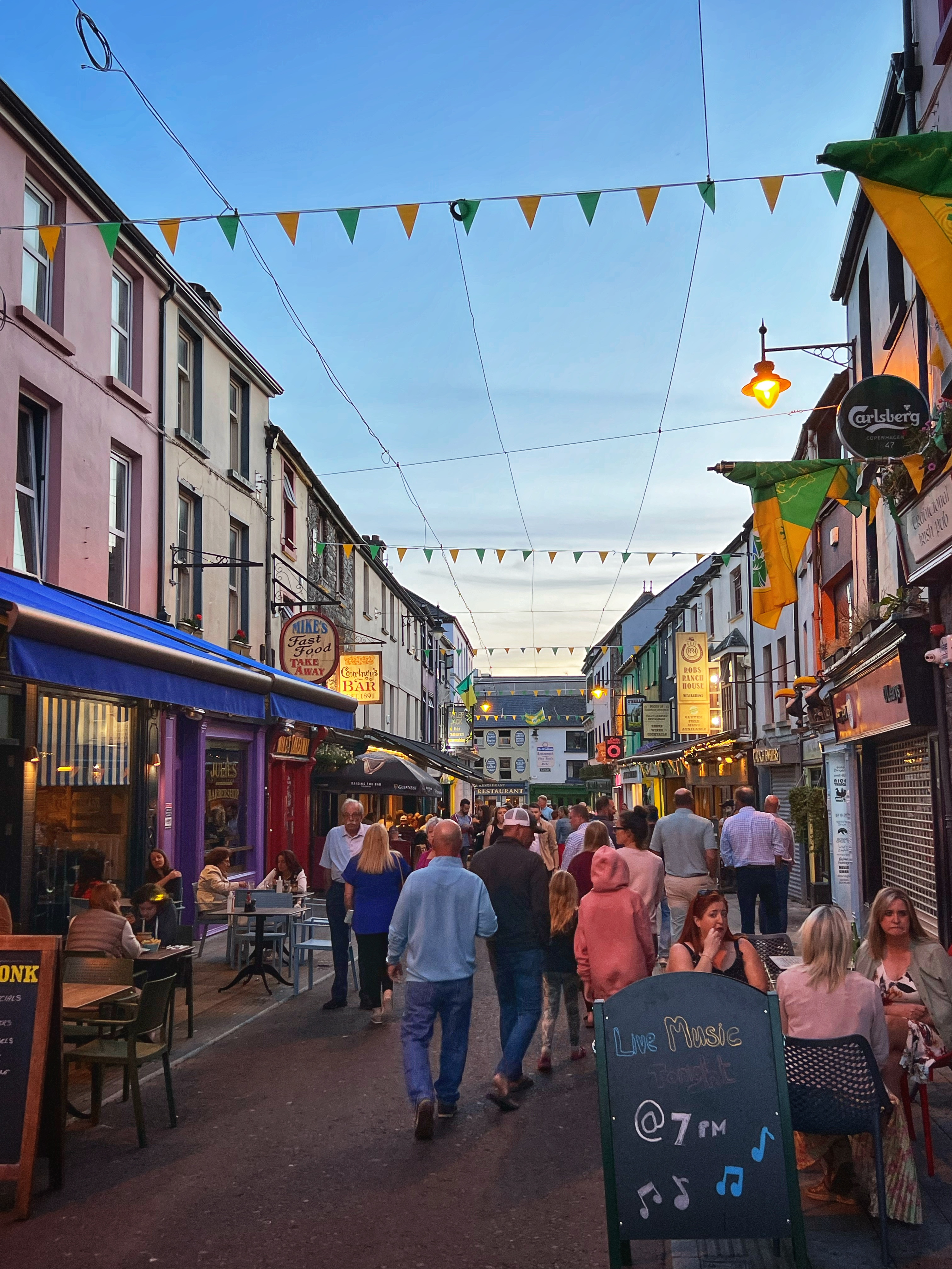 We ate at The Shire Bar & Cafe, a Lord of the Rings themed pub. It was a little kitschy and touristy, but the food was excellent and the kids got a kick out of the theme. Killarney is an awesome city and a must-see for anyone visiting southern Ireland. It’s also a terrific place to stay with lots of nightlife, music and entertainment. The colorful energy of Killarney was contagious. We wandered the streets on our weary legs – even after our long morning hike at the Gap of Dunloe and visit to Muckross House! The next day was a rest day and mostly driving, so we were tired, but didn’t mind. We also noticed that a lot of Americans were in Killarney. It’s a happening place! We will be sure to hit up Killarney Brewing Co and Tango Street Food the next time we’re in town.