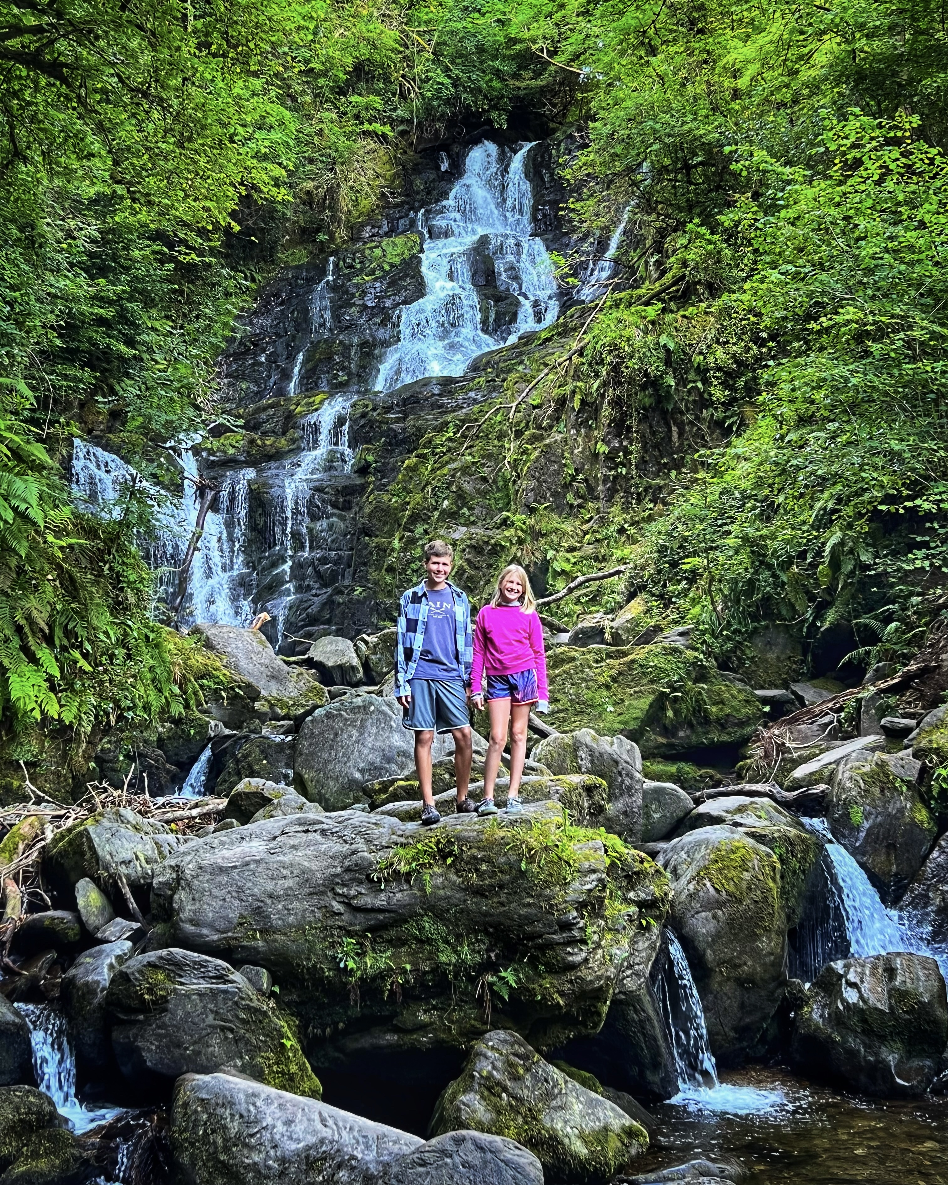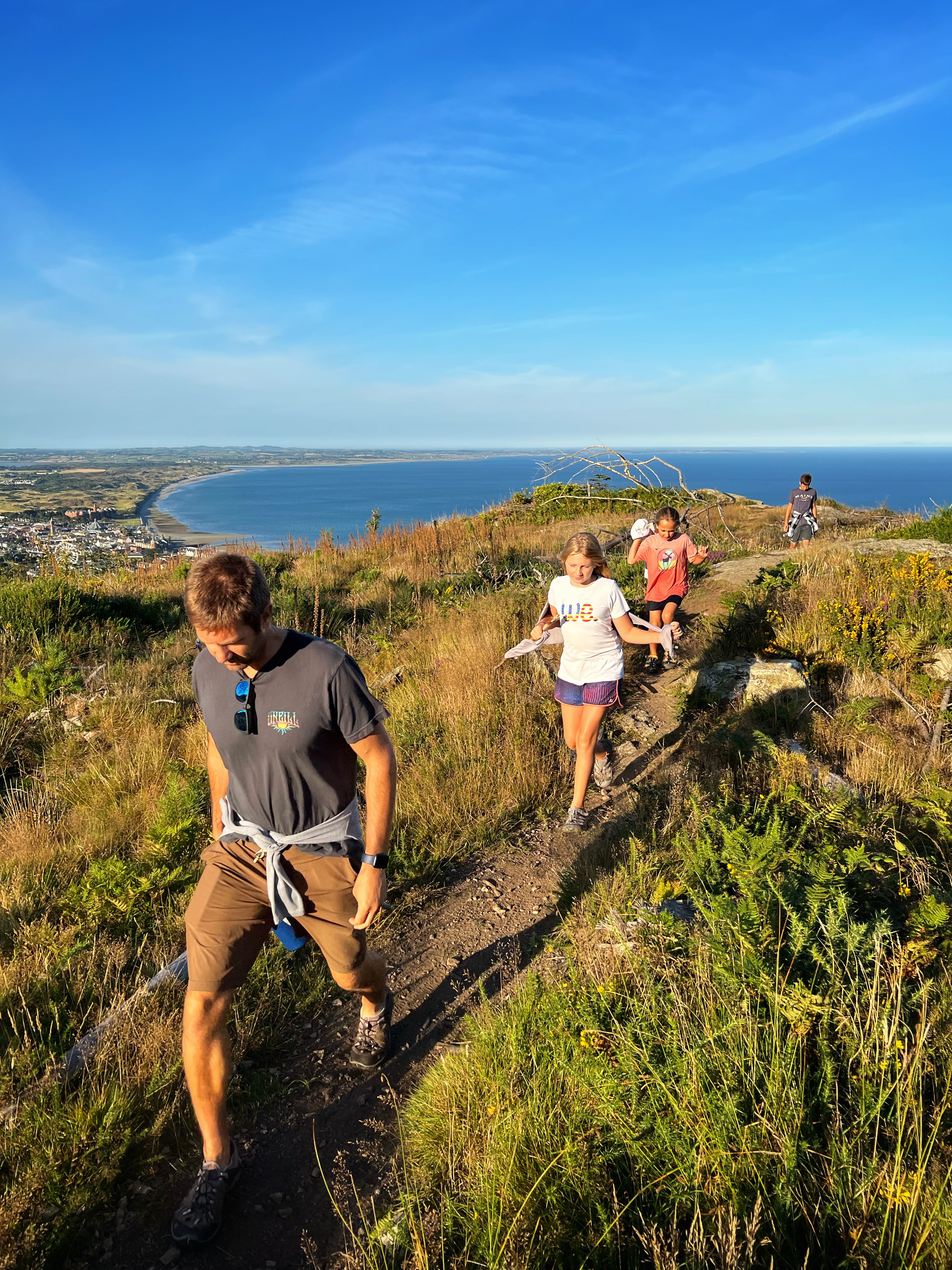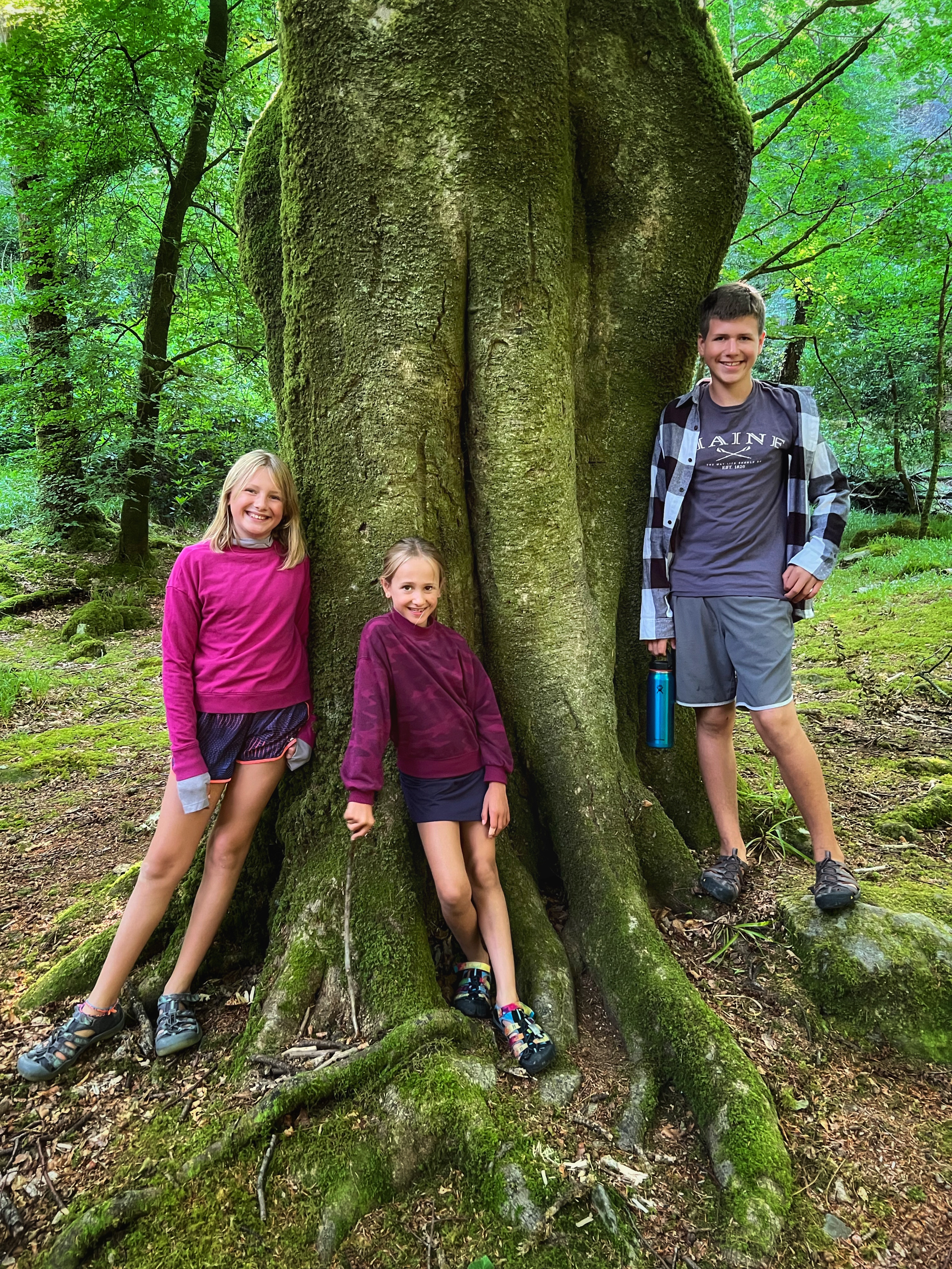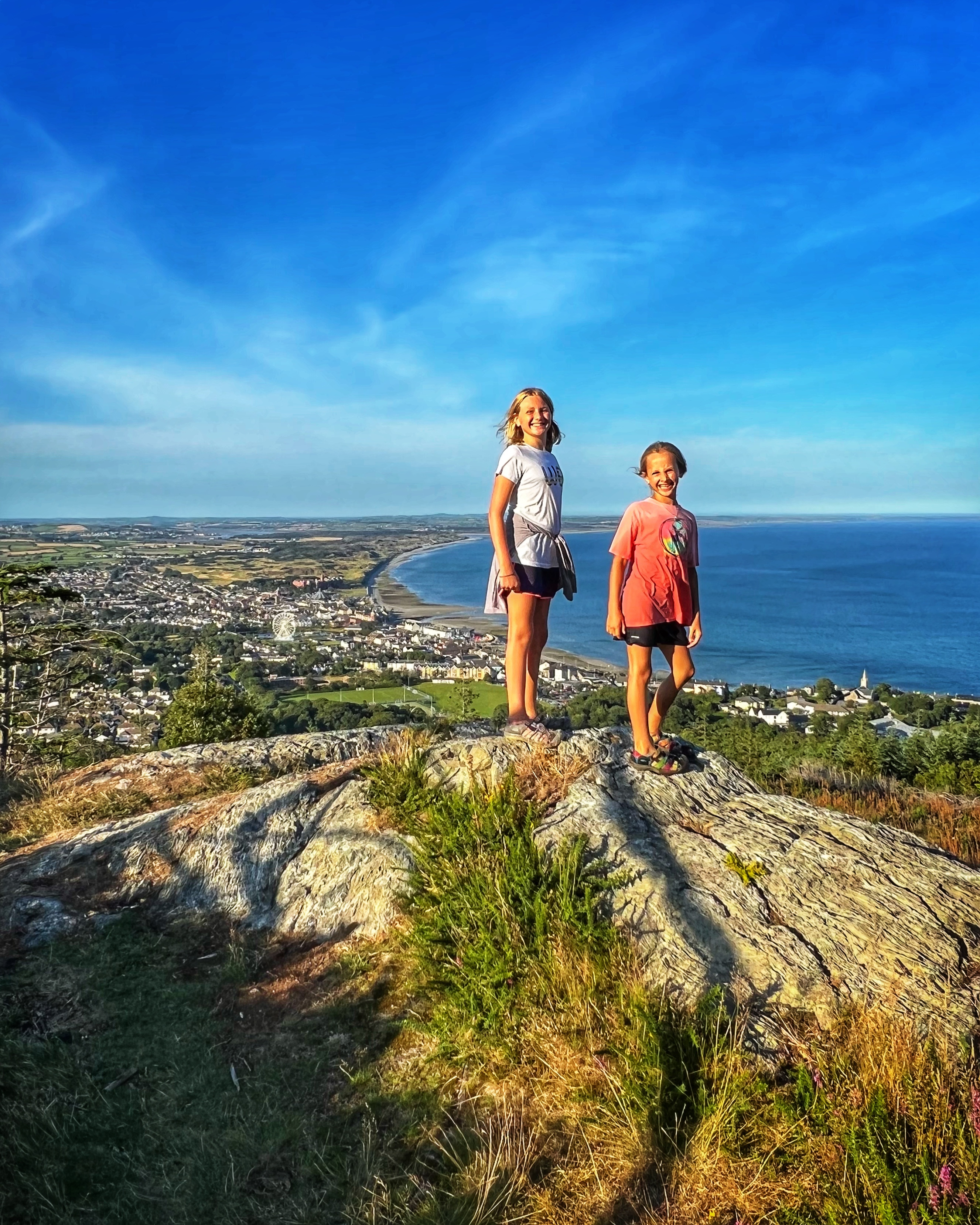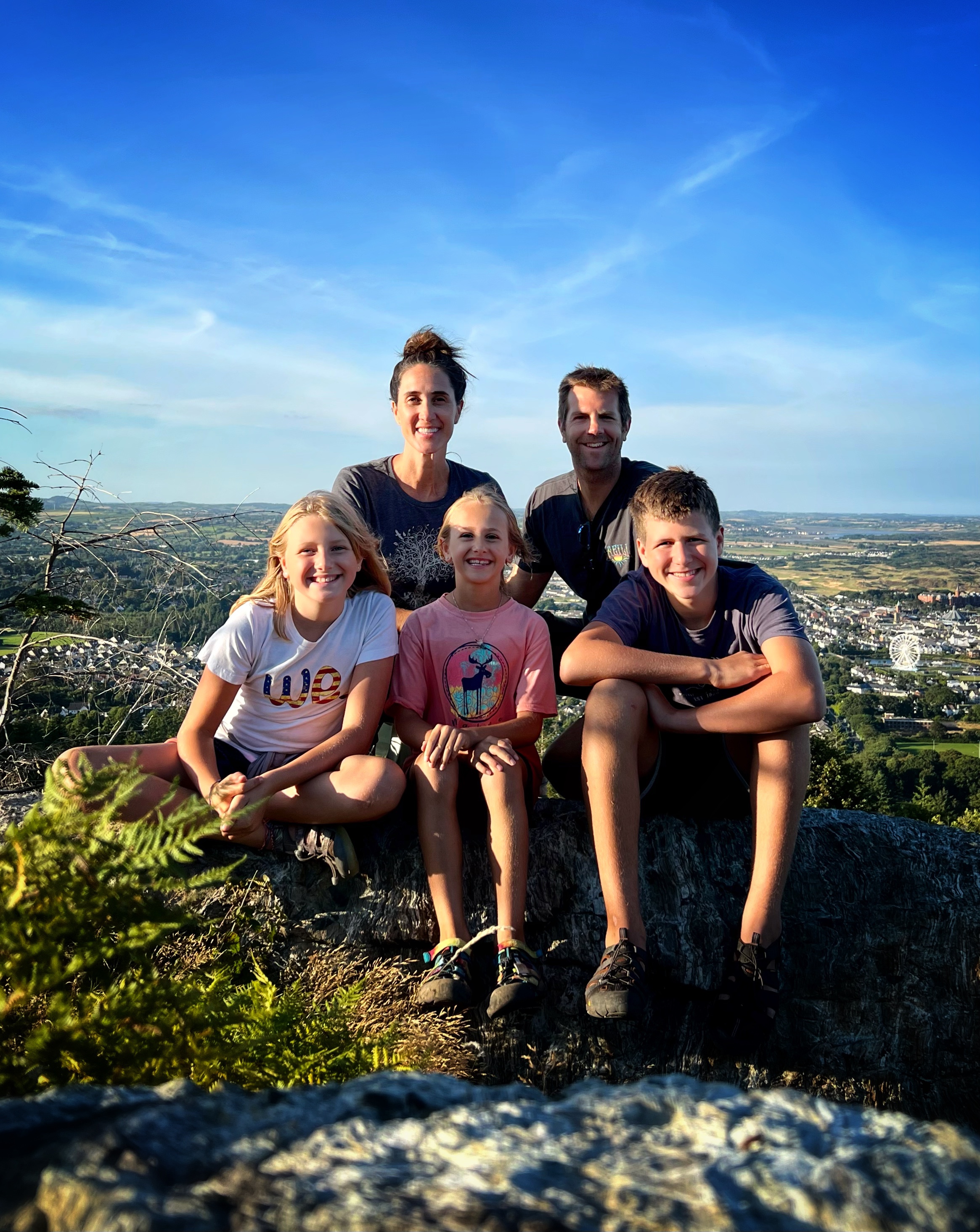 The original goal was to make the big hike all the way up Slieve Donard, the highest peak in Northern Ireland. However, we arrived at the Donard Car Park (where we stayed for the night) a little bit late, so instead we ate dinner in the campervan and took a nice sunset walk along the Glen River trails to a beautiful overlook of the coast and Newcastle. The kids loved this hike and were so happy to be back on their feet after the long drive. This hike took us about 90 minutes, complete with rope swings, tons of waterfall pools to play in, remarkable trees, beautiful views, blackberries to pick, and even smooth rocks to slide down in the river.
