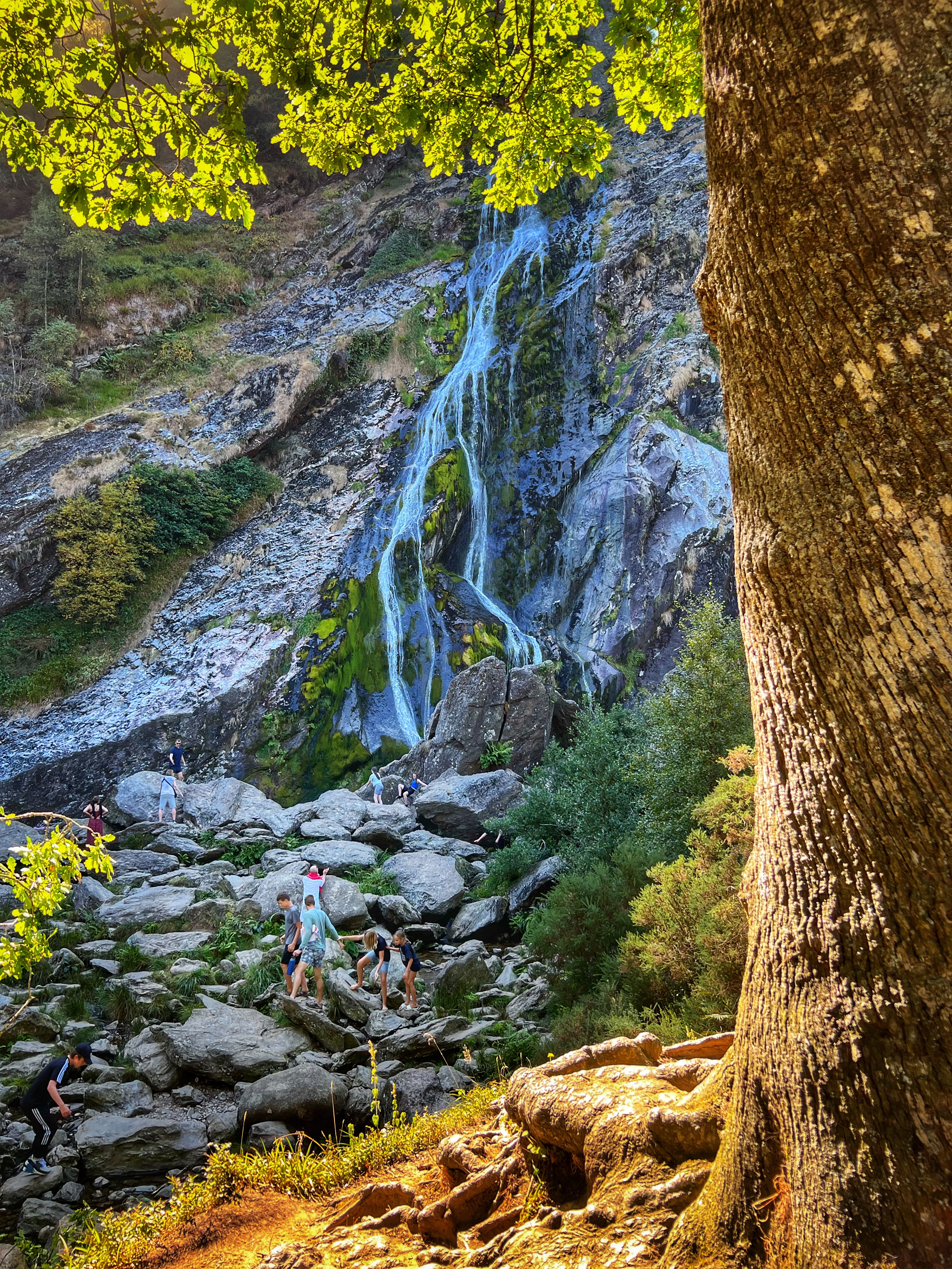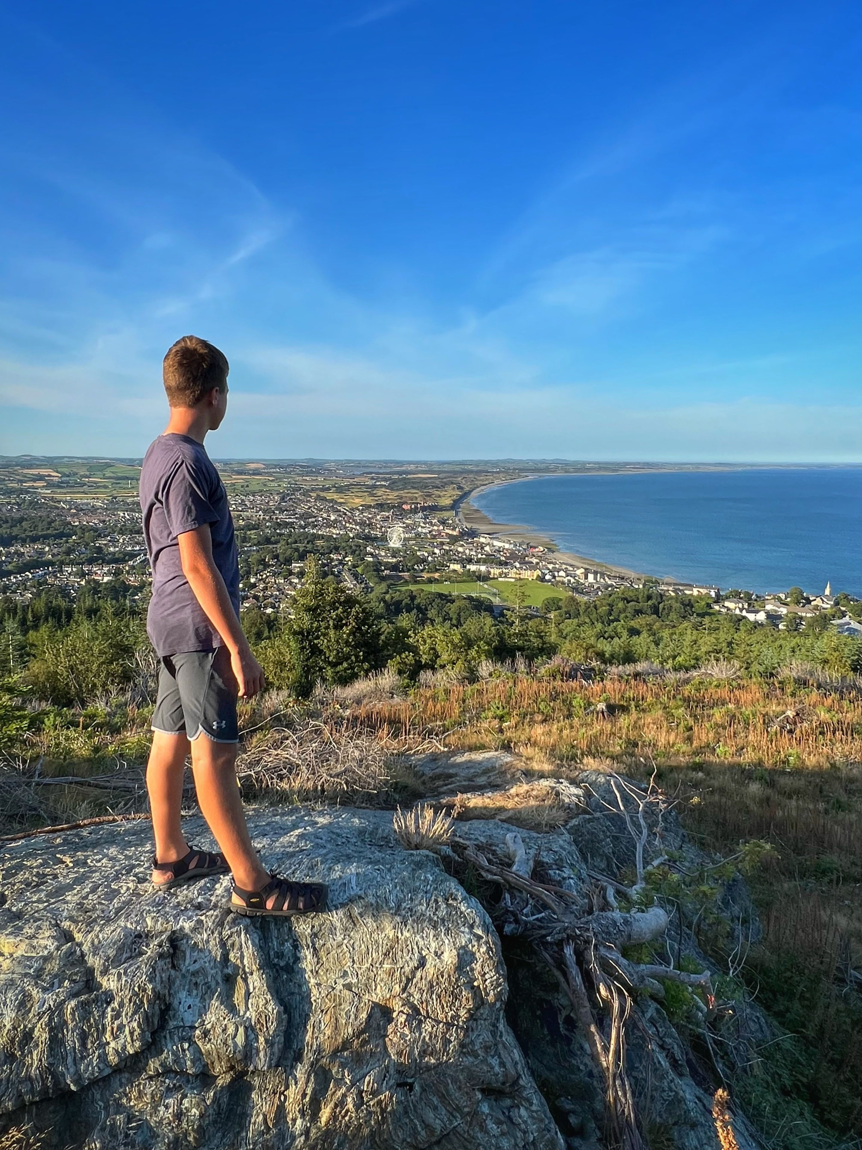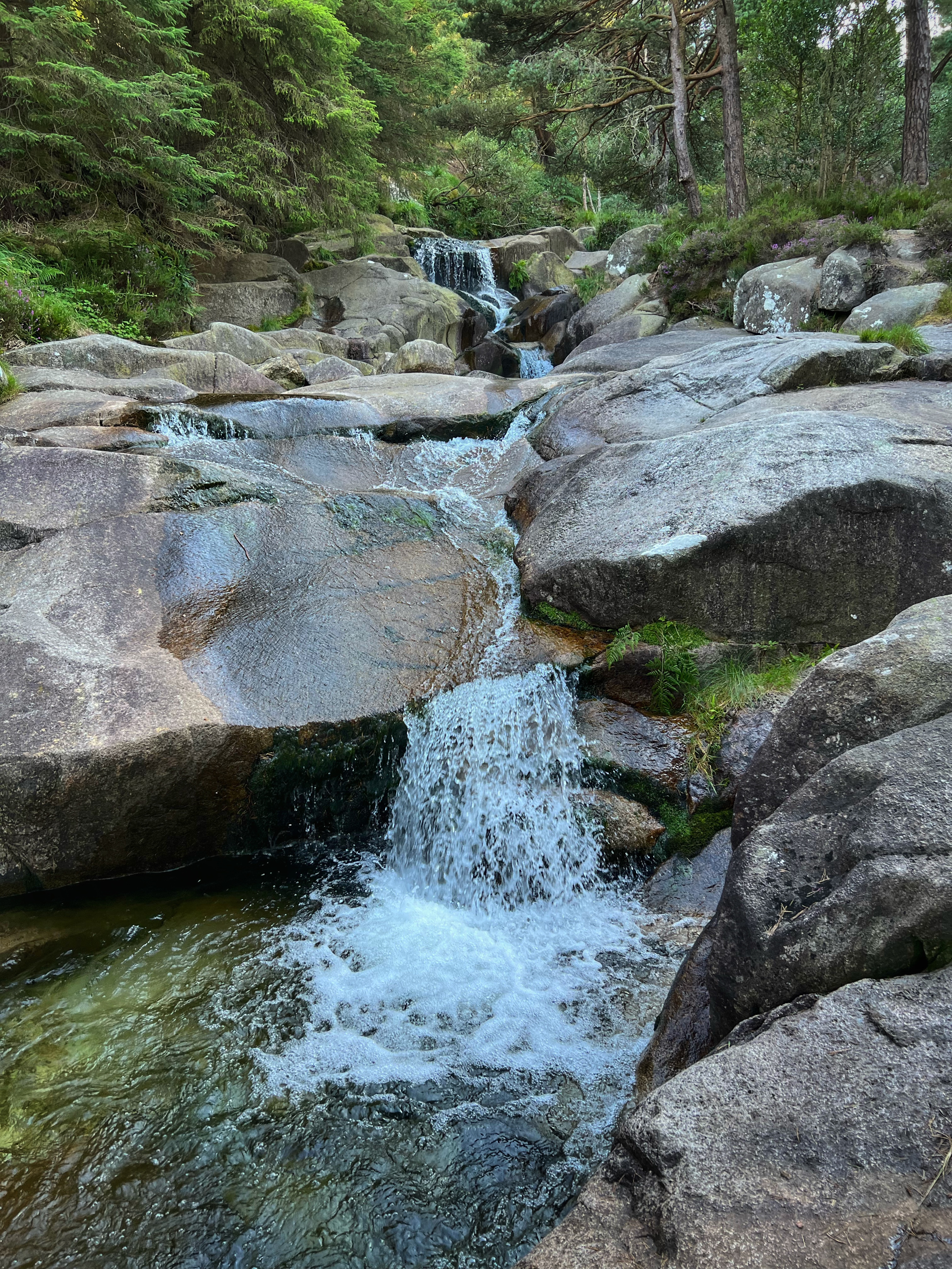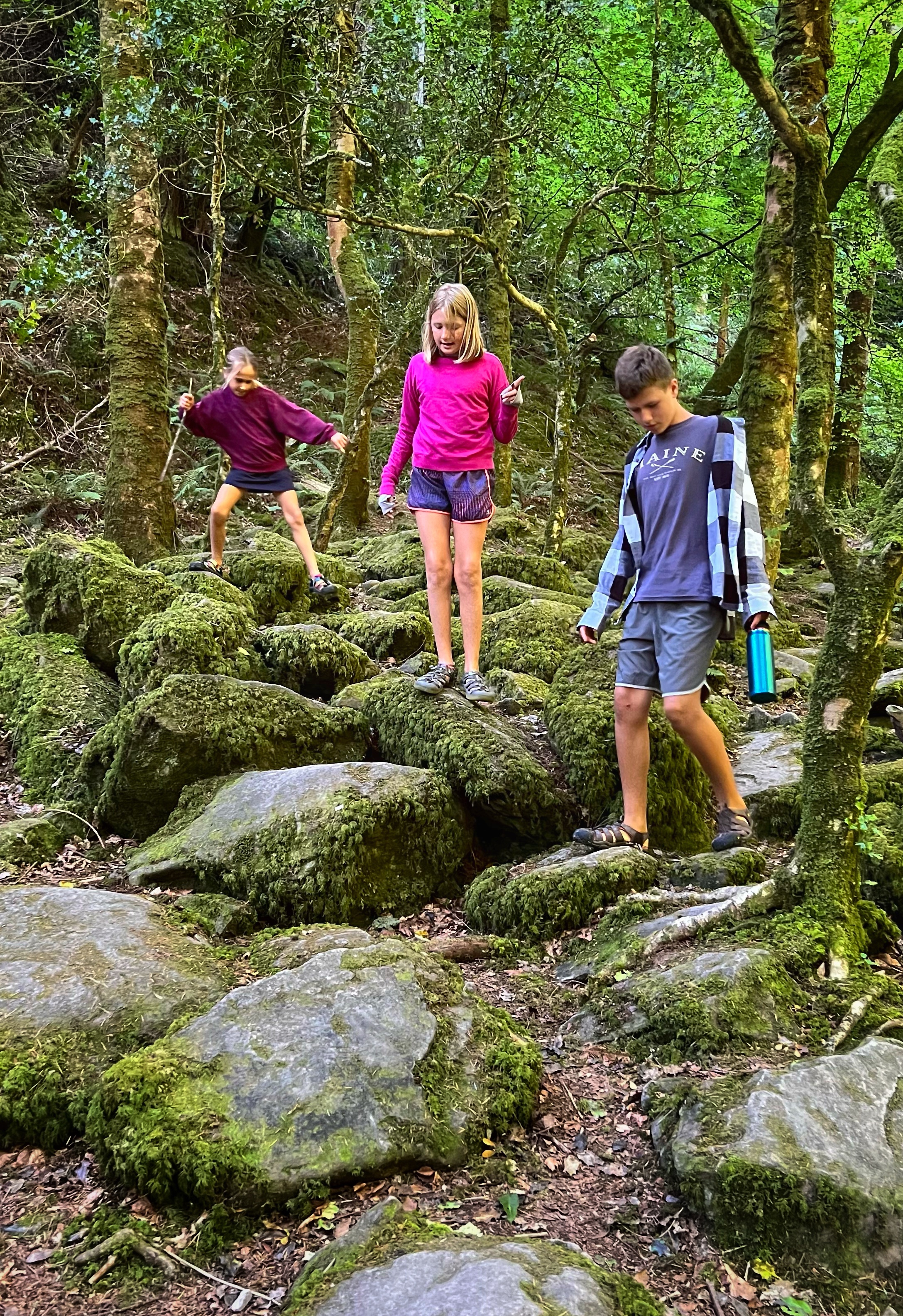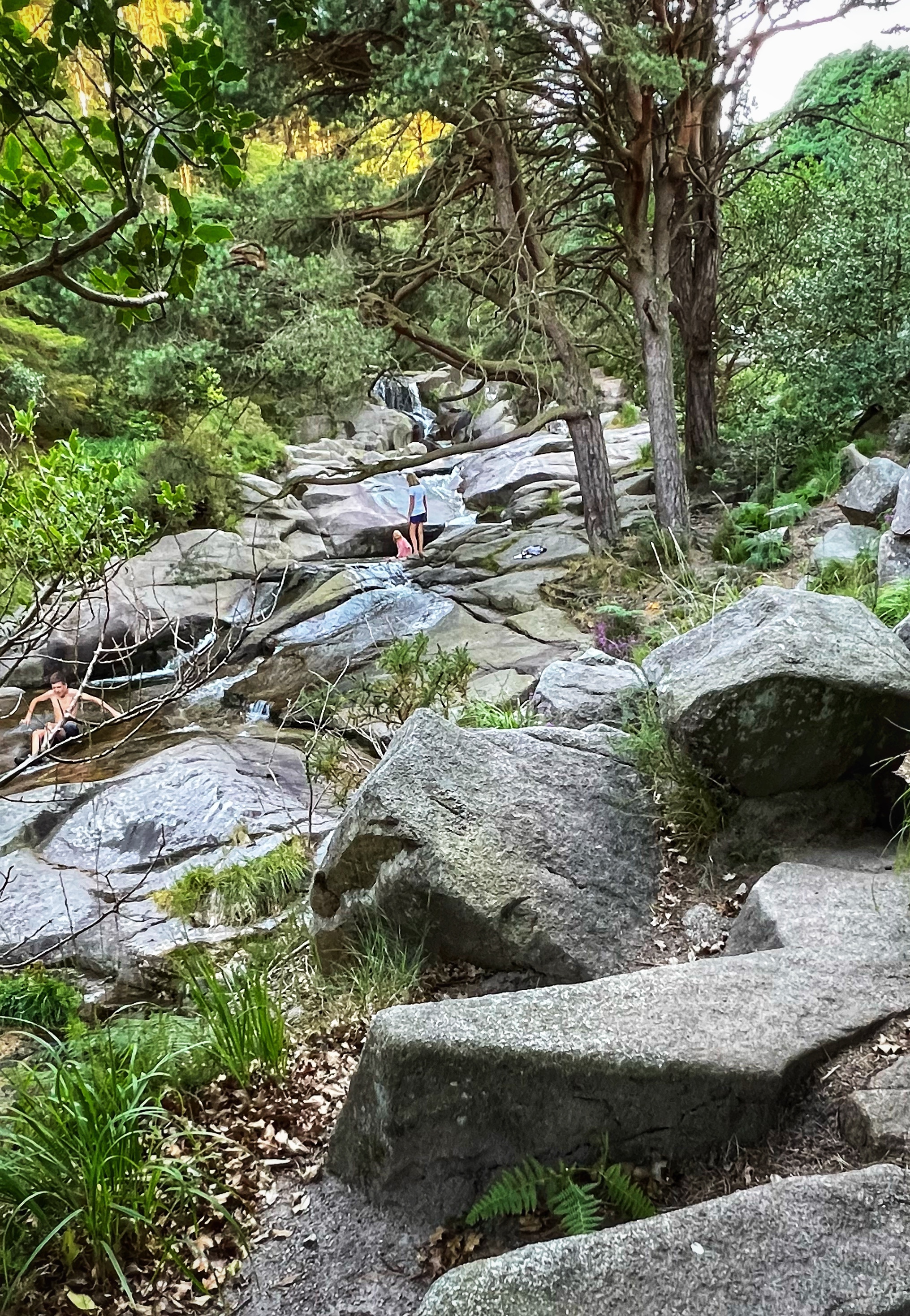 The original goal was to make the big hike all the way up Slieve Donard, the highest peak in Northern Ireland. However, we arrived at the Donard Car Park (where we stayed for the night) a little bit late, so instead we ate dinner in the campervan and took a nice sunset walk along the Glen River trails to a beautiful overlook of the coast and Newcastle. The kids loved this hike and were so happy to be back on their feet after the long drive. This hike took us about 90 minutes, complete with rope swings, tons of waterfall pools to play in, remarkable trees, beautiful views, blackberries to pick, and even smooth rocks to slide down in the river.