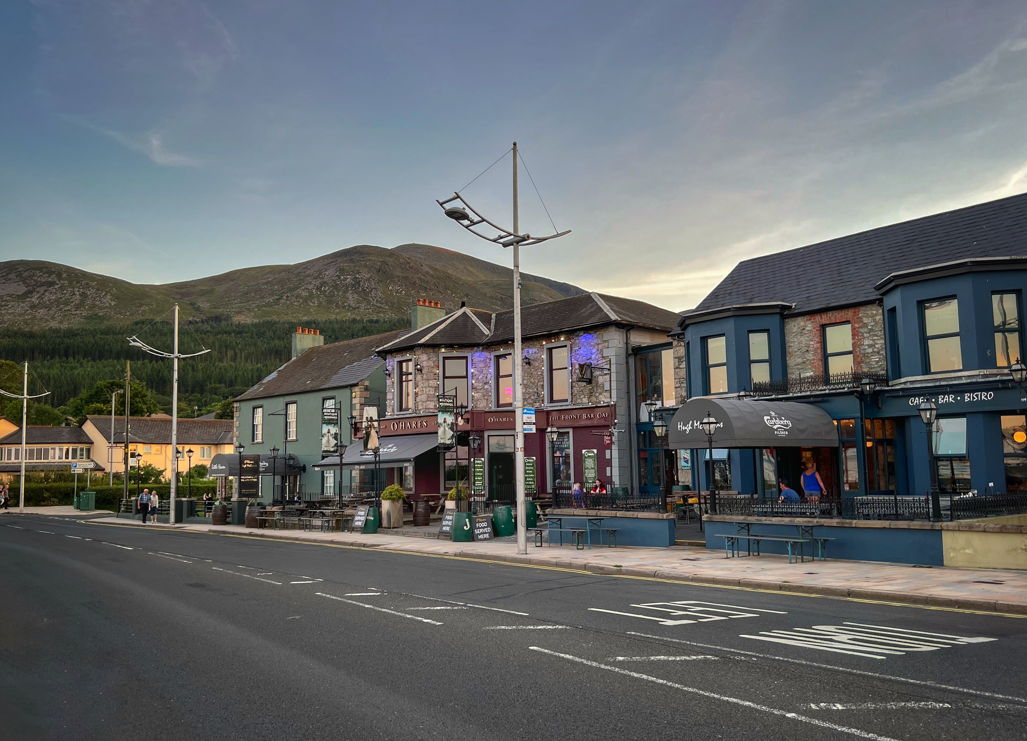 We worked up quite an appetite, so we drove about 30 minutes through the mountains towards Dublin to find Johnnie Fox’s Pub. This pub is in a lovely location and had amazing reviews – and bonus, we learned we could park in their lot overnight – so we had to check it out. Even without reservations they got us in right away and we had a terrific meal for our last night in the campervan. The mussels and savory pies are a must! We were even surprised at the price – we stuffed ourselves with drinks, appetizers, entrees, and deserts and it didn’t break the bank. I highly recommend Johnnie Fox’s! It’s located here.