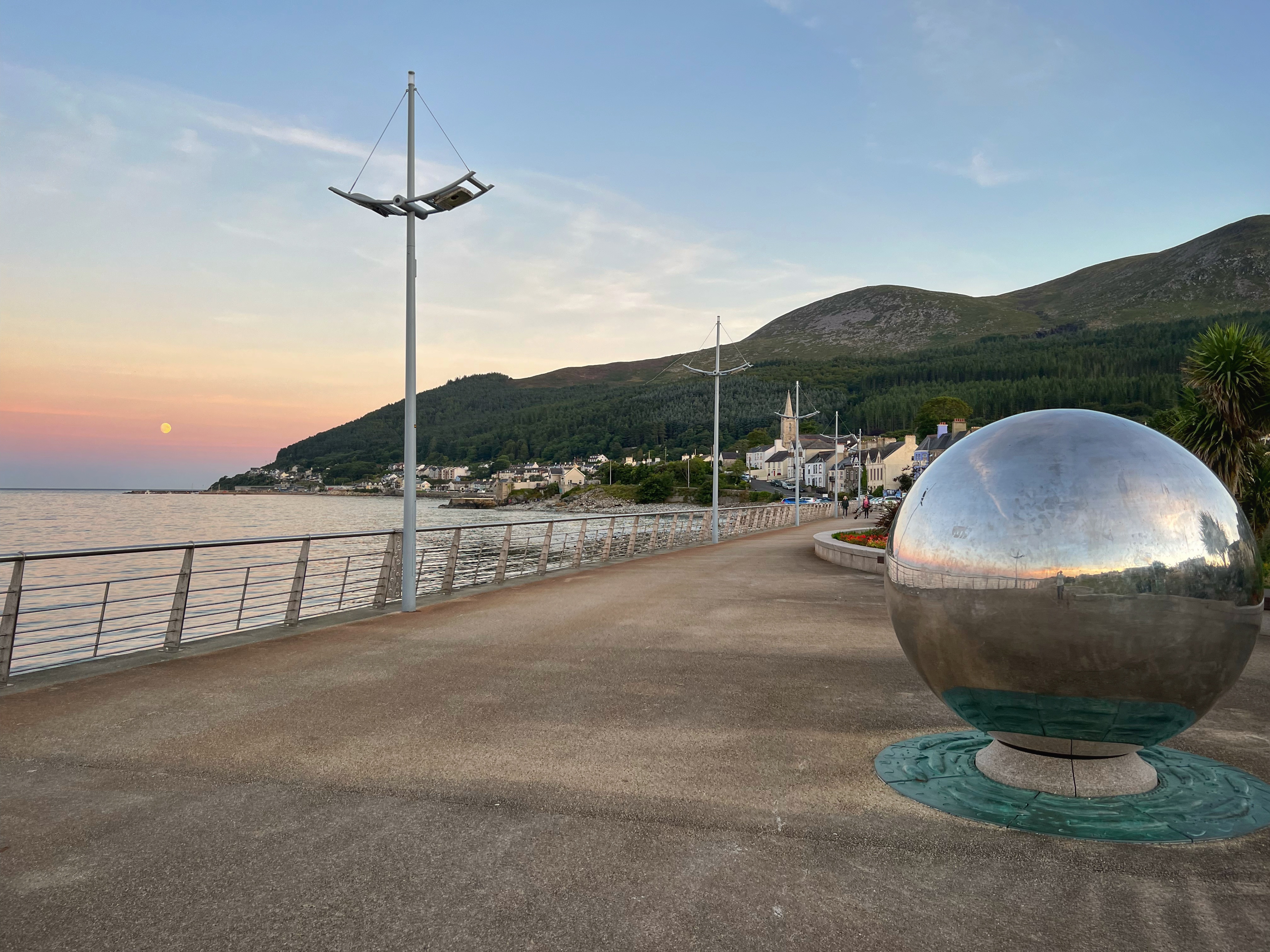 Right away we noticed a big difference between Ireland and Northern Ireland. It’s difficult to describe here with tact, but I will say that it’s a little more rough around the edges. It was obvious Northern Ireland is part of the UK. Newcastle, a seaside town, felt a little bit like the seaside towns of New England: a bit of a carnival feel. O’Hares Pub was good fun, and so was skipping rocks under the beautiful glow of the full moon. Don’t miss the big silver globe “Global Journeys” and the Cone of Light art instillation along the promenade – looking through it you can see the pinnacle of Slieve Donard! It’s so cool, and was meant to be reminiscent of the standing stones popular in the UK – just a more modern version.