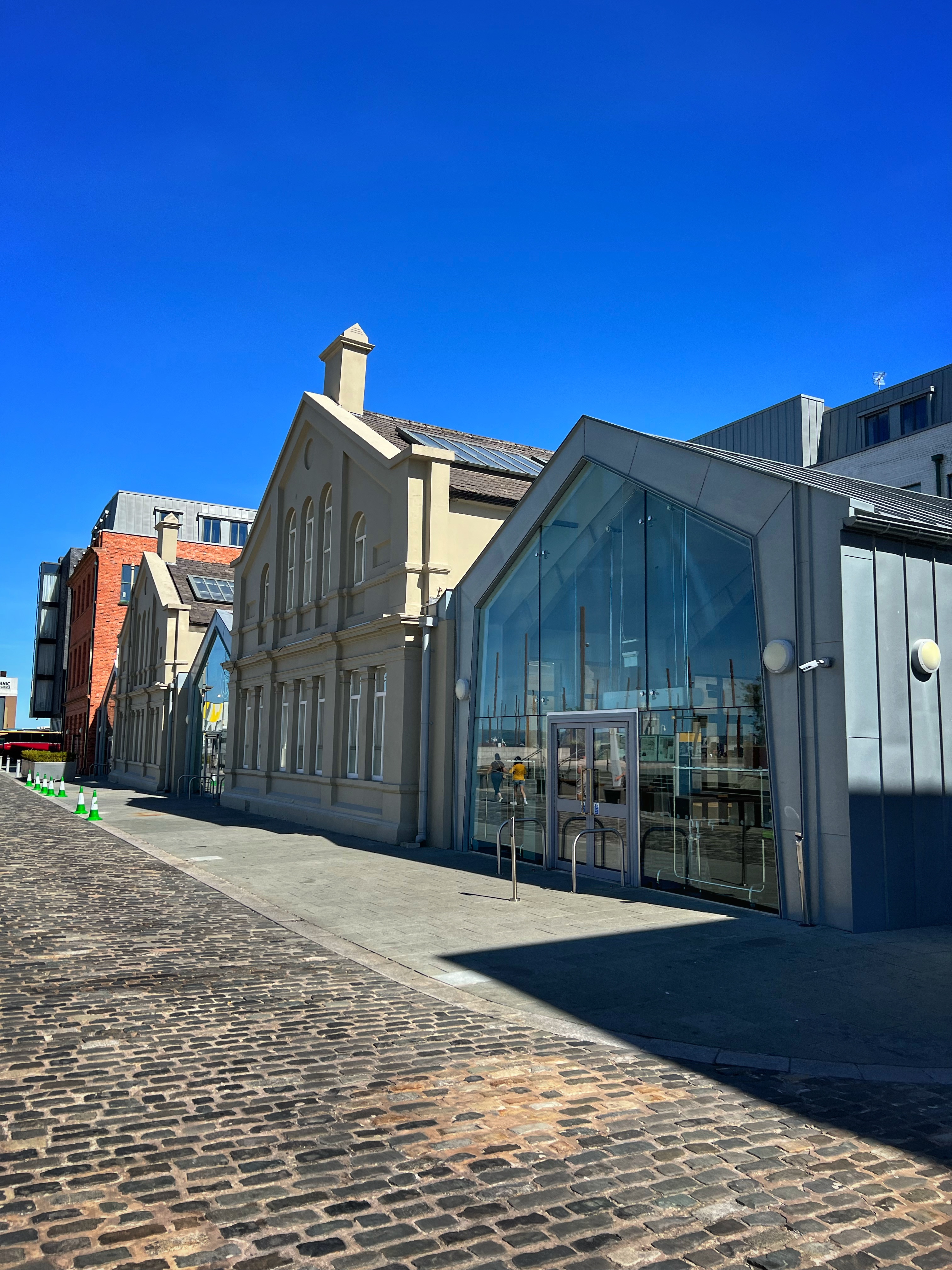 We woke up at Donard Car Park (again, there were several people parked here overnight and we had no issues) and walked over to Niki’s Kitchen Cafe for a classic Irish breakfast. For the record, Niki’s is pronounced “Necky’s” here, so take note when asking for directions to it. We especially enjoyed the baked goods here, and it’s a great little stop along the water to enjoy breakfast. Then we headed into Belfast to meet up with my college friends and their sweet little boys! We didn’t spend much time in Belfast, but knew we couldn’t miss the Titanic Experience Museum, so that was our first stop.